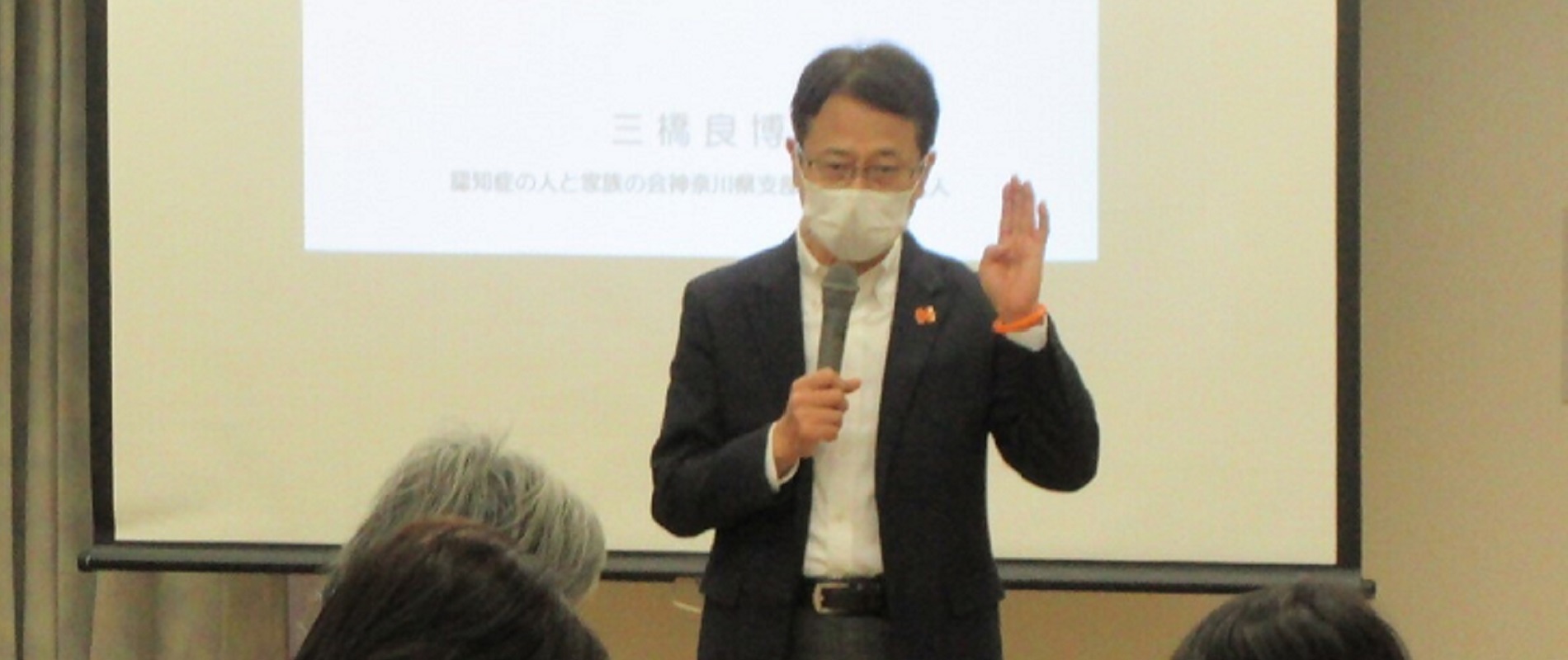 「オレンジパートナーの皆さんは何かをしようという意欲のある人たち。座学で習ったことは大事だが、認知症の本人や家族がどう思い、何を感じてどうしたいか。活動している現場に入ってそれを知って欲しい」「カフェやつどいは地域や団体によって個性がある。運営する人たちの話を聞き、やり方や方針を理解して参加して欲しい。中に入ってみると、認知症の本人は自分の意志を持ちそれを発信し、笑顔もあり元気。(行こうかどうか)迷っても入ること、一歩踏み出すことが大事だと思う」。それが個人経営の仕事を抱えながら団体の運営、つどいの企画、講演、研修会参加と多忙な日々を過ごしている三橋さんから、オレンジパートナーへ贈る言葉だ。「私は現役の介護家族。認知症の人たちやその家族と触れ合っていると、認知症は特別な病気ではなく白髪や顔のしわと同じ。共に生き、普段の生活の中にある。誰しも認知症になる可能性があるのだから、皆で一緒に支えながら歩んでいく手助けができればいいなと思っている」。三橋さんはこれからを見据えて柔らかい表情で話した。 (公益社団法人認知症の人と家族の会 神奈川県支部 水越)