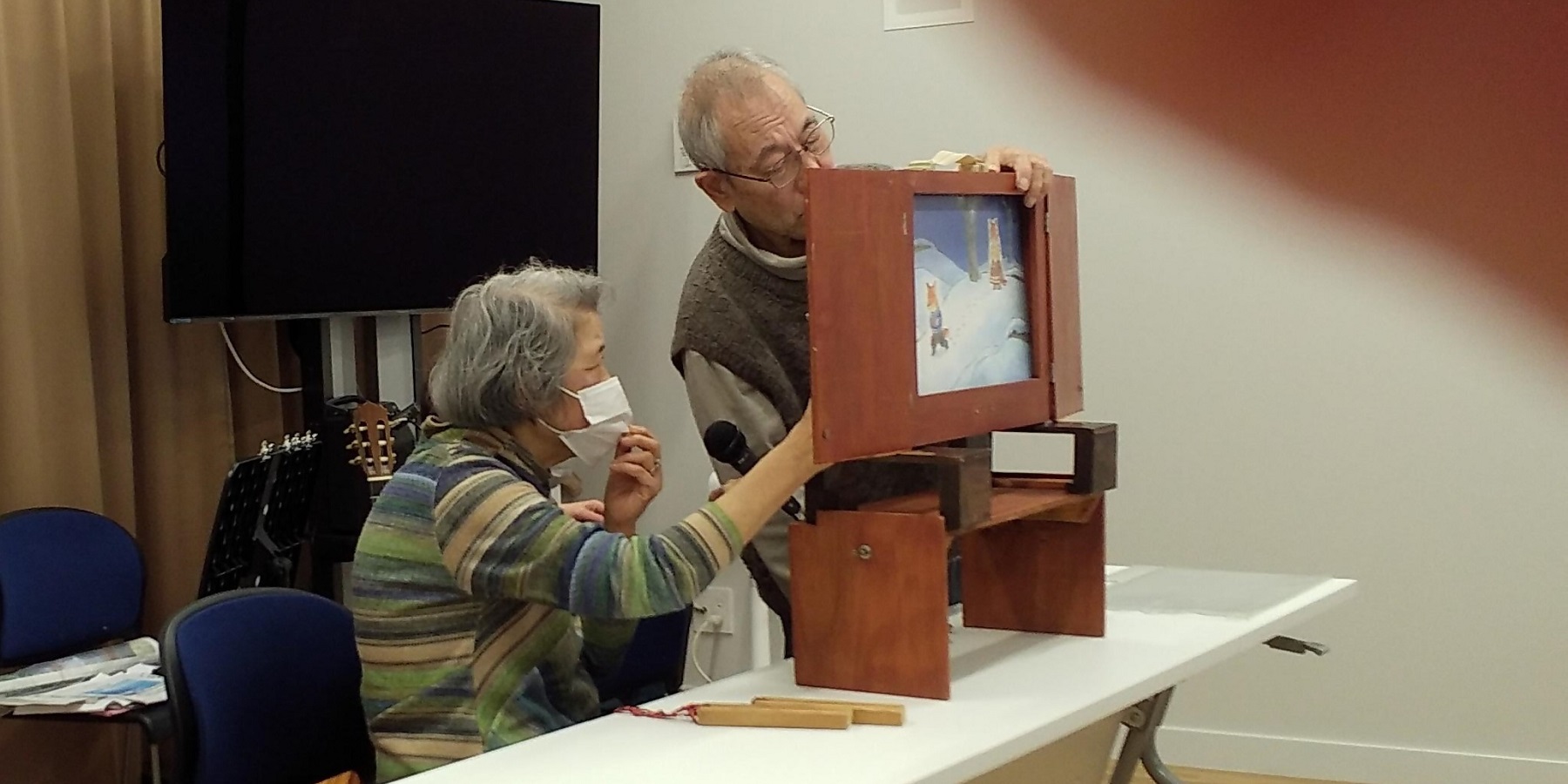 周囲の人たちの理解と協力を得て2022年3月に開催したオレンジカフェは、1回きりのワンディオープンのつもりだった。しかし評判がよく、熱心なスタッフや逗子市、社協、包括支援センター等の助力もあり、カフェの名称を『あつま~る』として月1回のペースで今も続けている。中でも印象的なのは認知症の本人とその妻が演じる紙芝居で、既に13回を数える。「月日が経つごとに症状が進む本人が、懸命に紙芝居をする姿を見るのは(私自身、スタッフやボランティアにとって)すごい学びだと思う。皆が応援すると本人はとても喜び、(妻から)本人の生きがいになっていると聞くと感動する」(長谷川さん)。案内チラシを自ら印刷するなど経費的には厳しいが、逗子に限らず多くの地域の人に『あつま~る』を知ってもらい、参加して欲しいと長谷川さんは語った。