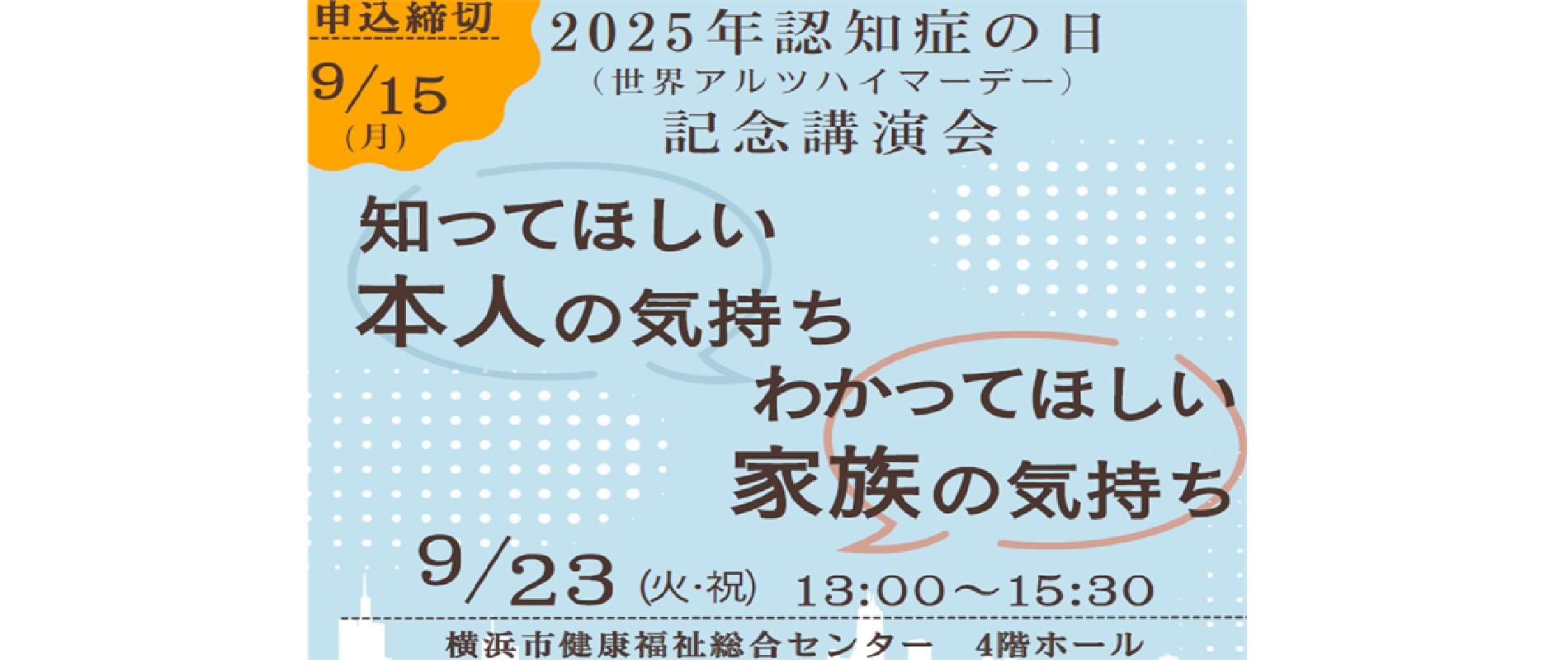 2025年9月23日(火・祝)に横浜市健康福祉総合センター(横浜市中区桜木町1-1)4階ホールで、2025年認知症の日(世界アルツハイマーデー)の記念講演会が、