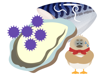 ばい菌がついた食べ物や毒がある食べ物を食べると、お腹が痛くなったり、熱が出たり、吐くなど体の調子が悪くなることがあるよ。これを食中毒というよ。