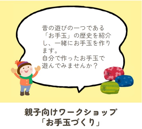 [画像:親子向けワークショップ「お手玉づくり」の画像] - 会場: