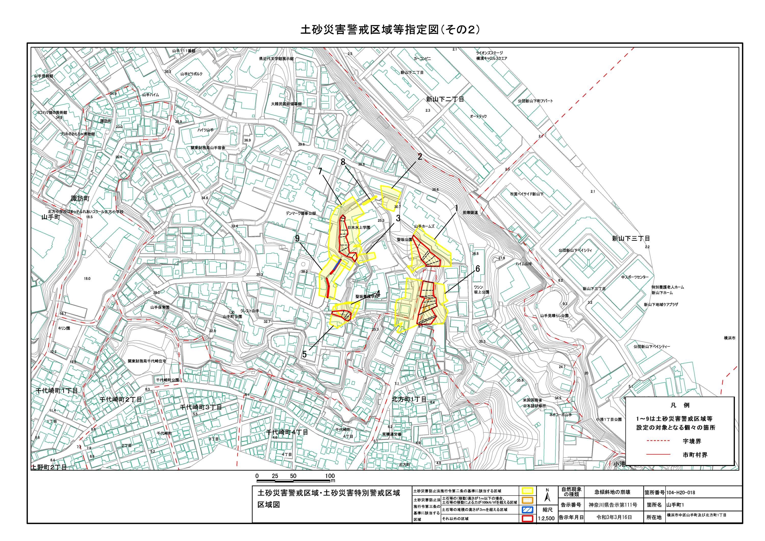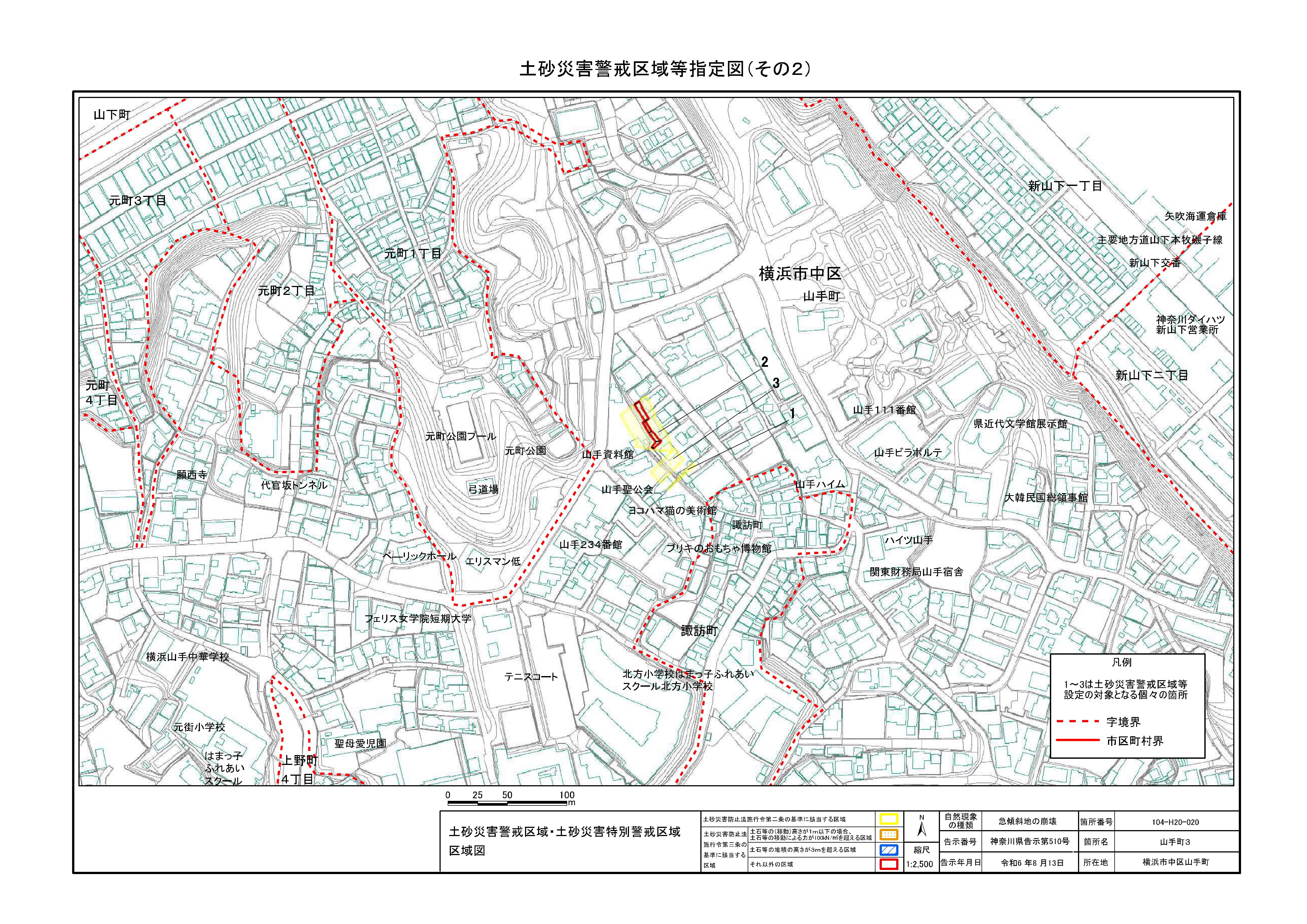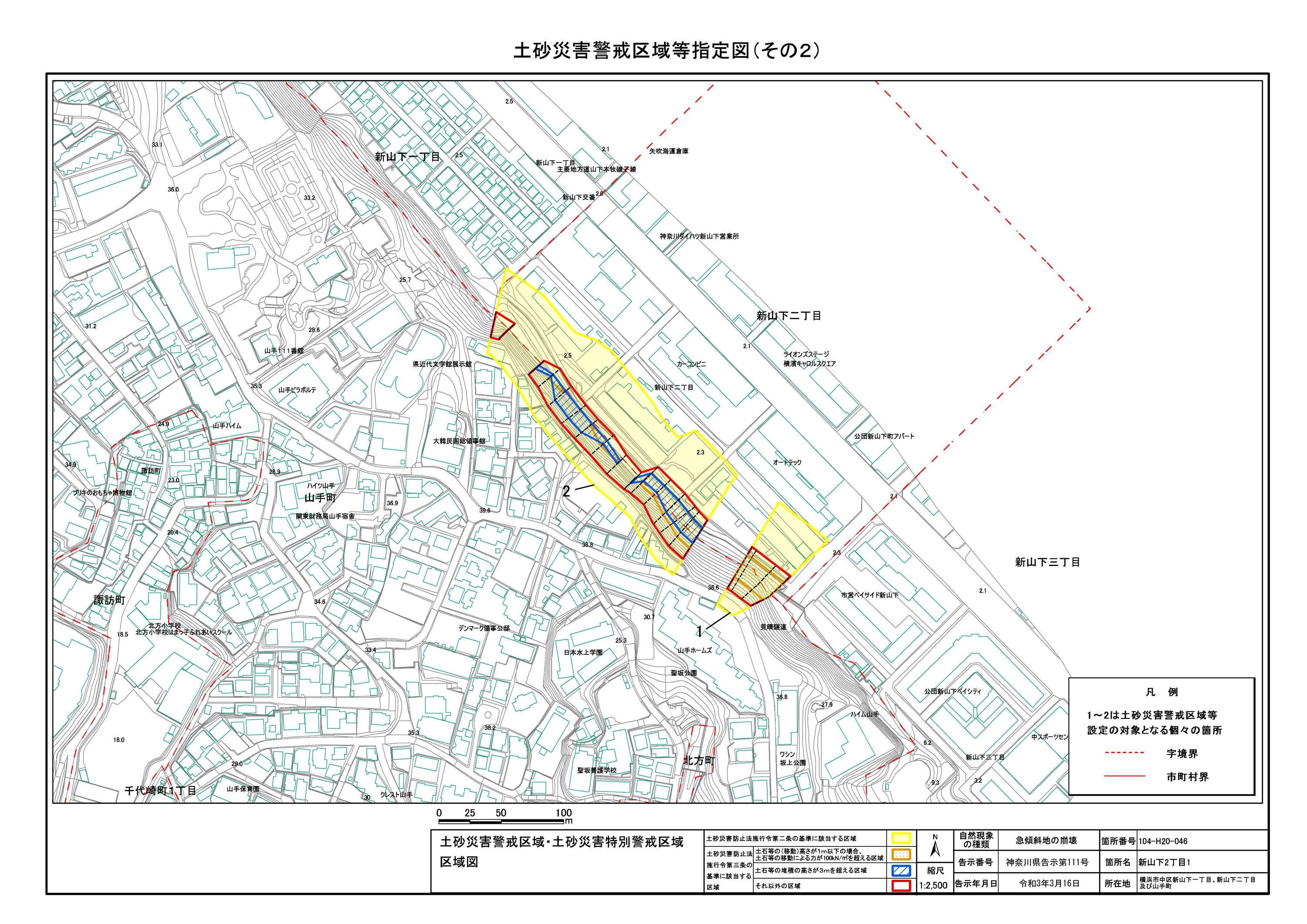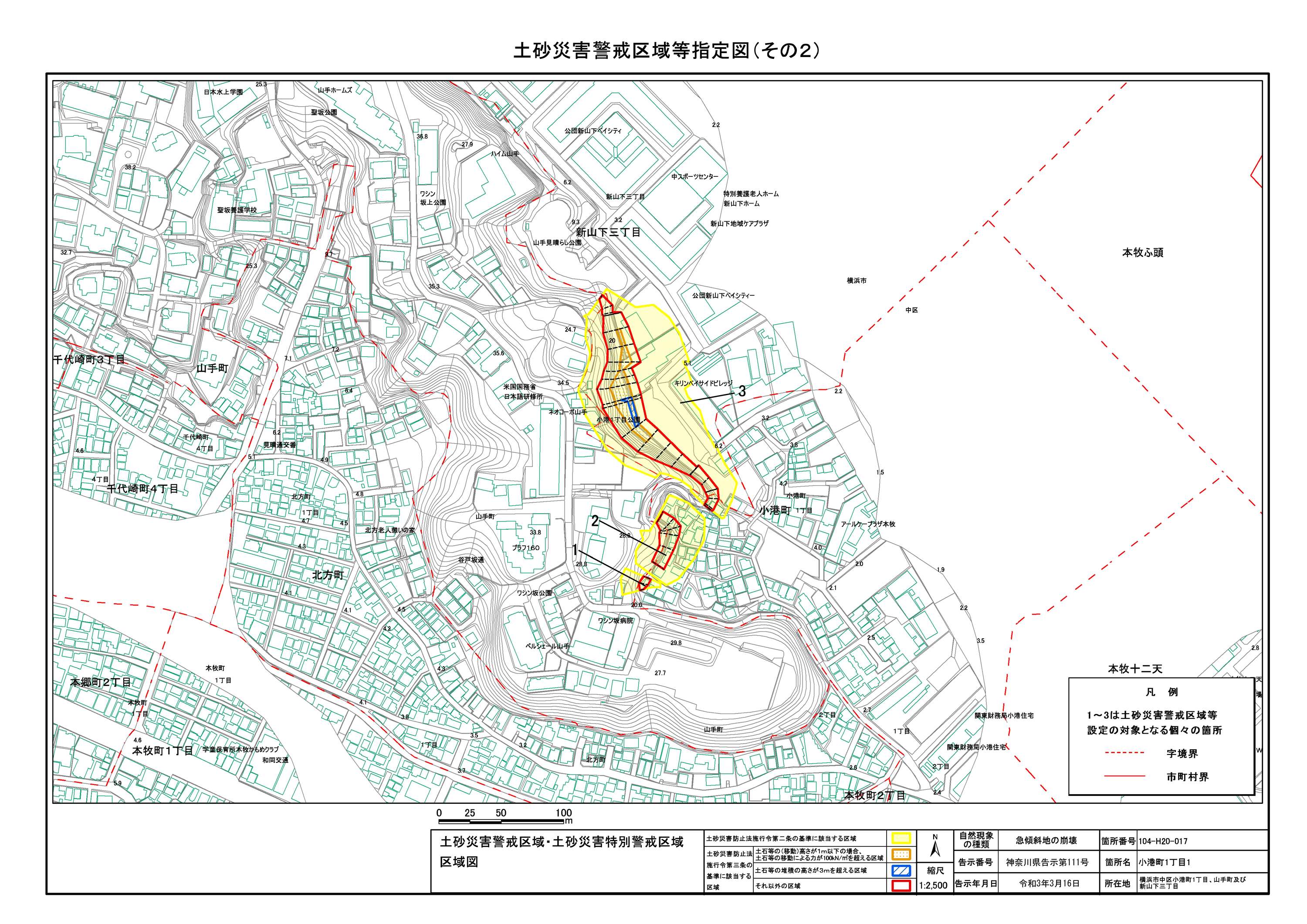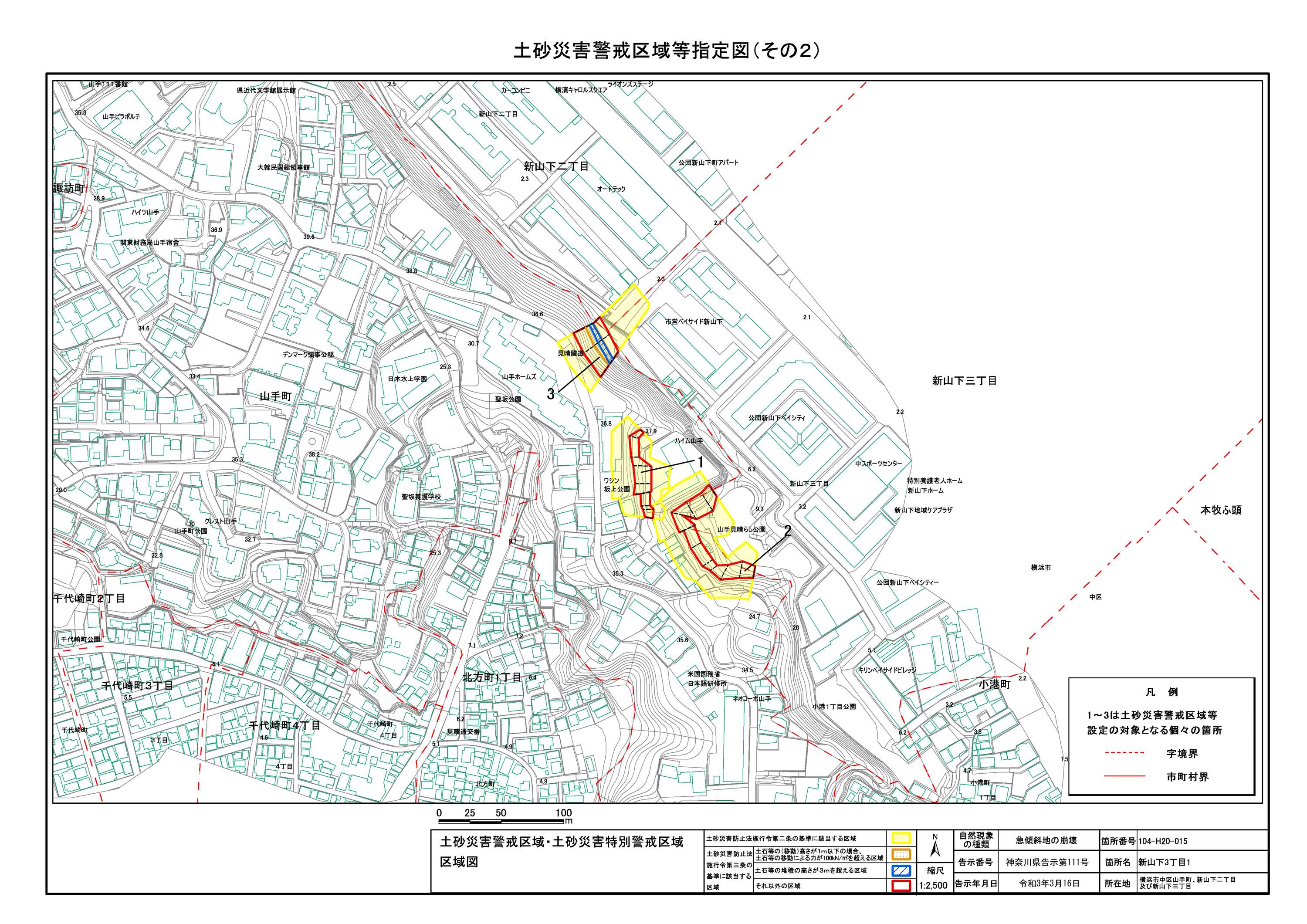 山手町、新山下二丁目及び新山下三丁目 |
