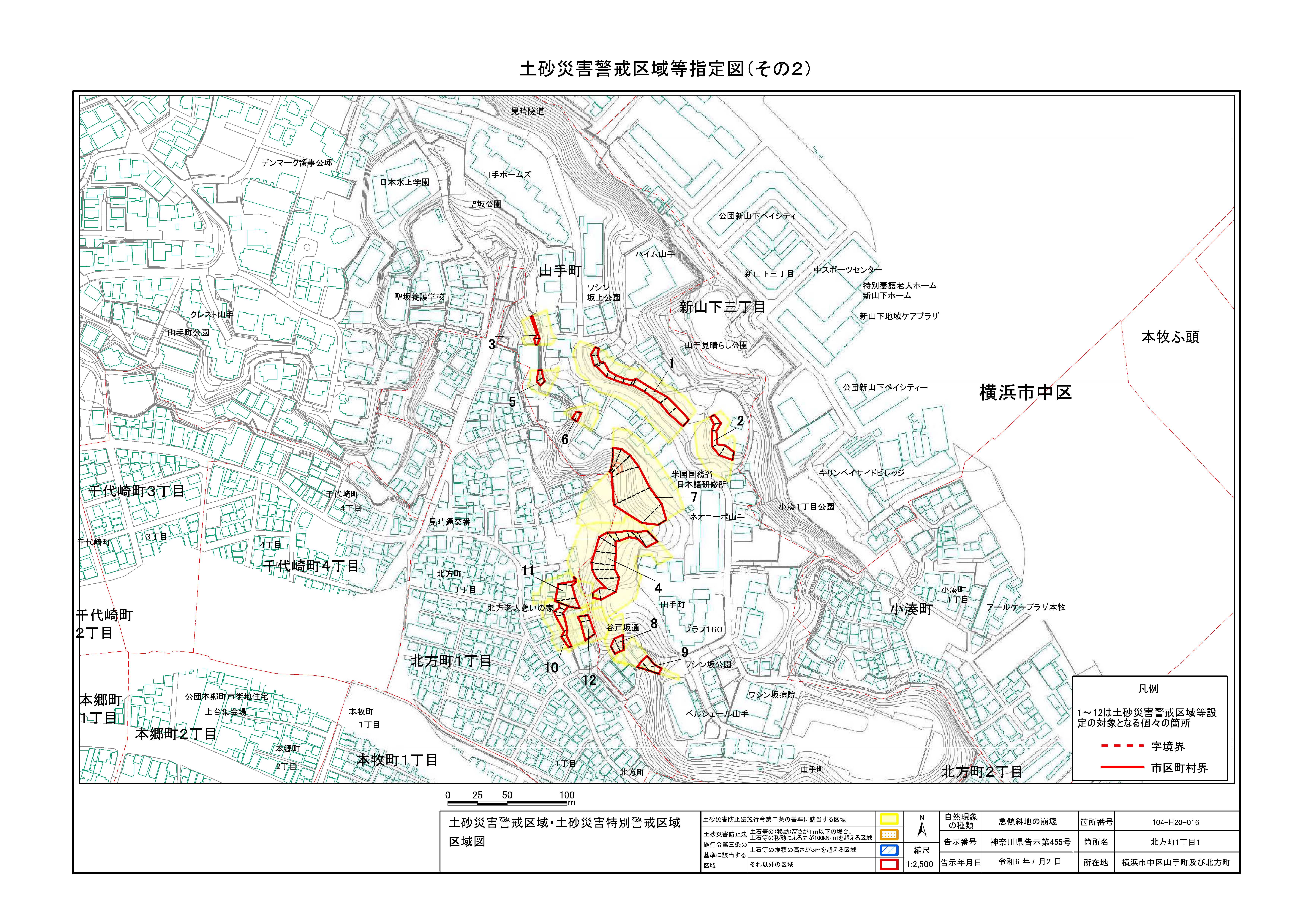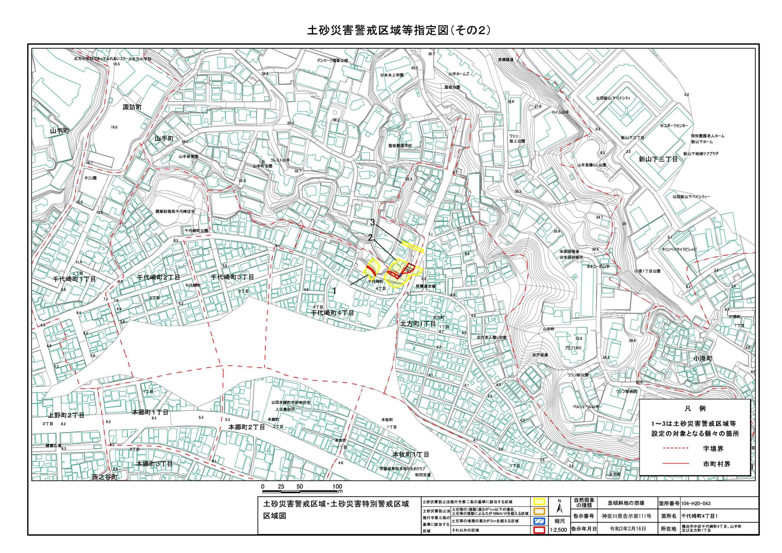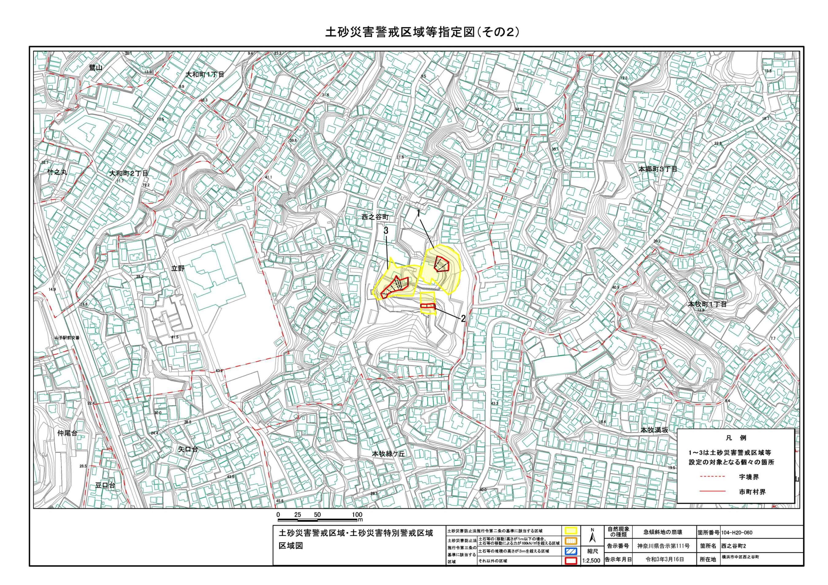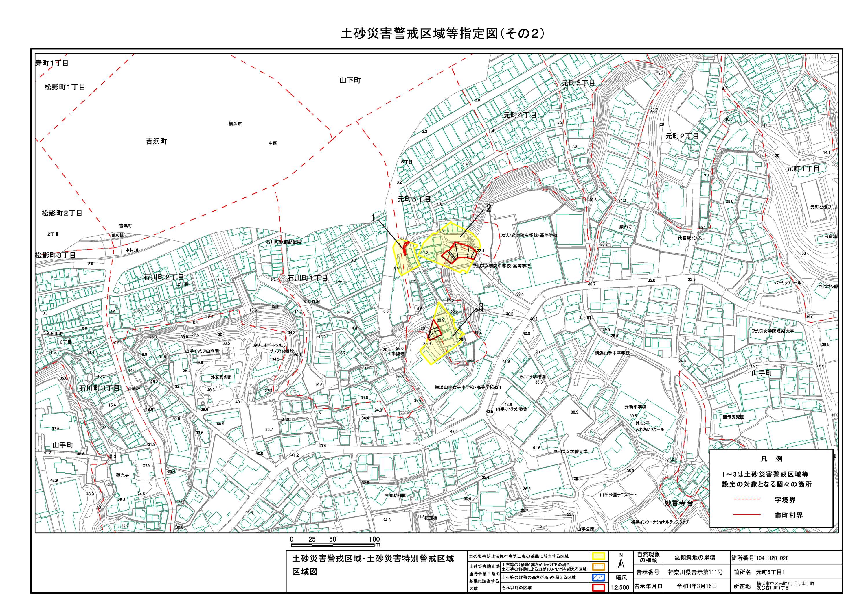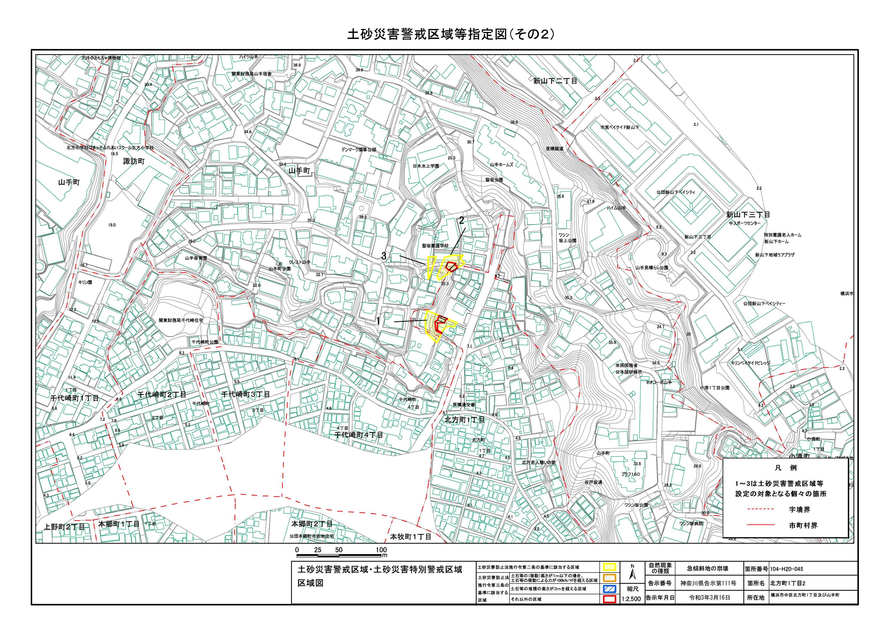 山手町、新山下二丁目及び新山下三丁目 |