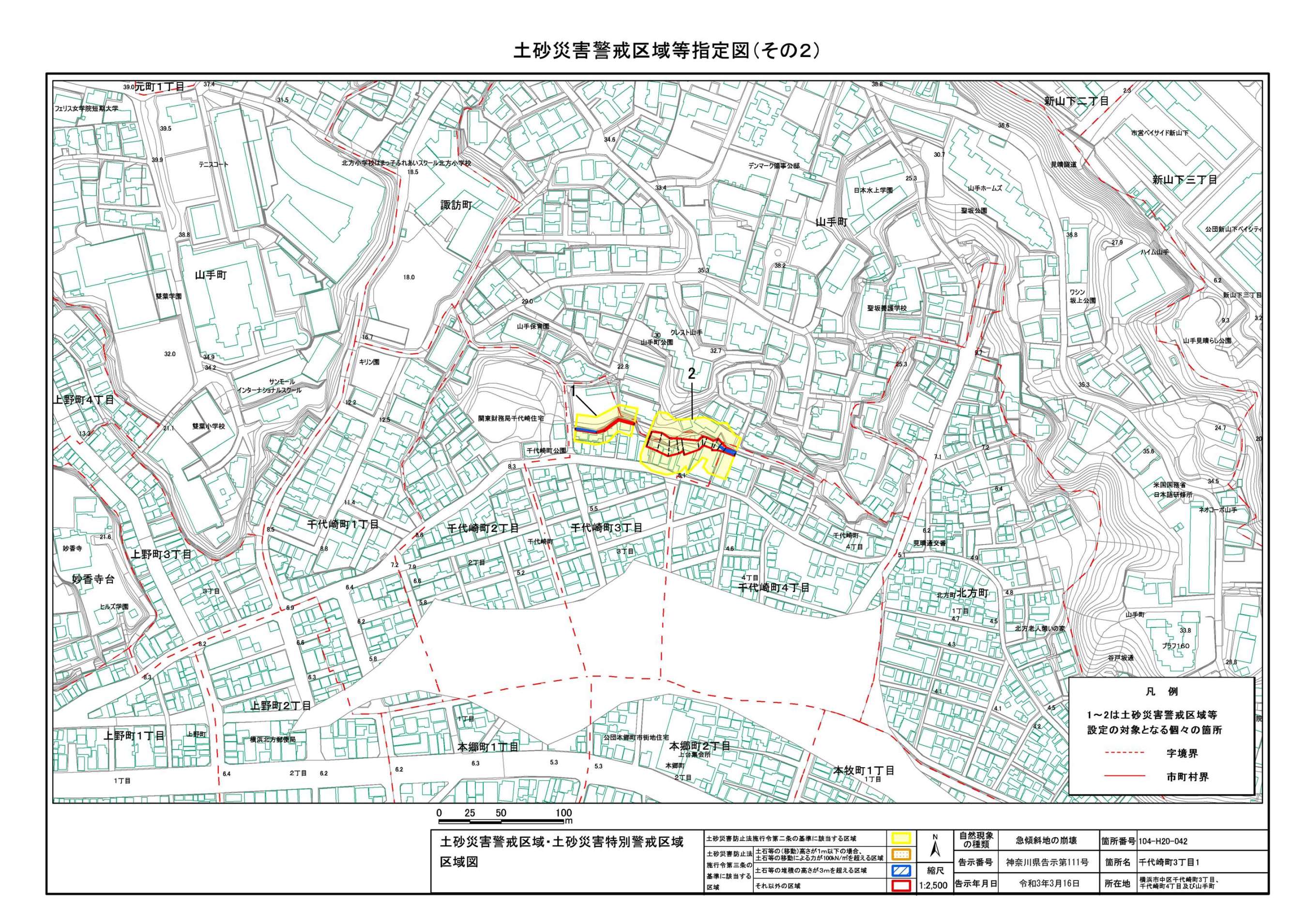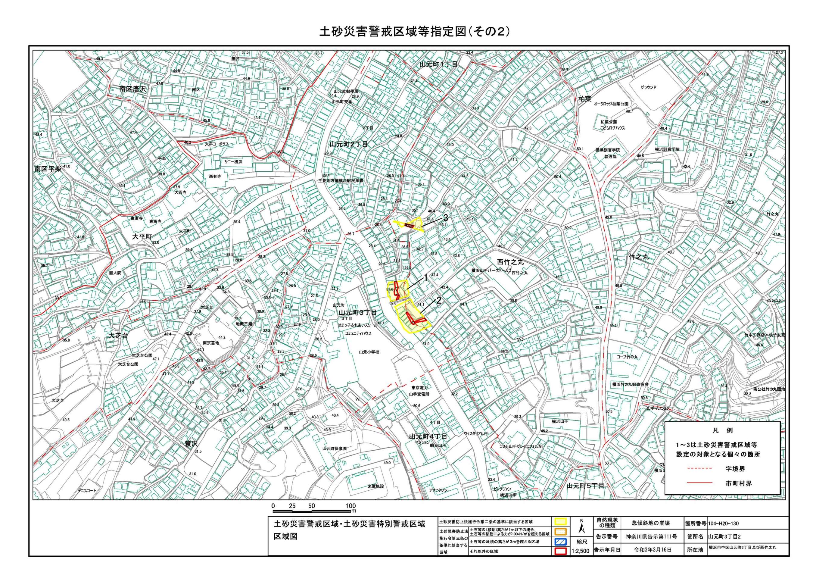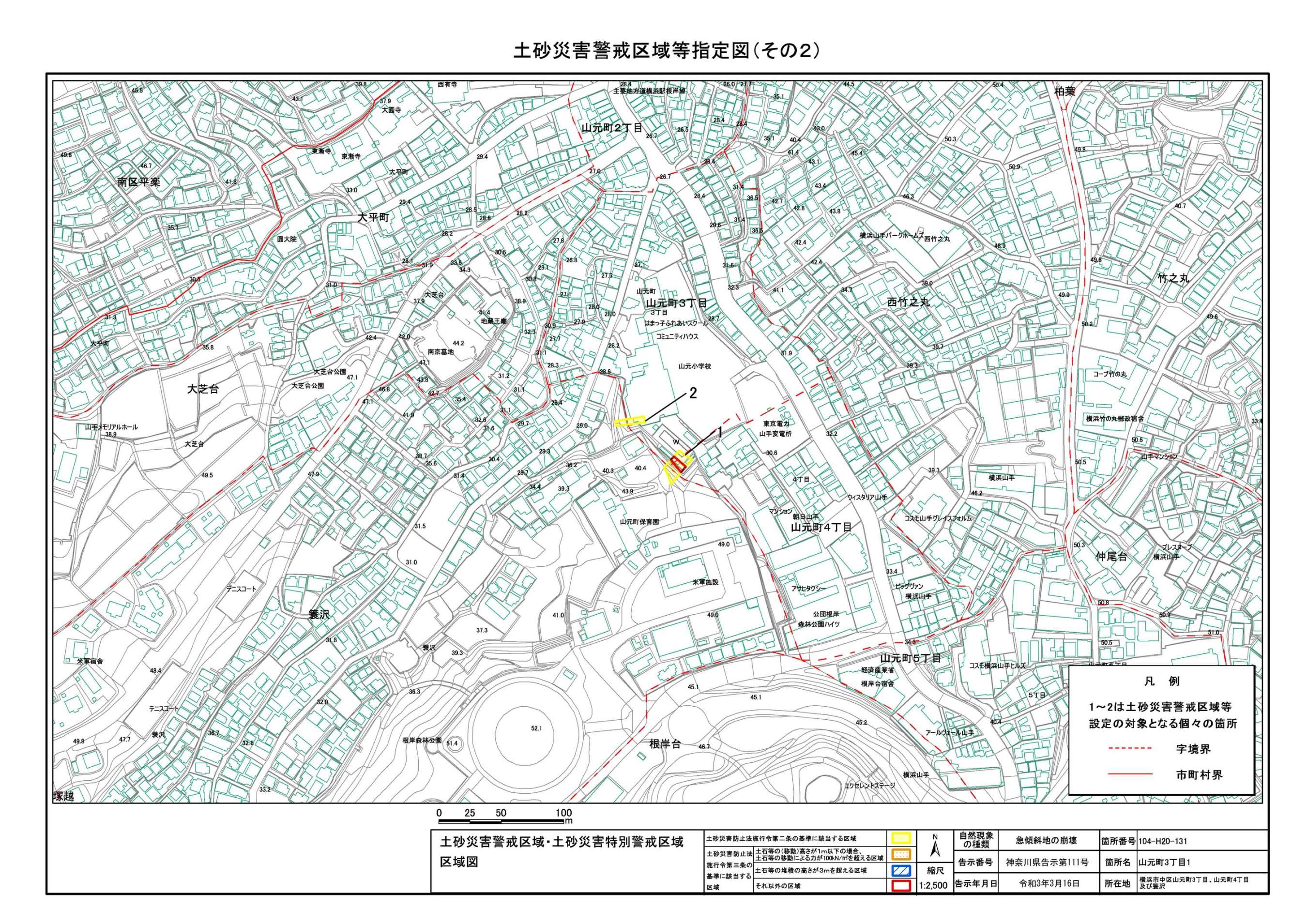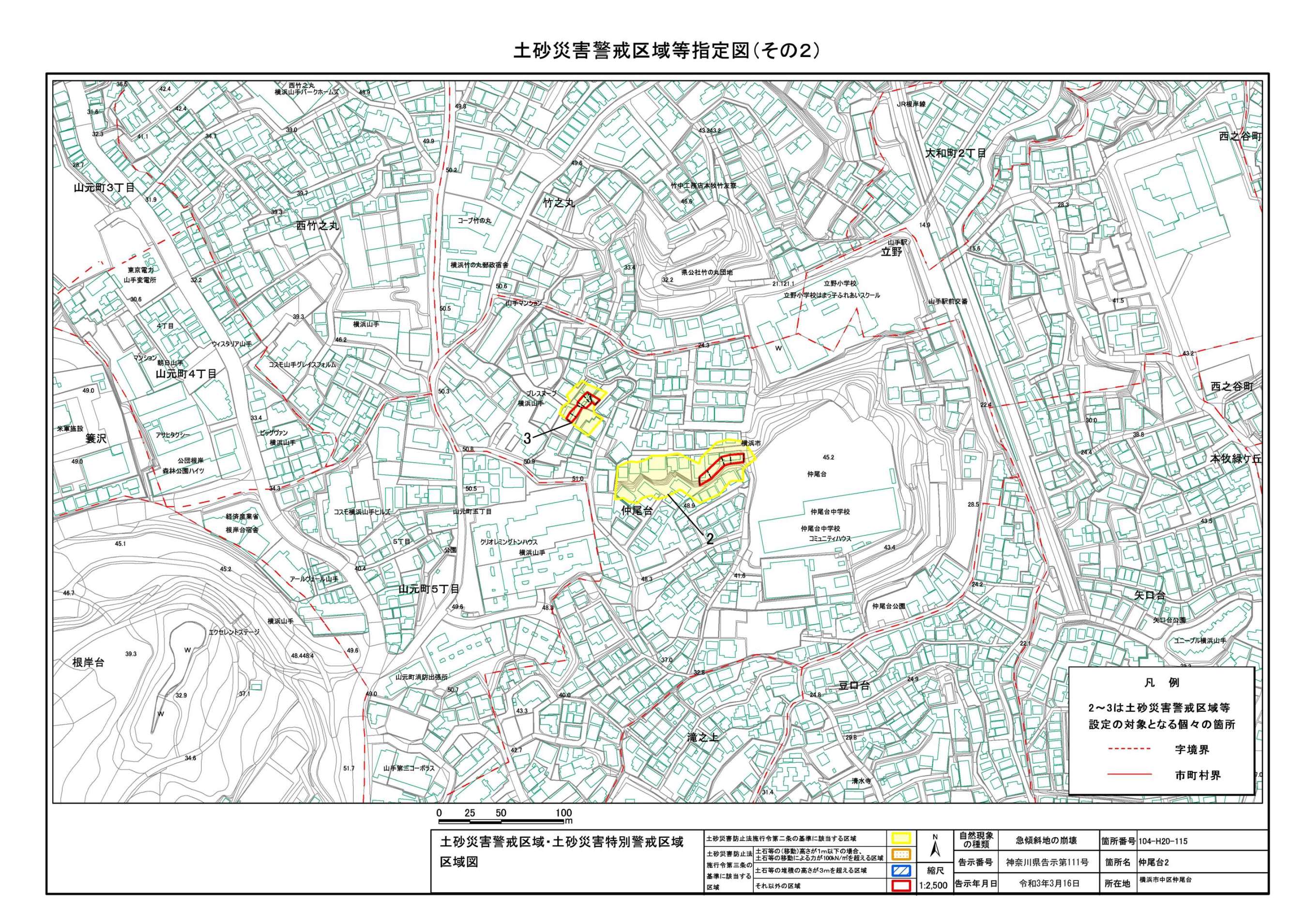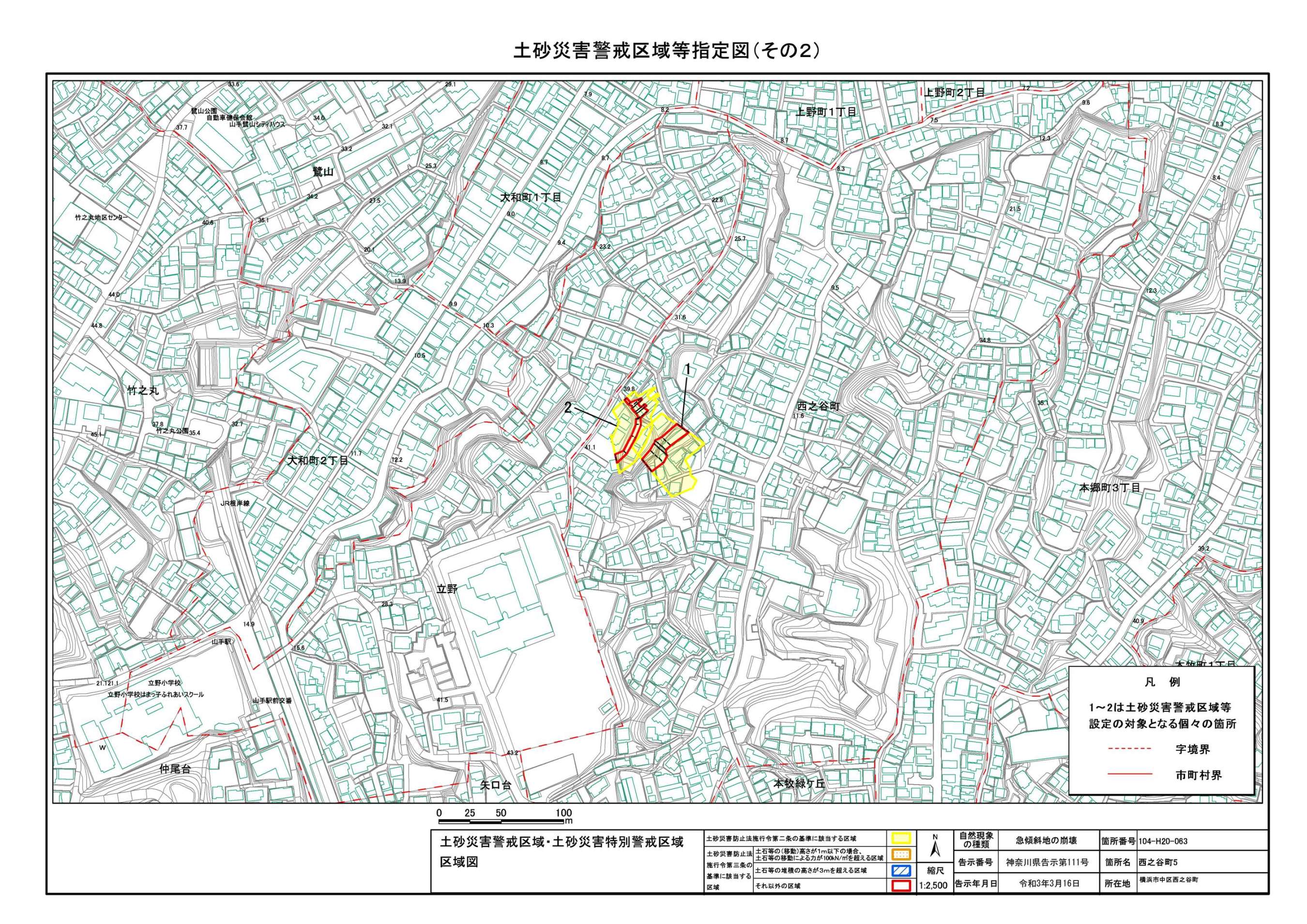 山手町、新山下二丁目及び新山下三丁目 |