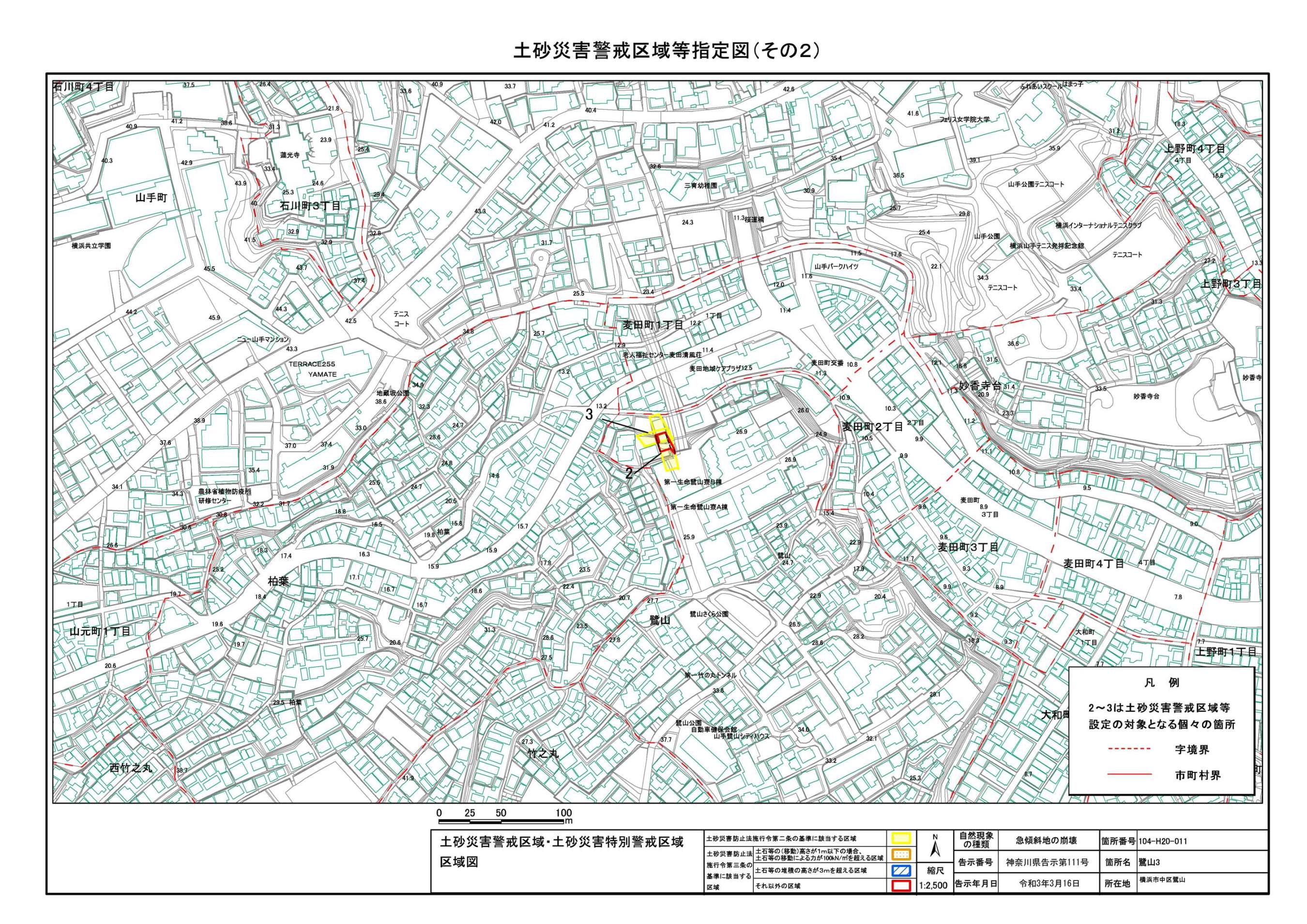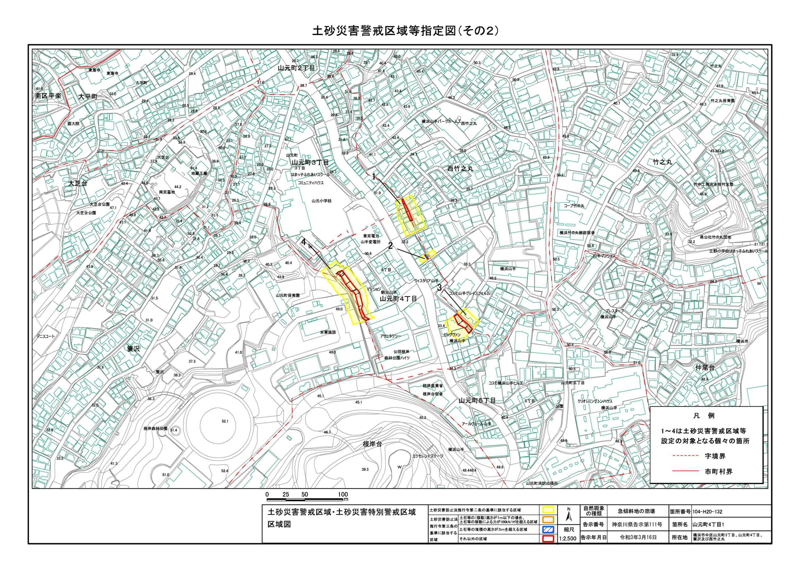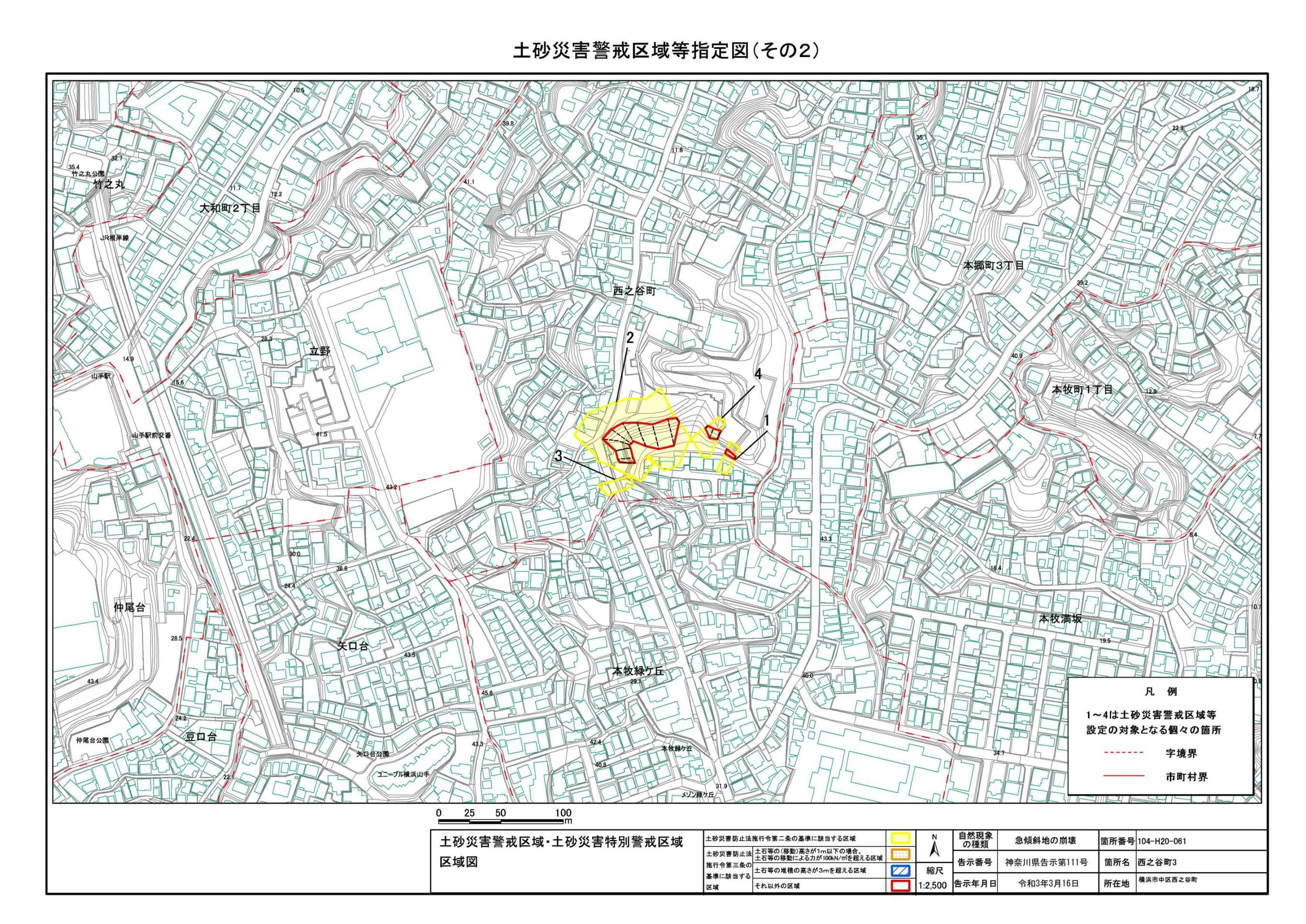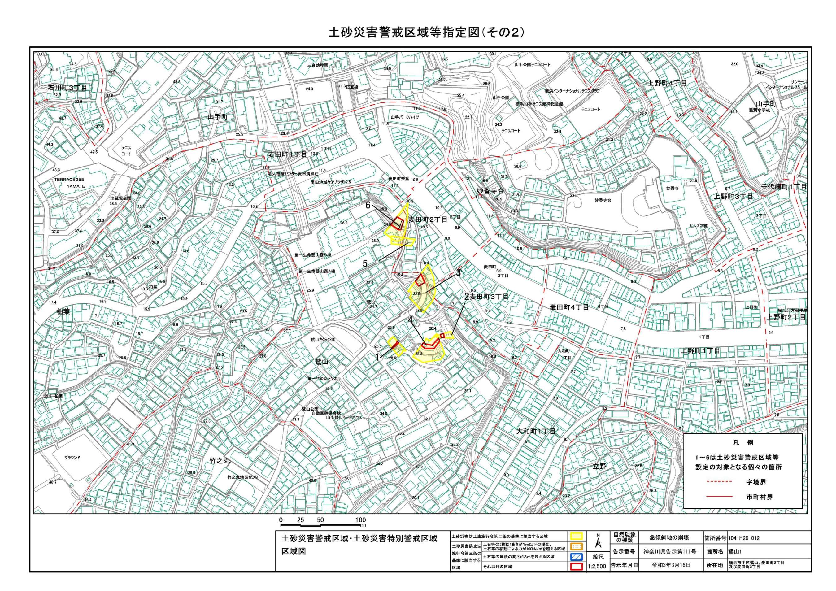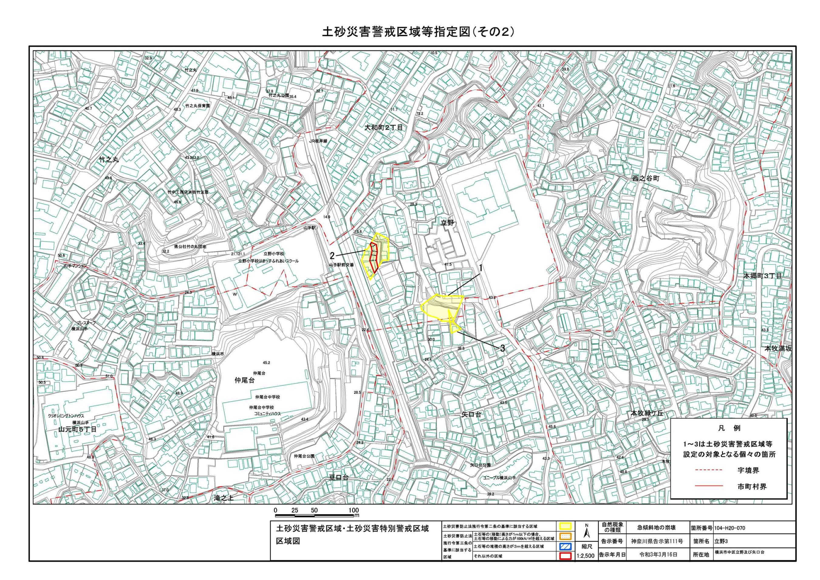 山手町、新山下二丁目及び新山下三丁目 |