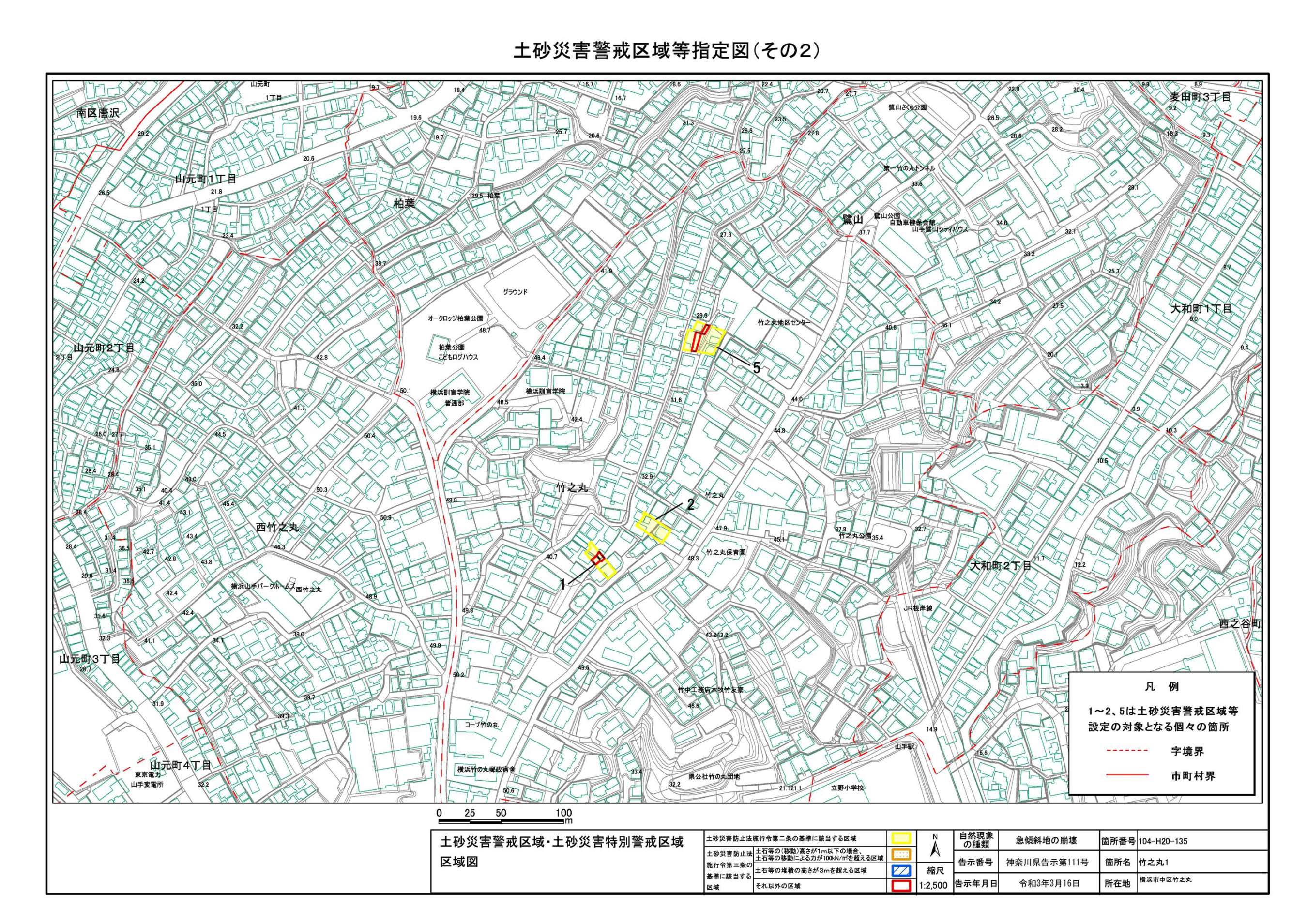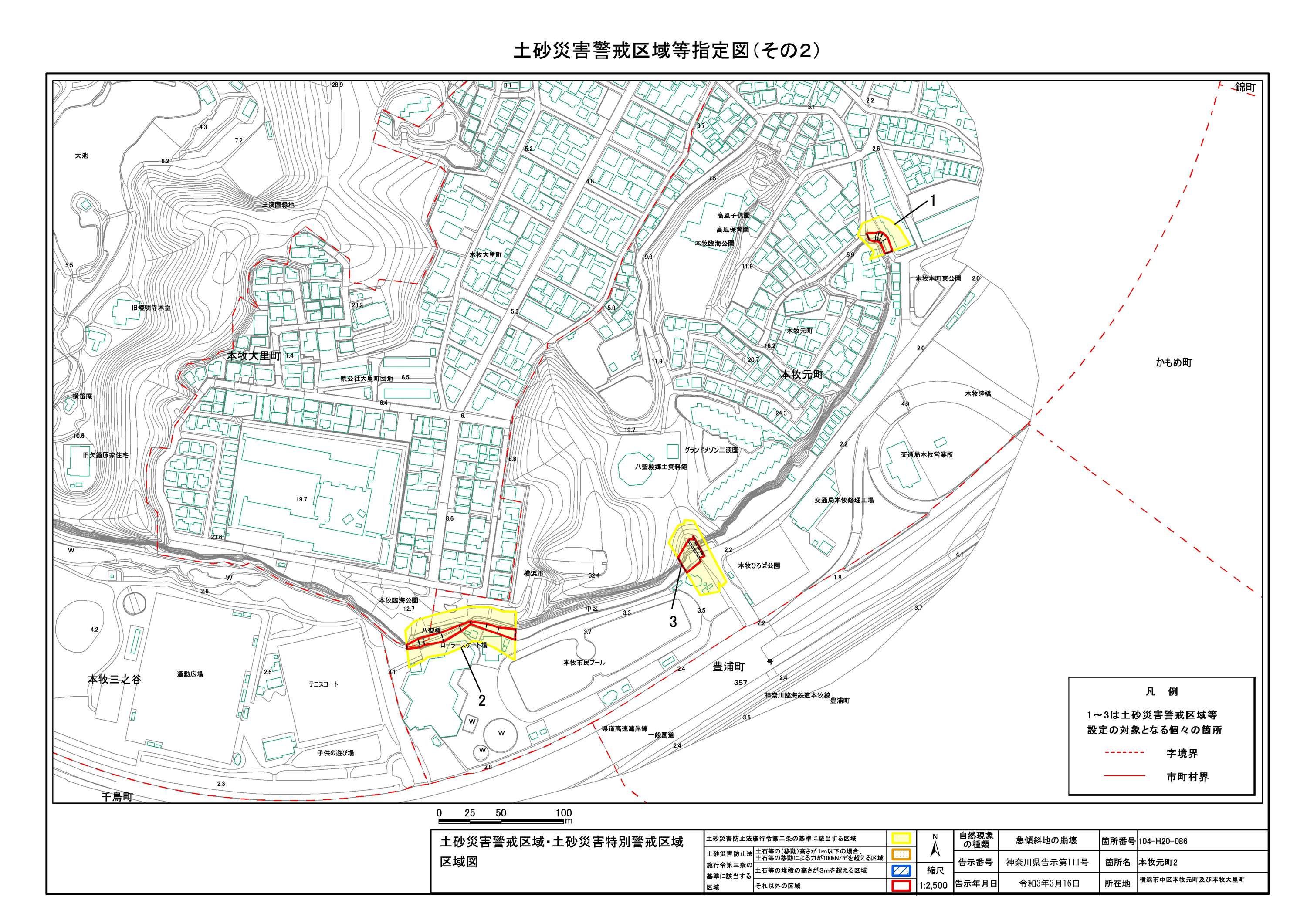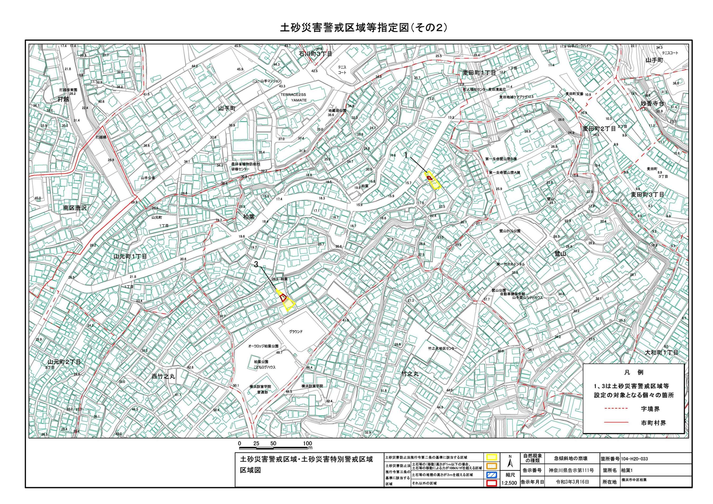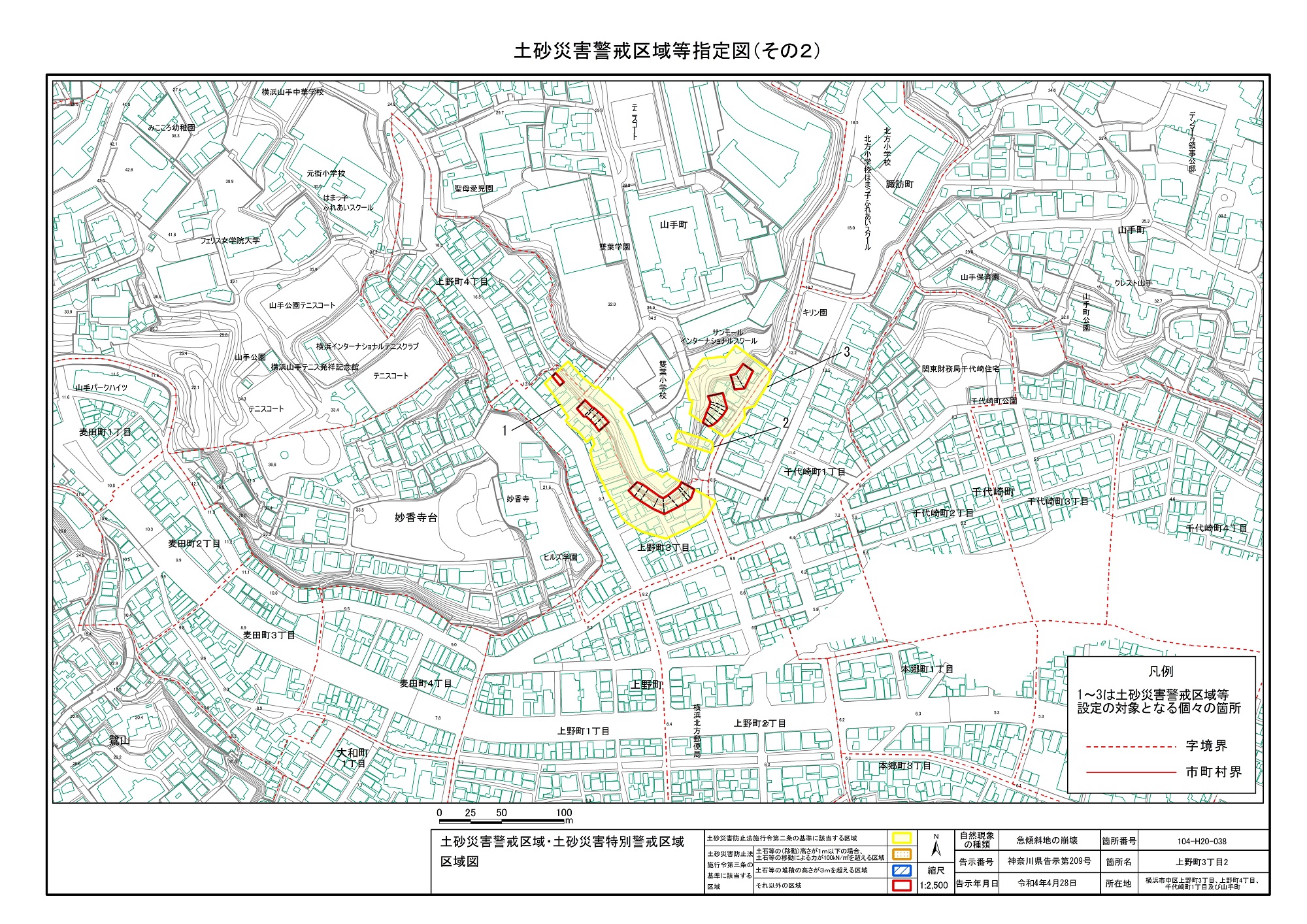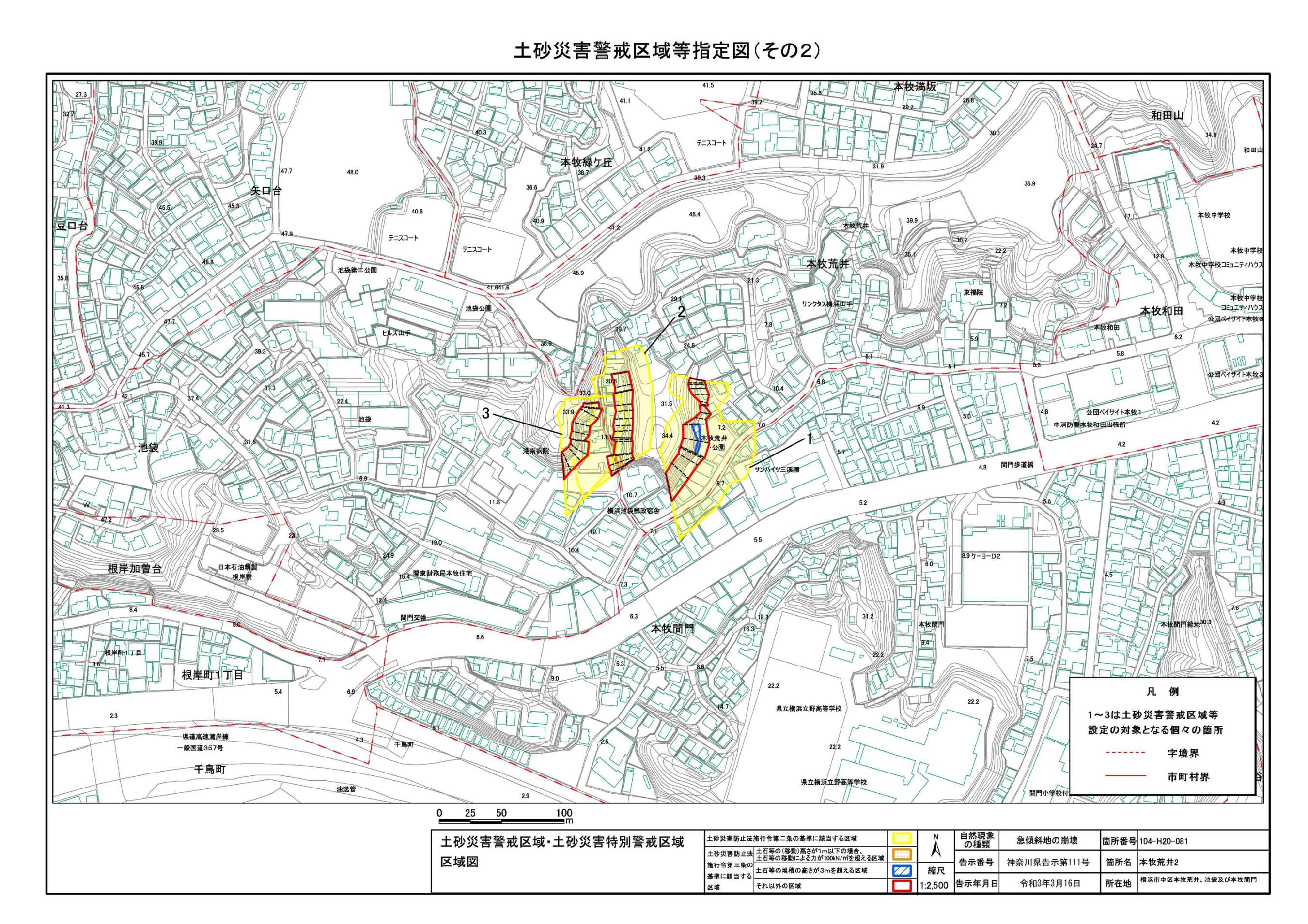 山手町、新山下二丁目及び新山下三丁目 |