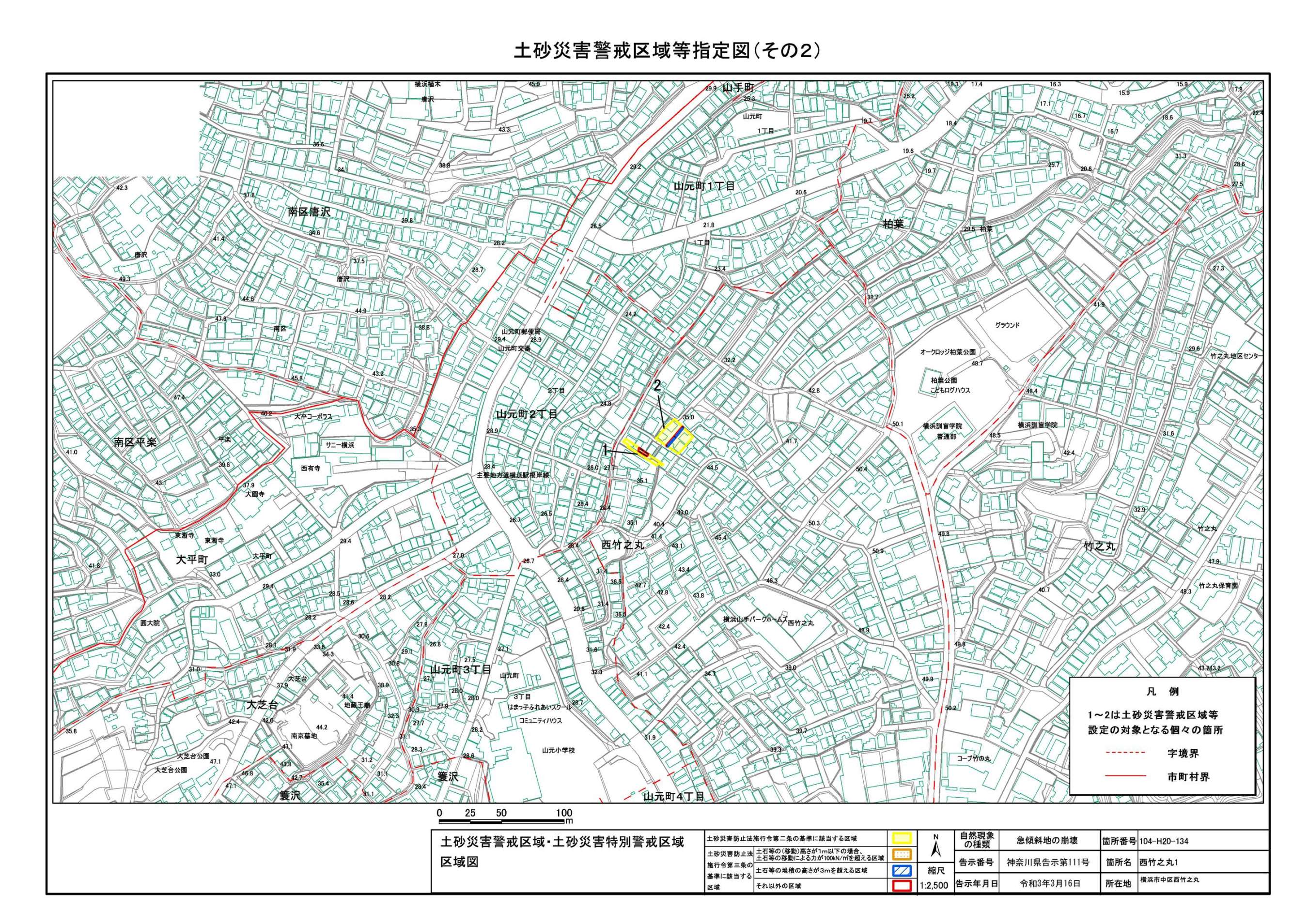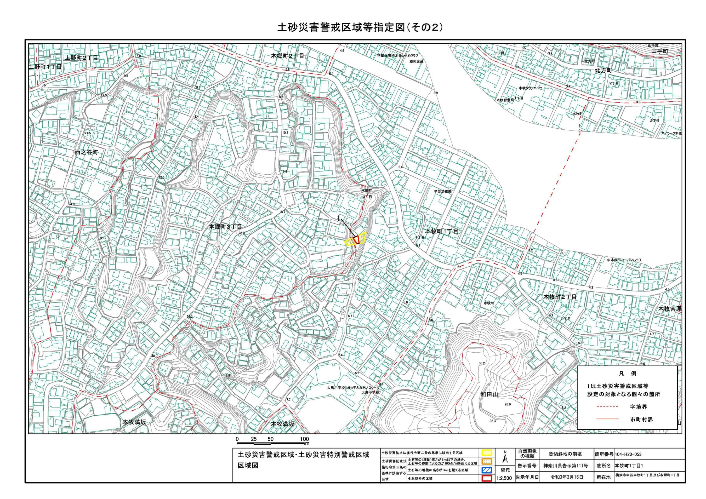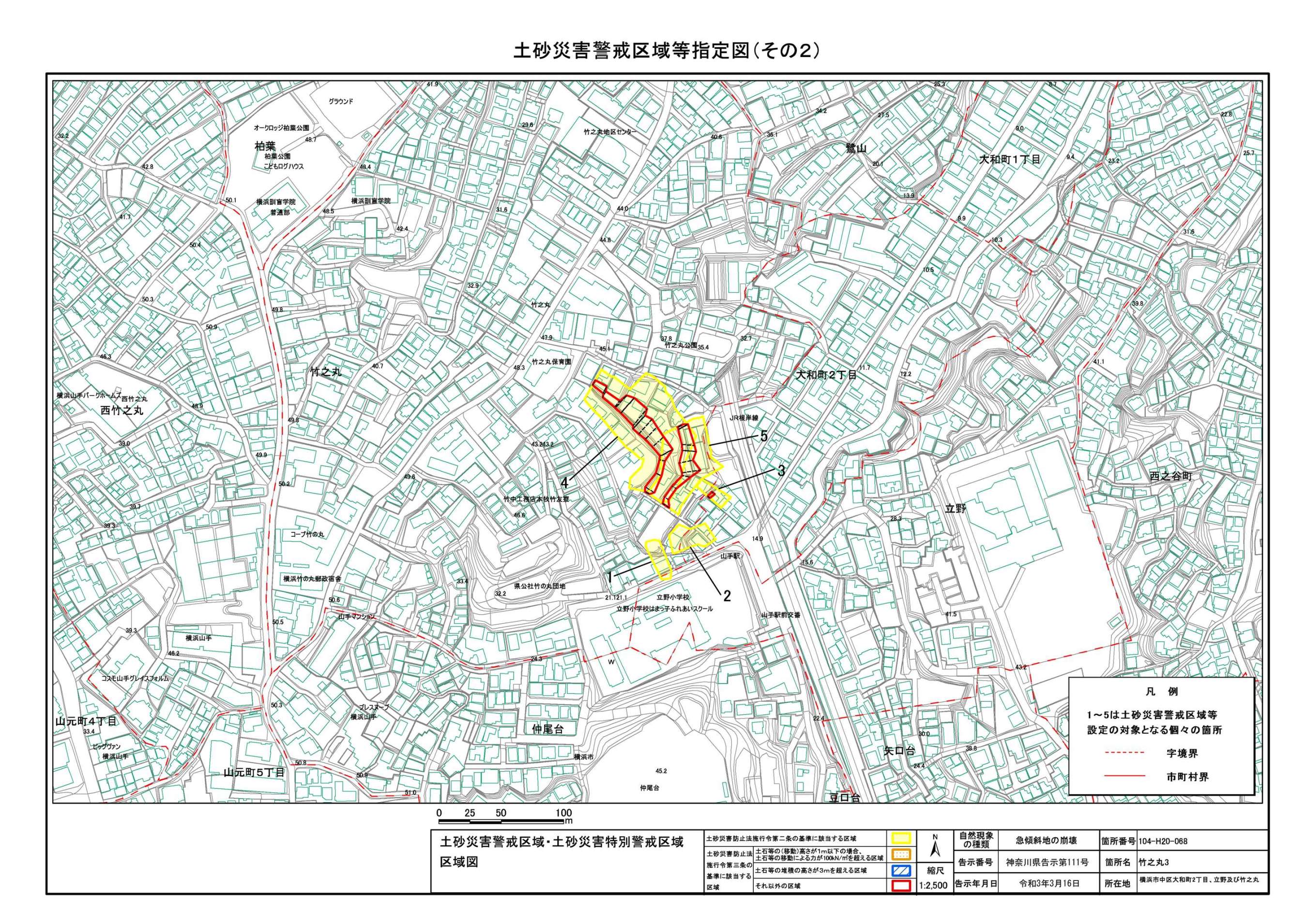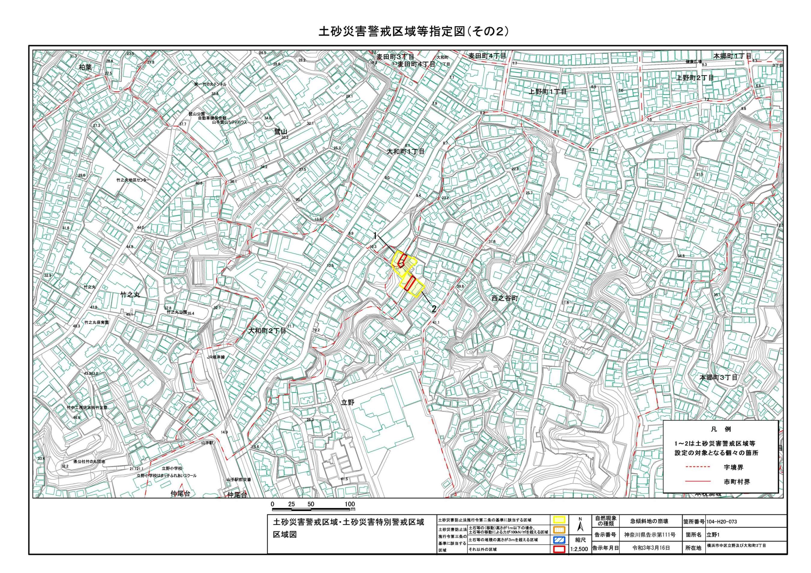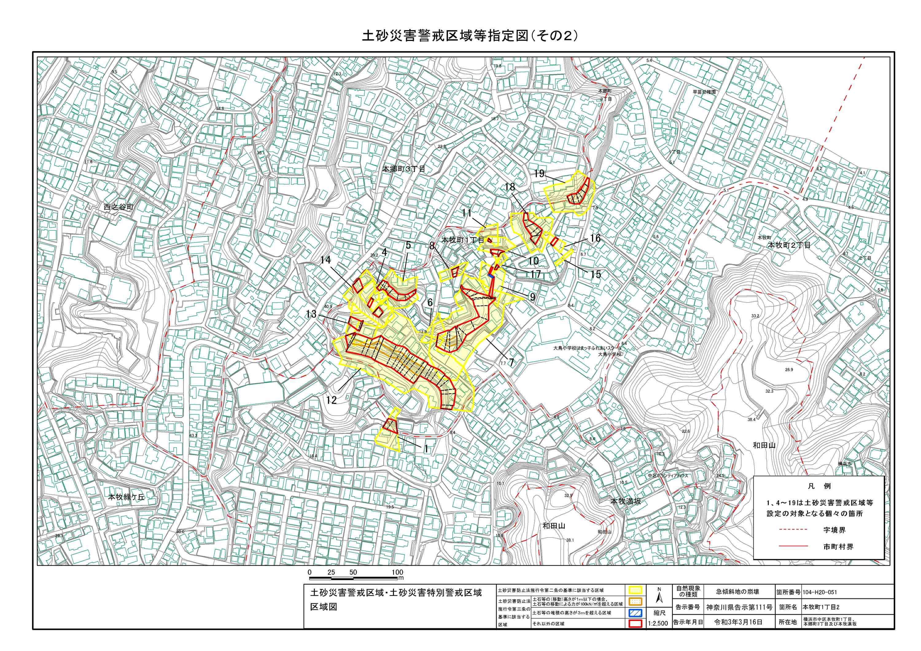 山手町、新山下二丁目及び新山下三丁目 |