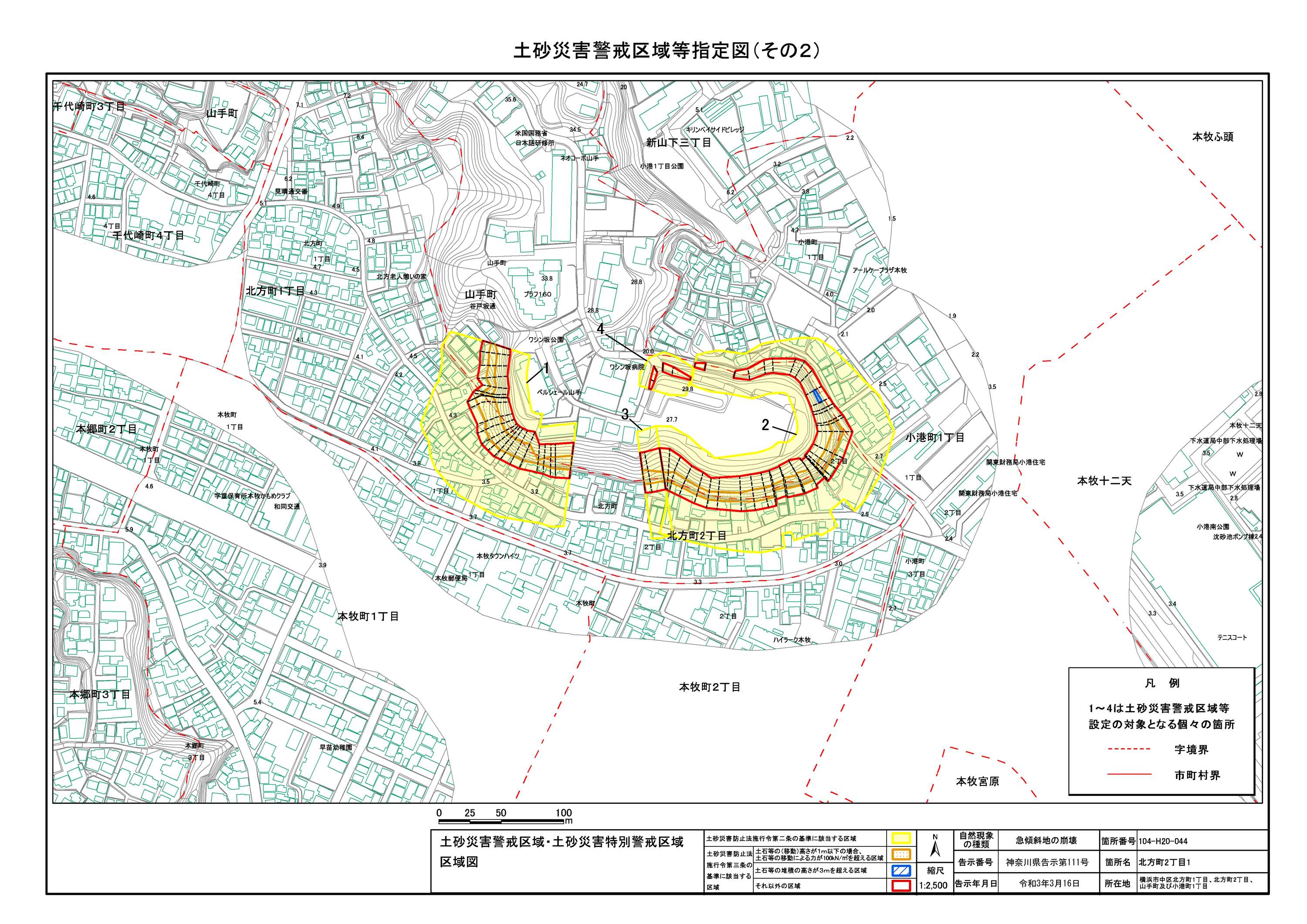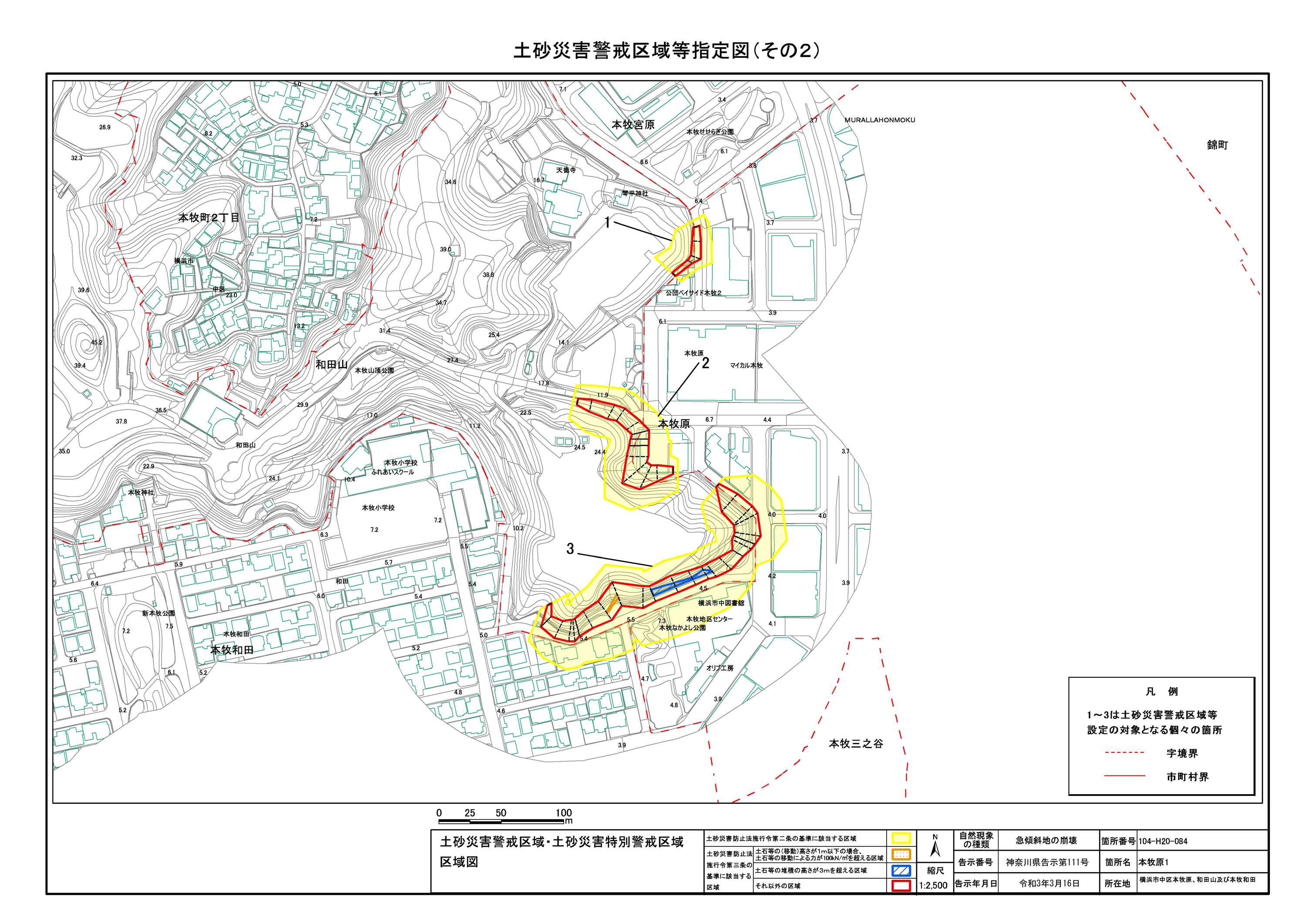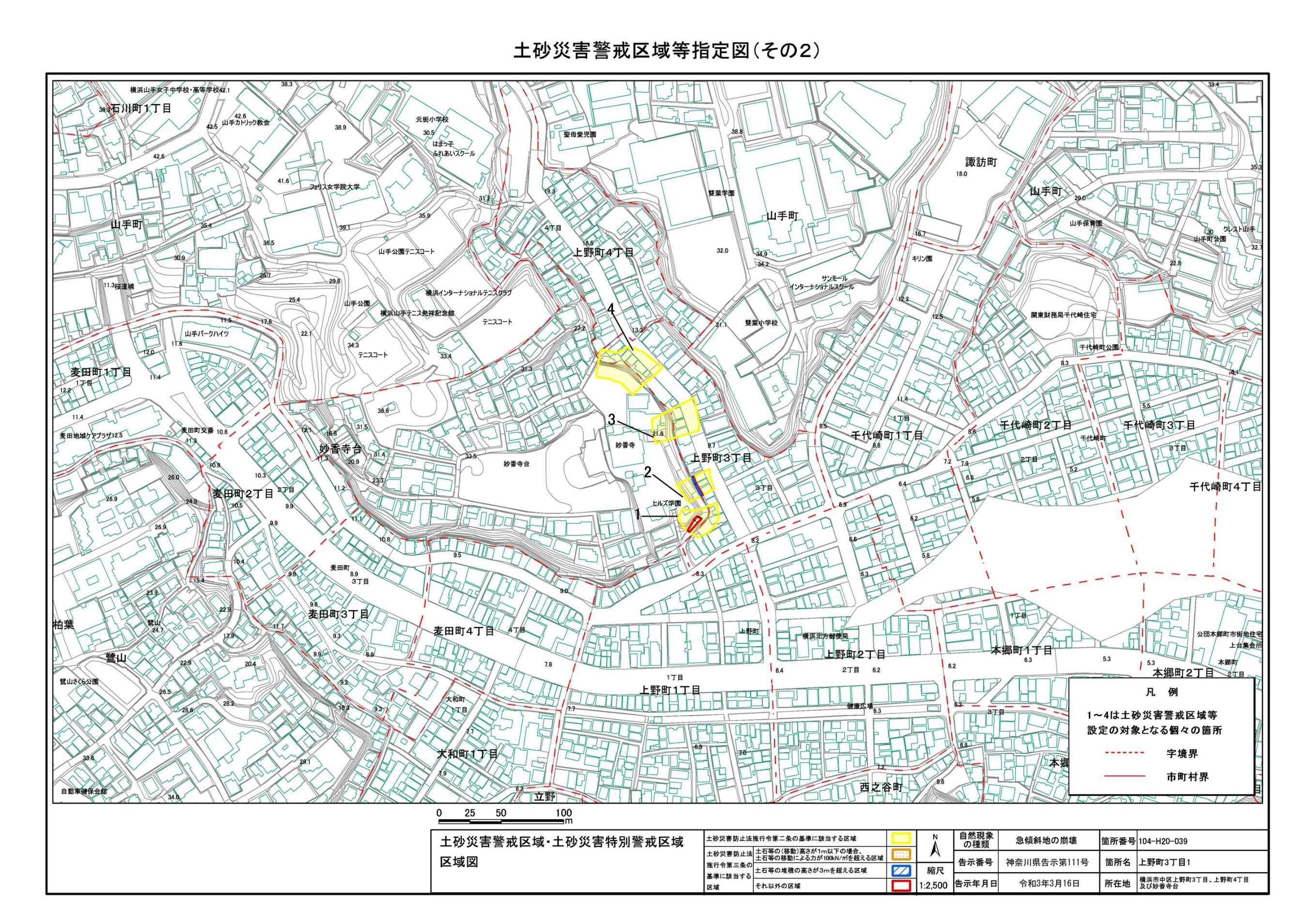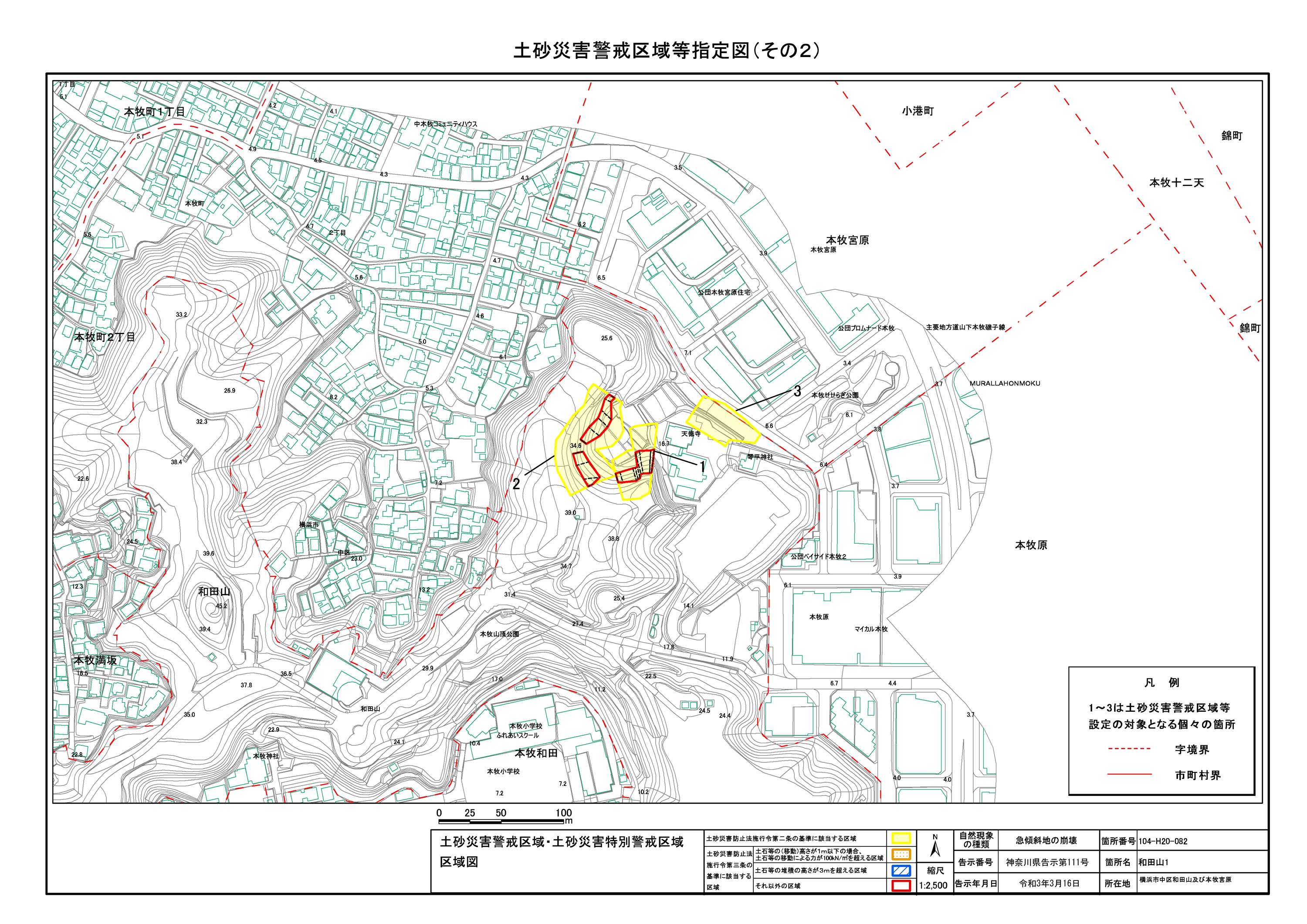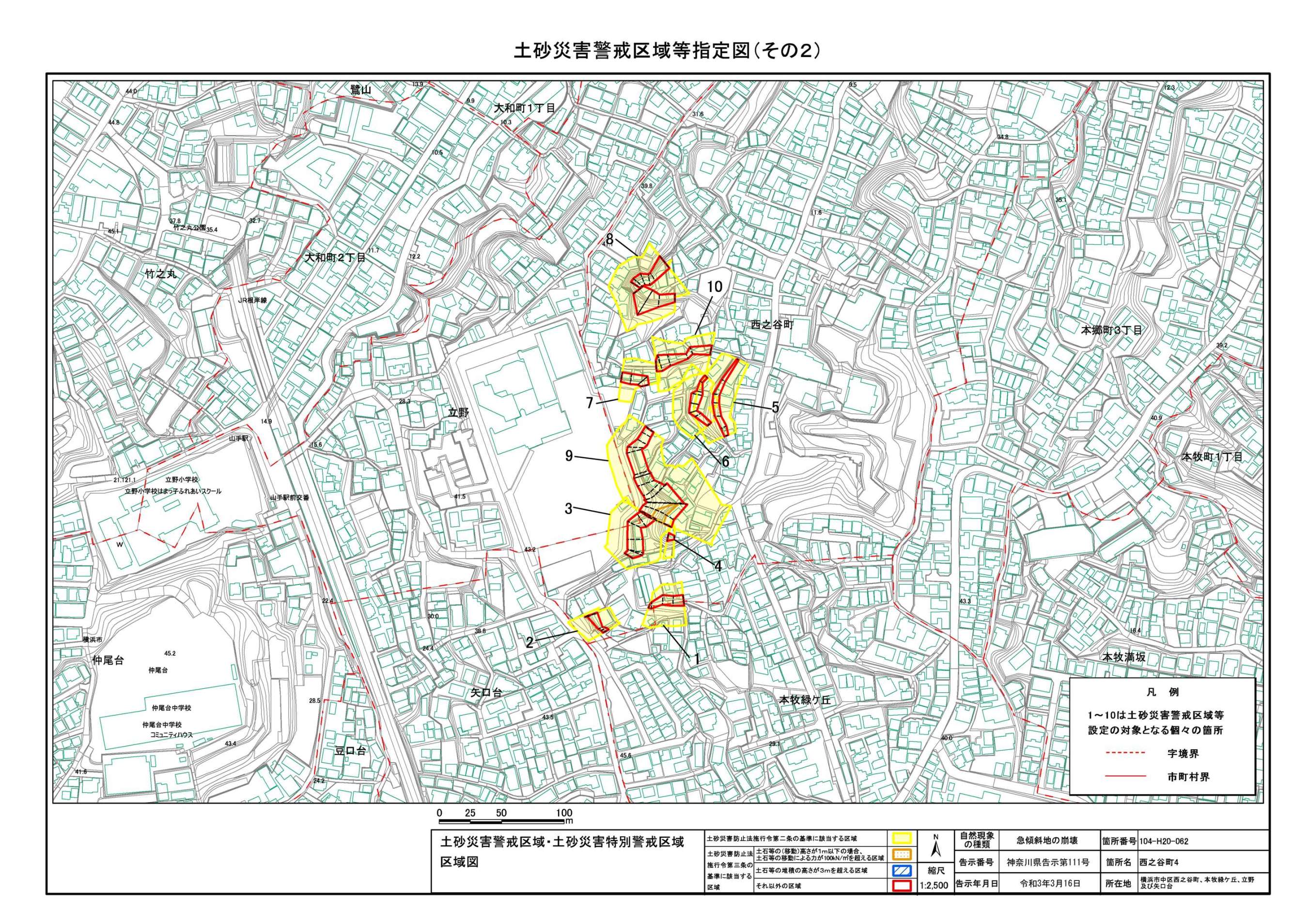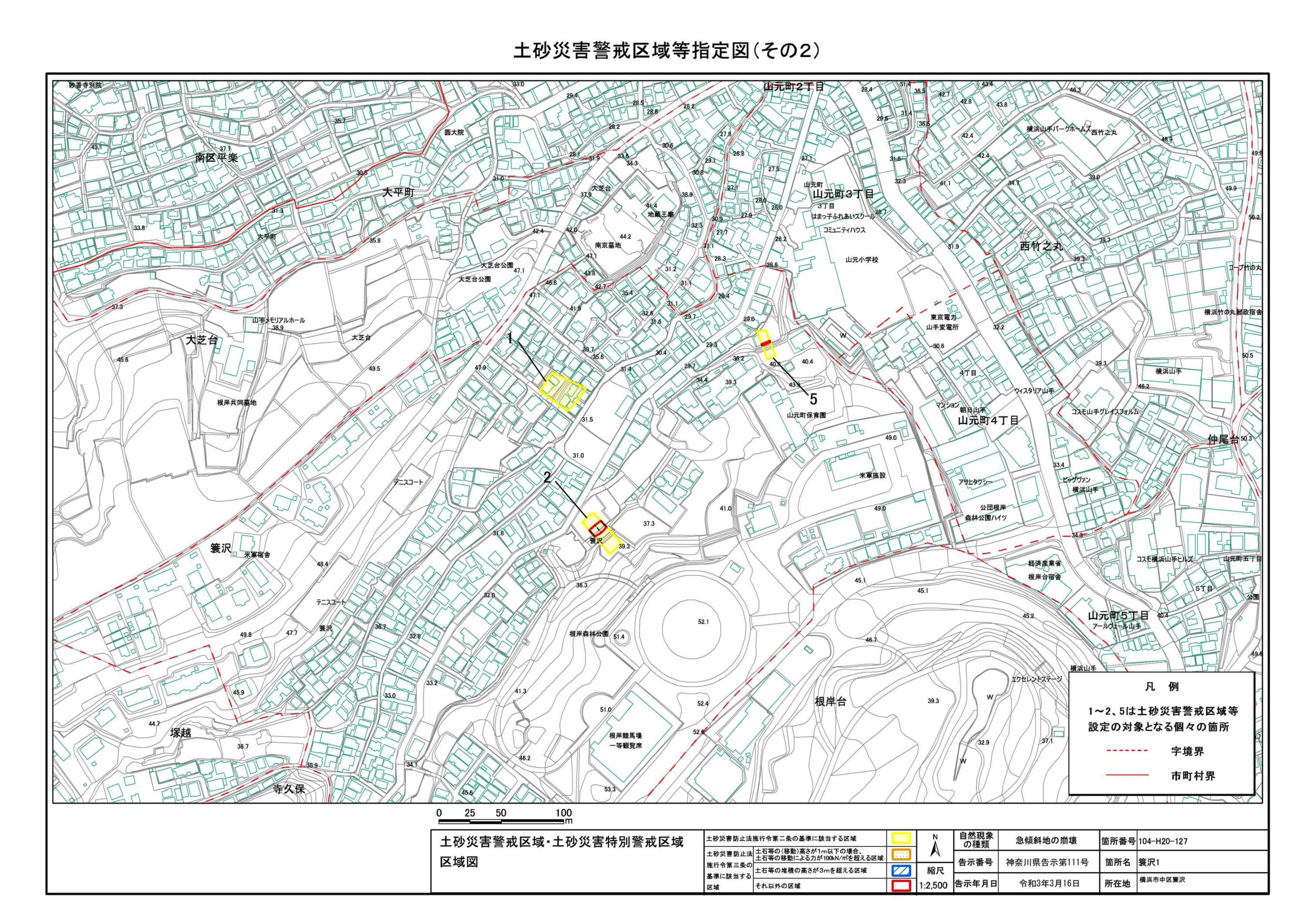 山手町、新山下二丁目及び新山下三丁目 |
