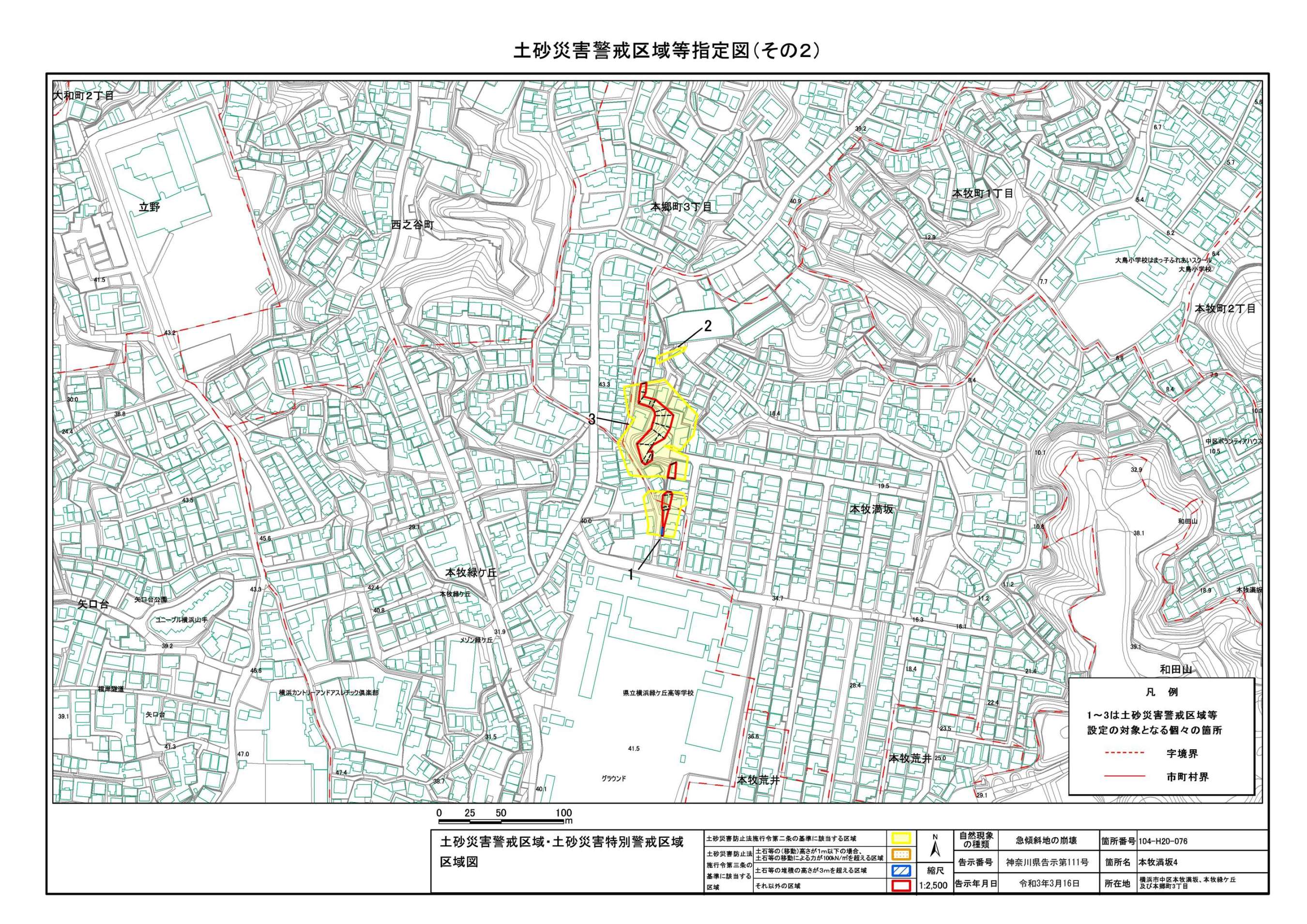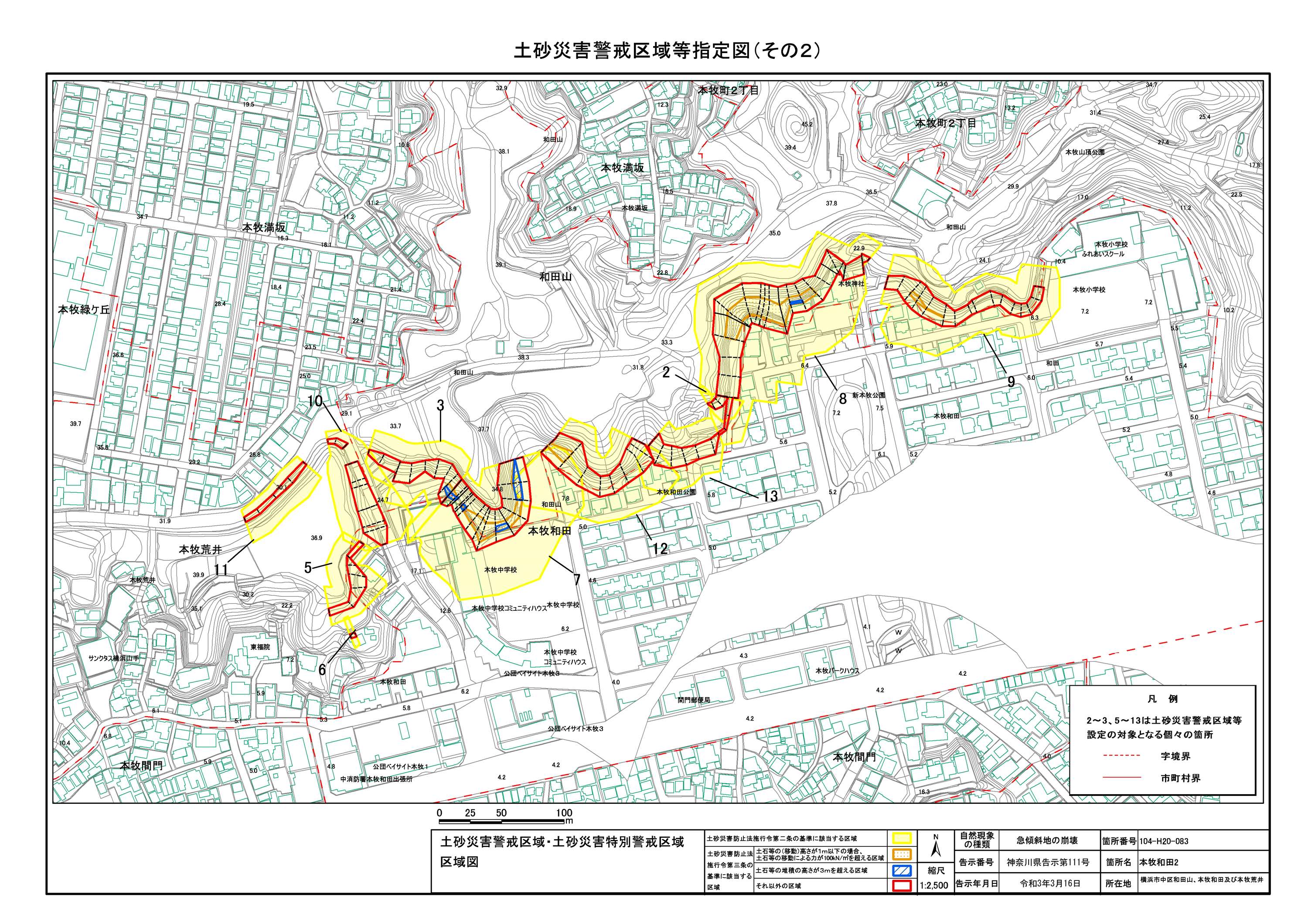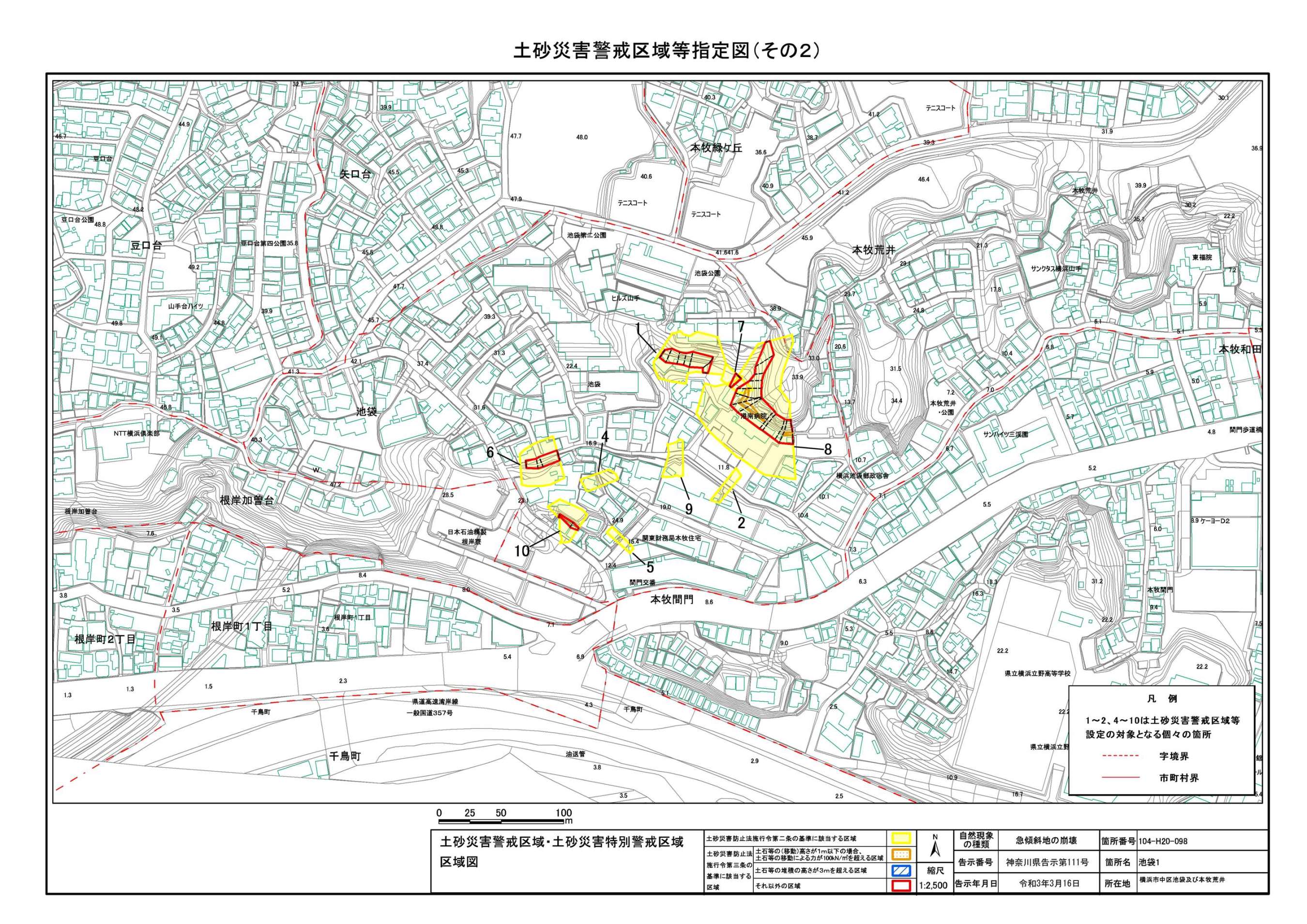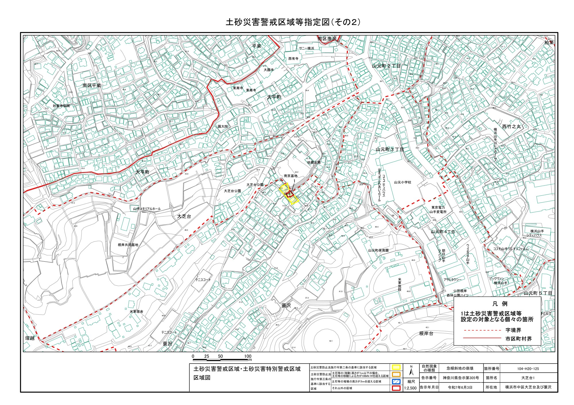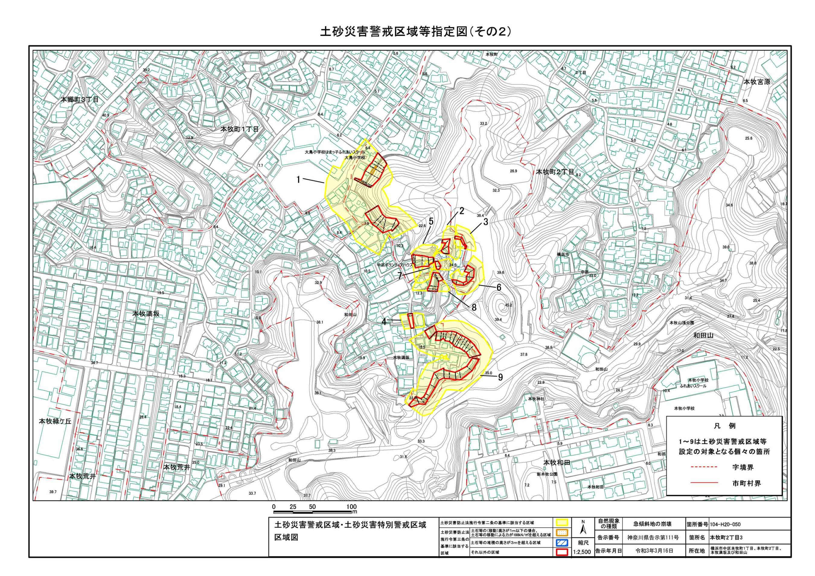 山手町、新山下二丁目及び新山下三丁目 |