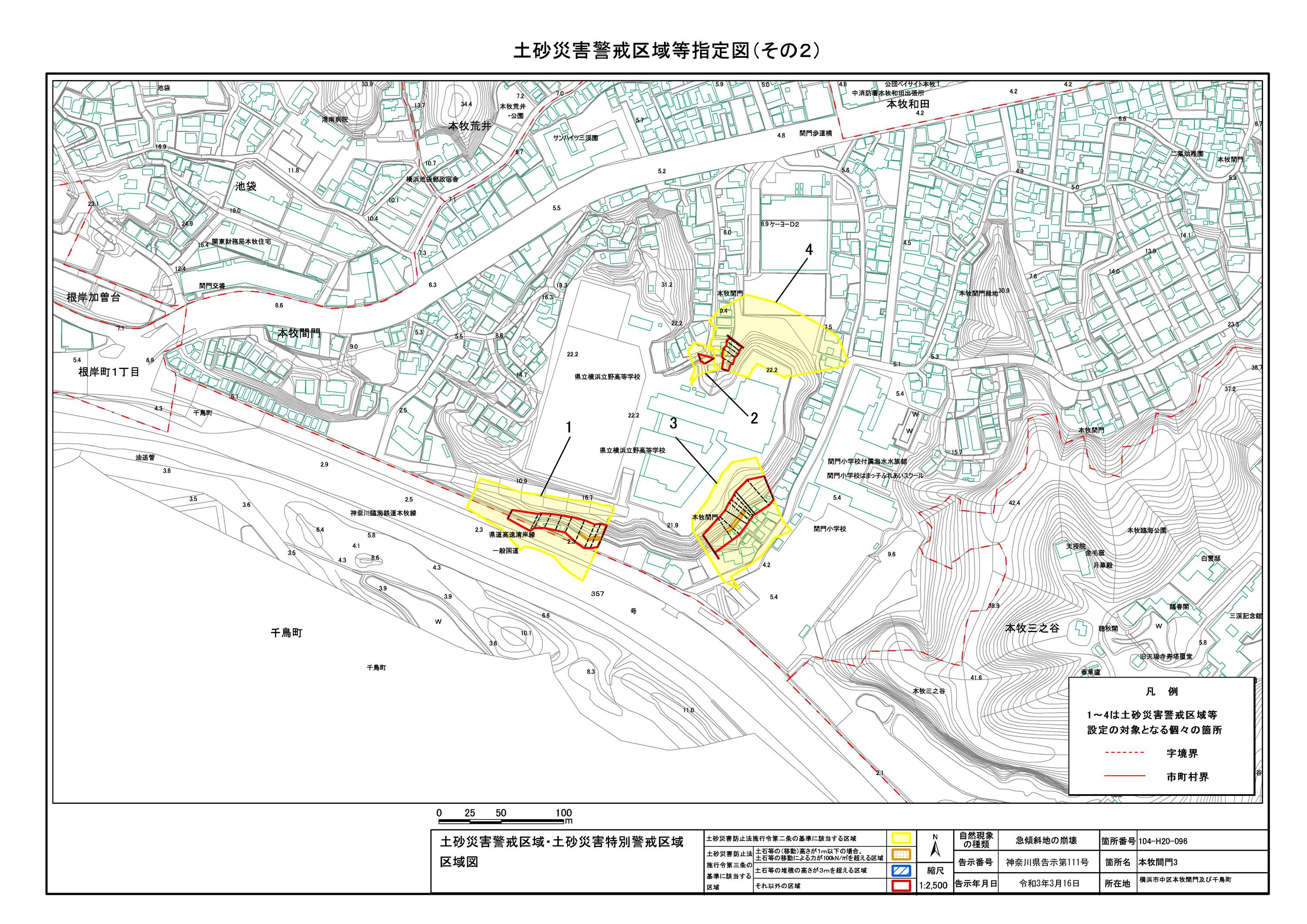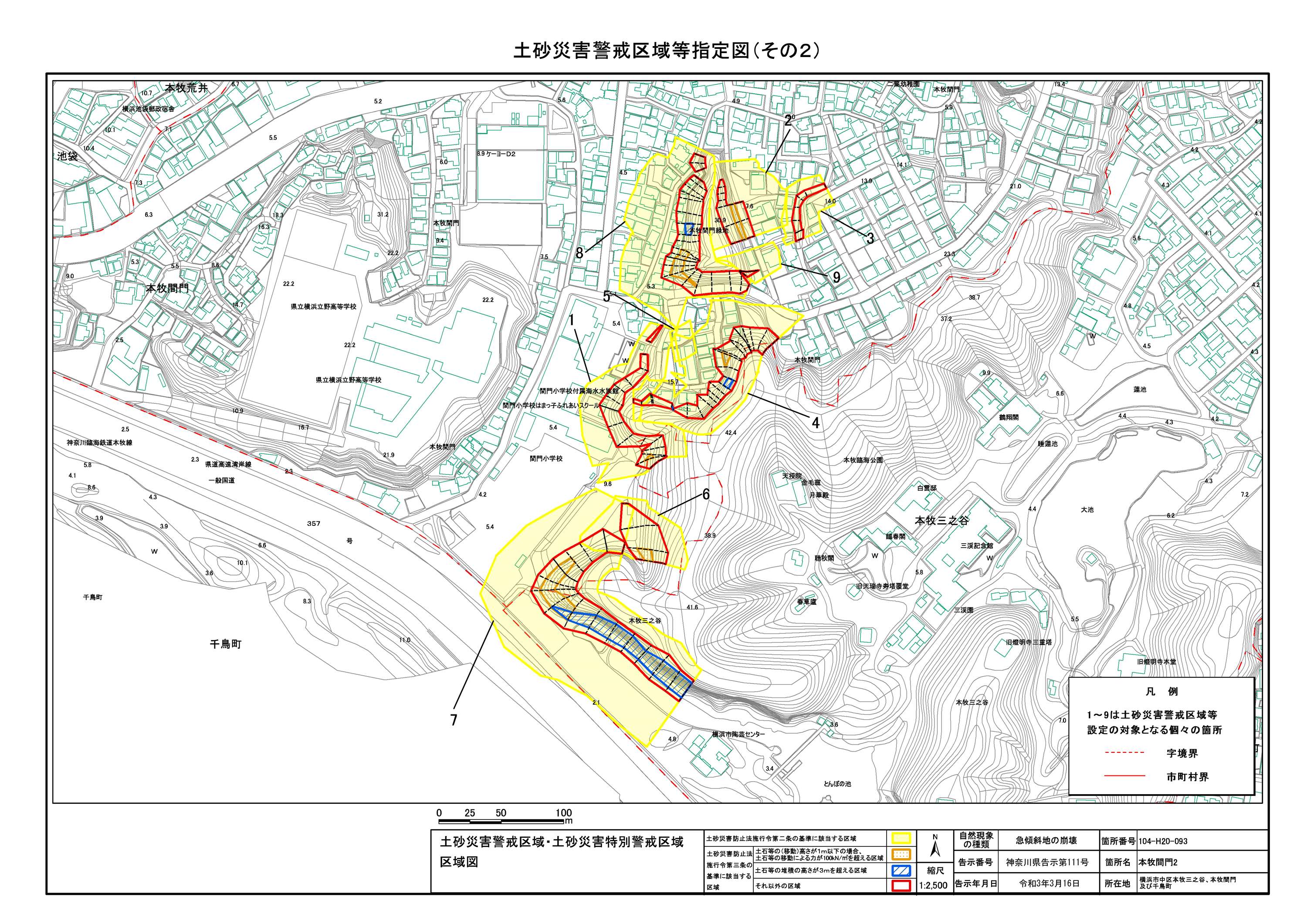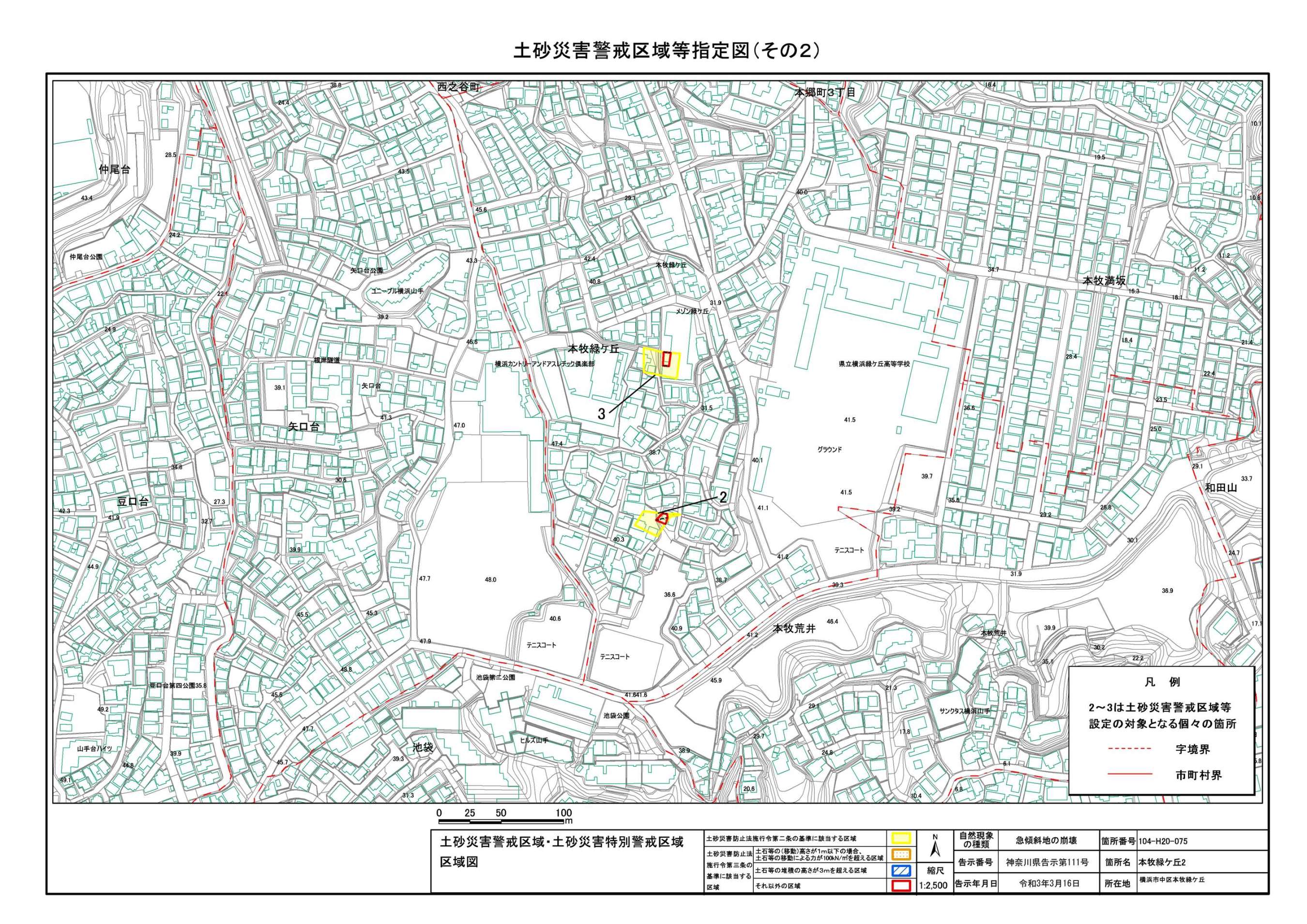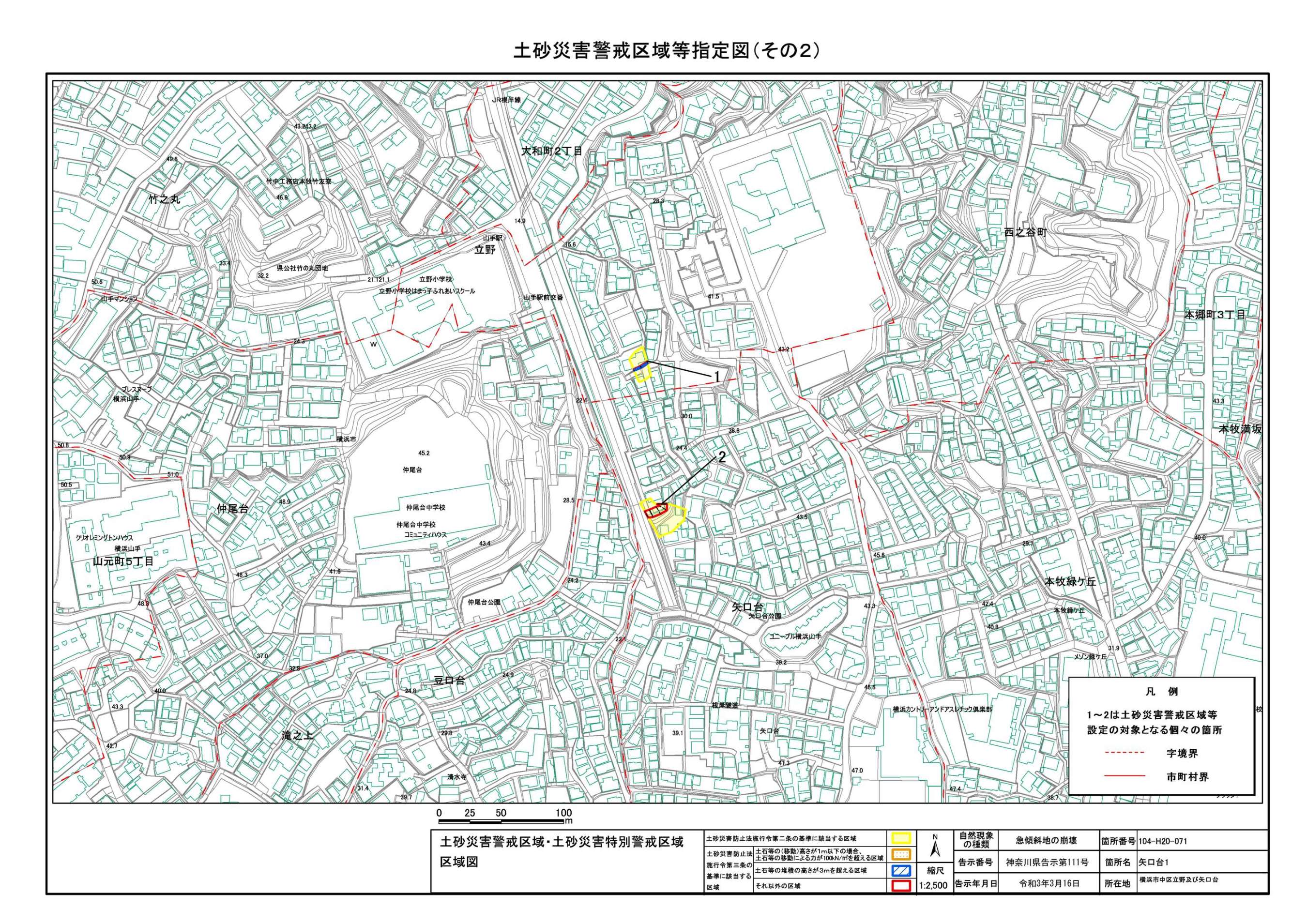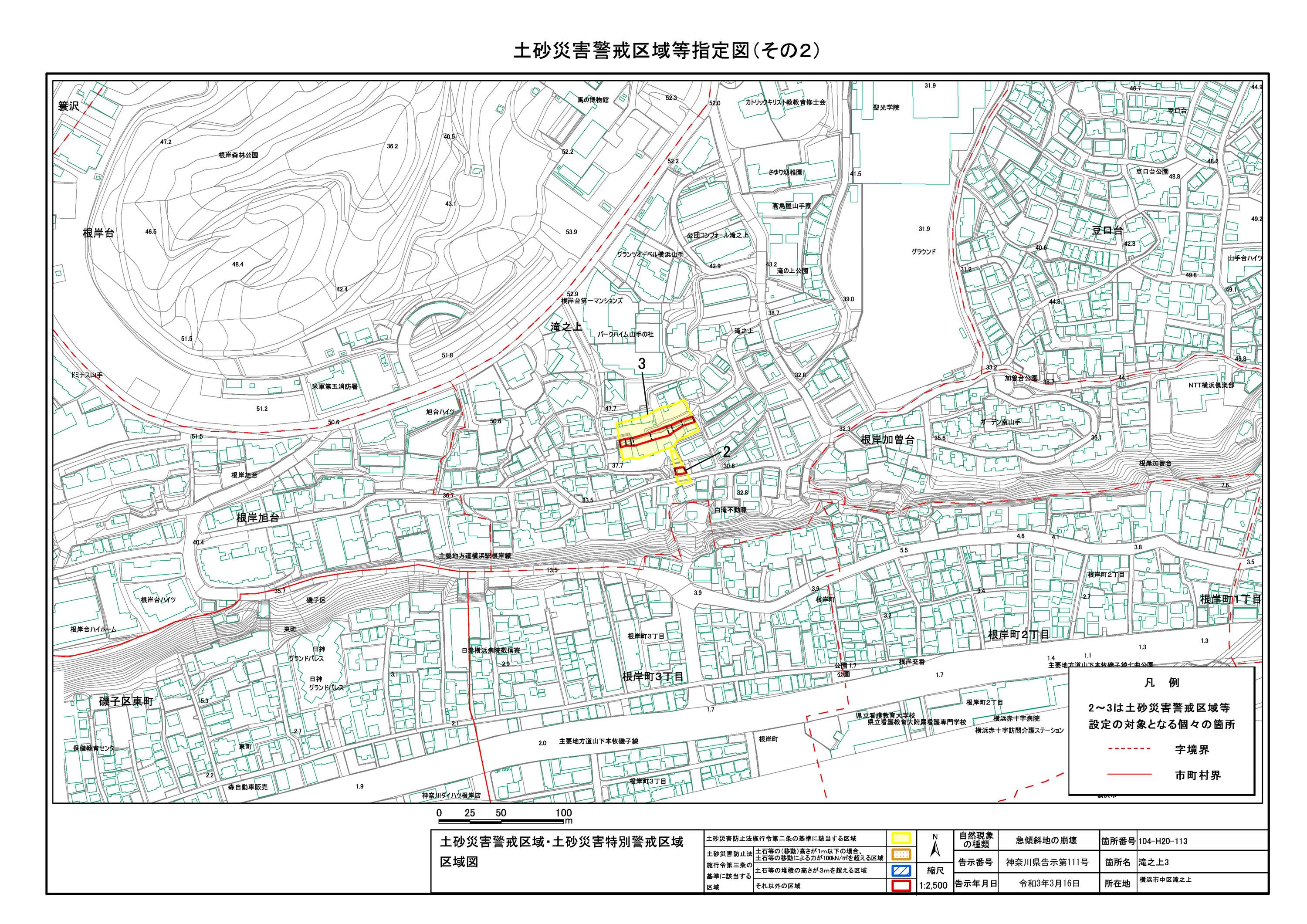 山手町、新山下二丁目及び新山下三丁目 |