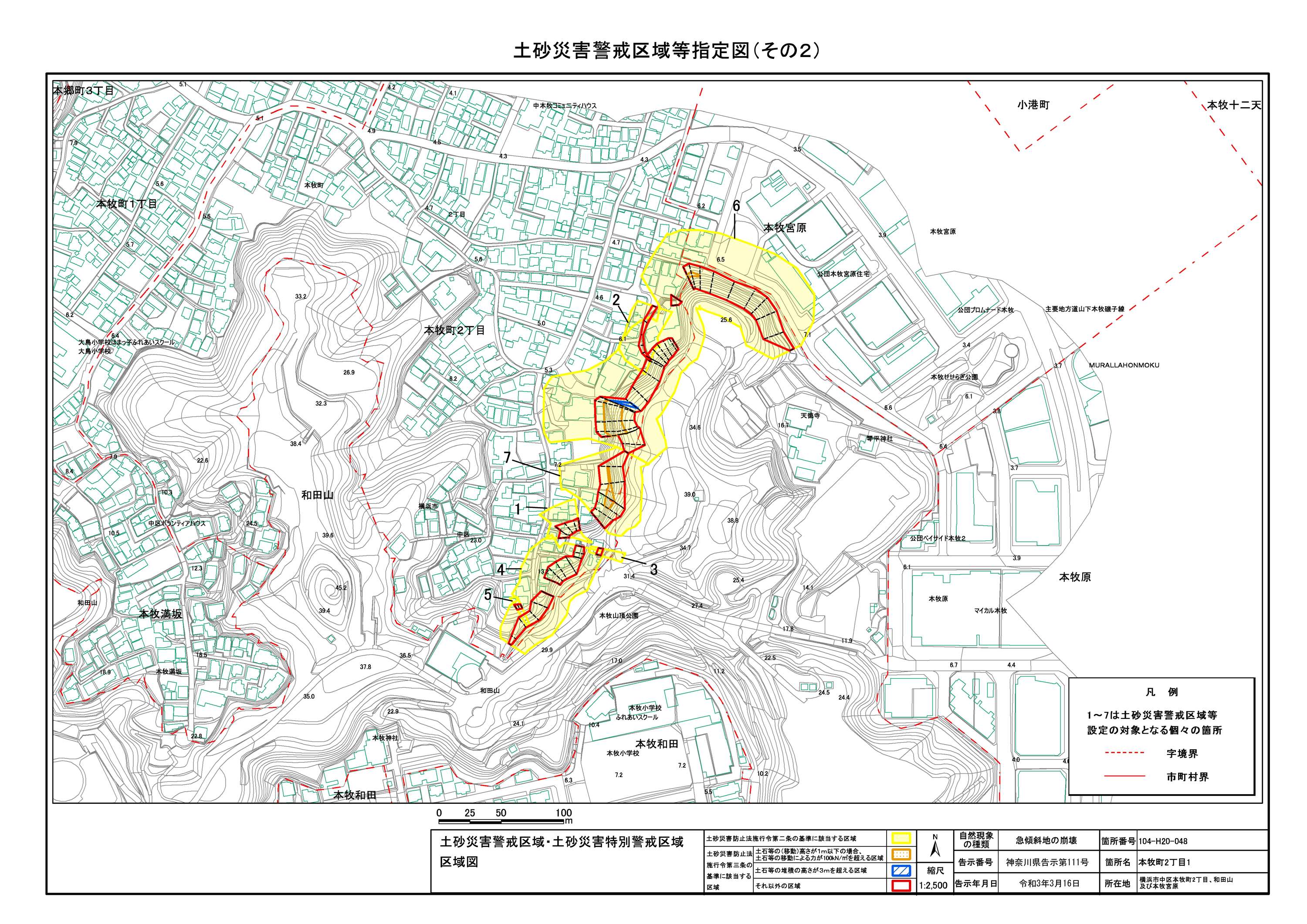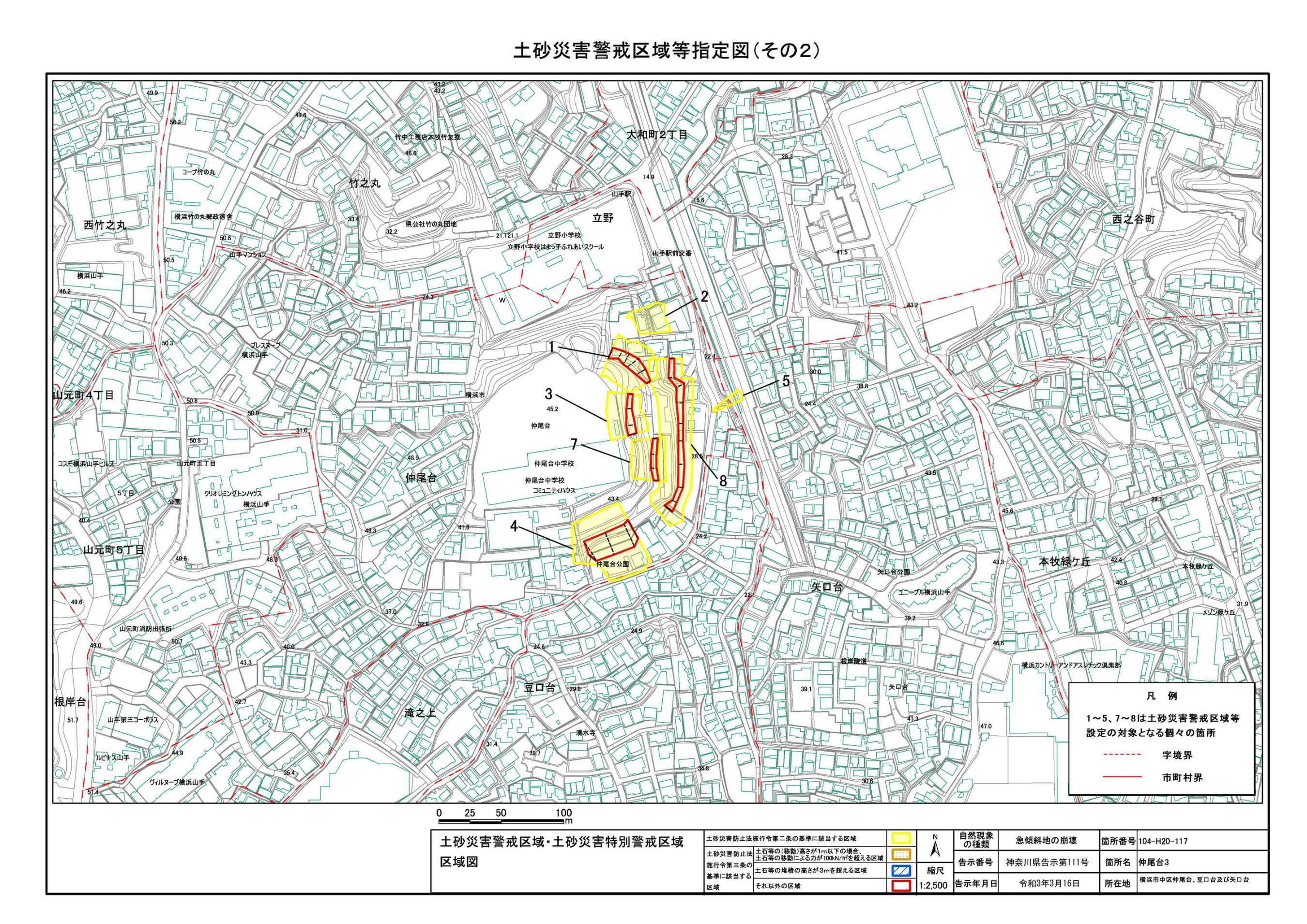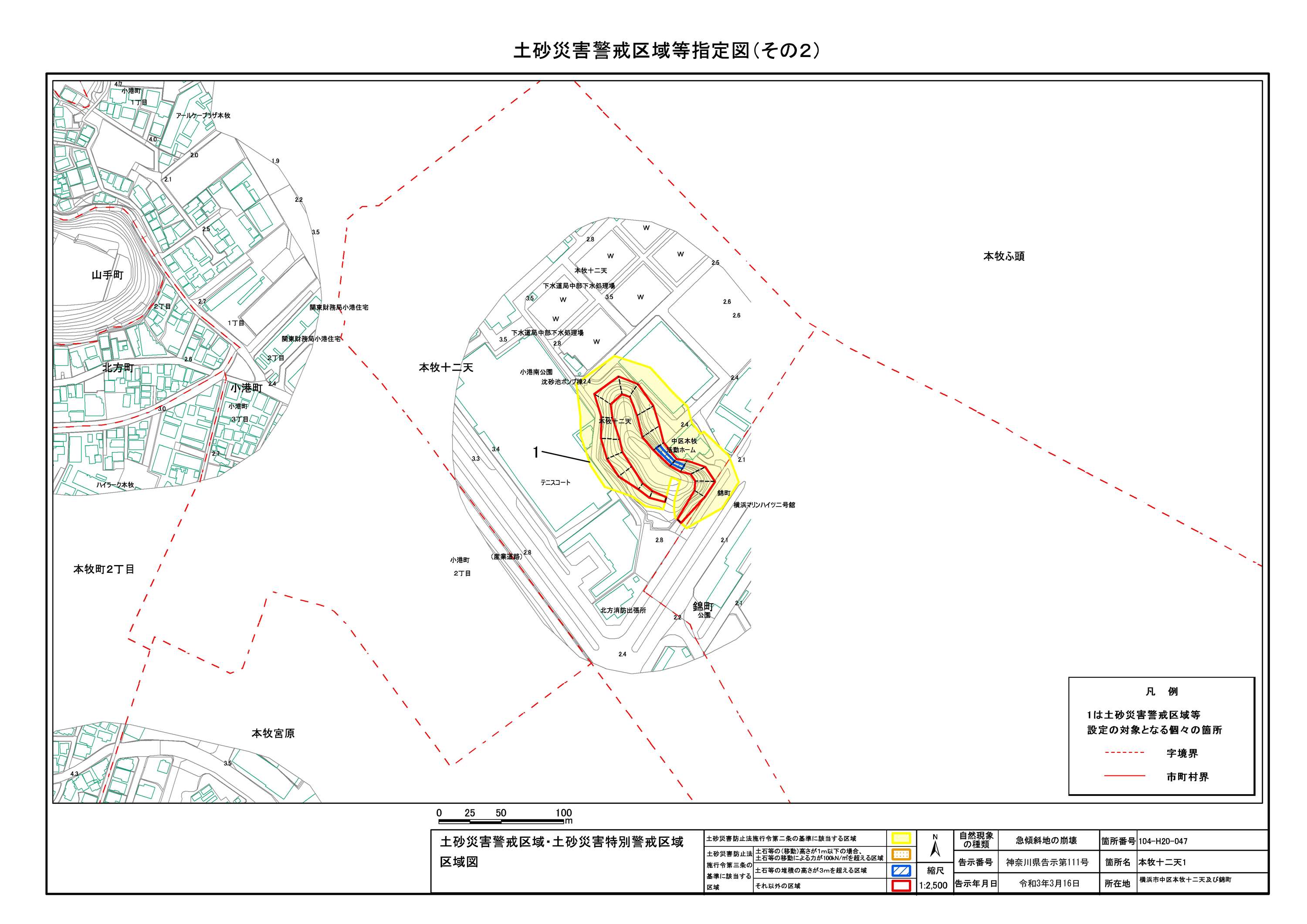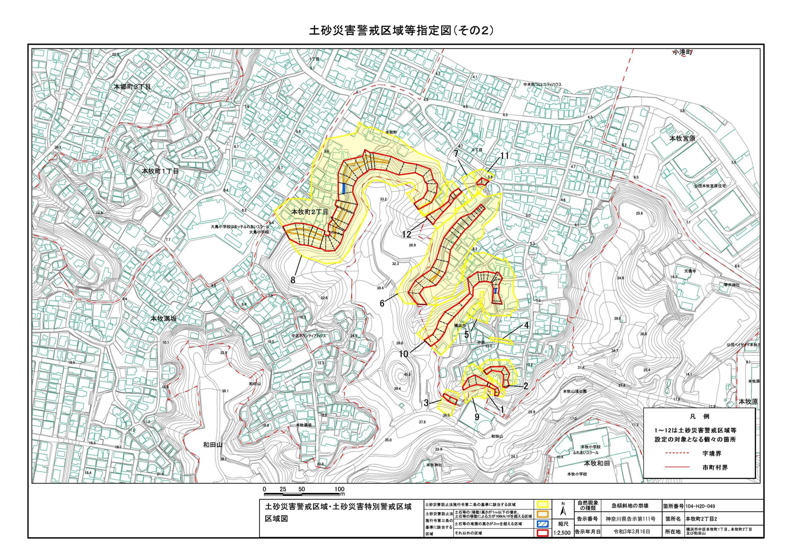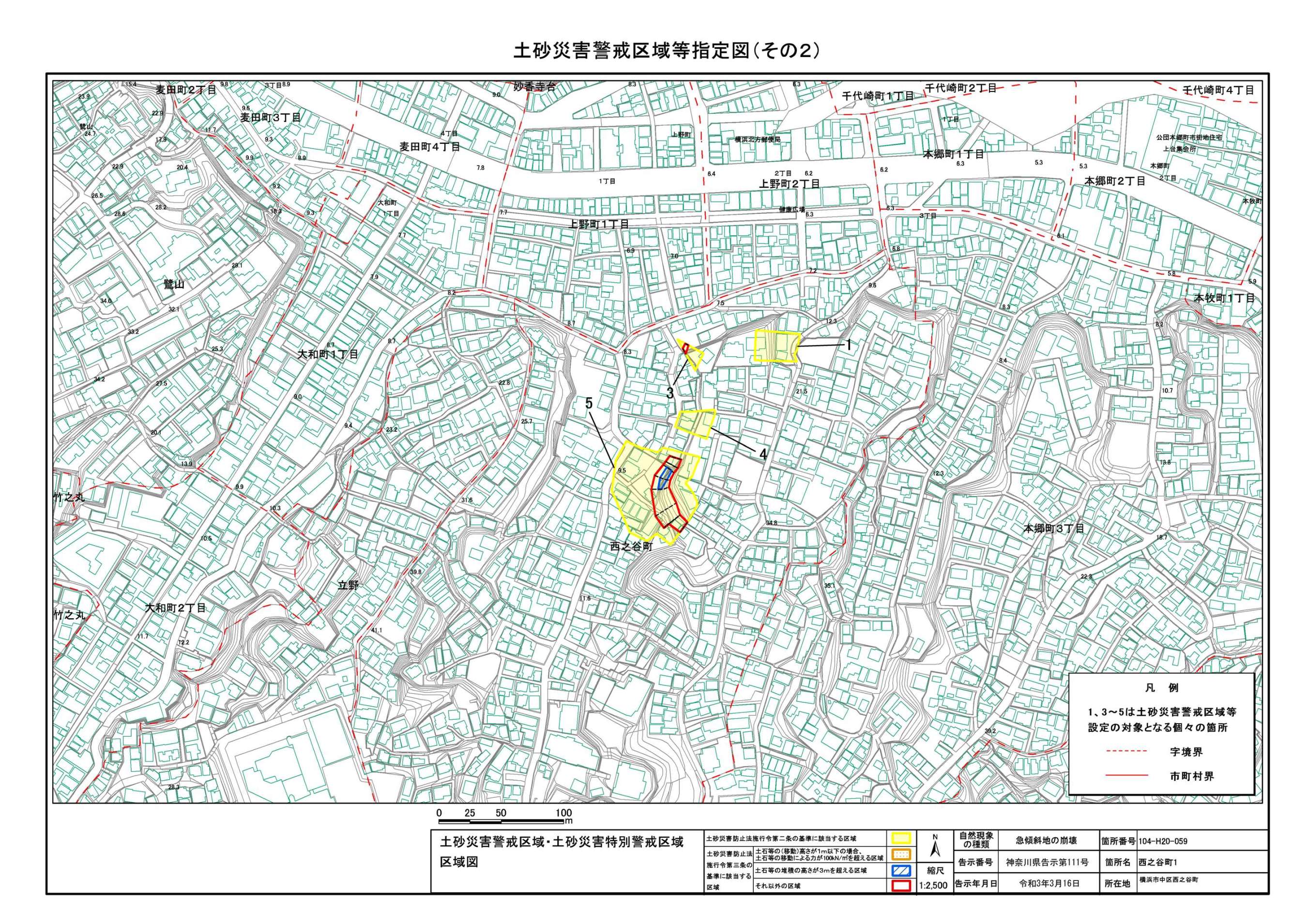 山手町、新山下二丁目及び新山下三丁目 |