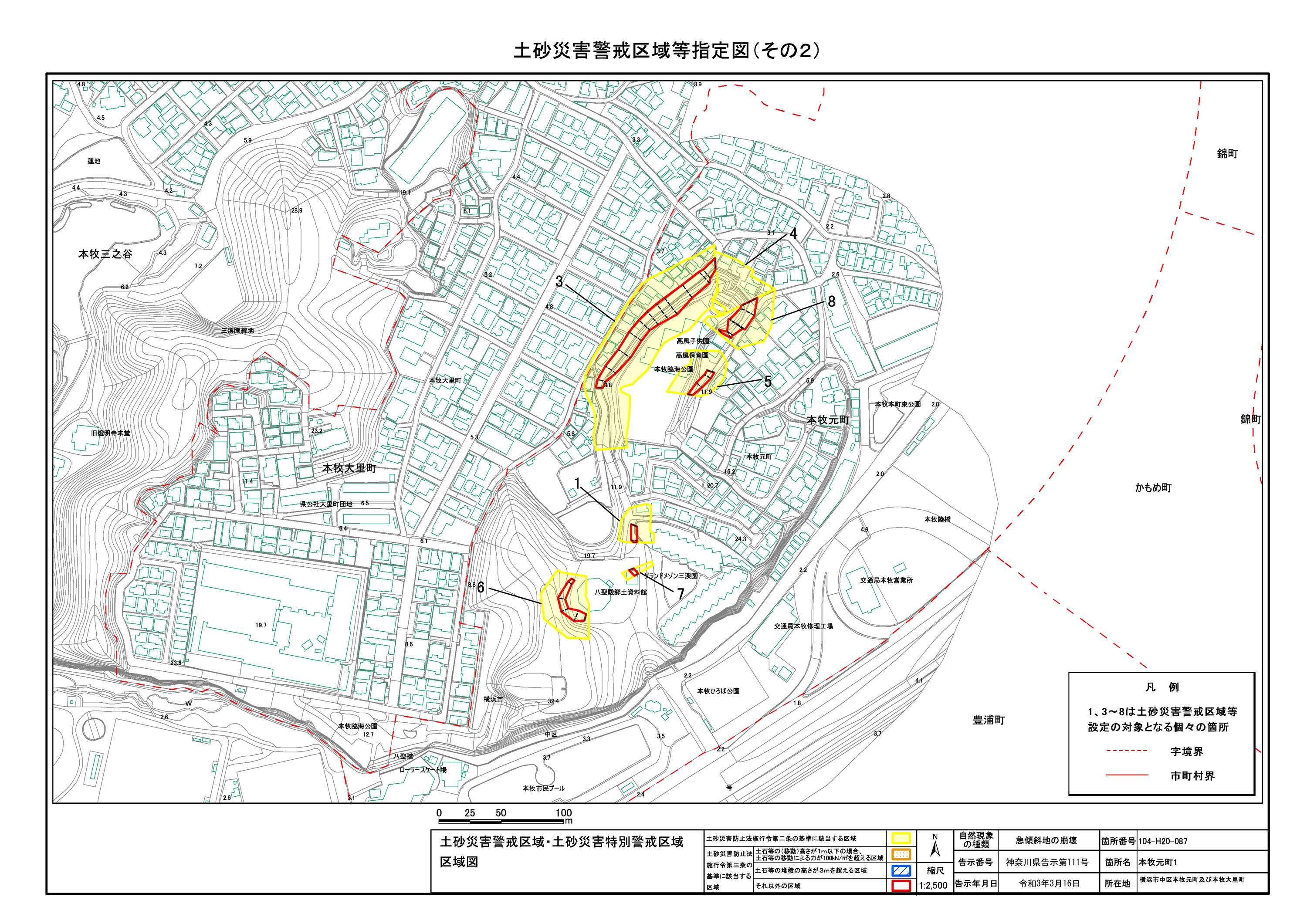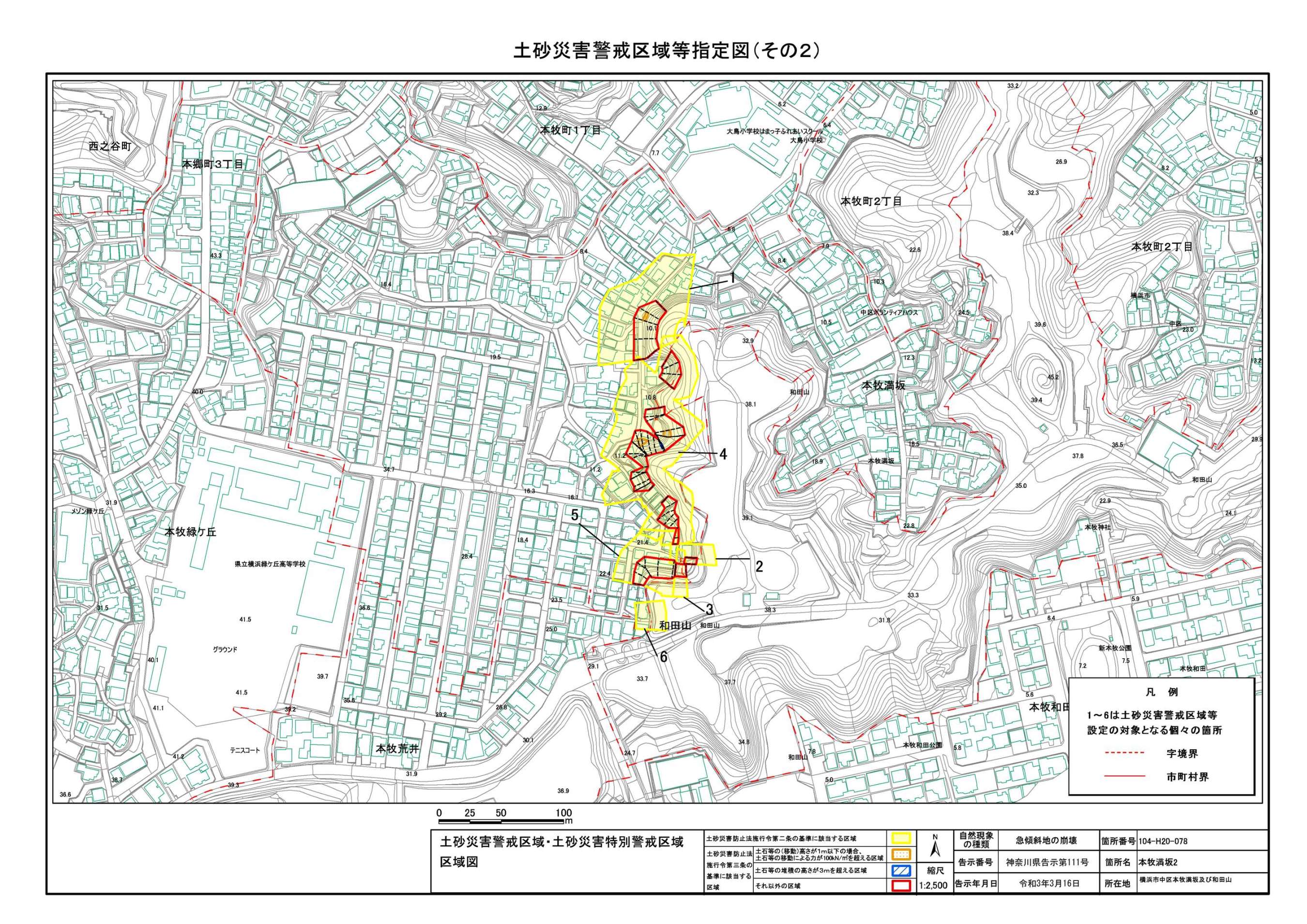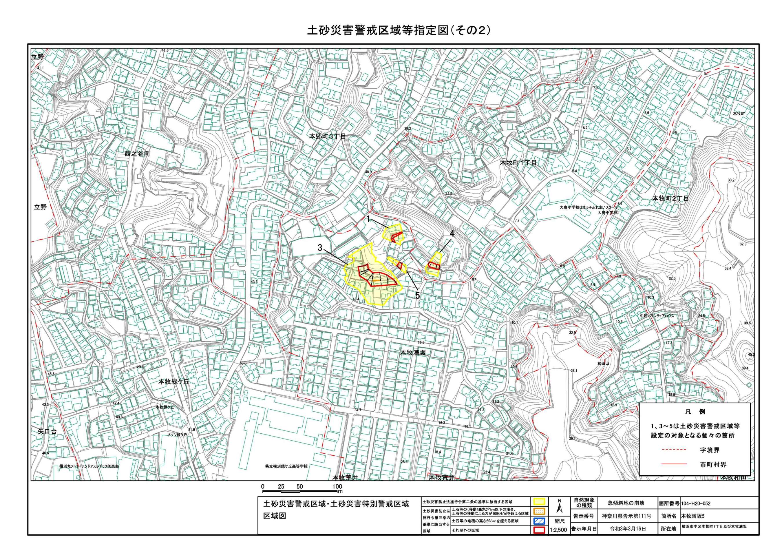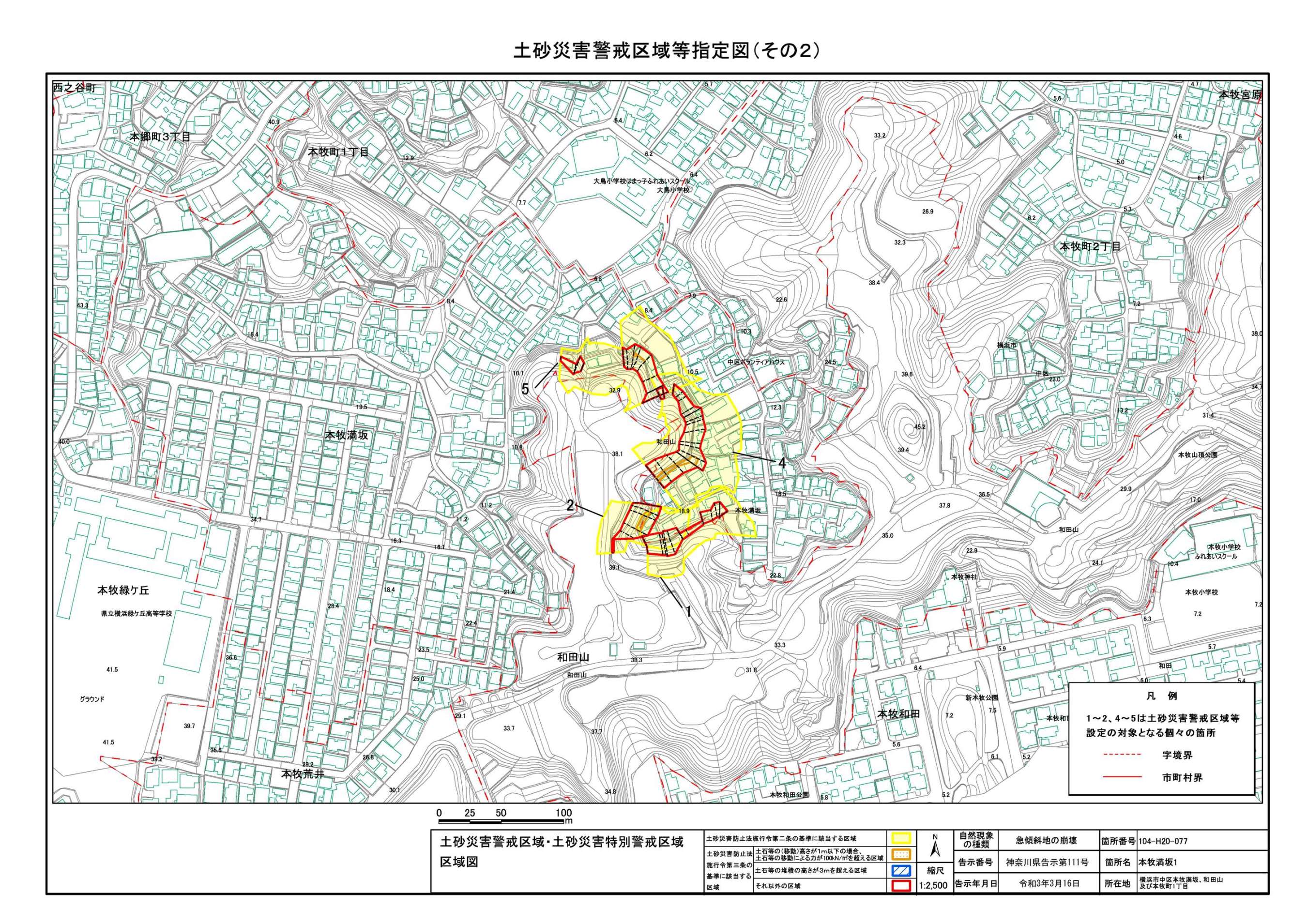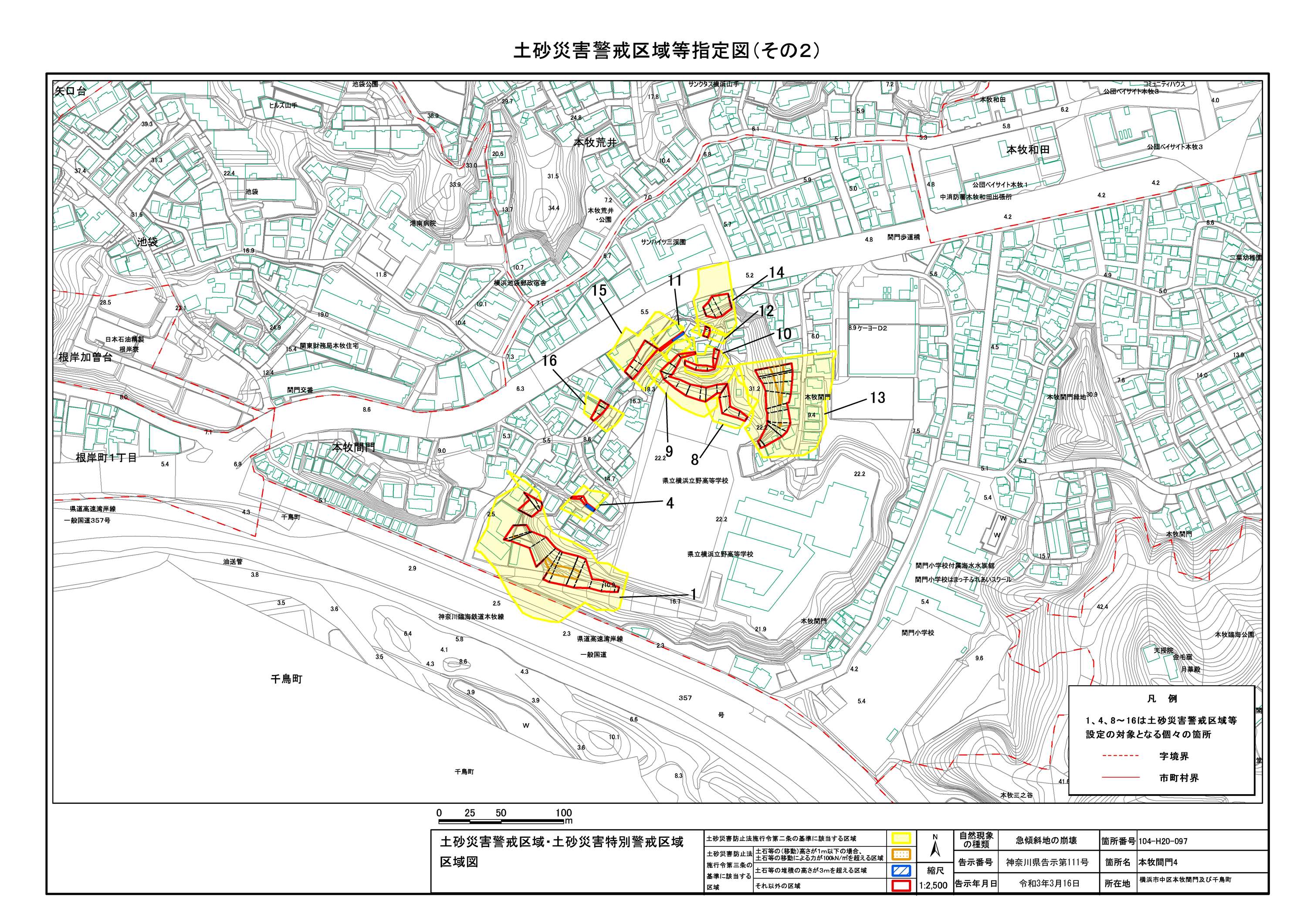 山手町、新山下二丁目及び新山下三丁目 |