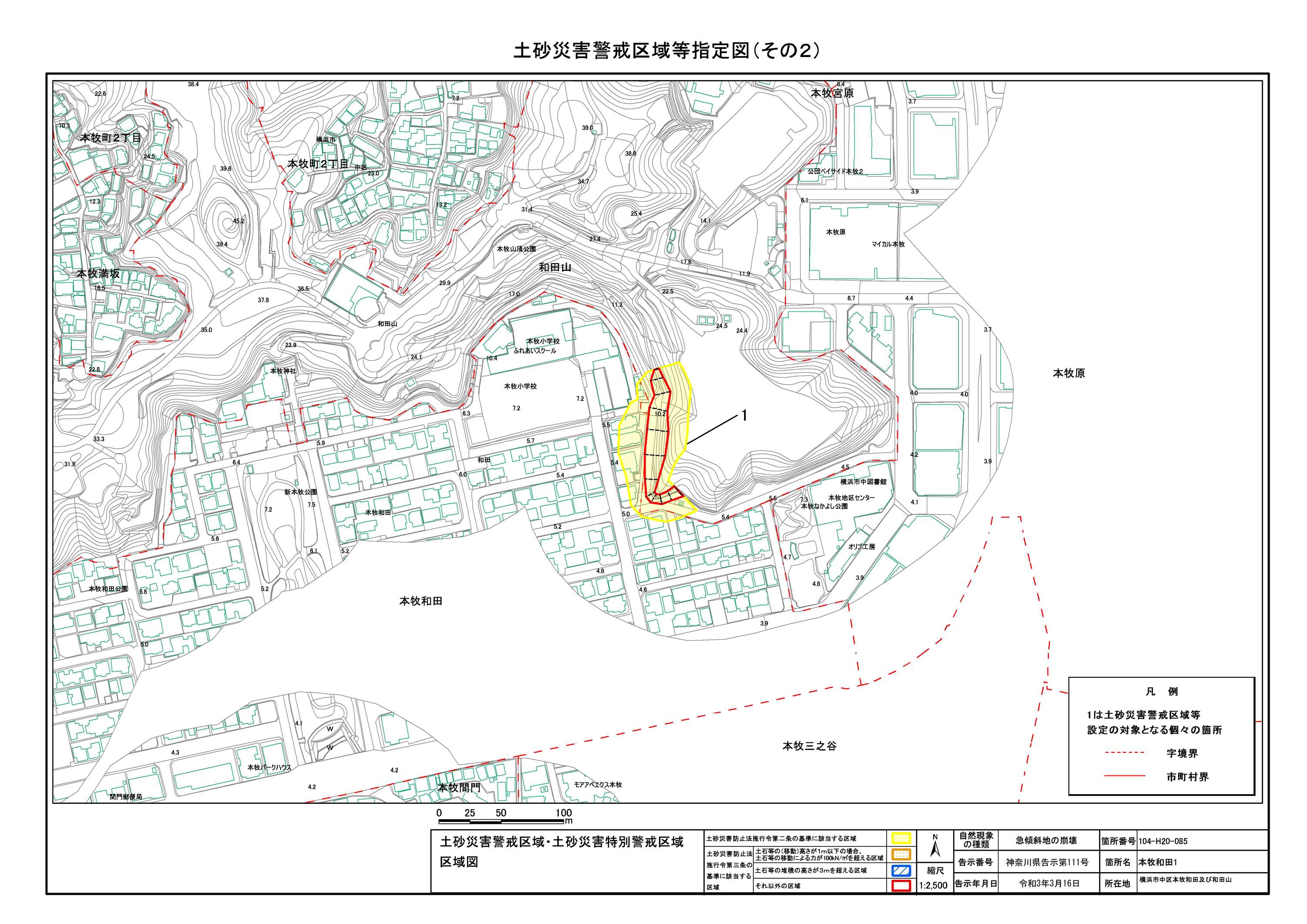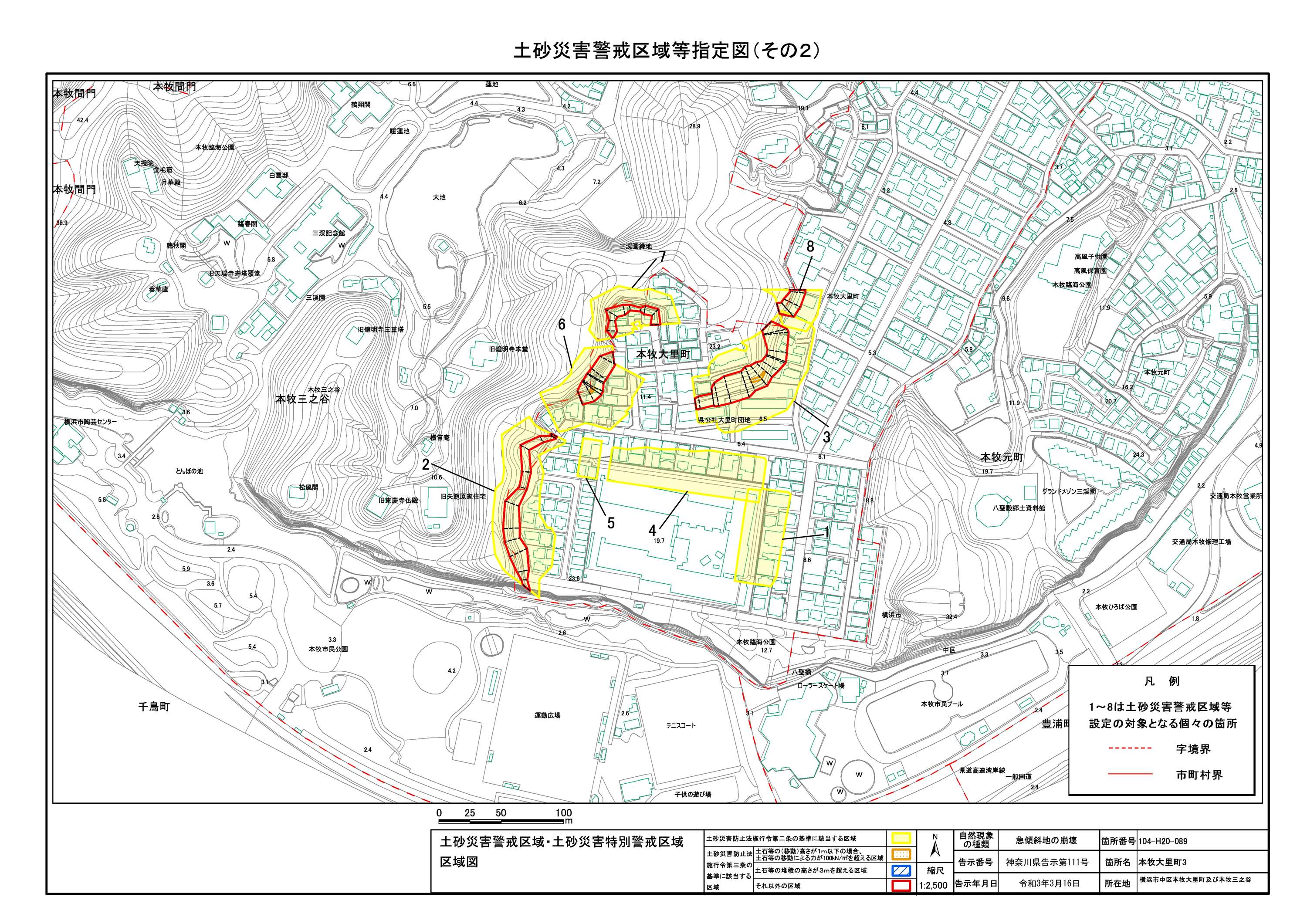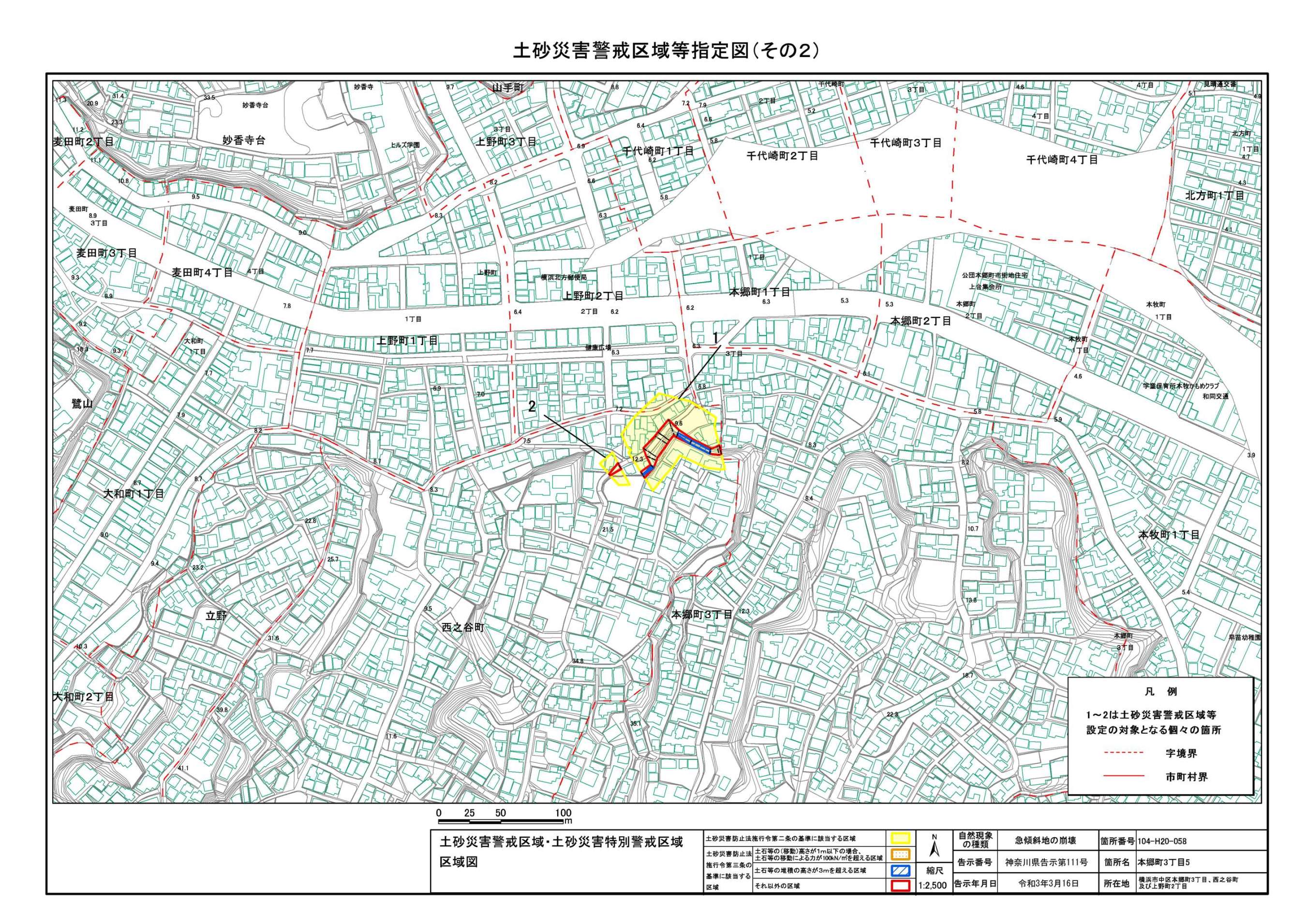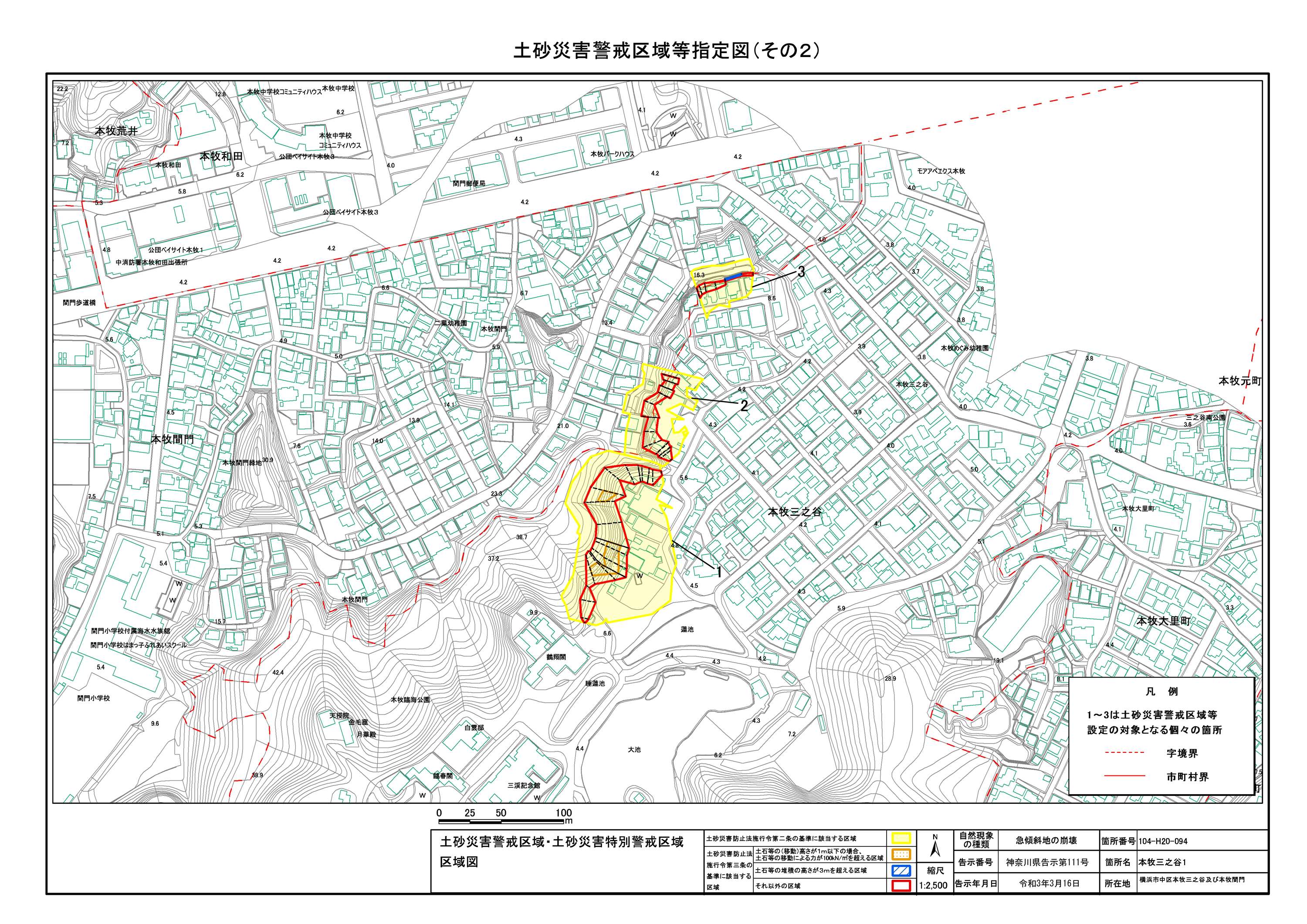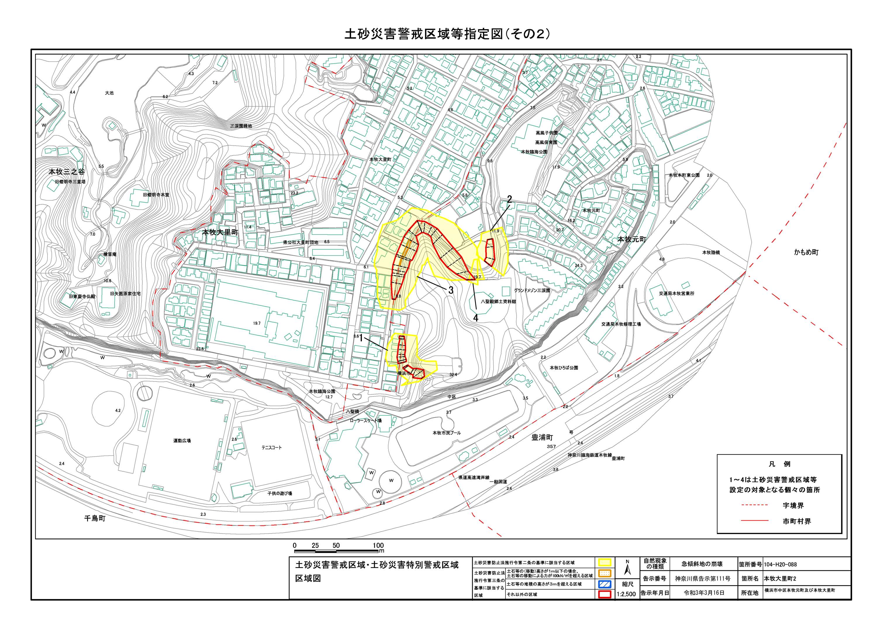 山手町、新山下二丁目及び新山下三丁目 |