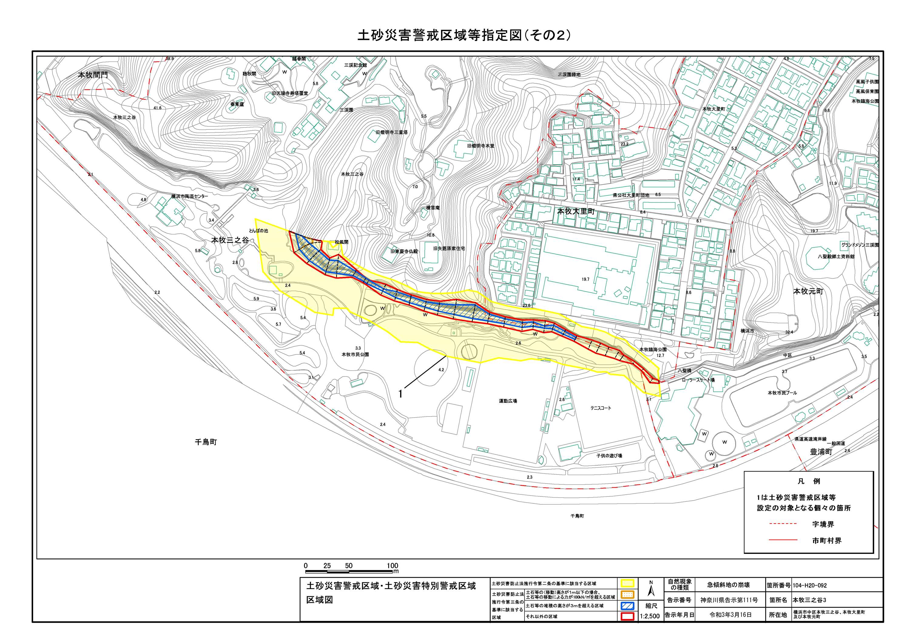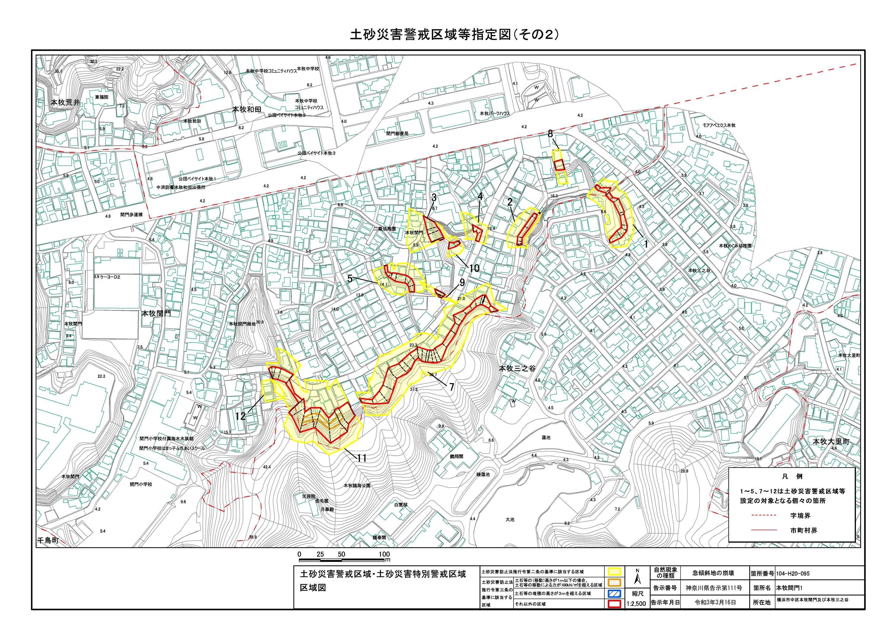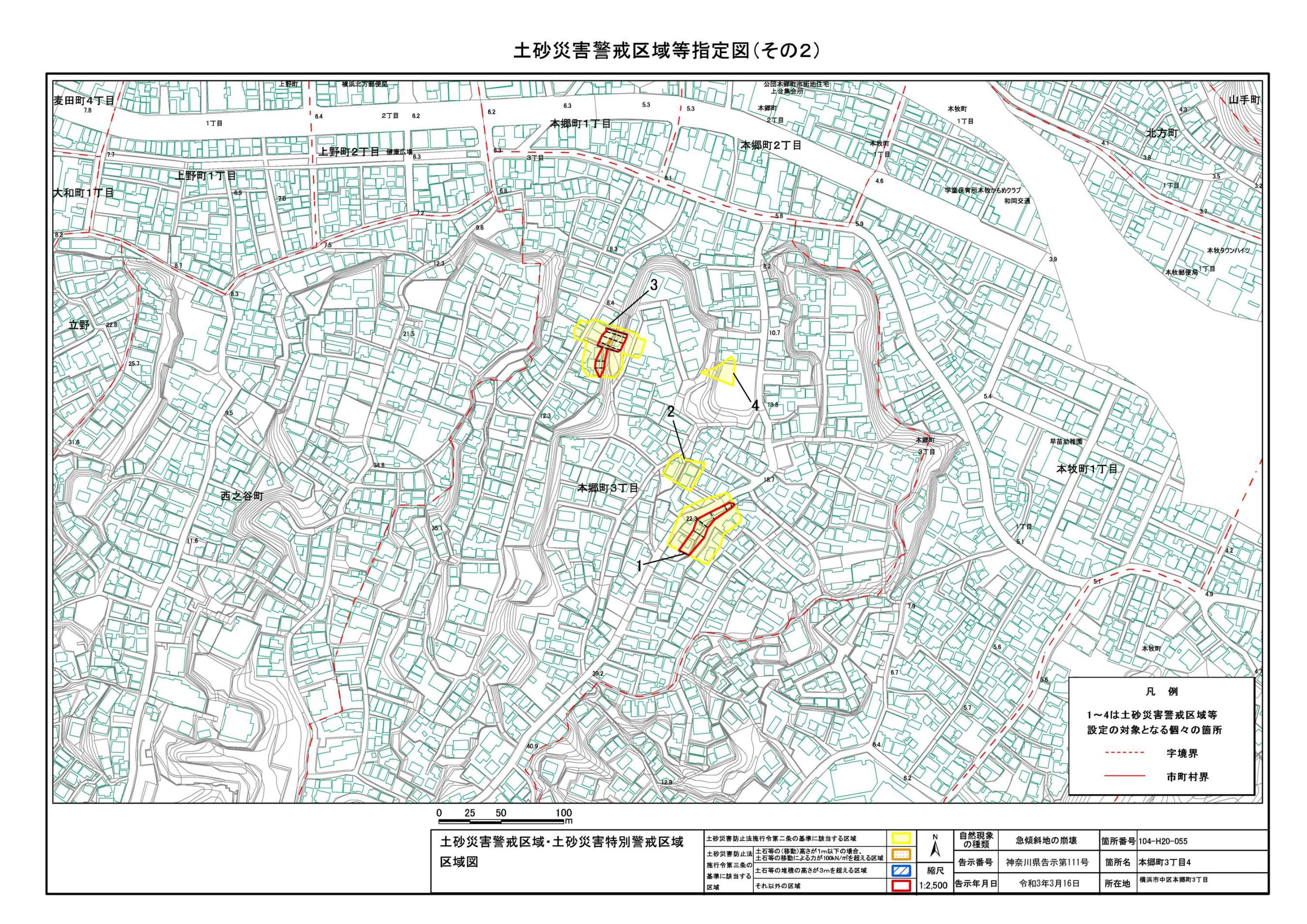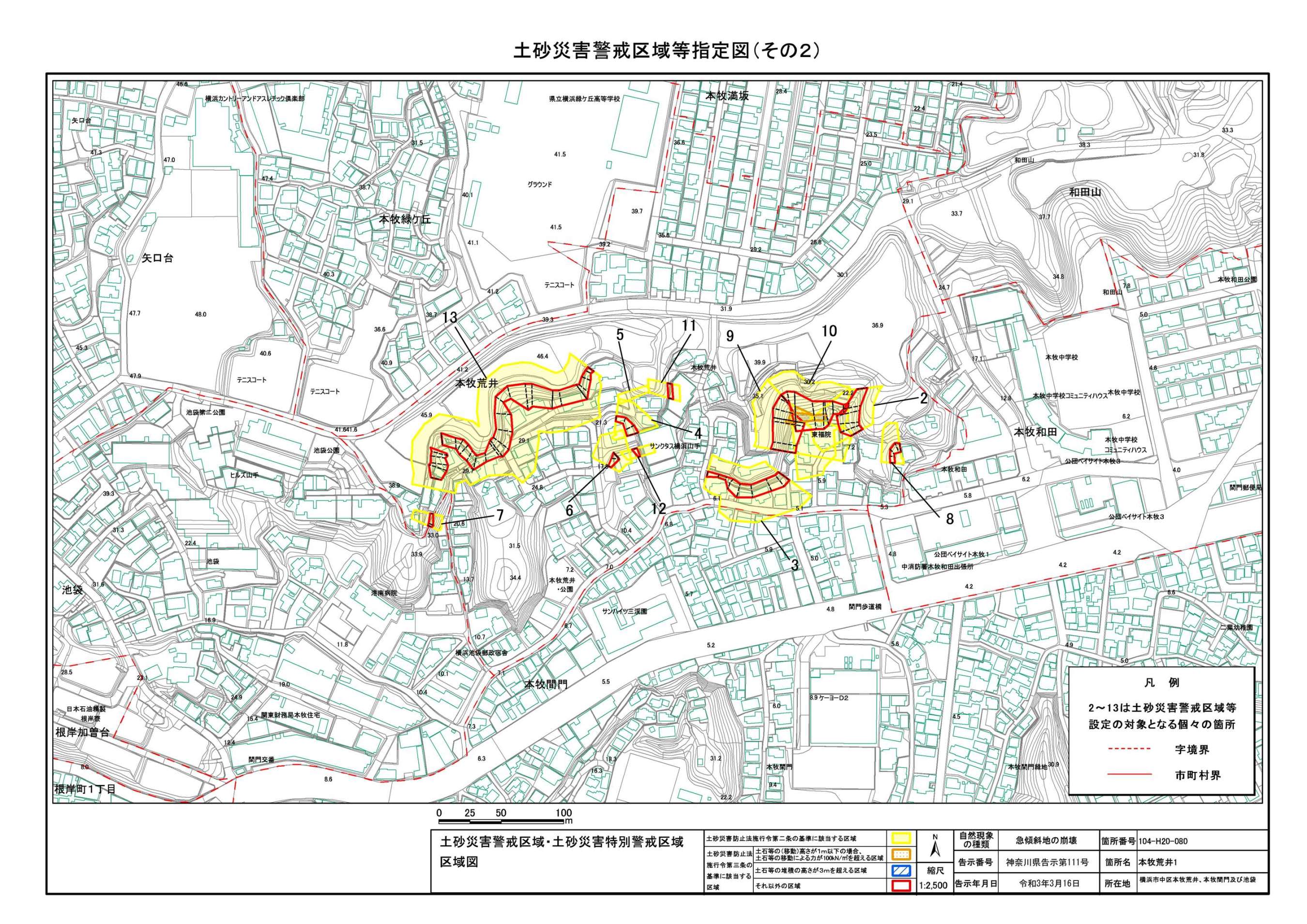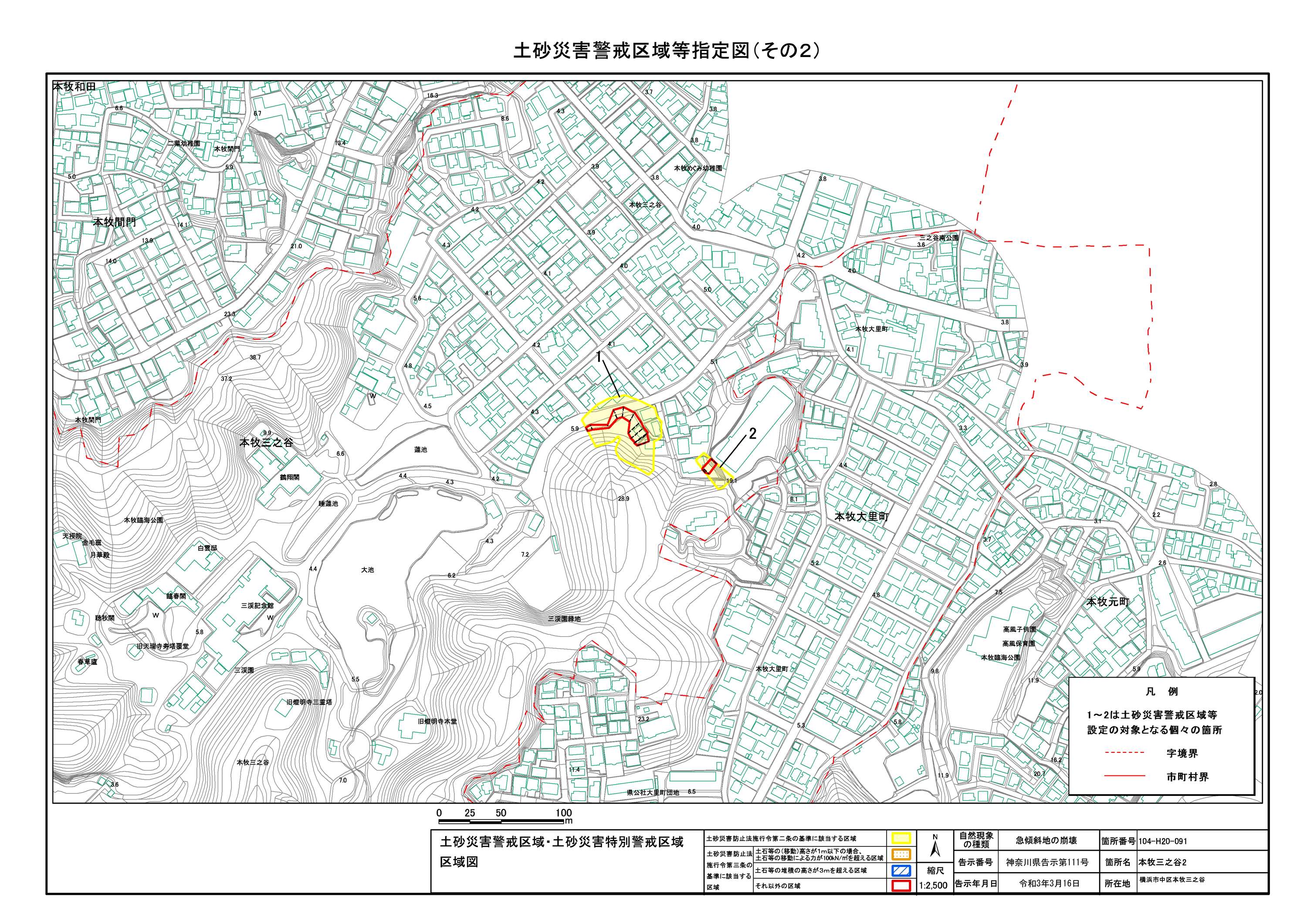 山手町、新山下二丁目及び新山下三丁目 |