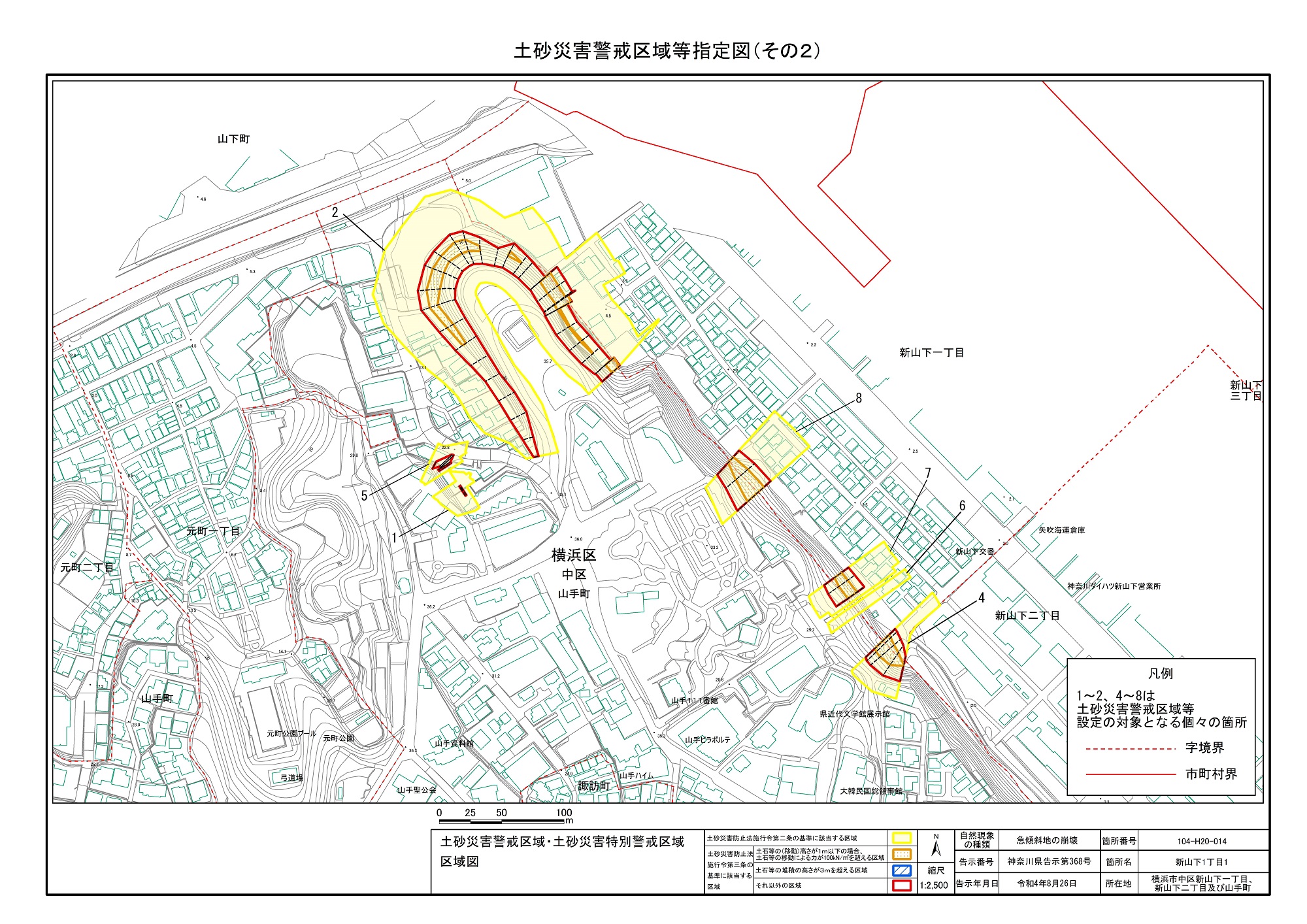 山手町、新山下一丁目及び新山下二丁目 |