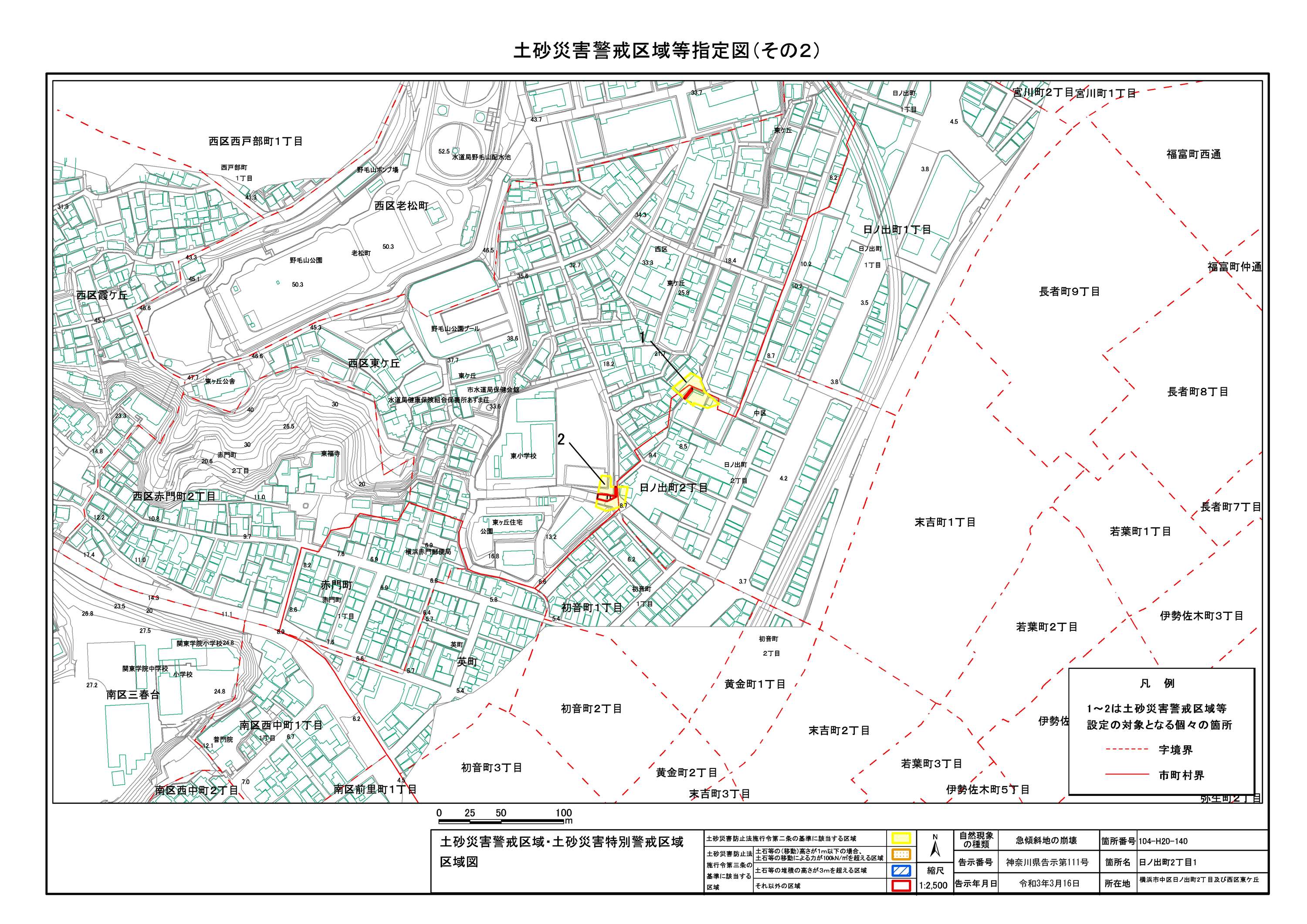 日ノ出町2丁目及び西区東ケ丘 |