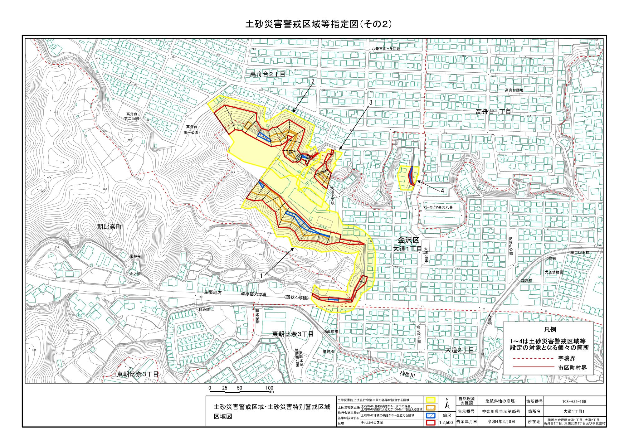 朝比奈町、東朝比奈3丁目及び大道1丁目