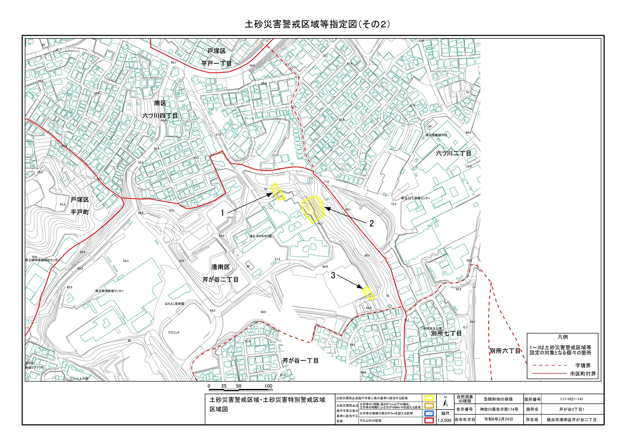 芹が谷二丁目、南区六ツ川四丁目及び戸塚区平戸町