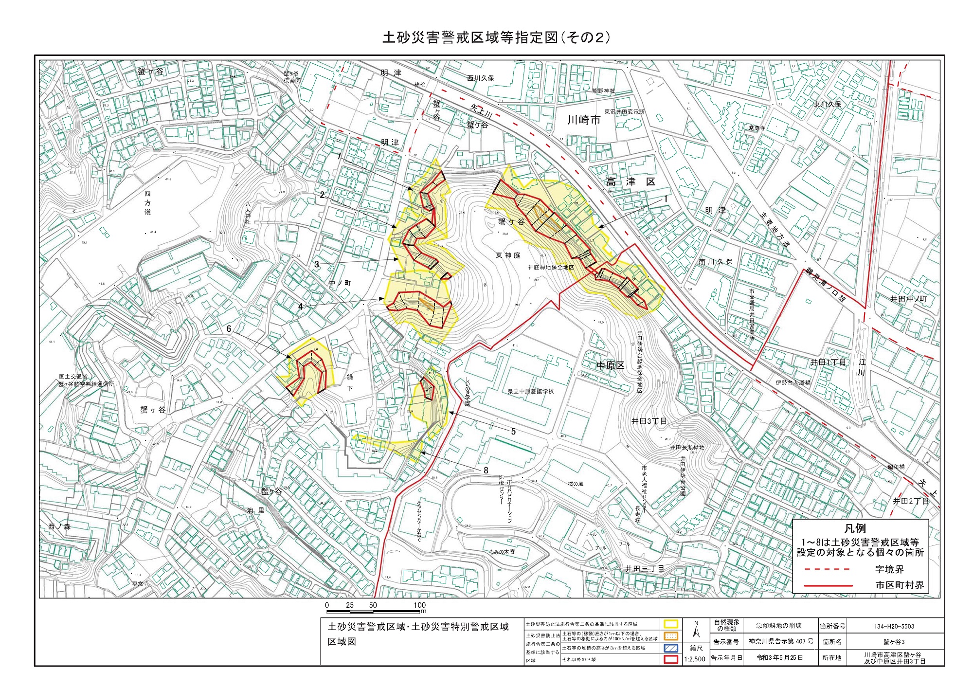 蟹ケ谷及び中原区井田3丁目 ※高津区と中原区にまたがるため両区に掲載