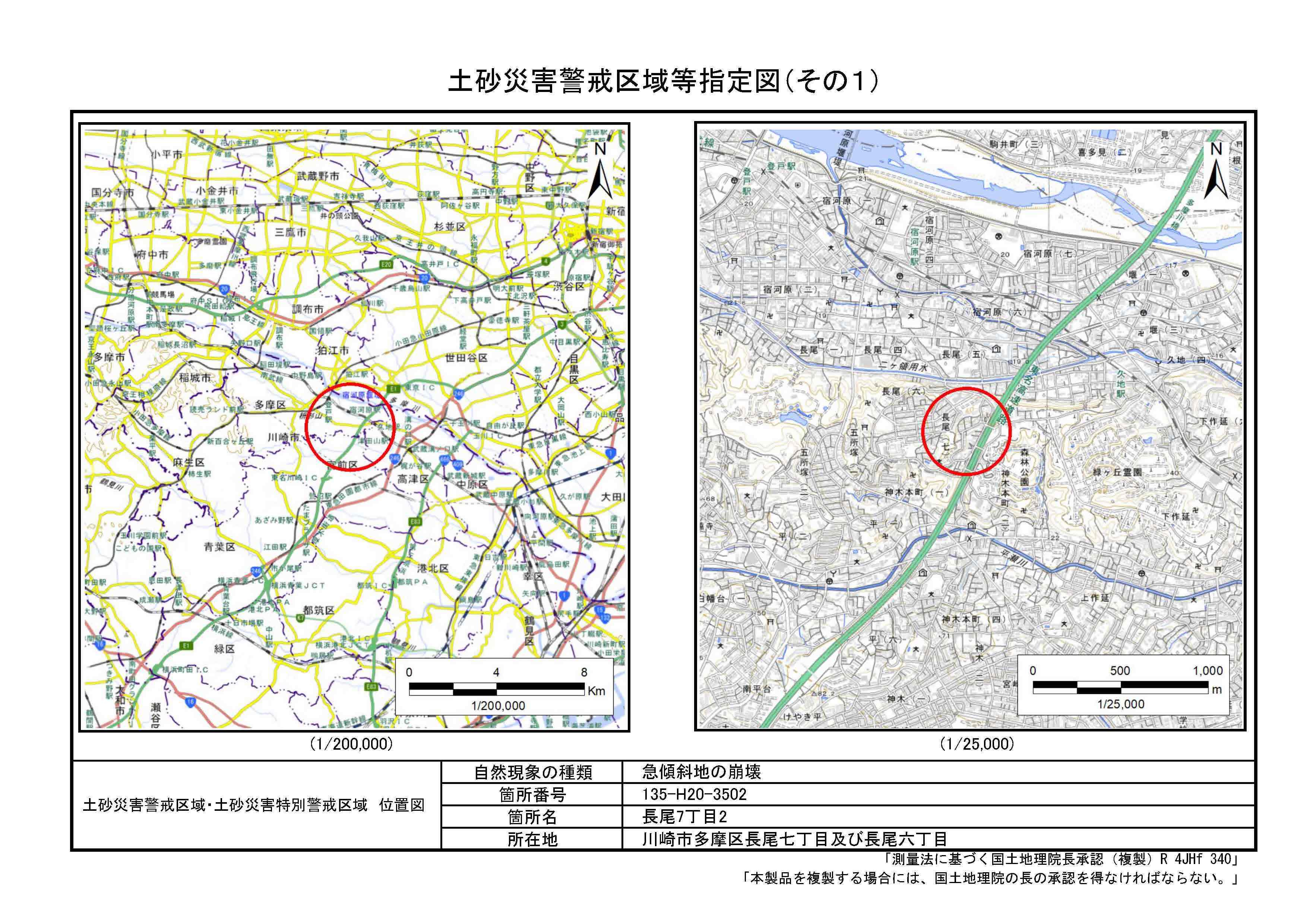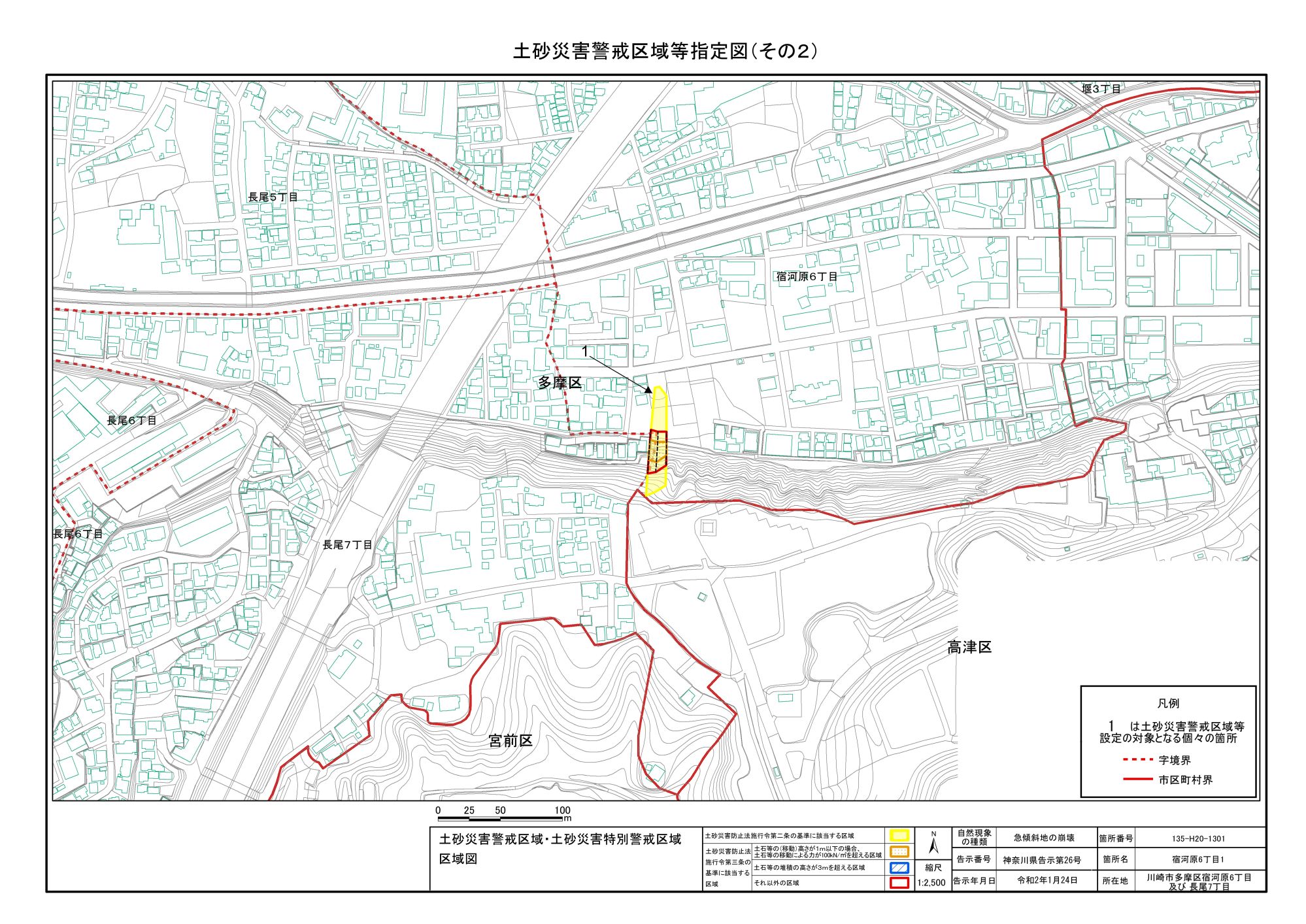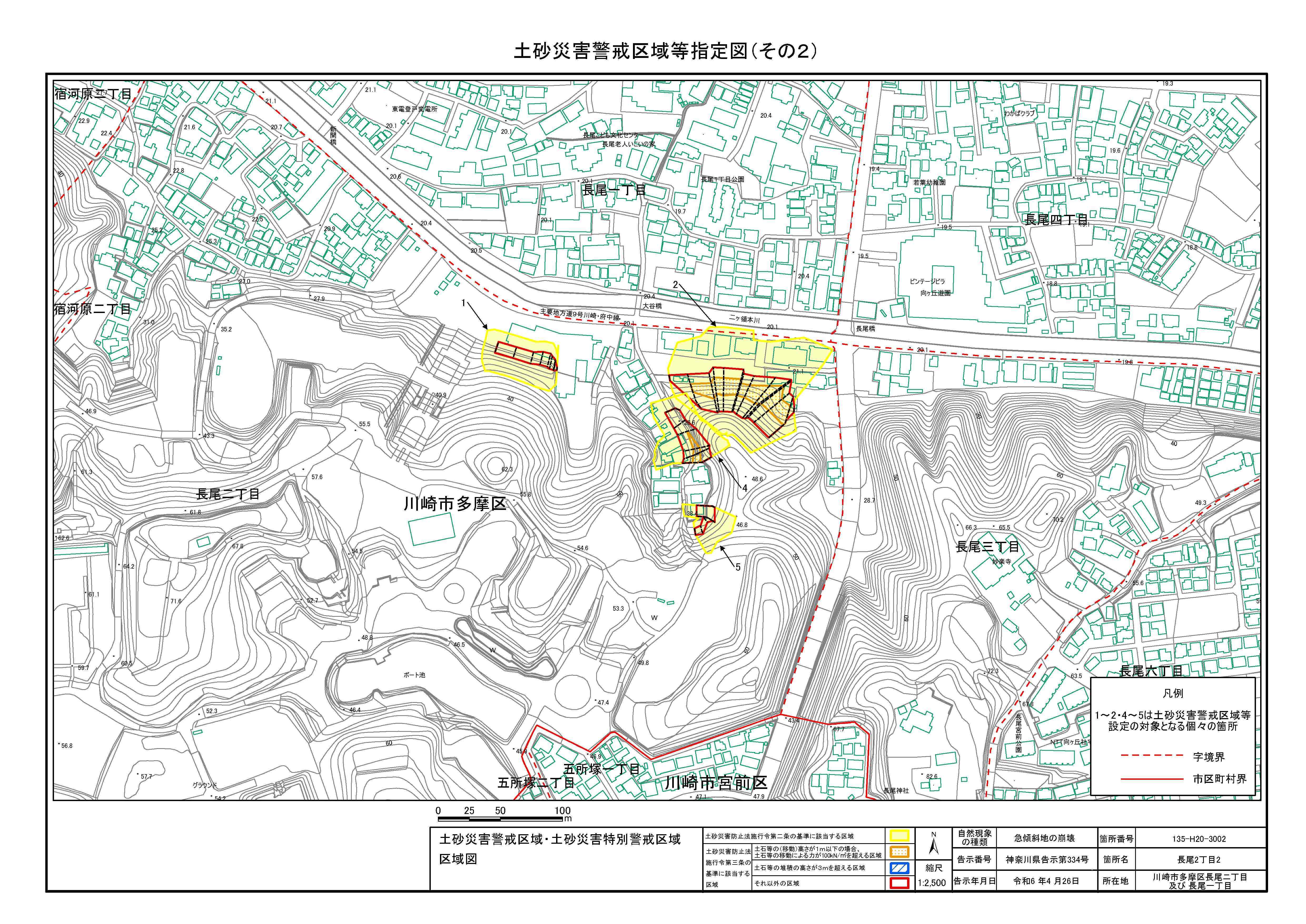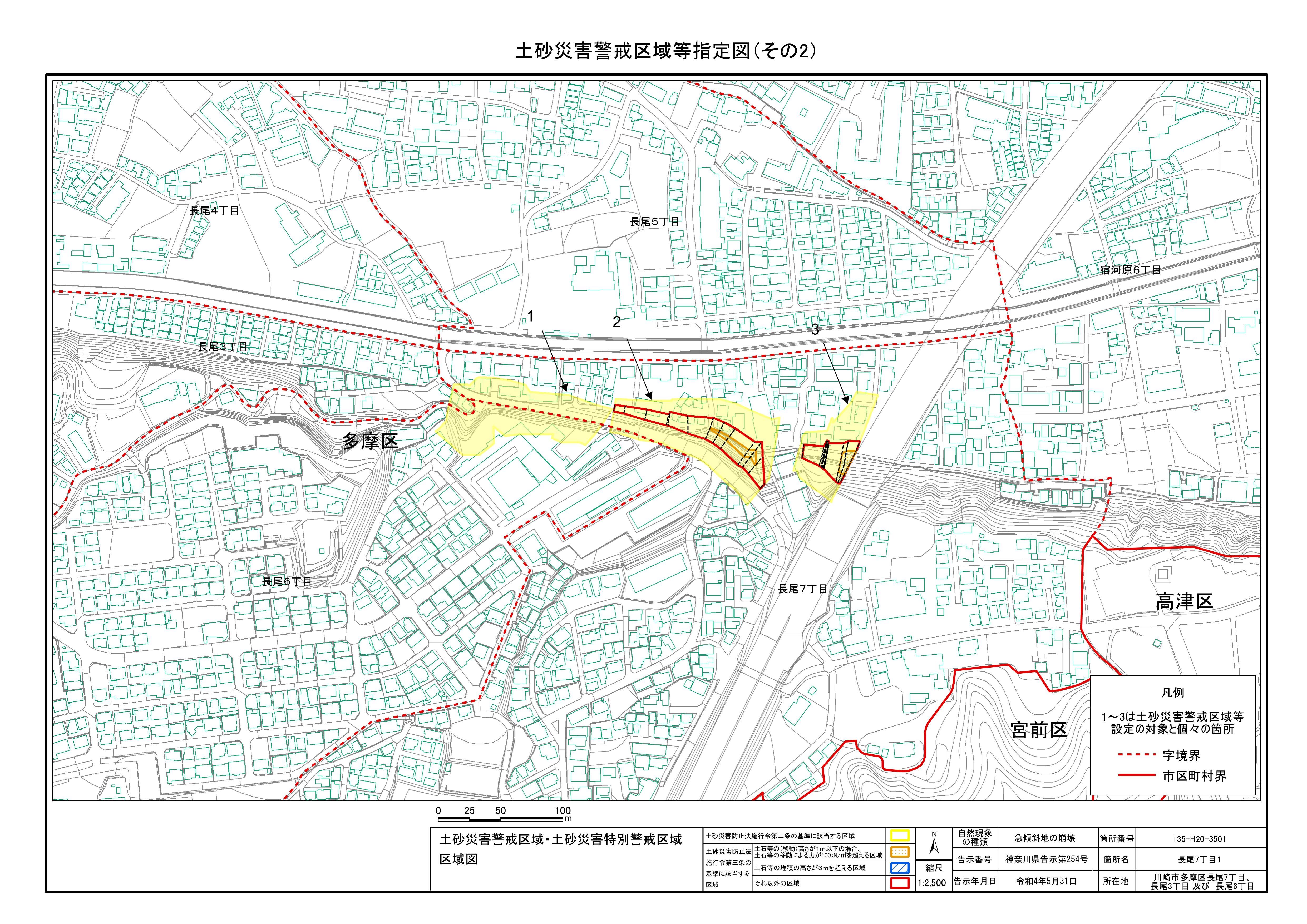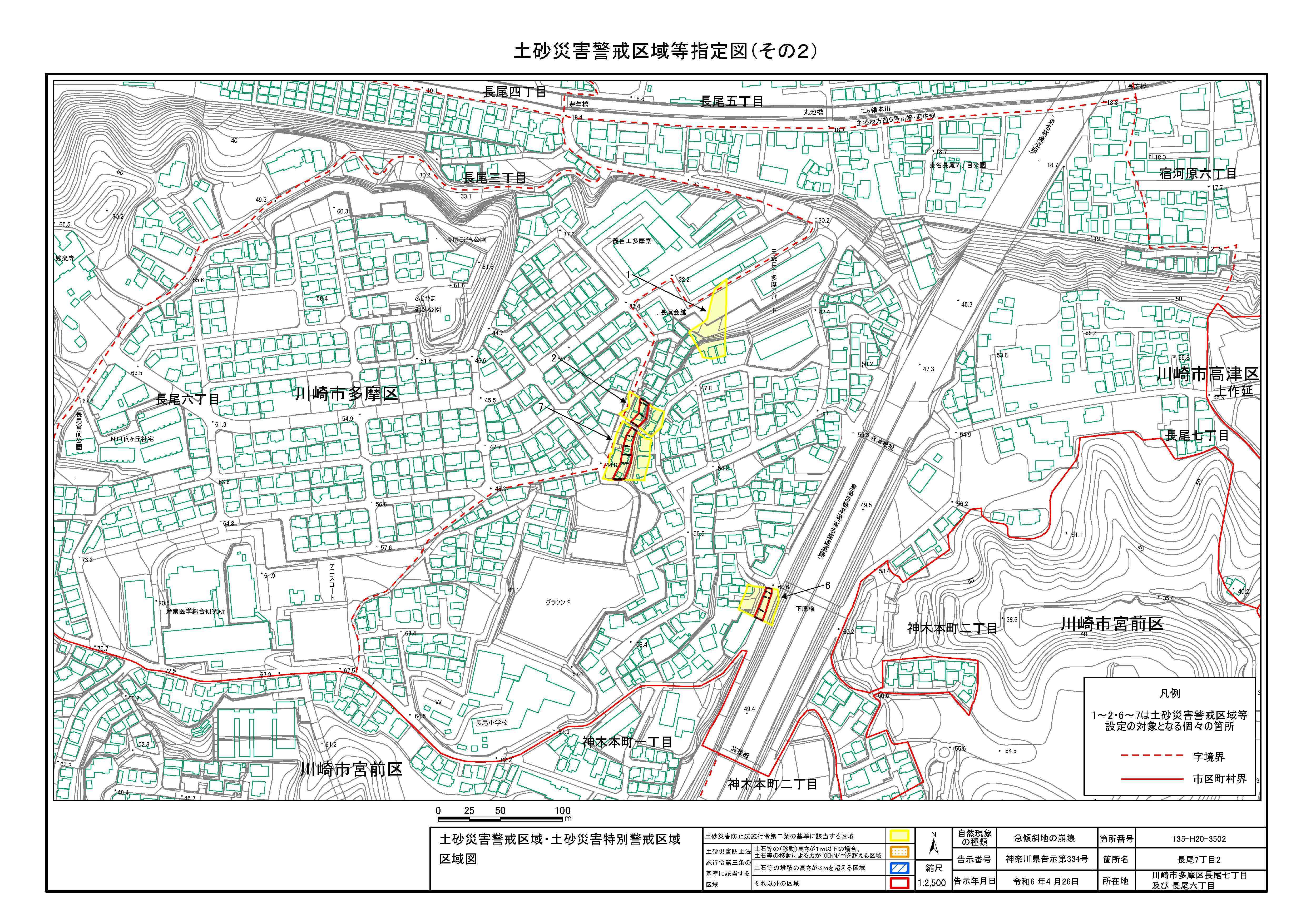 宮前区五所塚1丁目、神木本町1丁目、多摩区長尾2丁目及び長尾3丁目 ※宮前区と多摩区にまたがるため両区に掲載