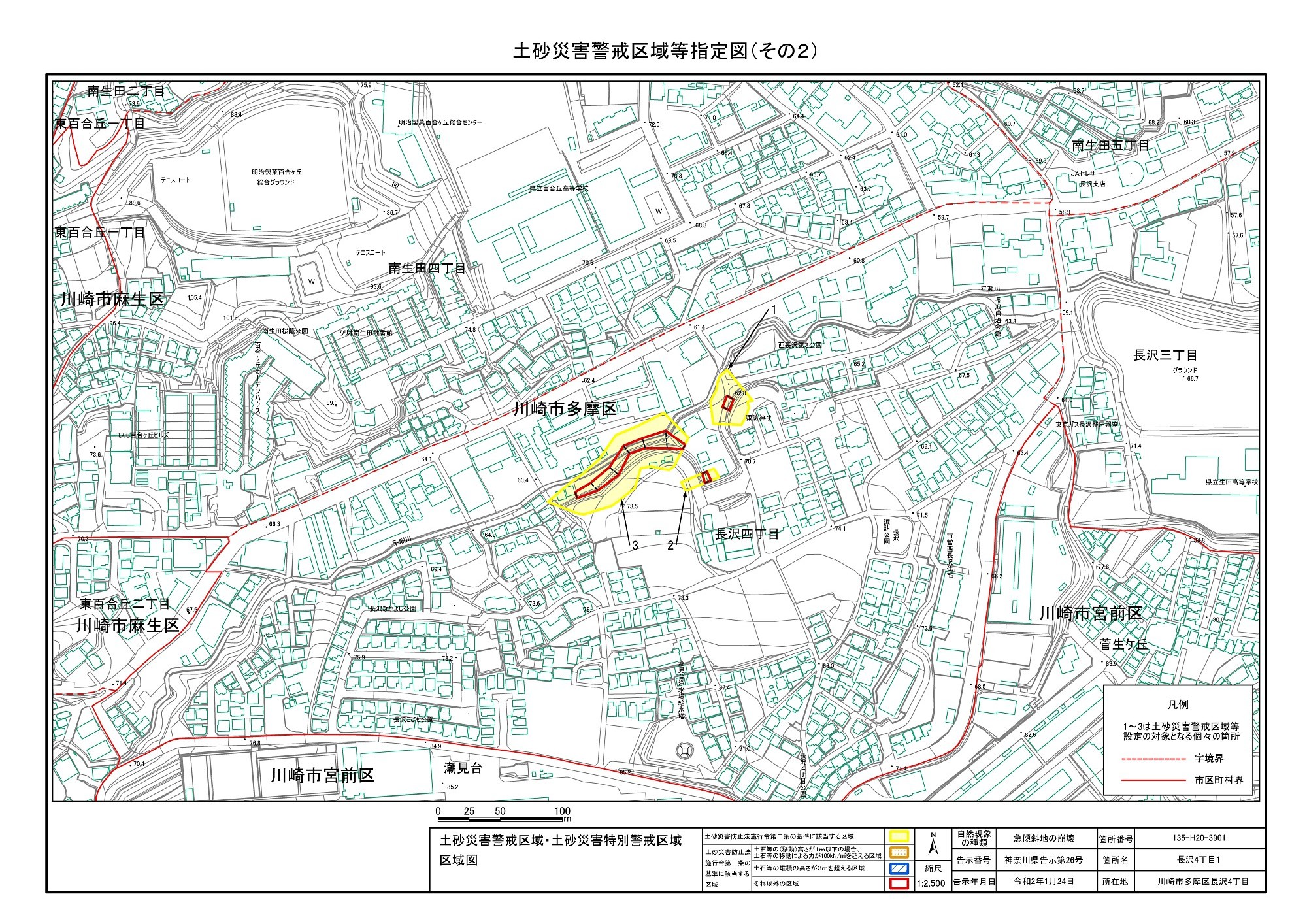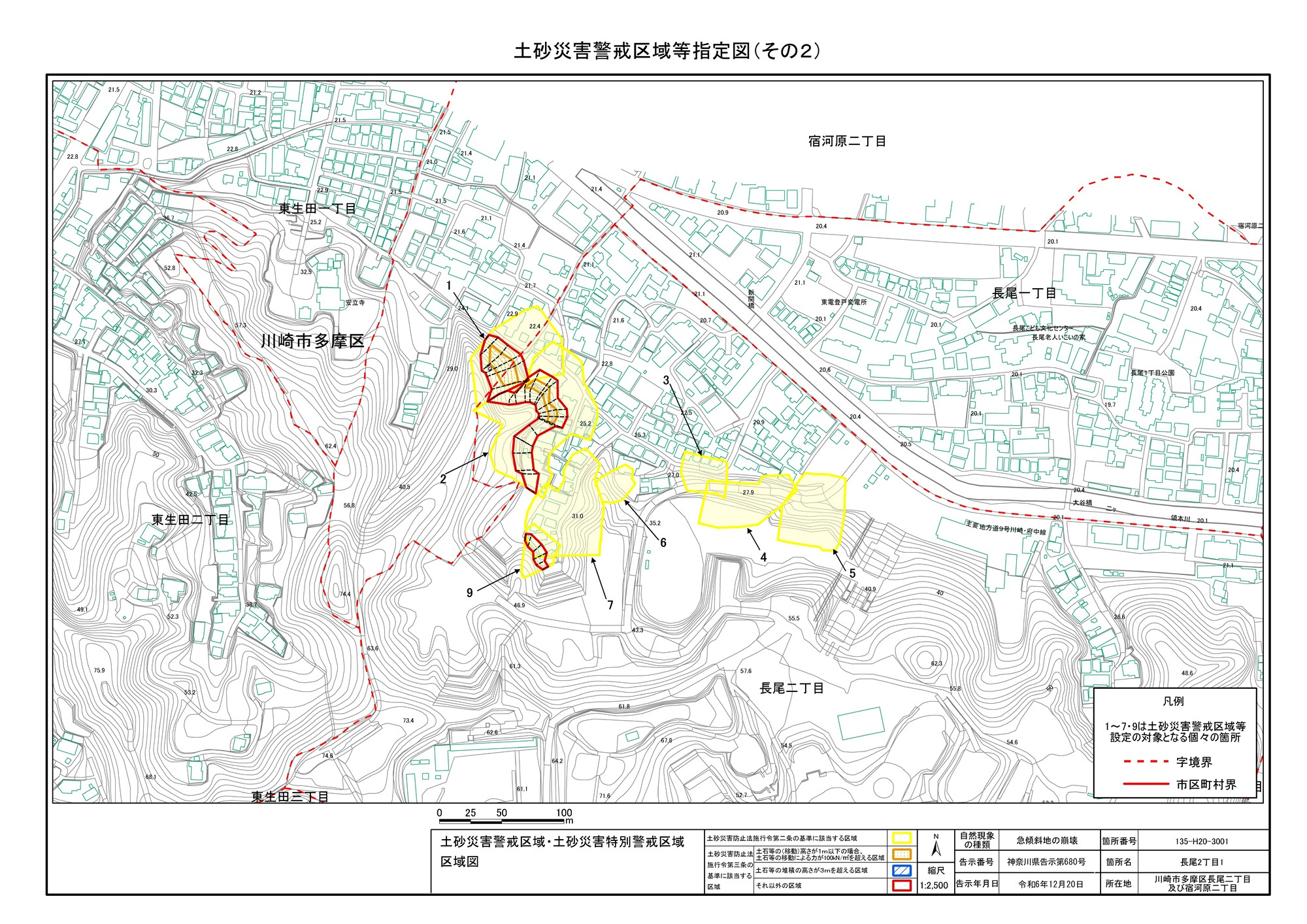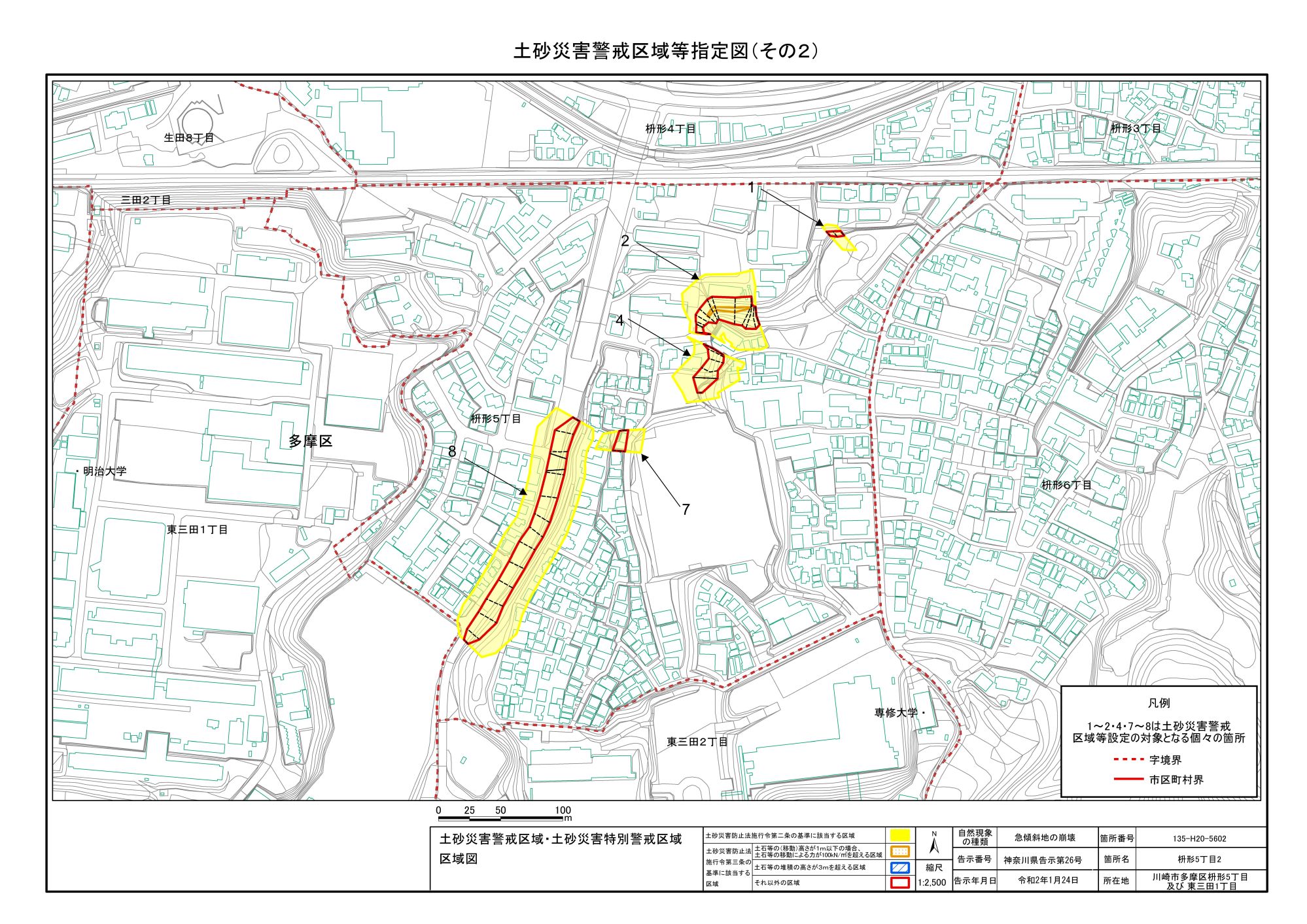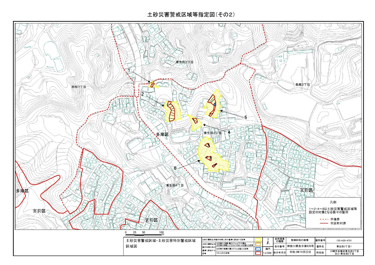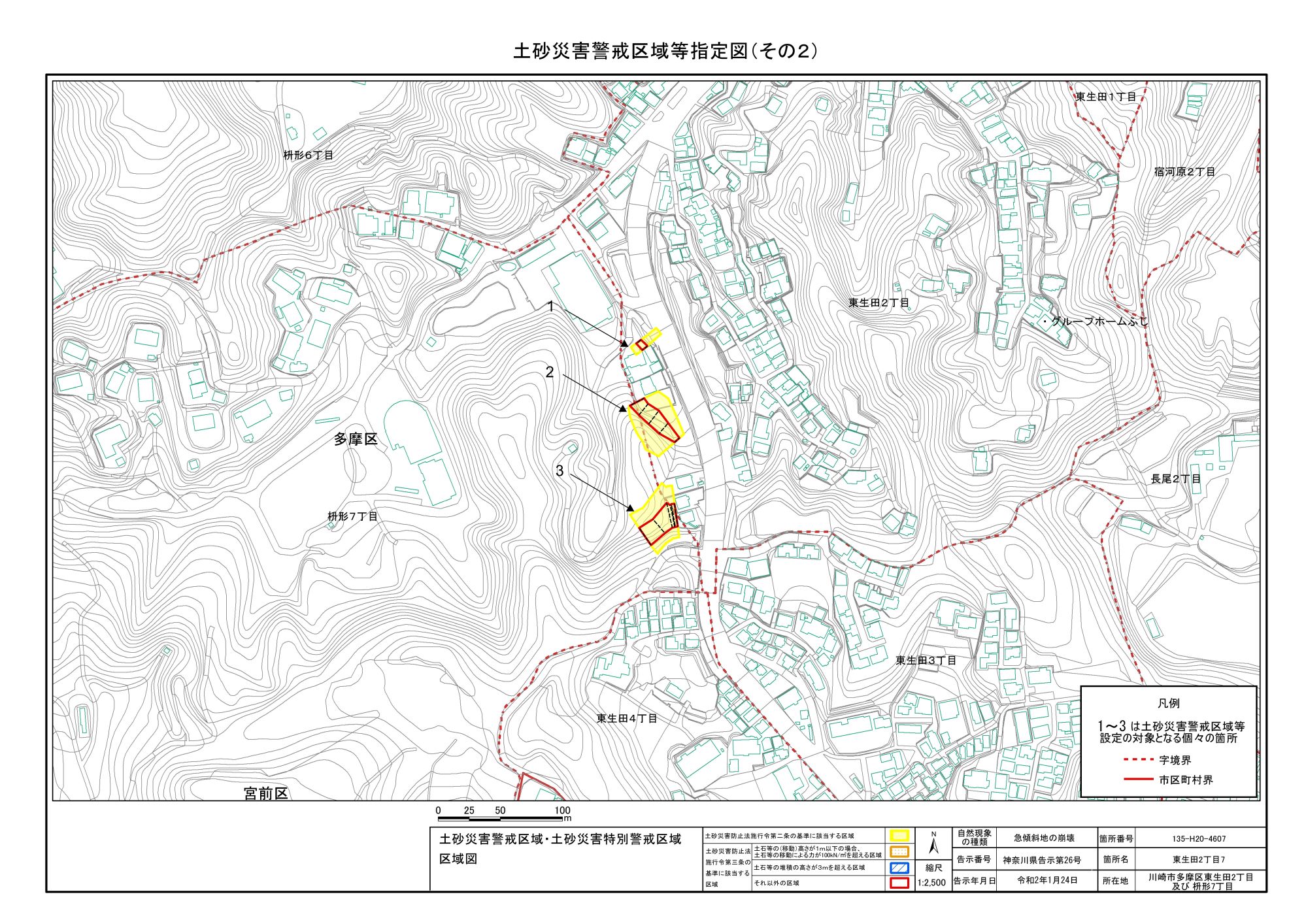 宮前区五所塚1丁目、神木本町1丁目、多摩区長尾2丁目及び長尾3丁目 ※宮前区と多摩区にまたがるため両区に掲載