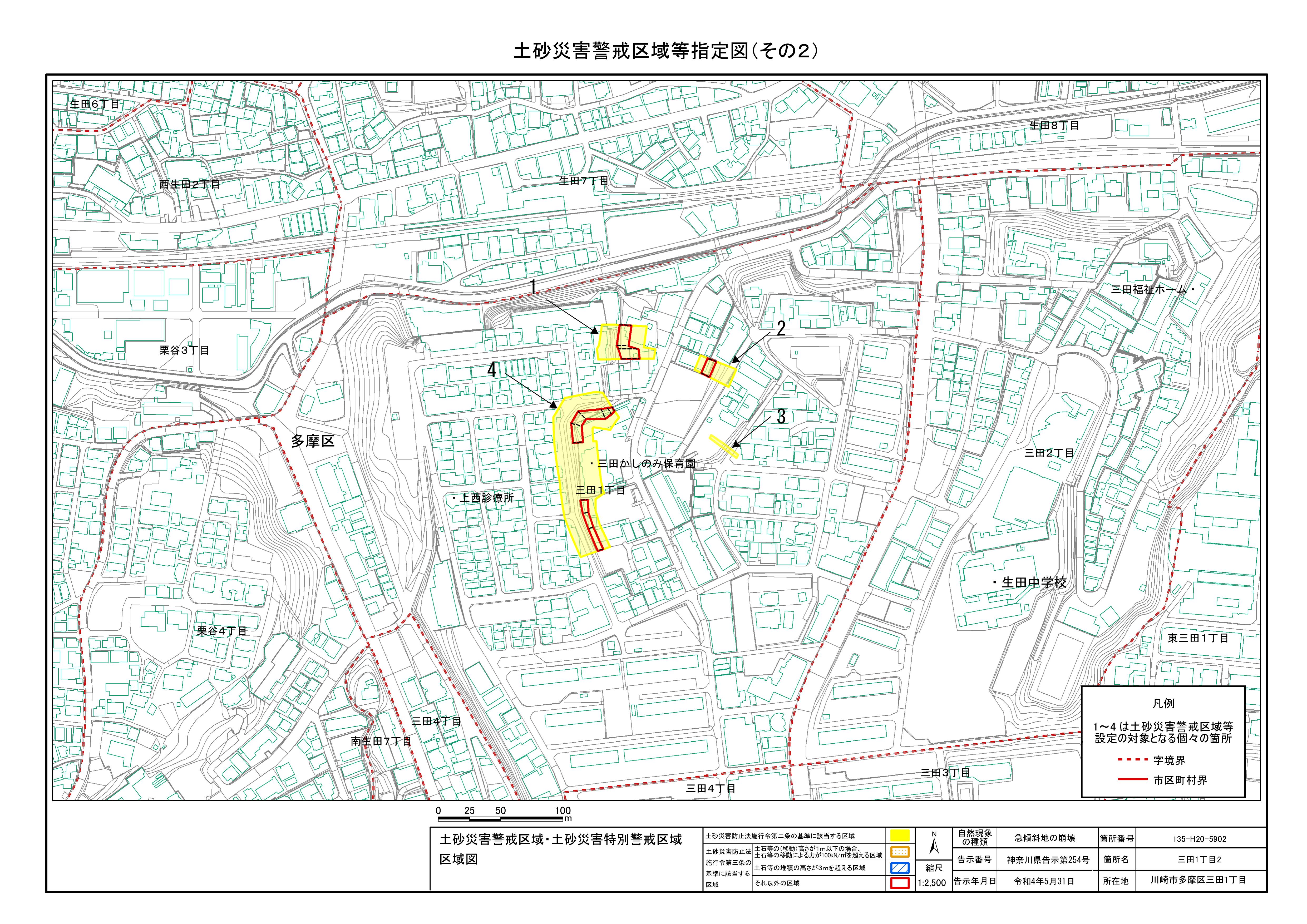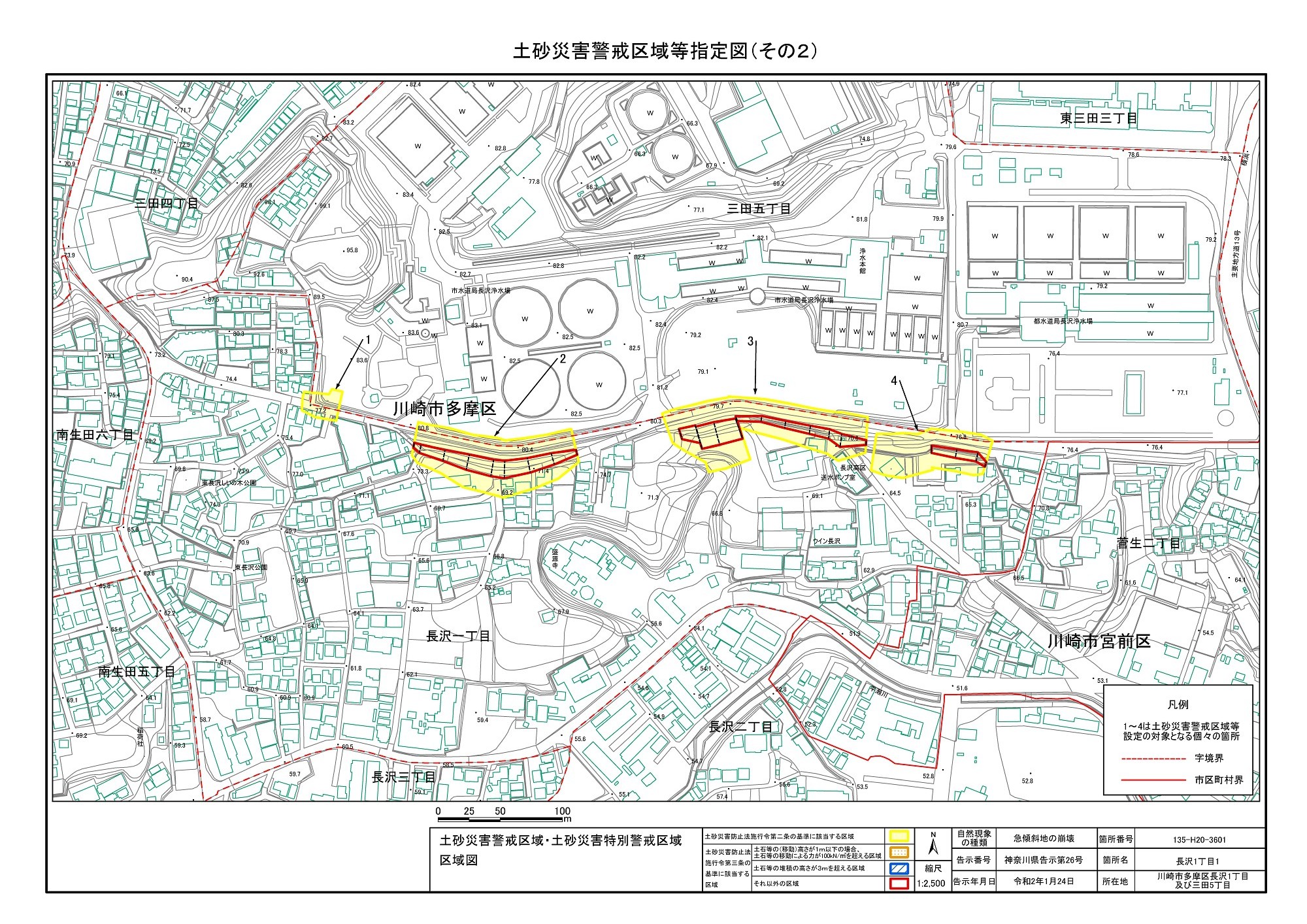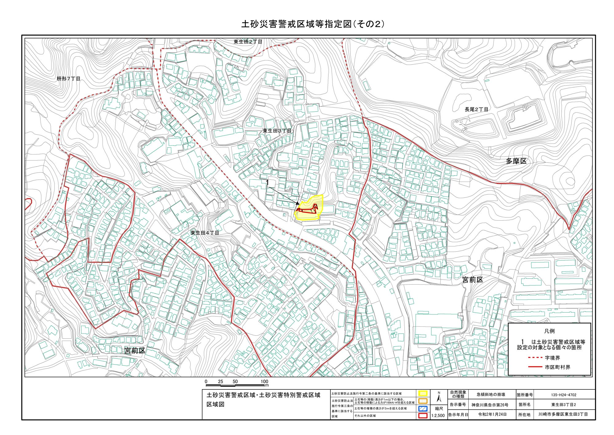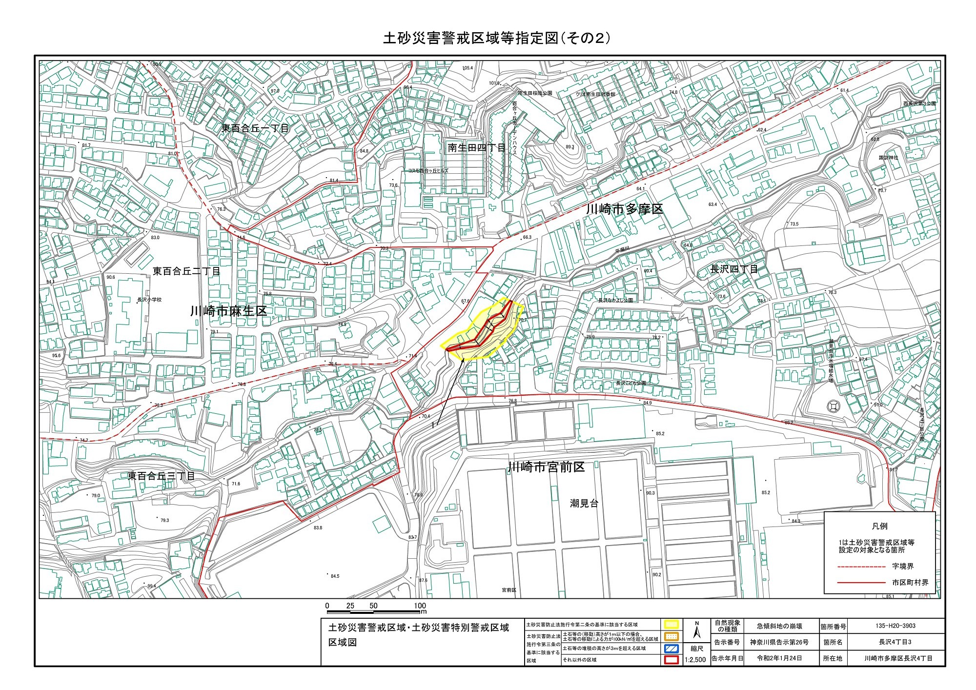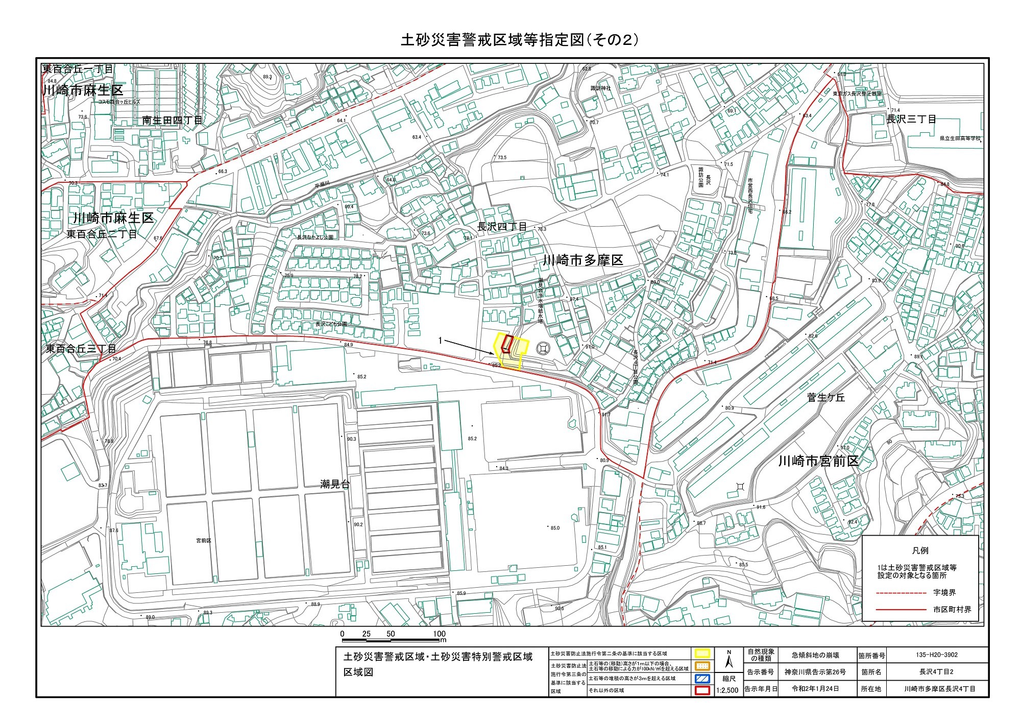 宮前区五所塚1丁目、神木本町1丁目、多摩区長尾2丁目及び長尾3丁目 ※宮前区と多摩区にまたがるため両区に掲載