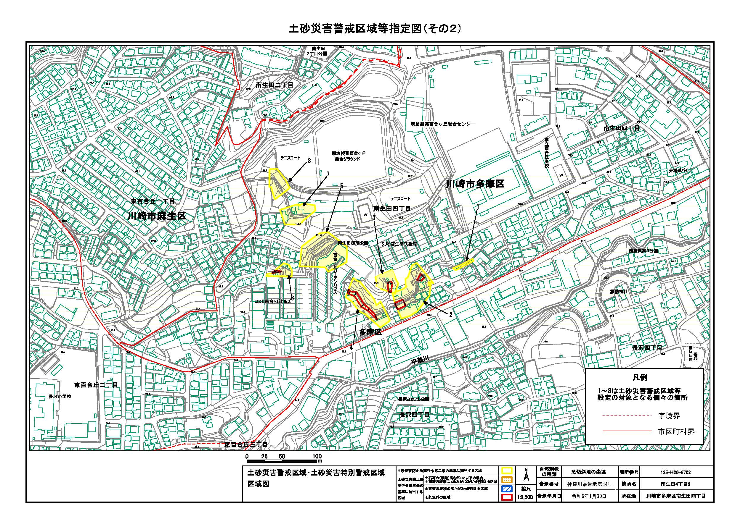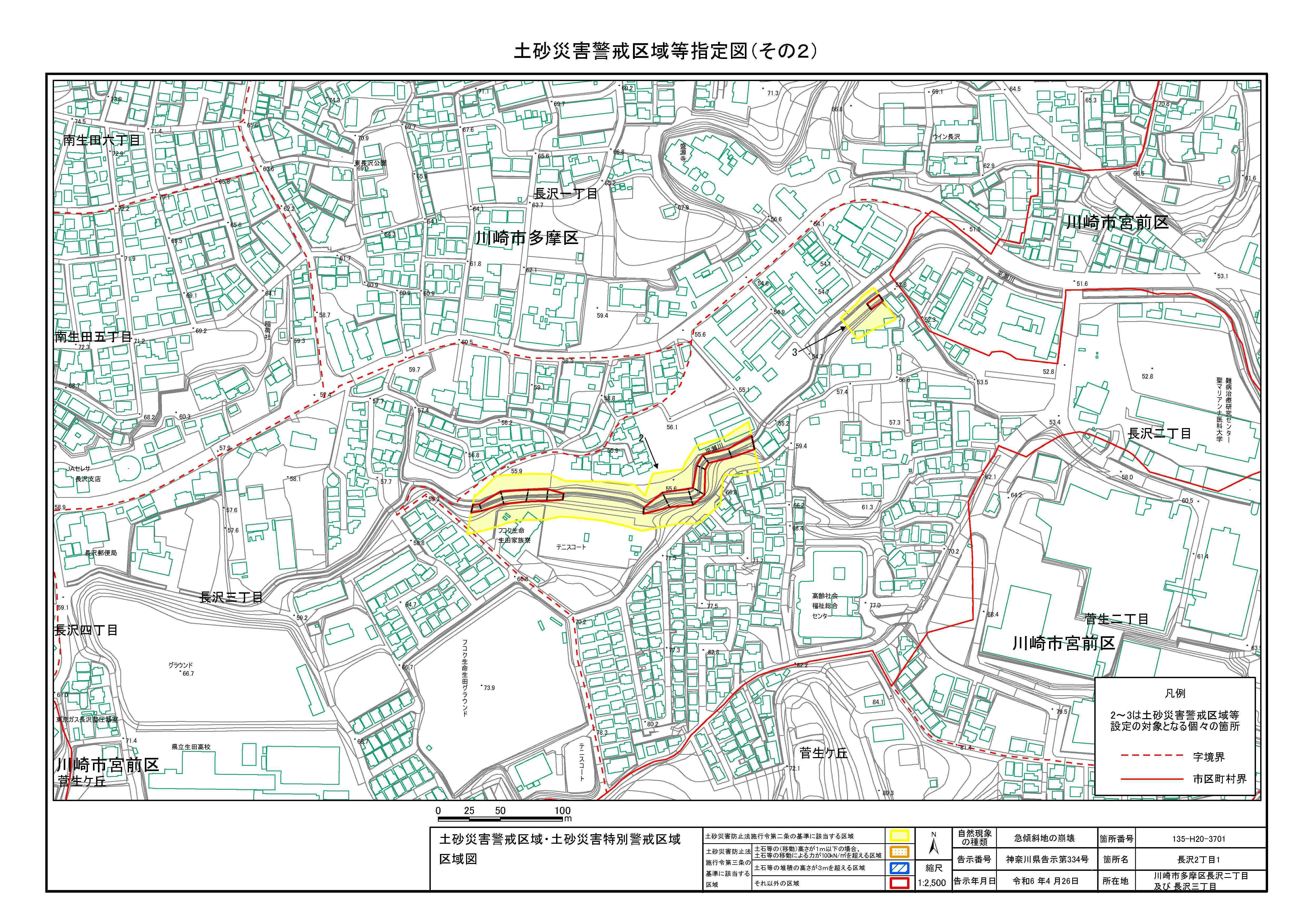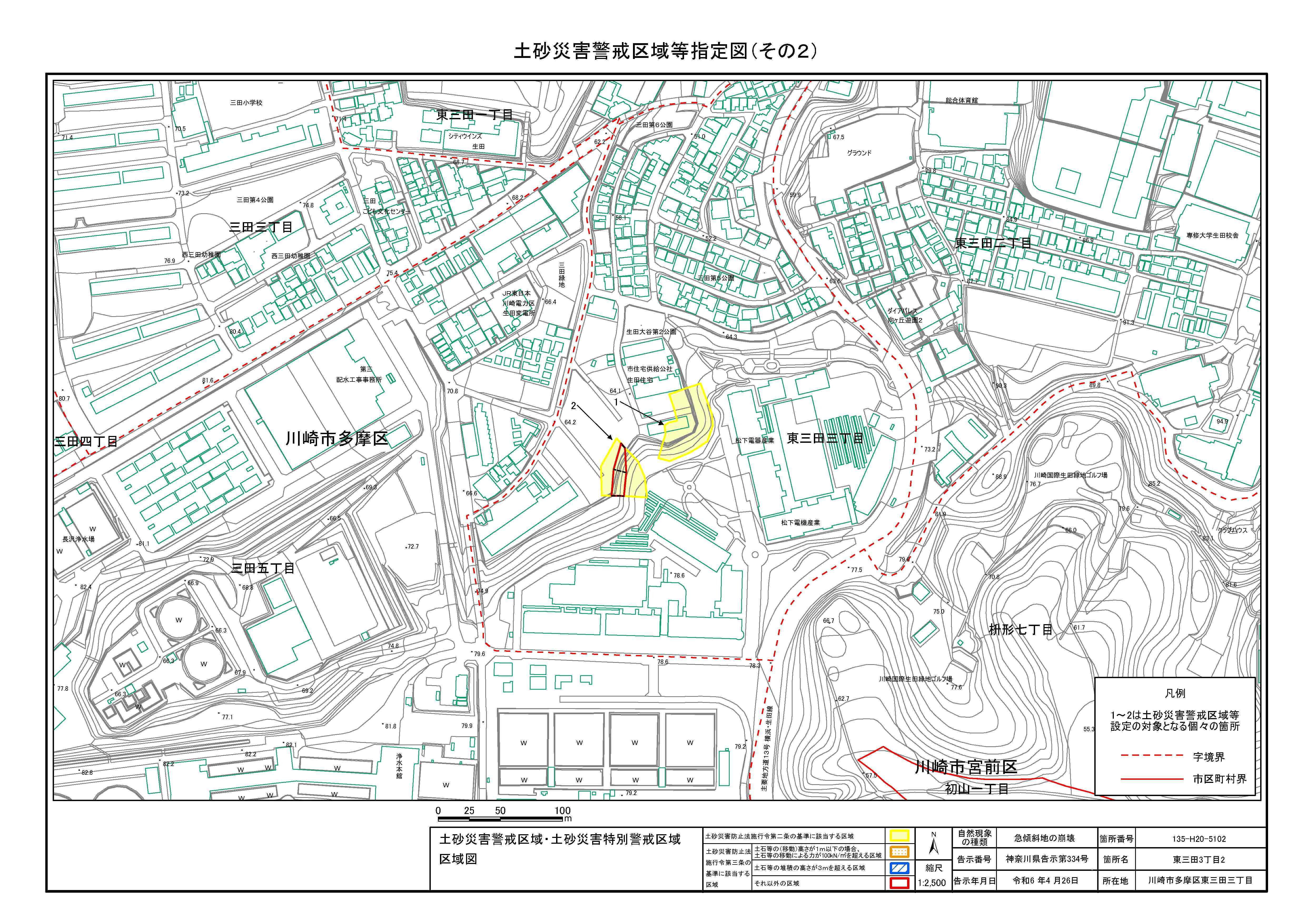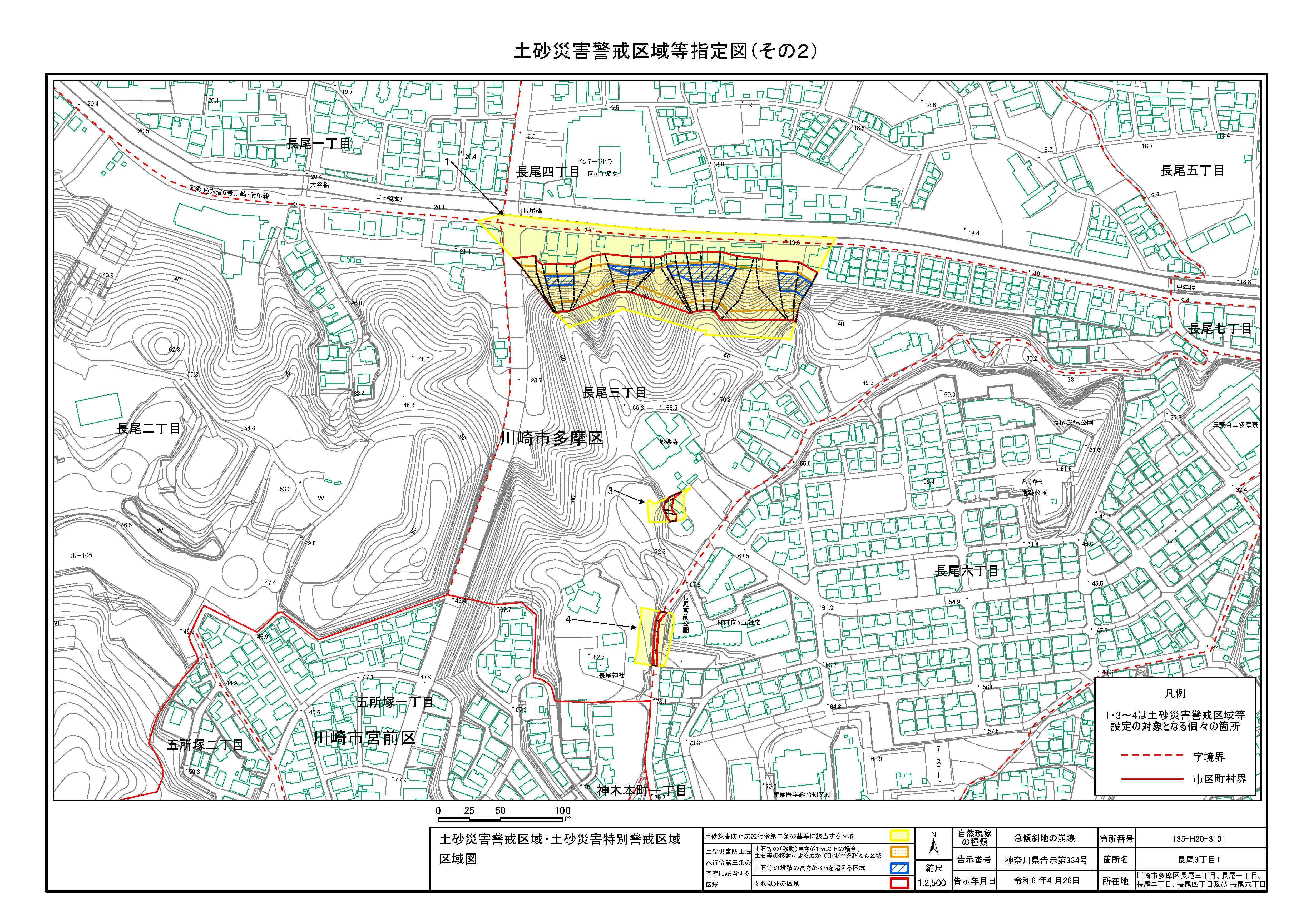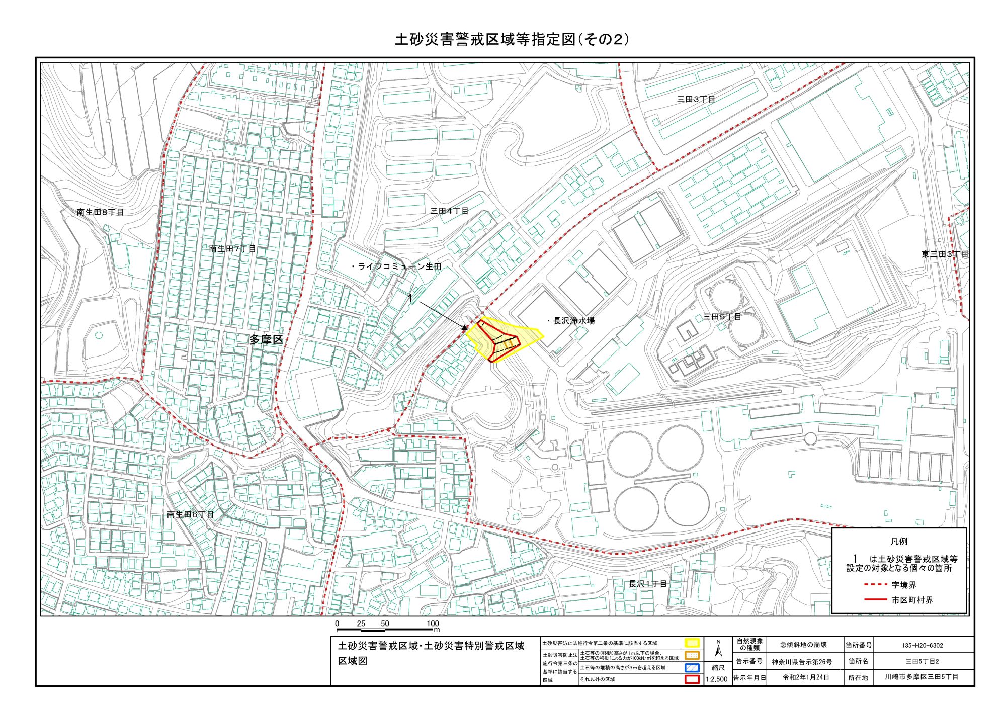 宮前区五所塚1丁目、神木本町1丁目、多摩区長尾2丁目及び長尾3丁目 ※宮前区と多摩区にまたがるため両区に掲載