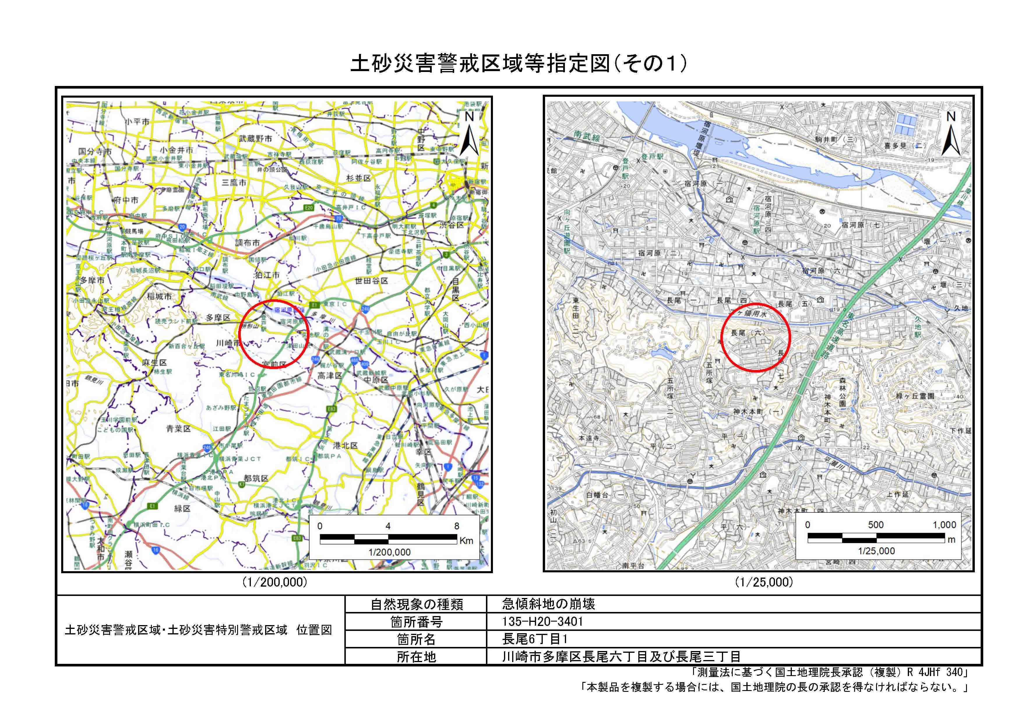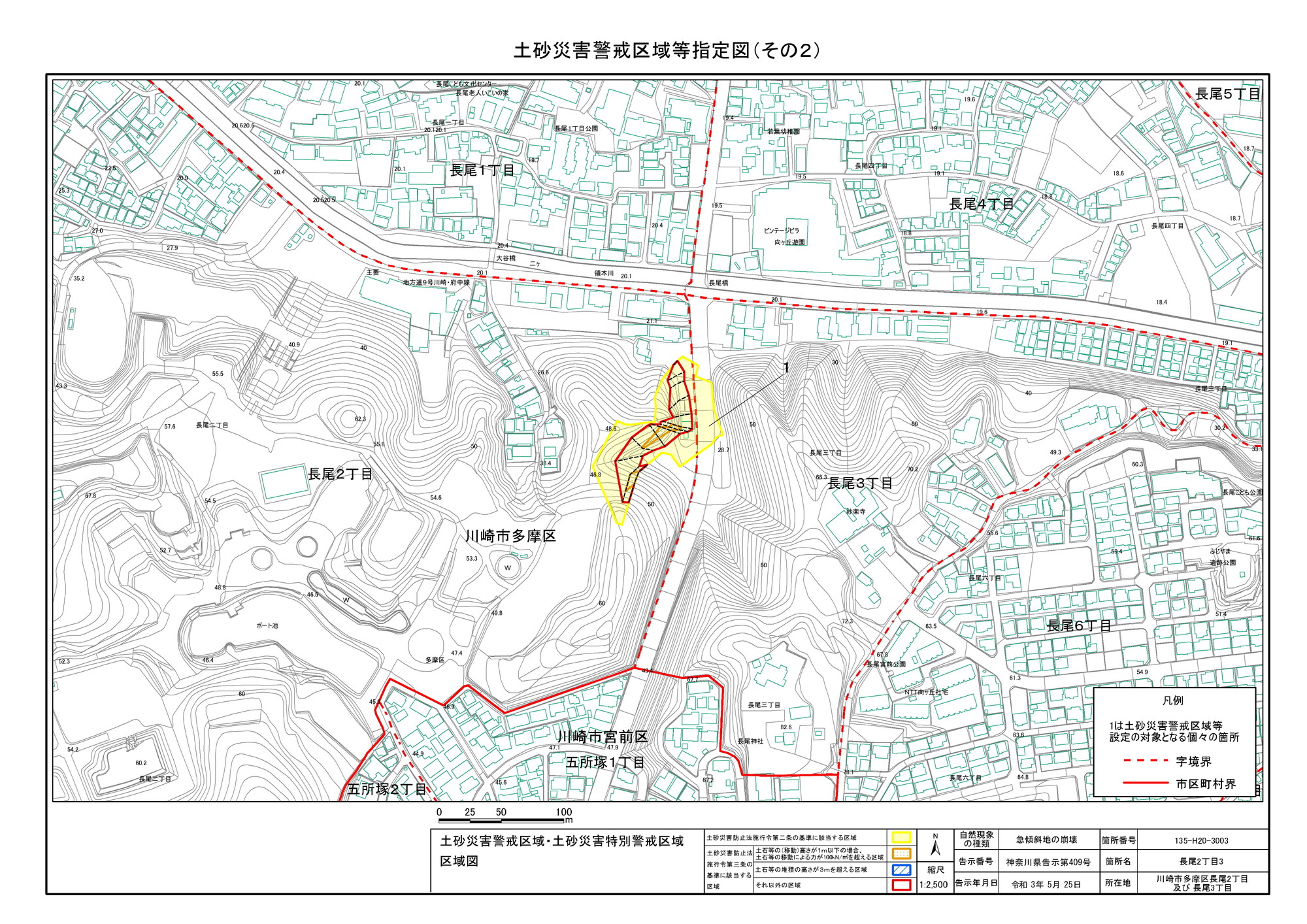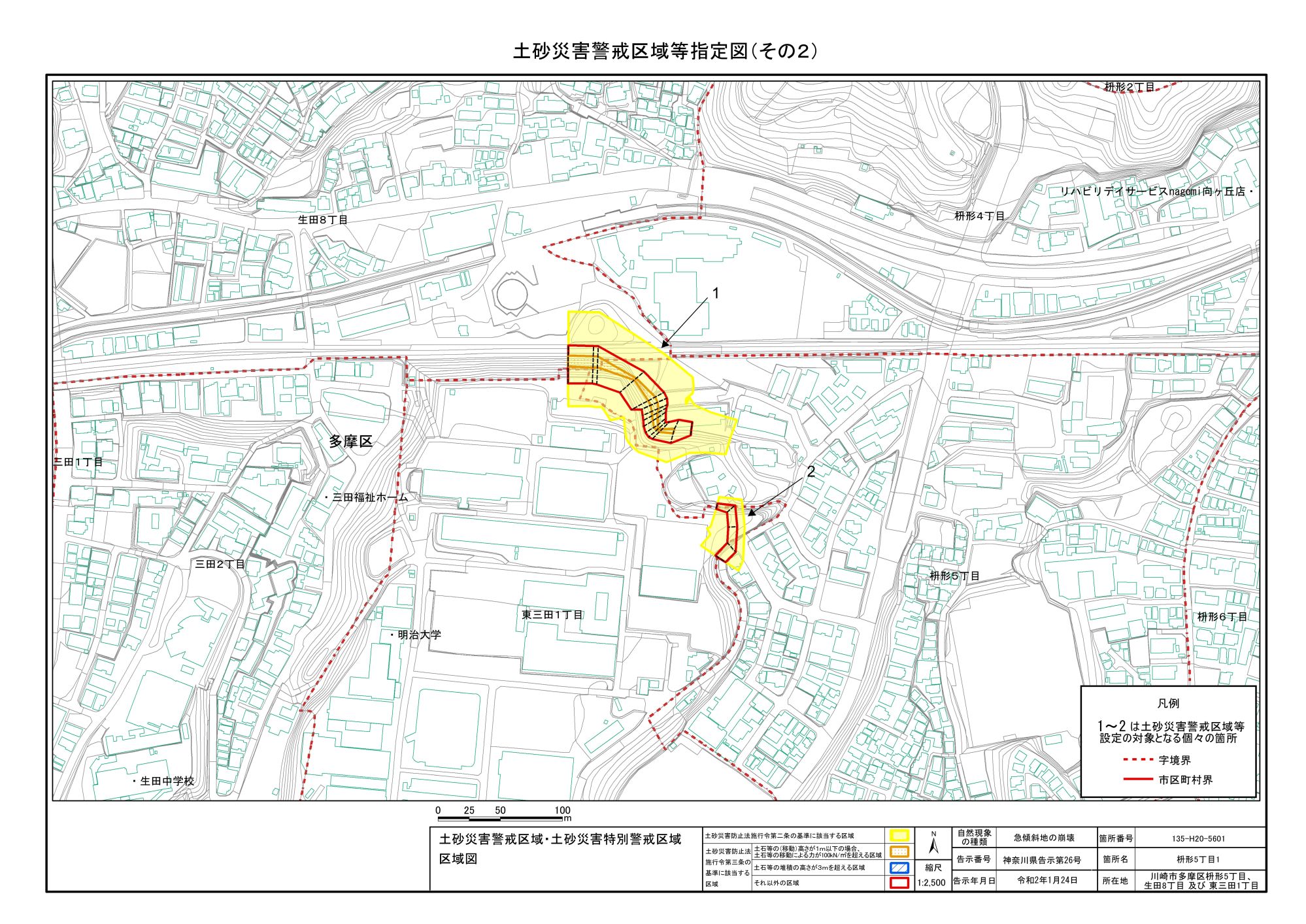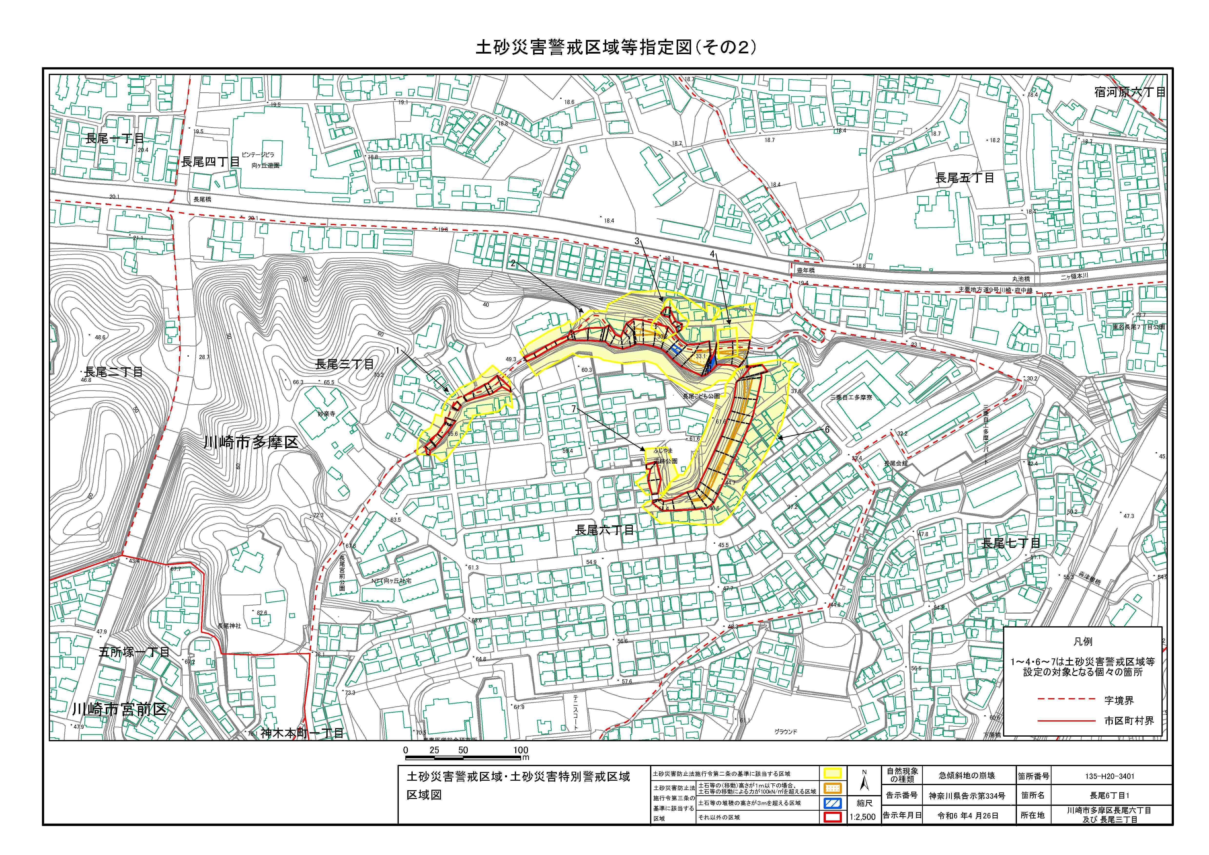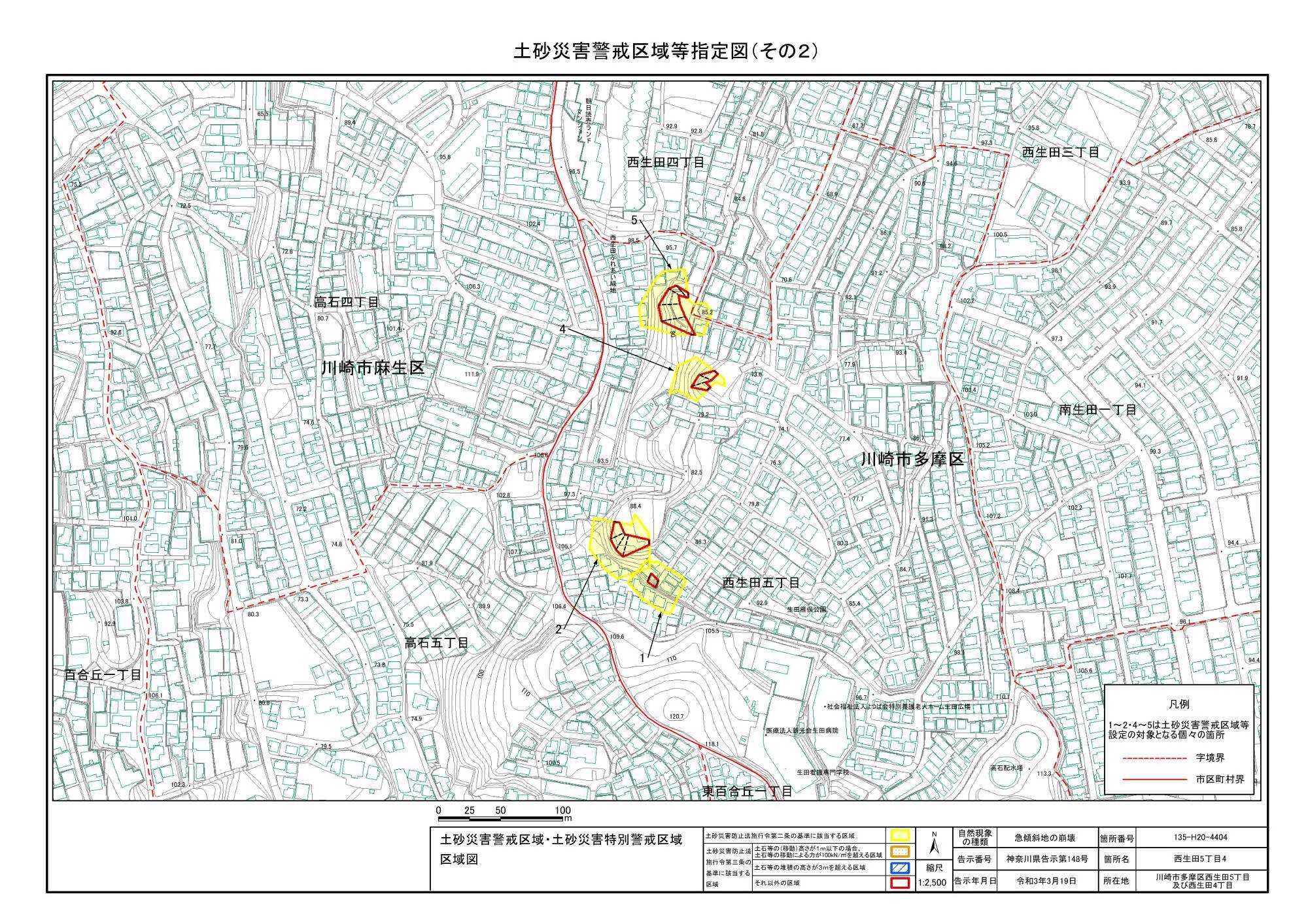 宮前区五所塚1丁目、神木本町1丁目、多摩区長尾2丁目及び長尾3丁目 ※宮前区と多摩区にまたがるため両区に掲載
