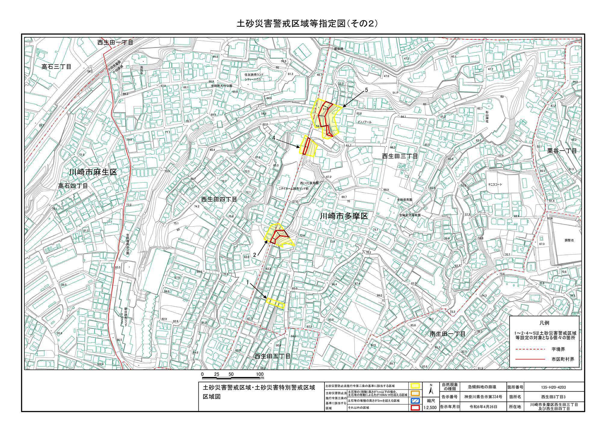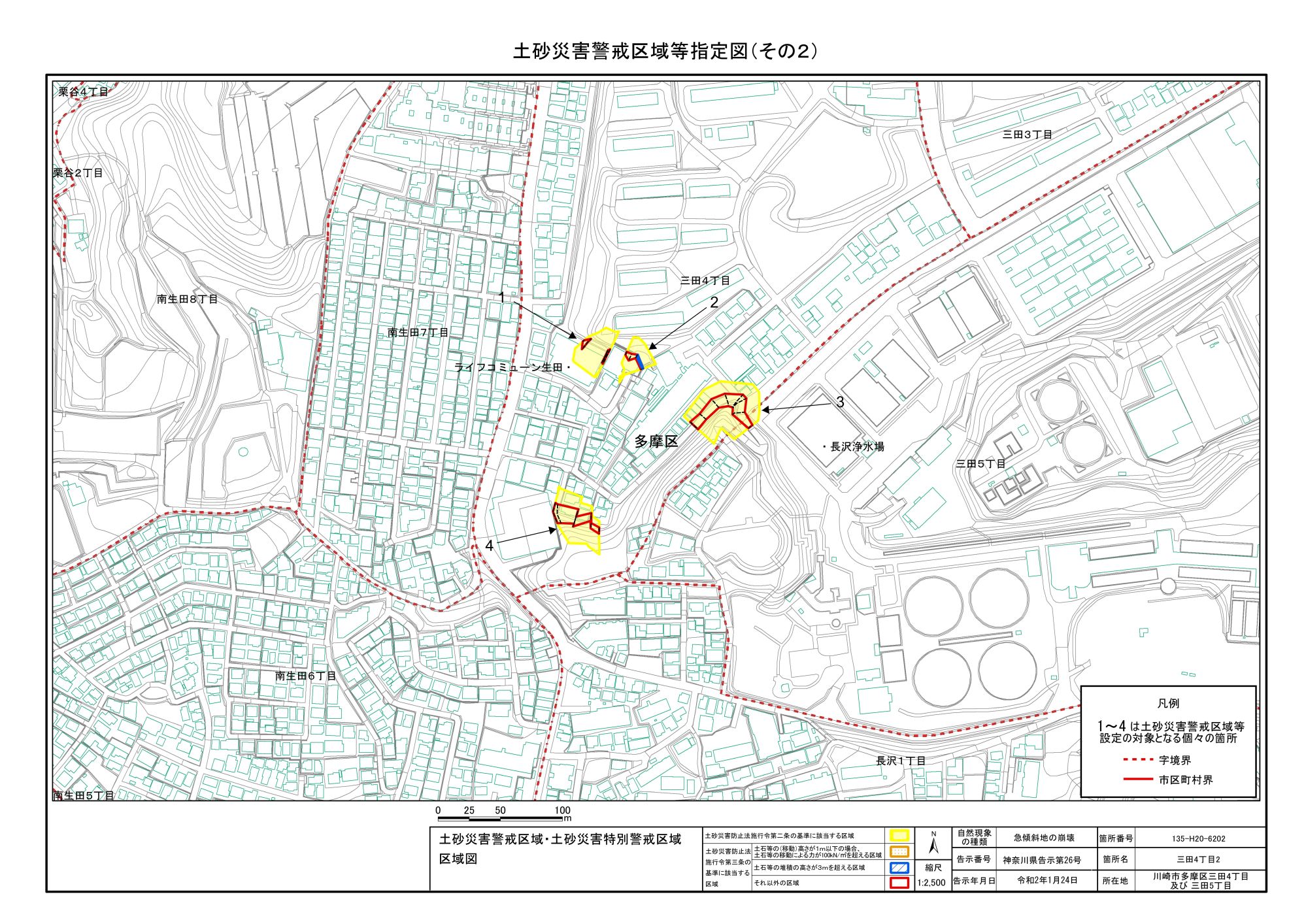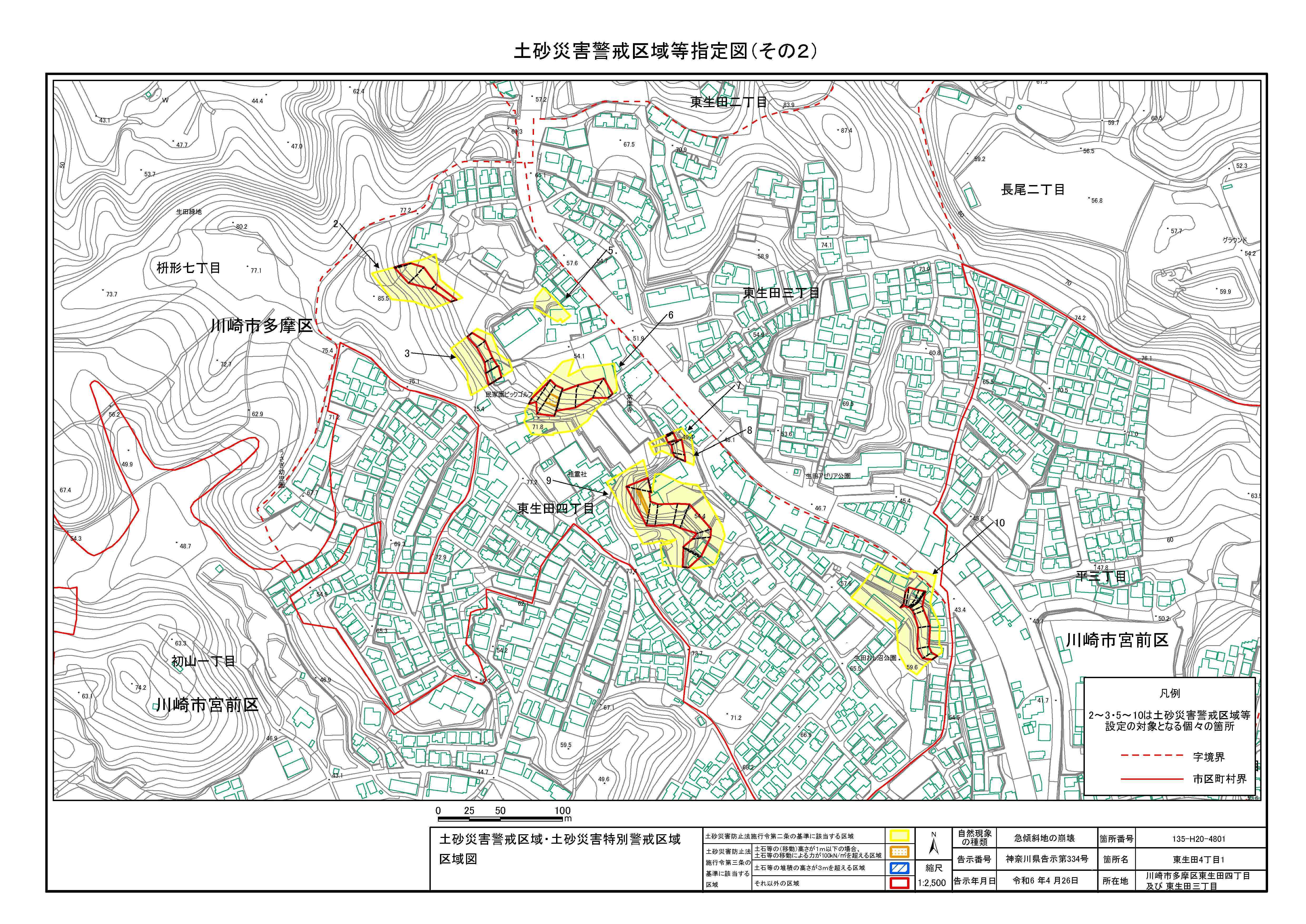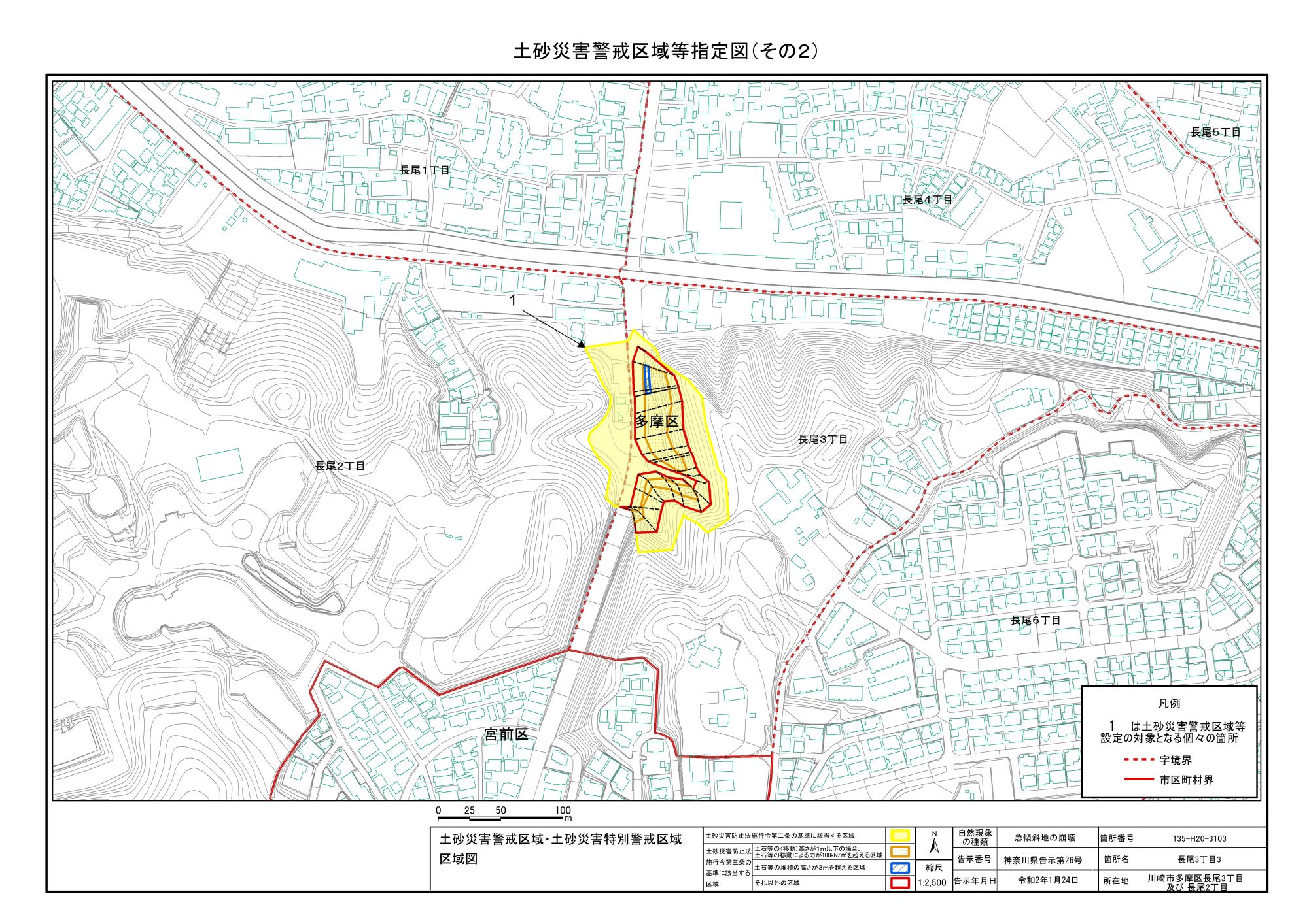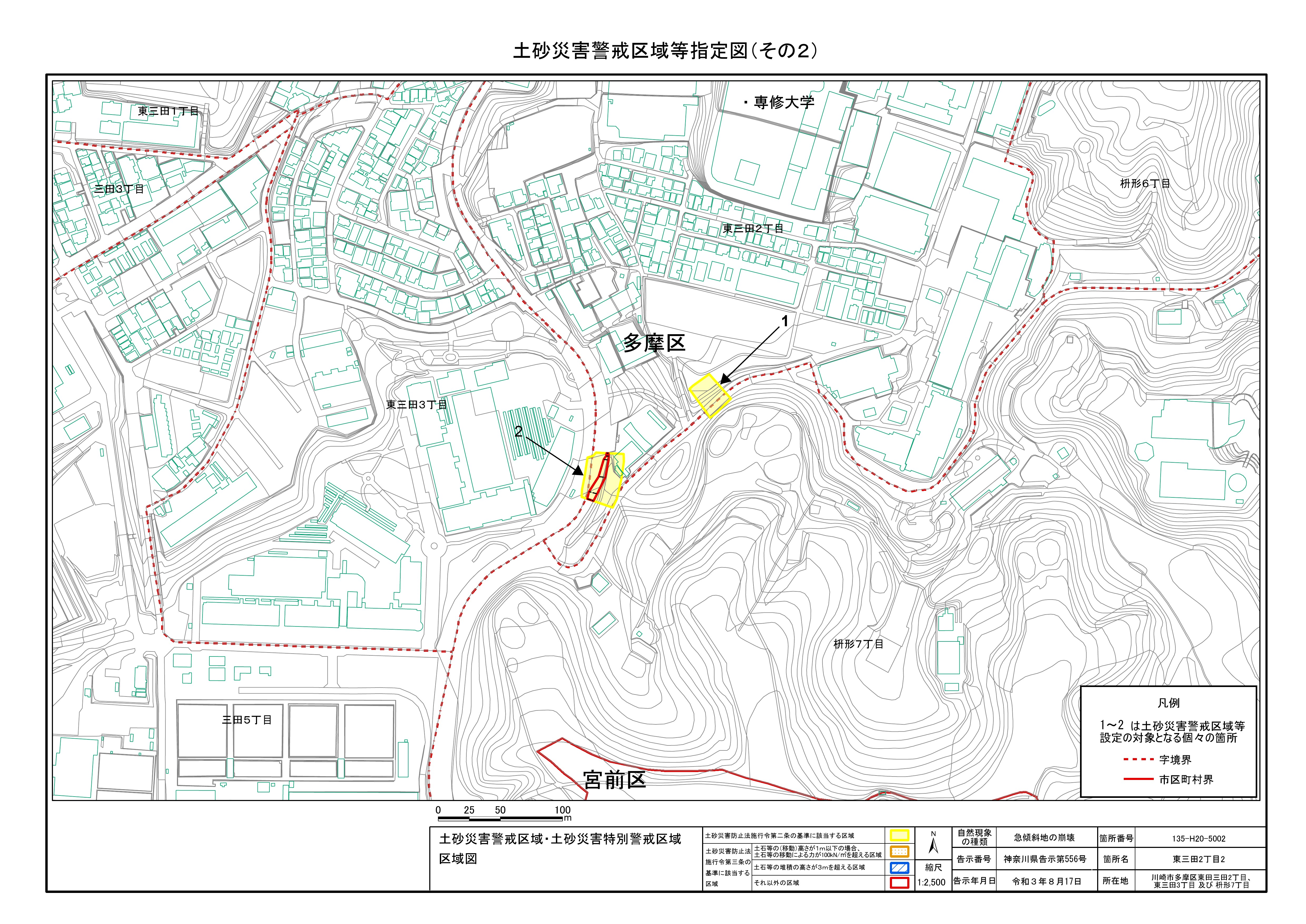 宮前区五所塚1丁目、神木本町1丁目、多摩区長尾2丁目及び長尾3丁目 ※宮前区と多摩区にまたがるため両区に掲載