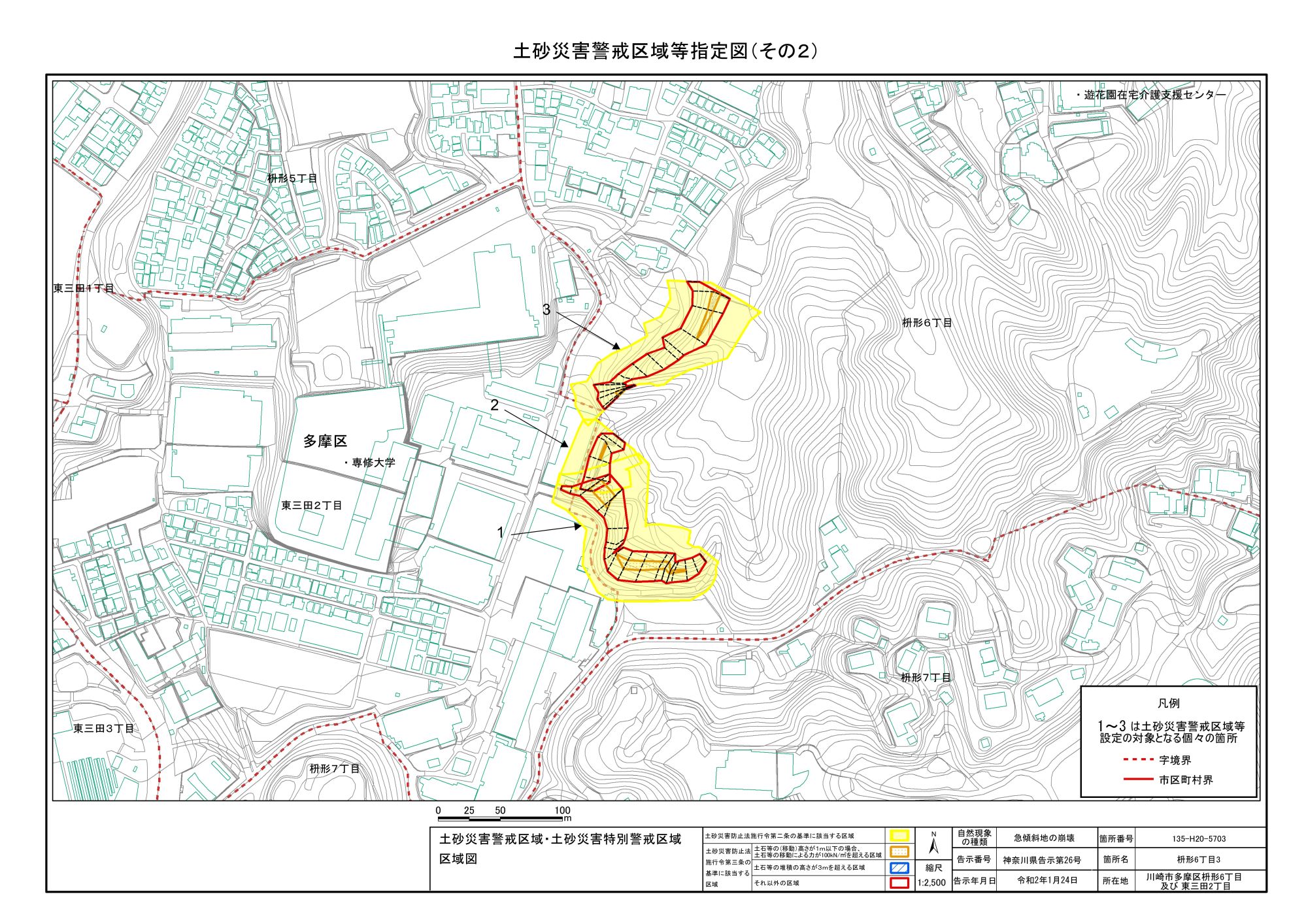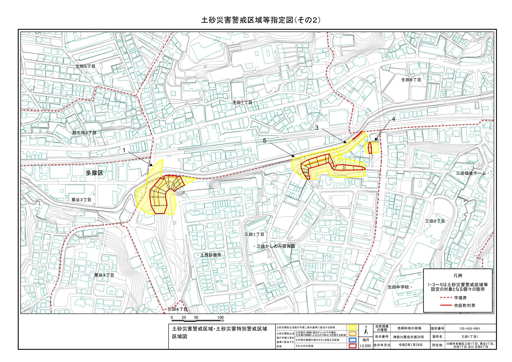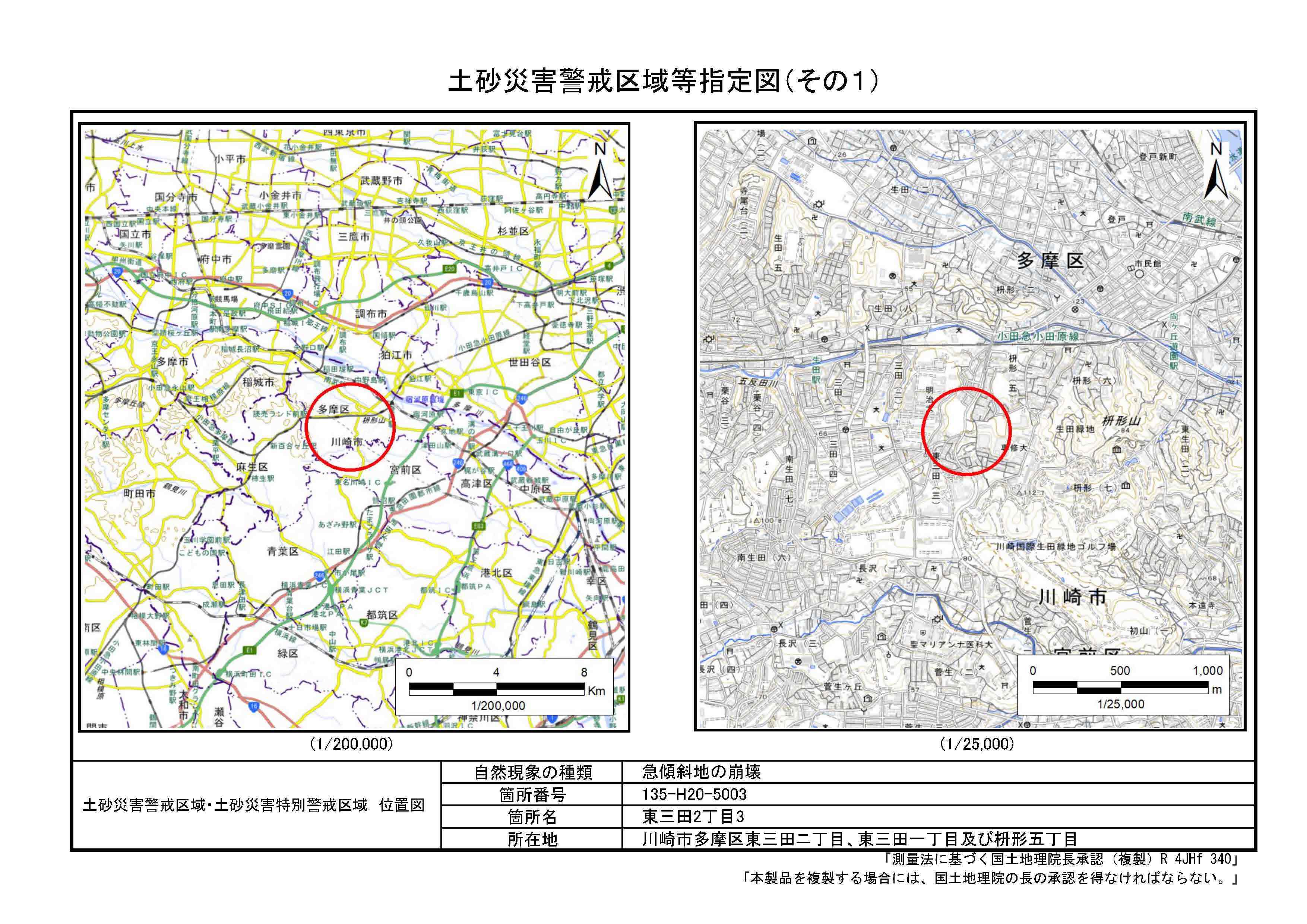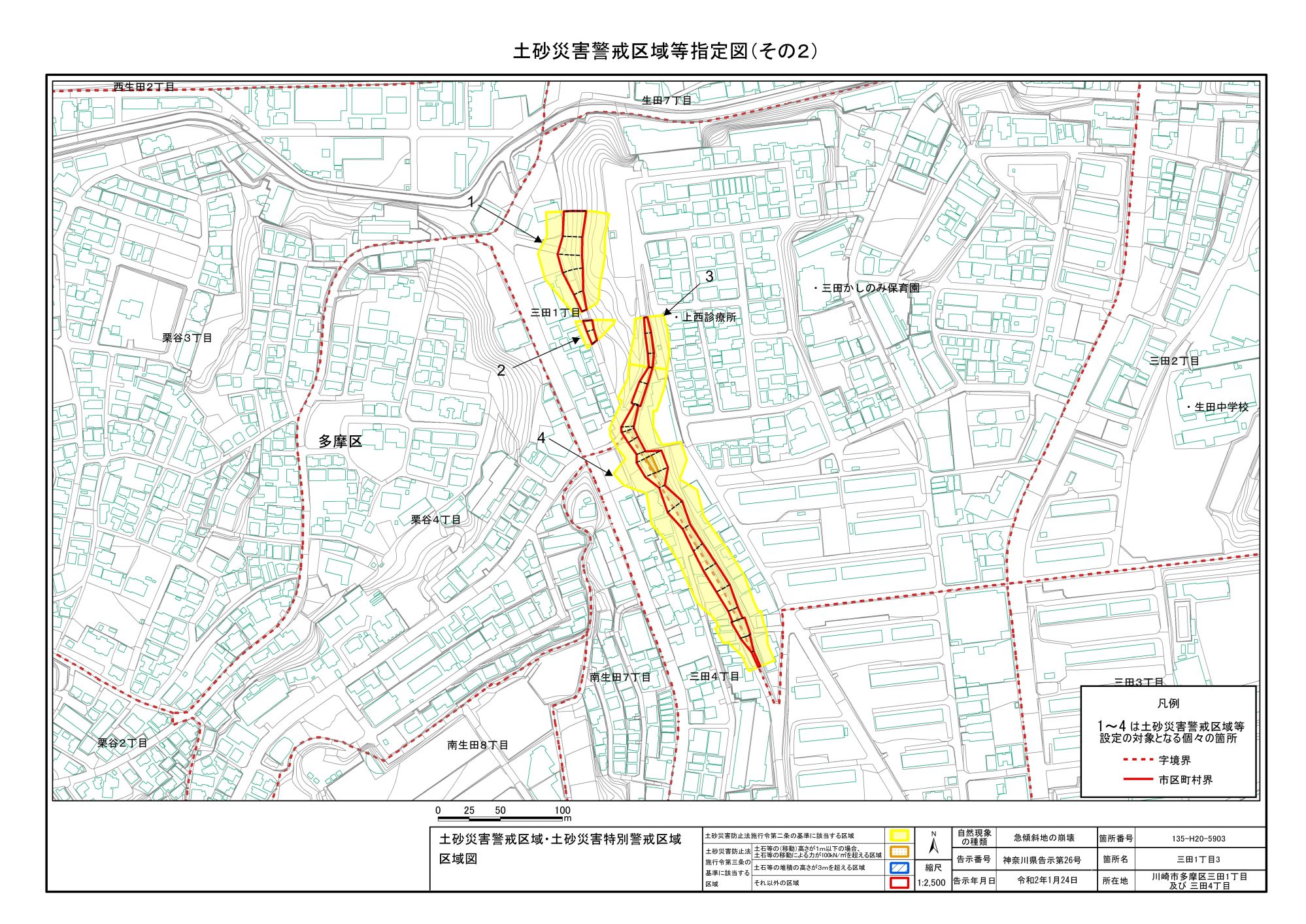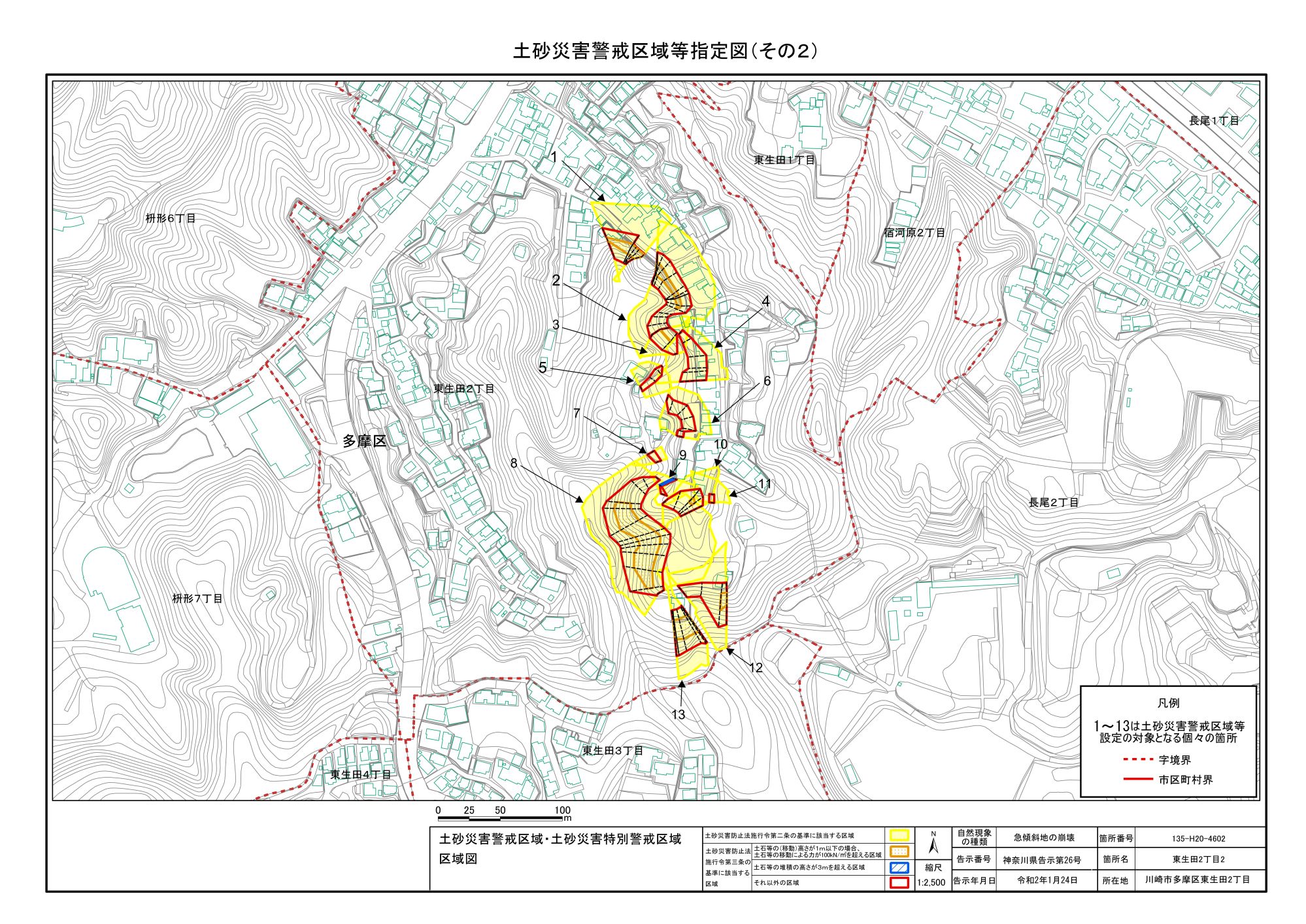 宮前区五所塚1丁目、神木本町1丁目、多摩区長尾2丁目及び長尾3丁目 ※宮前区と多摩区にまたがるため両区に掲載