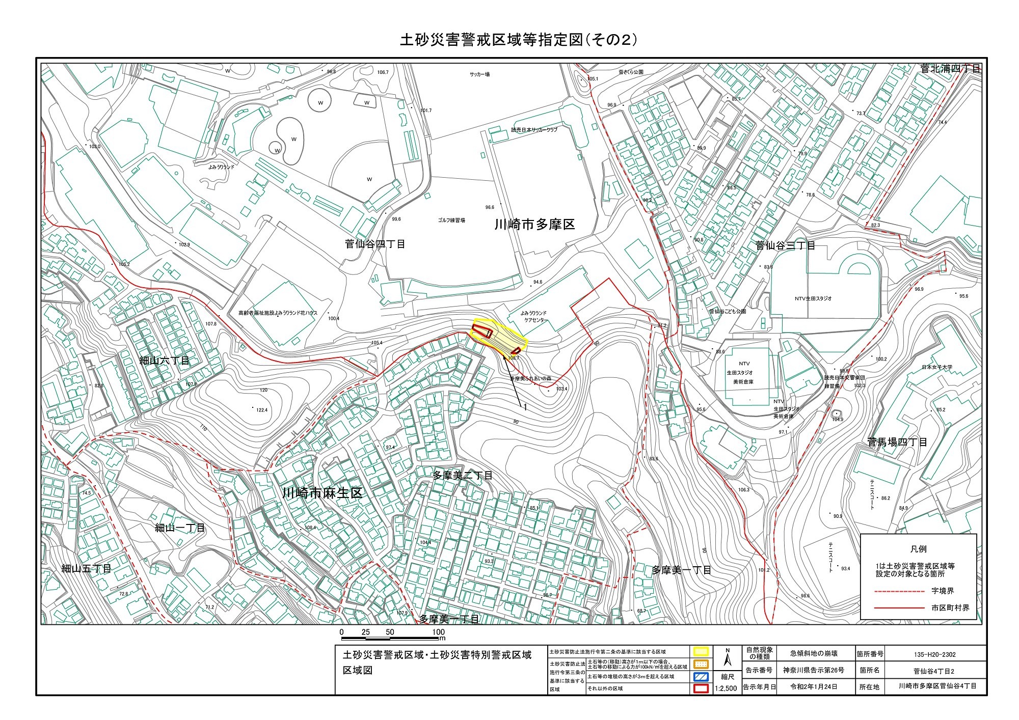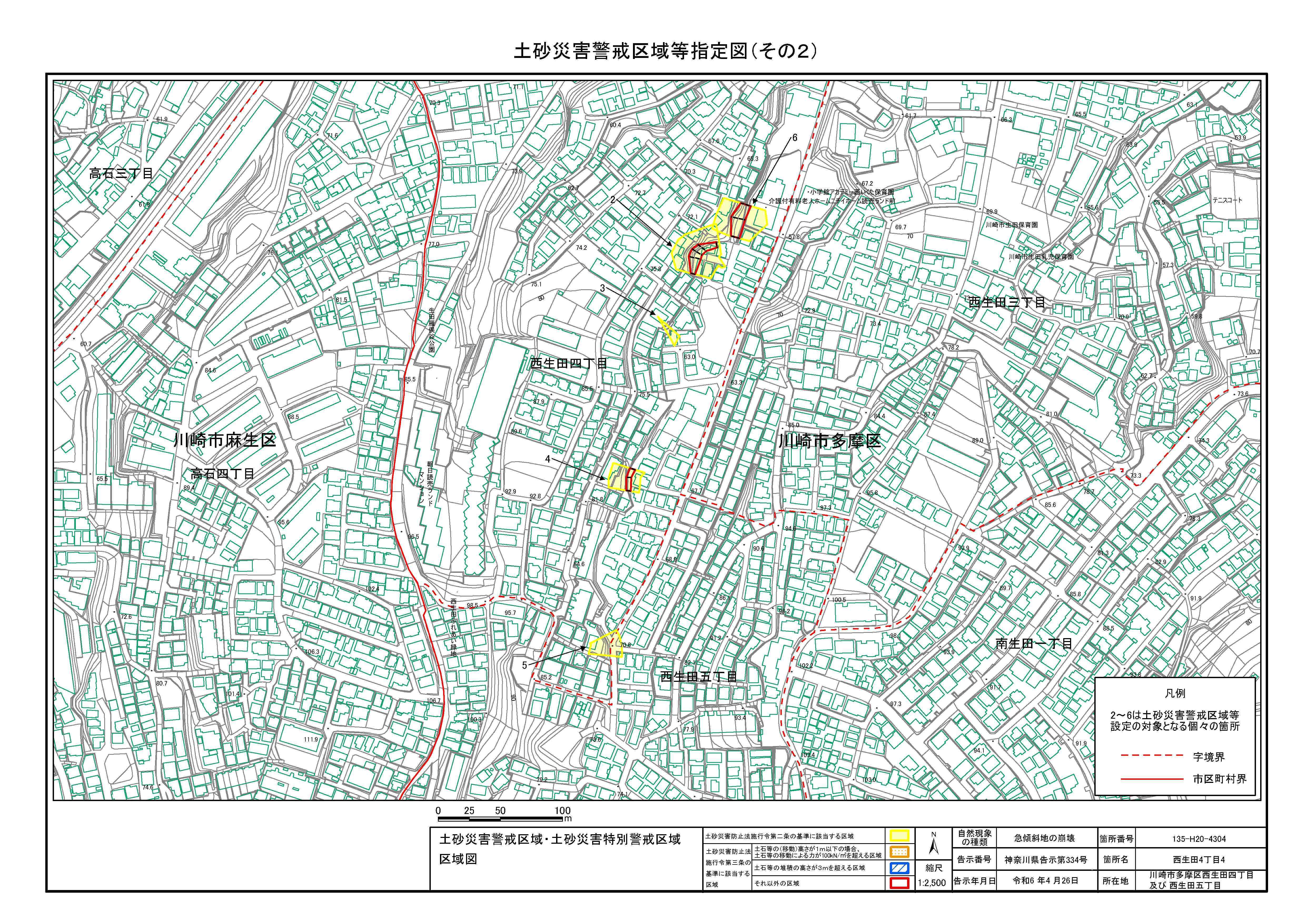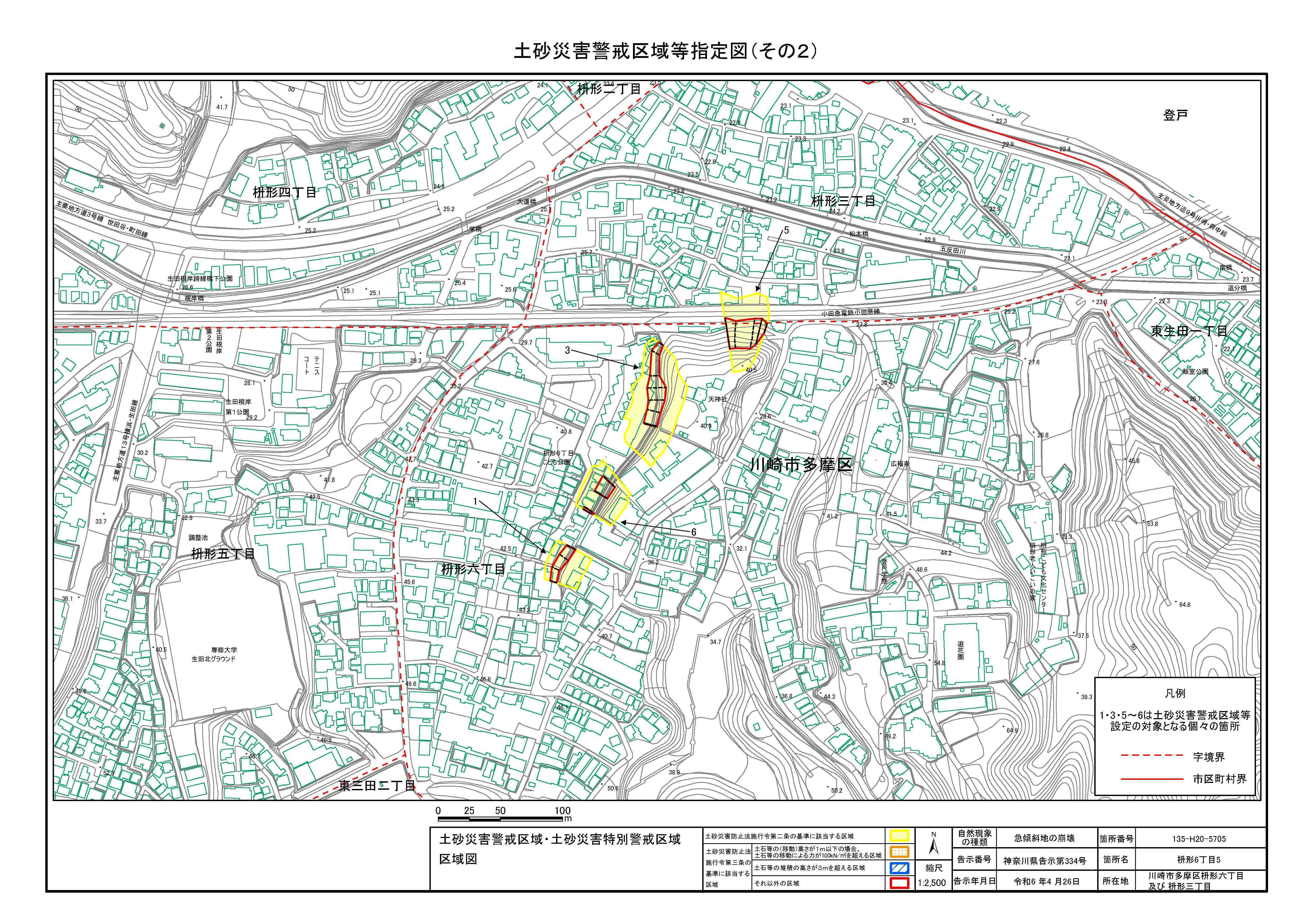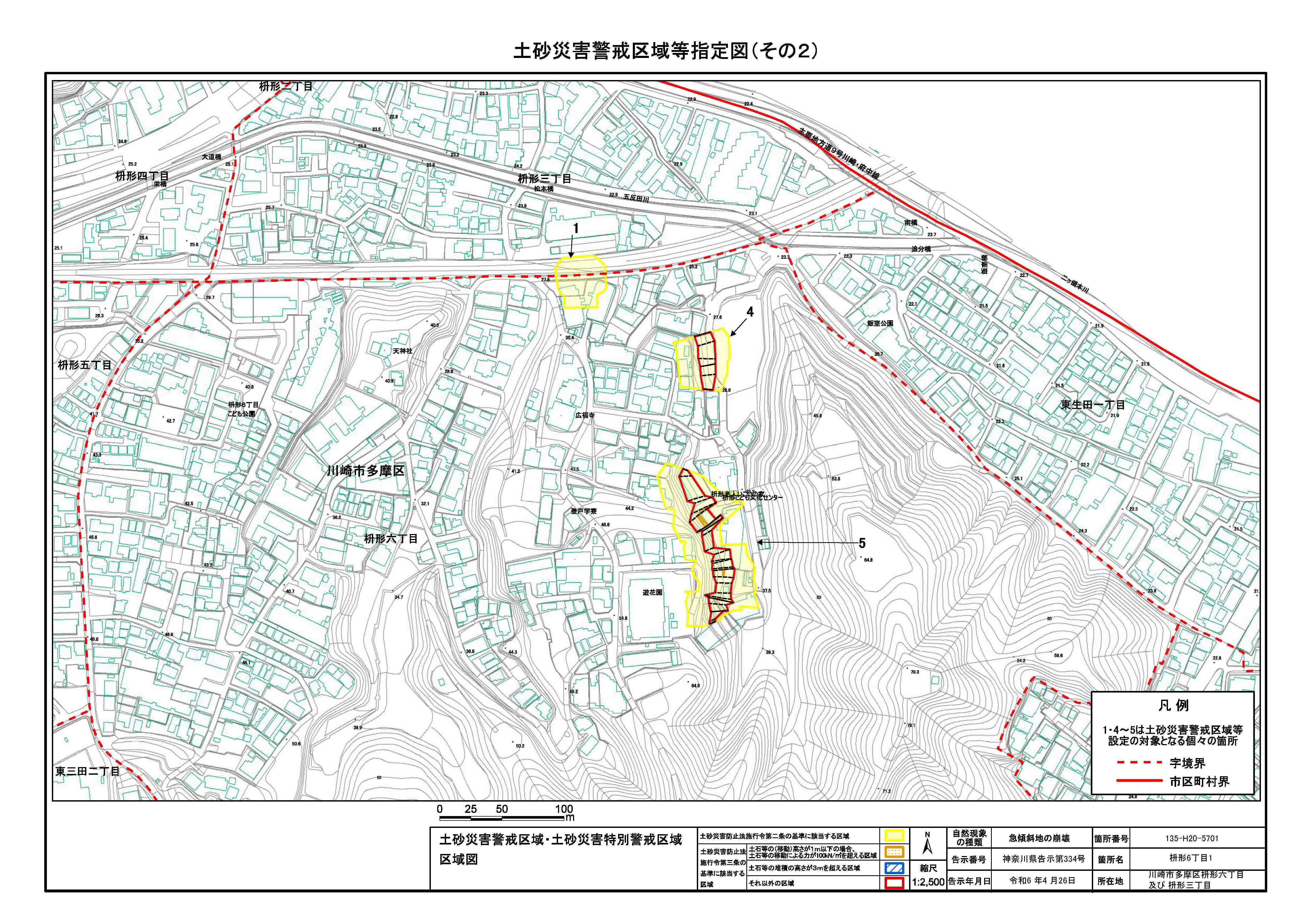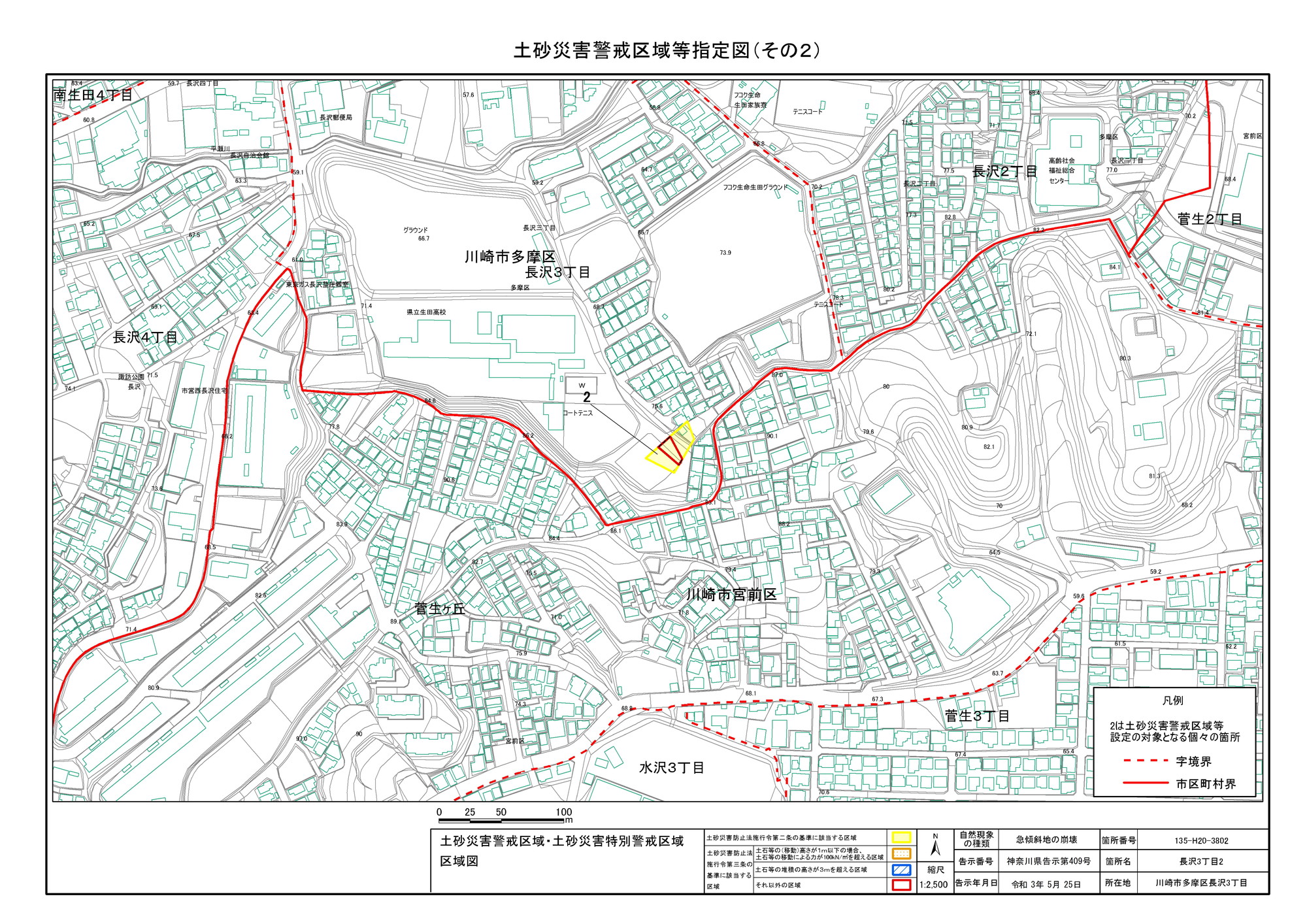 宮前区五所塚1丁目、神木本町1丁目、多摩区長尾2丁目及び長尾3丁目 ※宮前区と多摩区にまたがるため両区に掲載