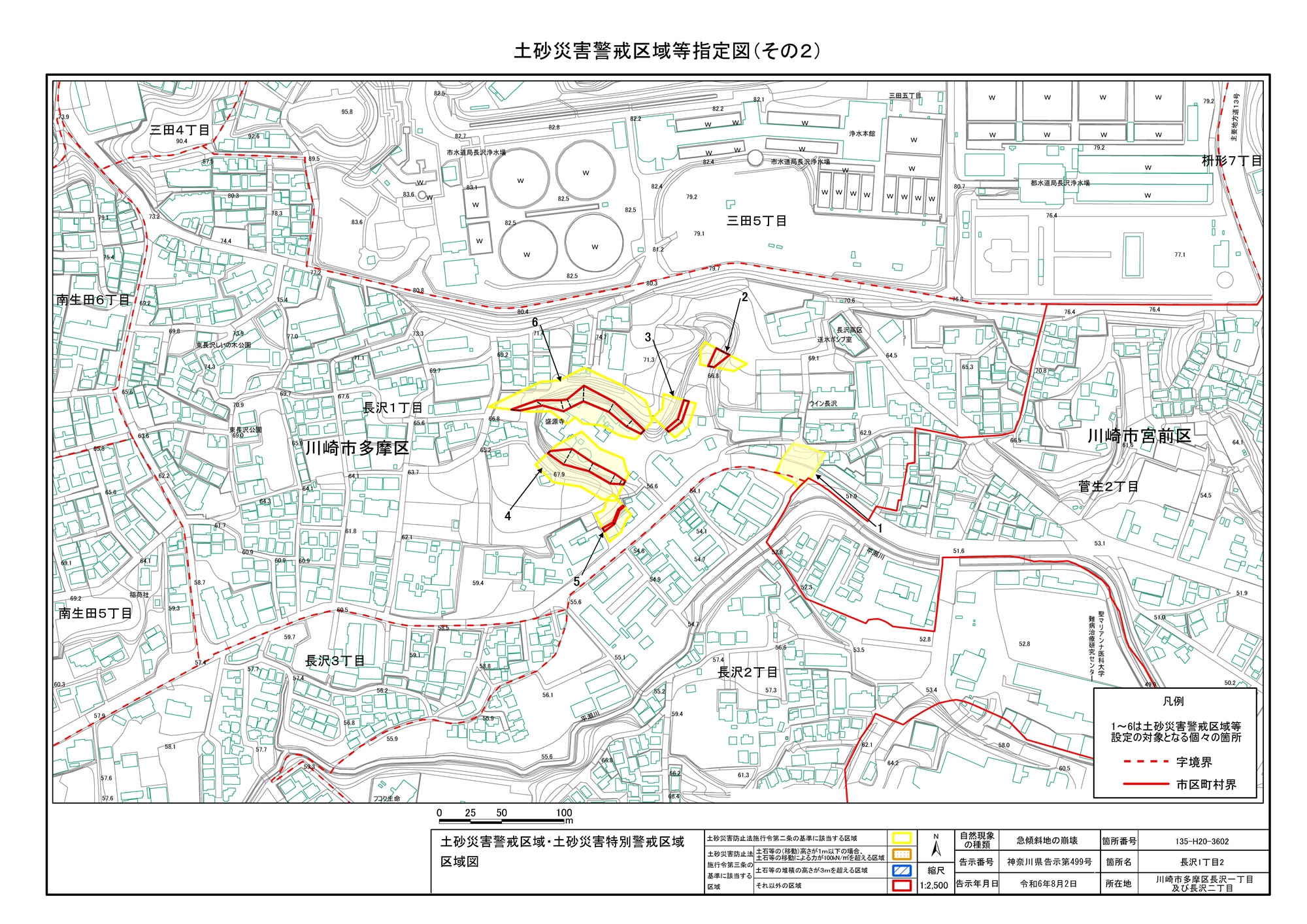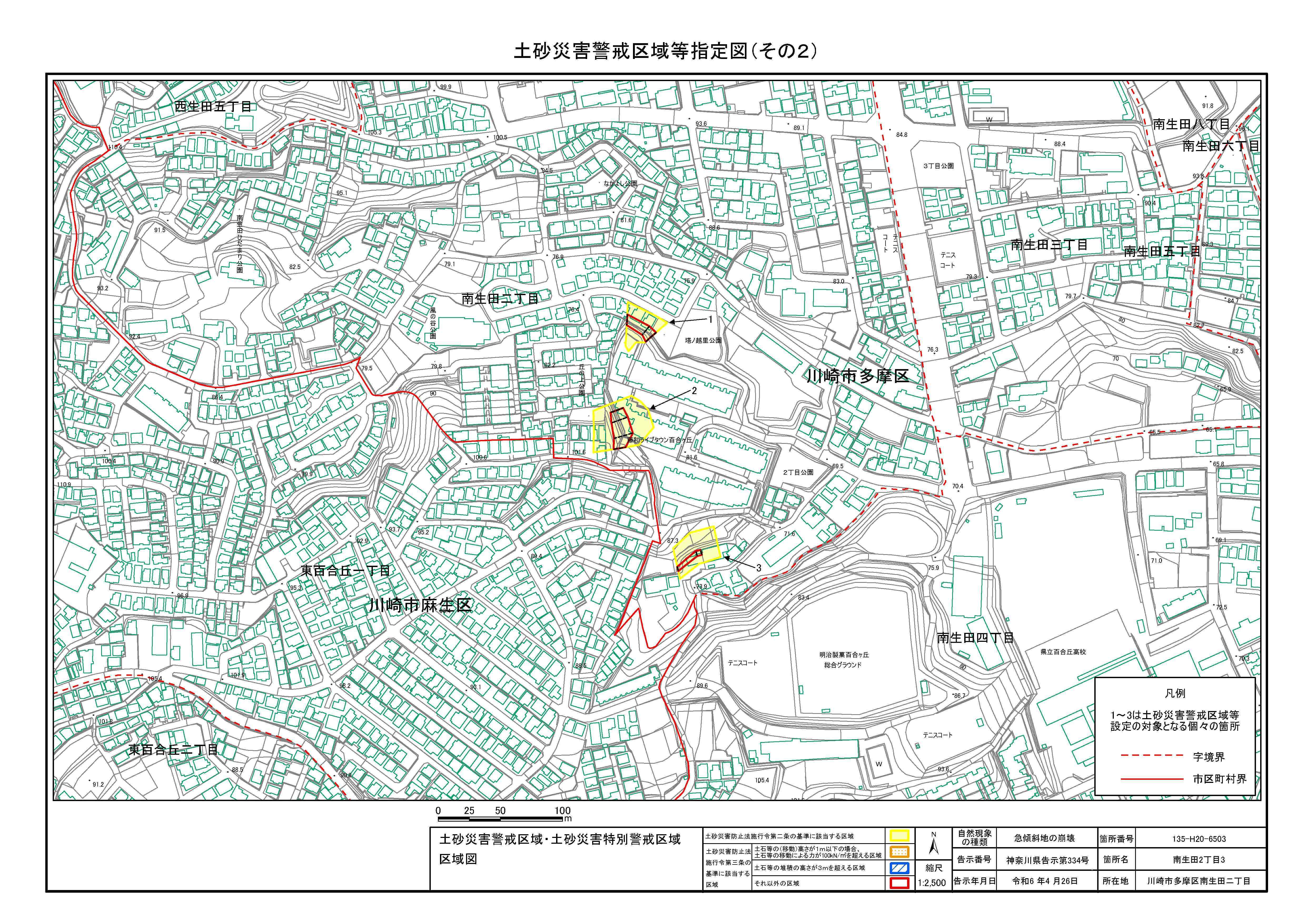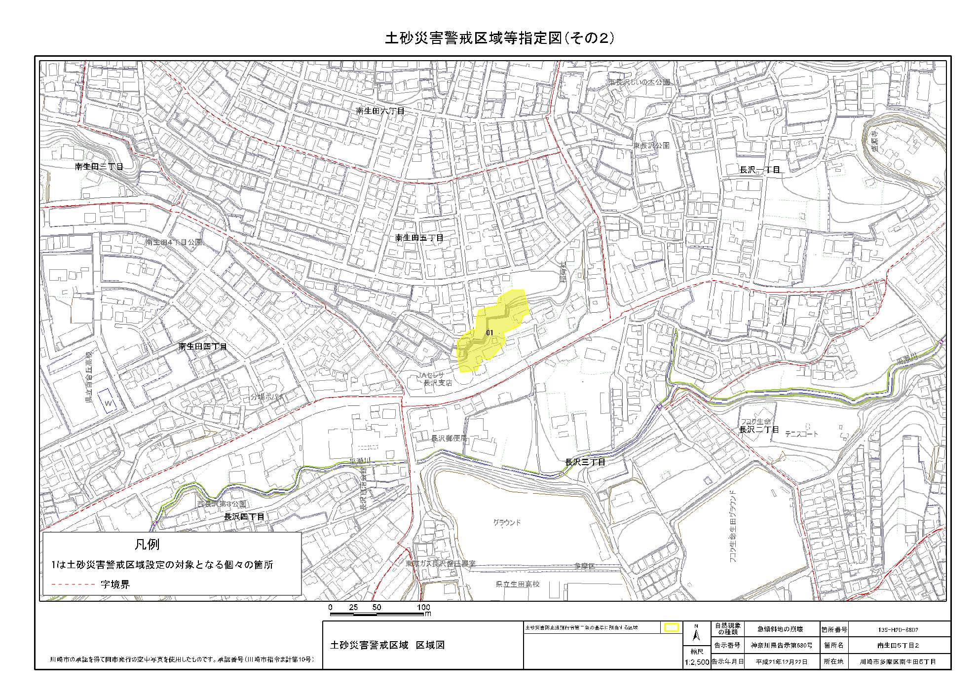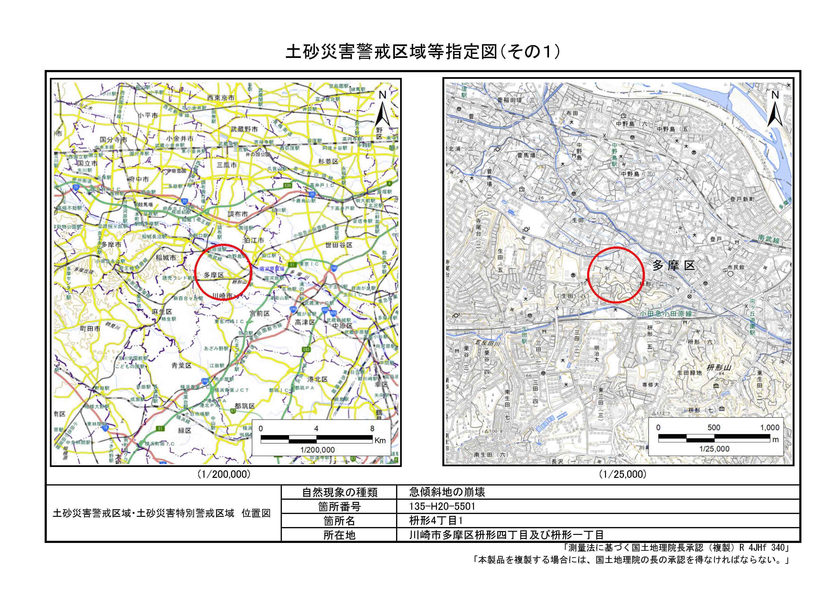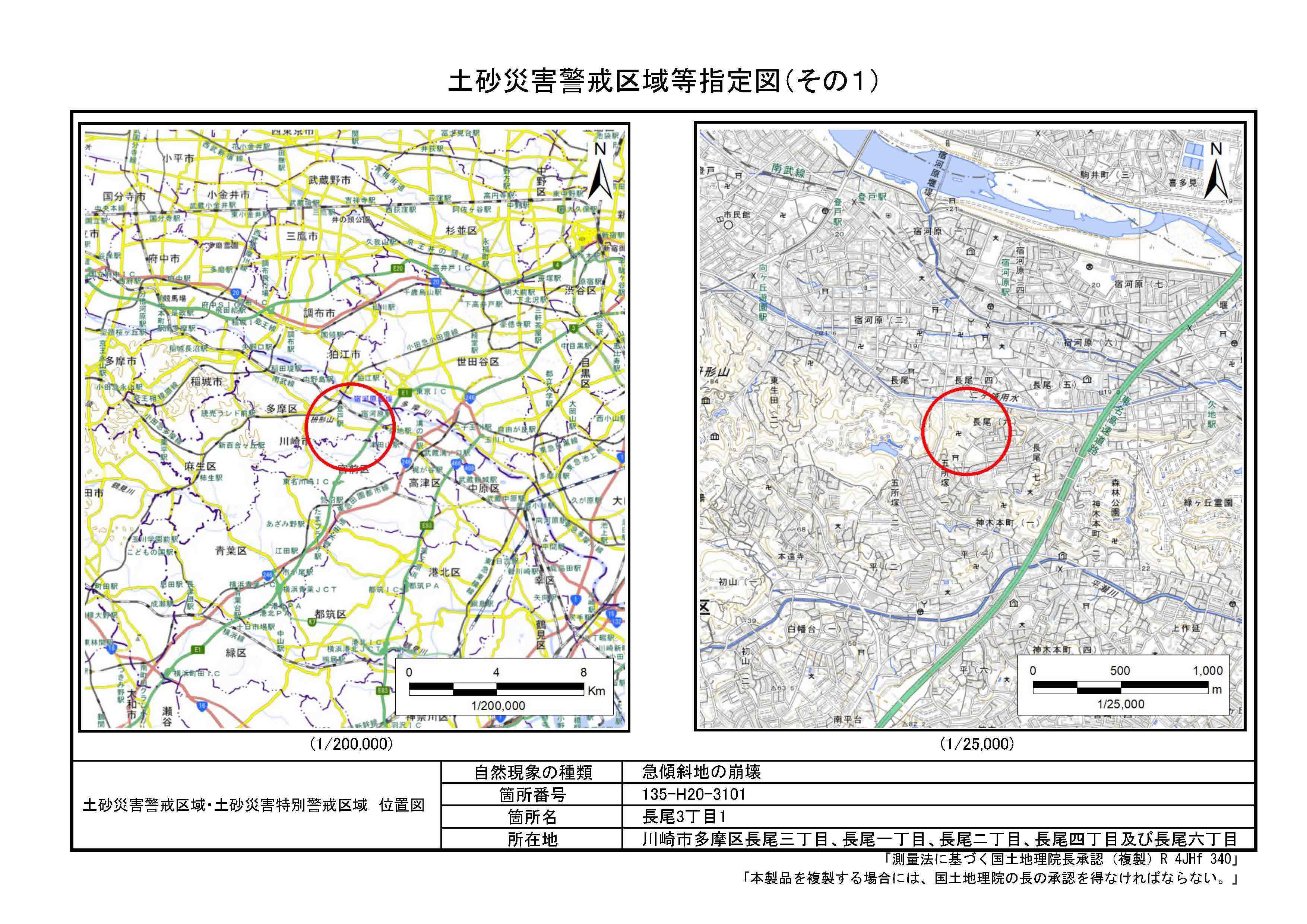 宮前区五所塚1丁目、神木本町1丁目、多摩区長尾2丁目及び長尾3丁目 ※宮前区と多摩区にまたがるため両区に掲載