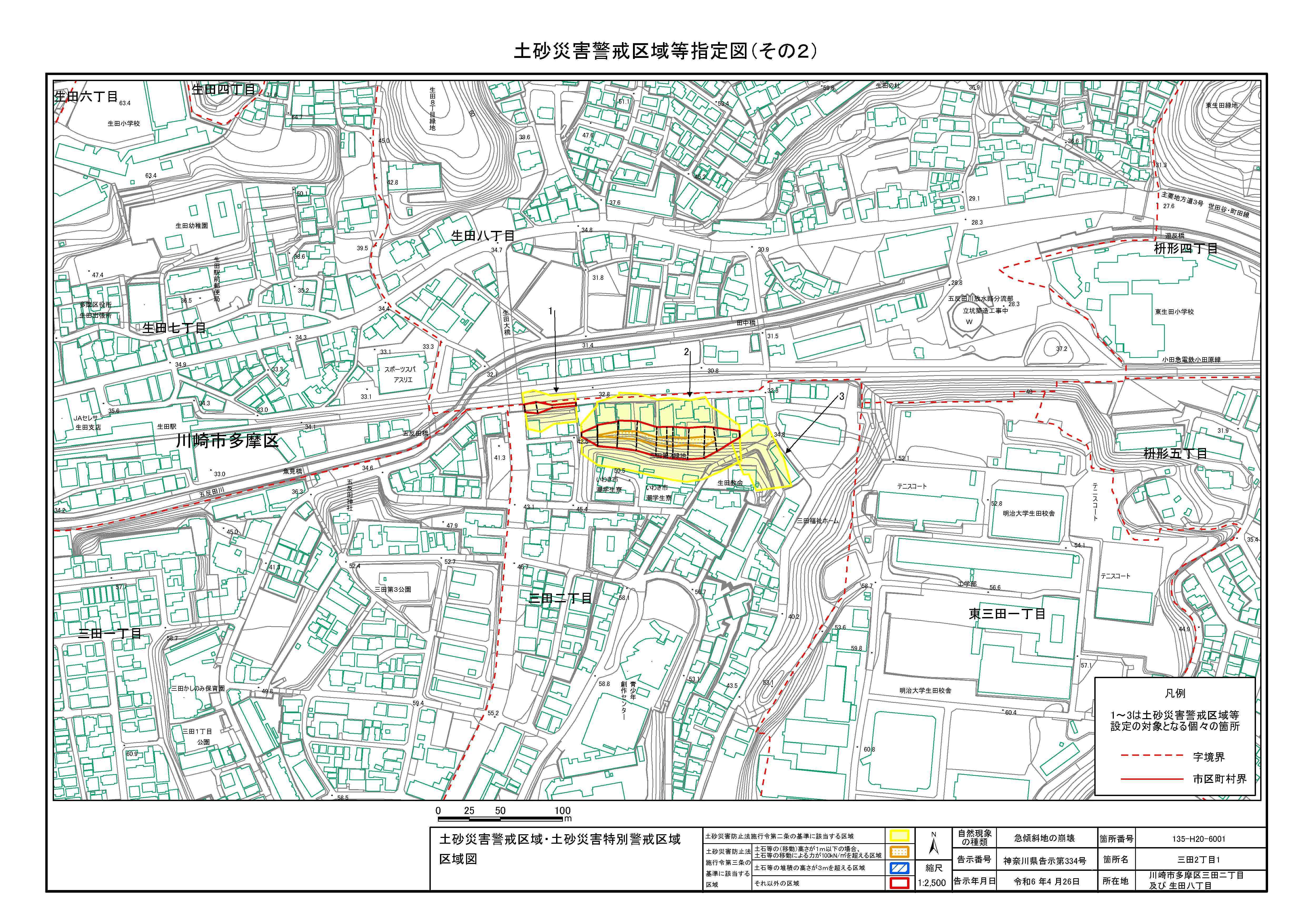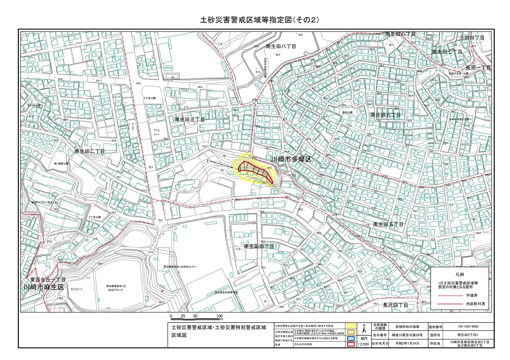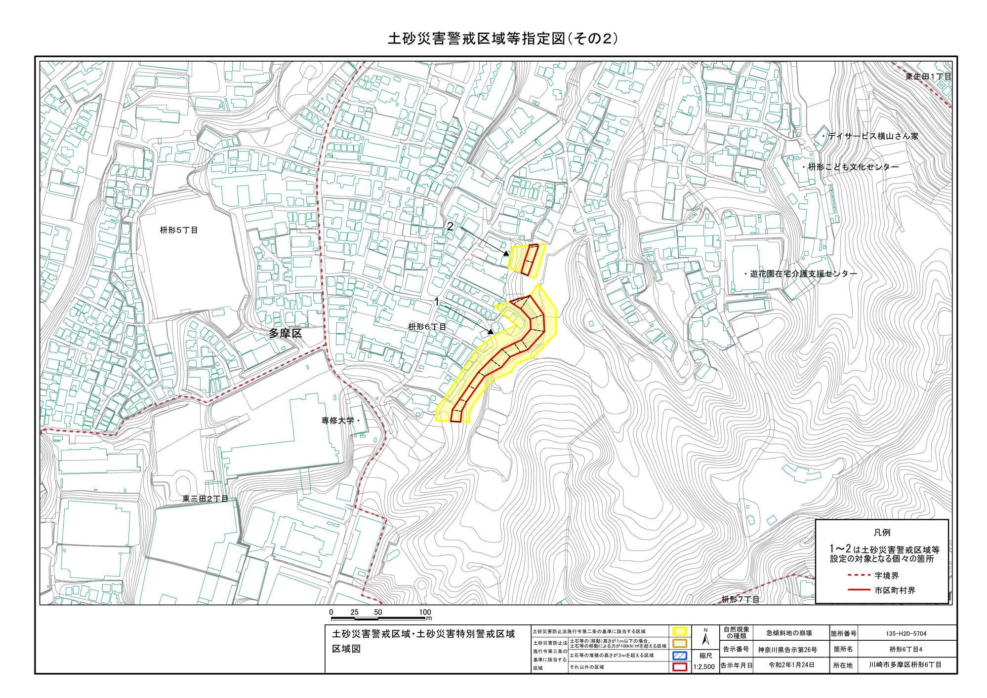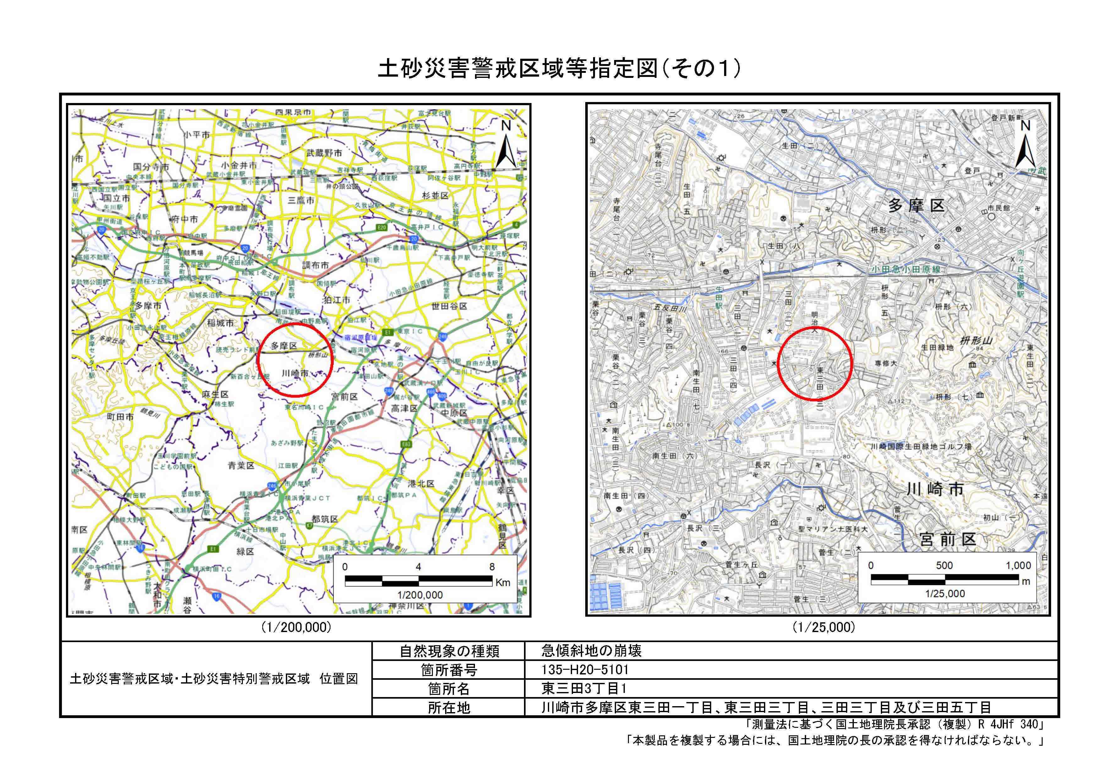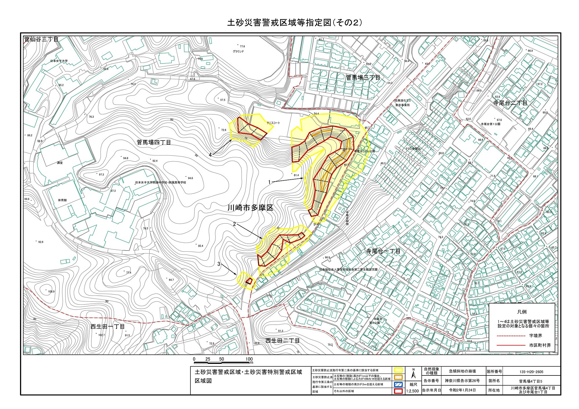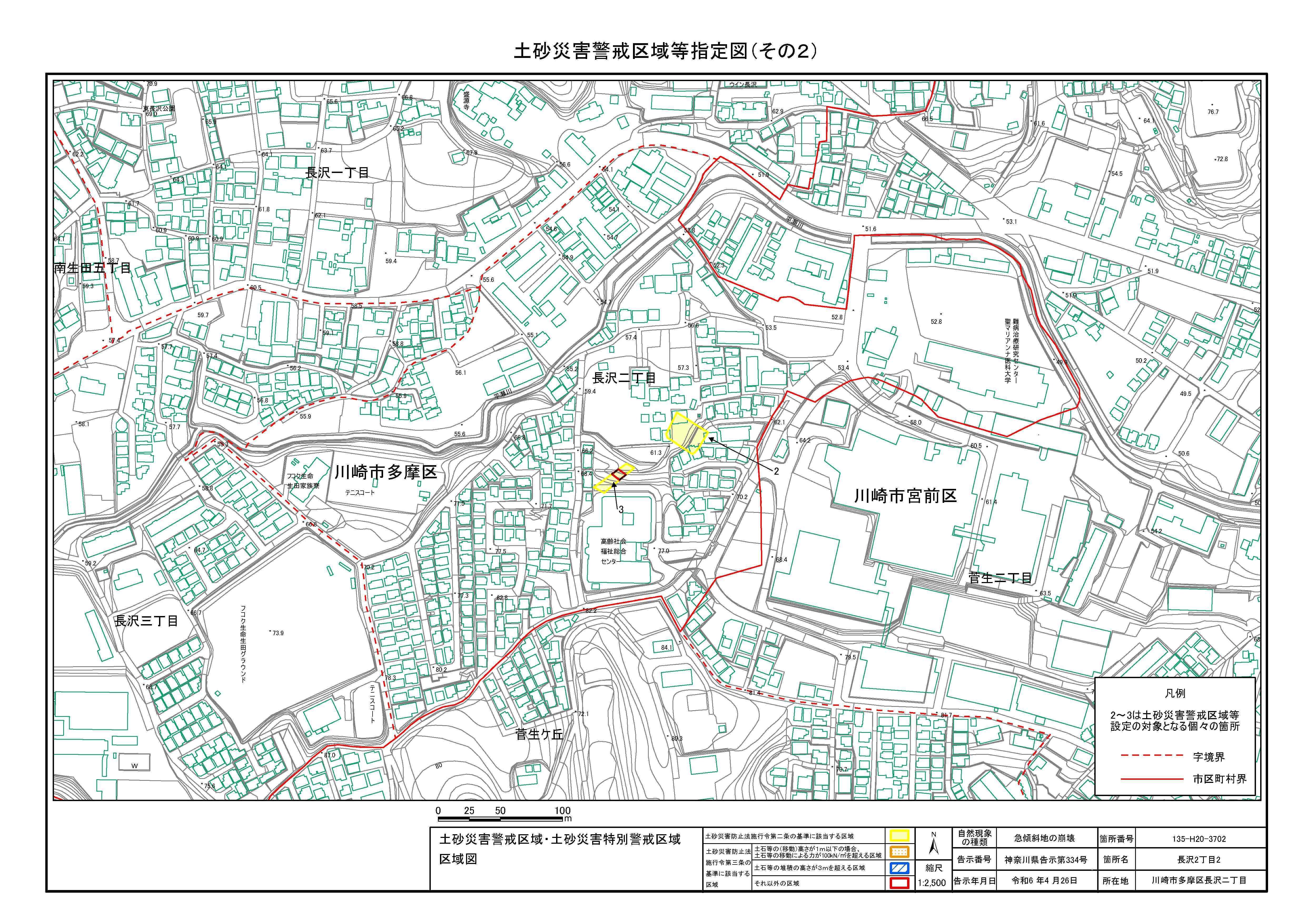 宮前区五所塚1丁目、神木本町1丁目、多摩区長尾2丁目及び長尾3丁目 ※宮前区と多摩区にまたがるため両区に掲載