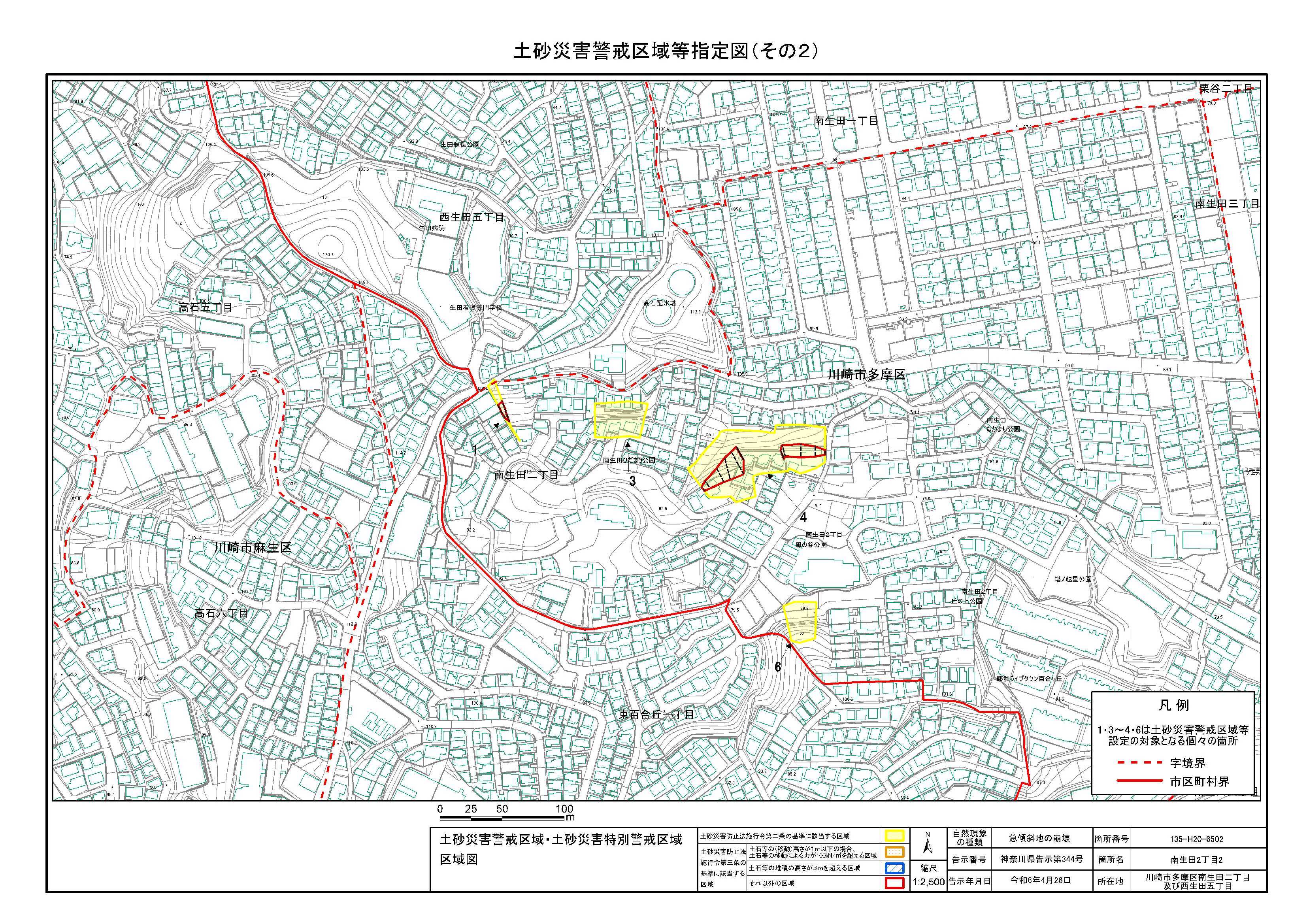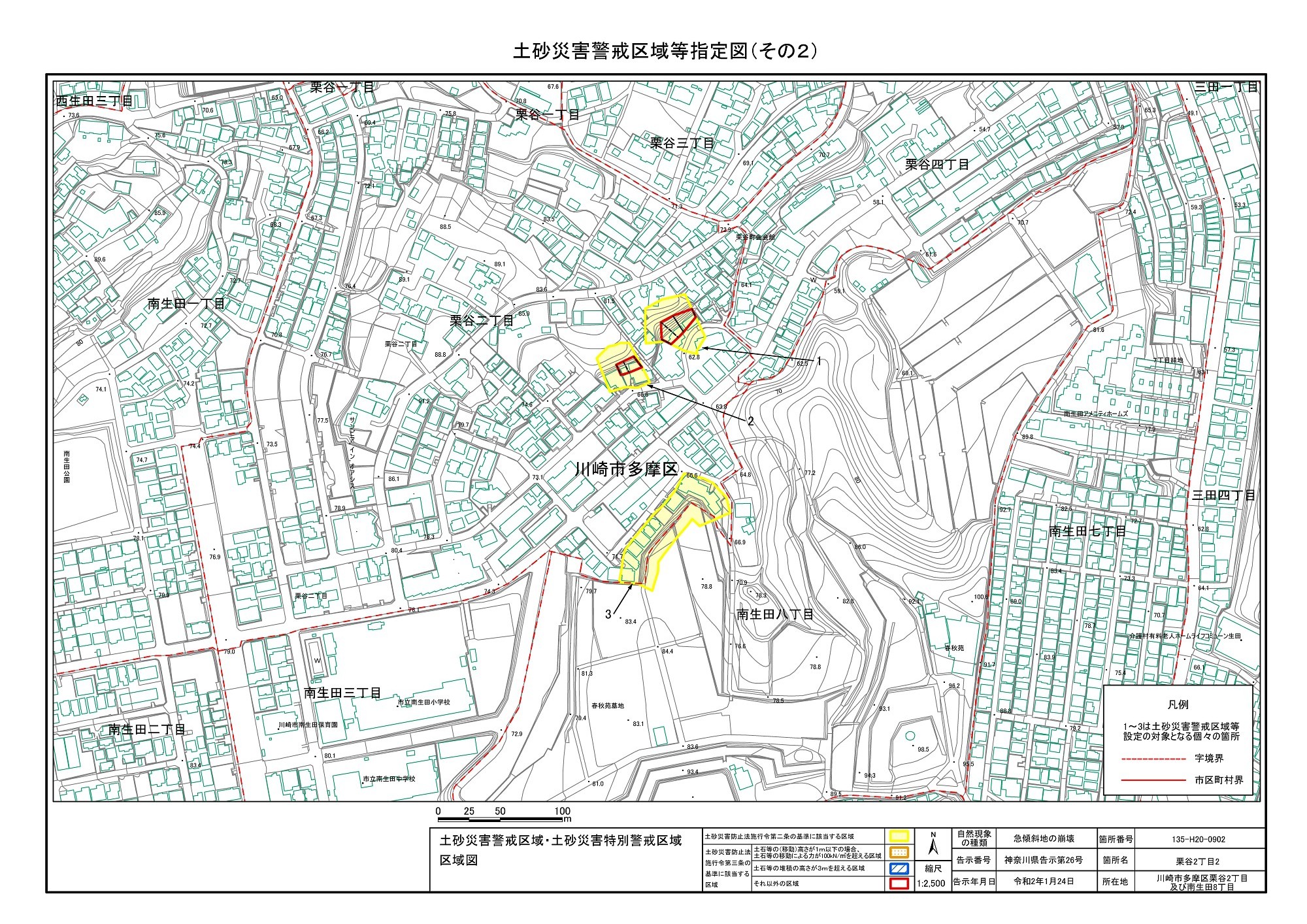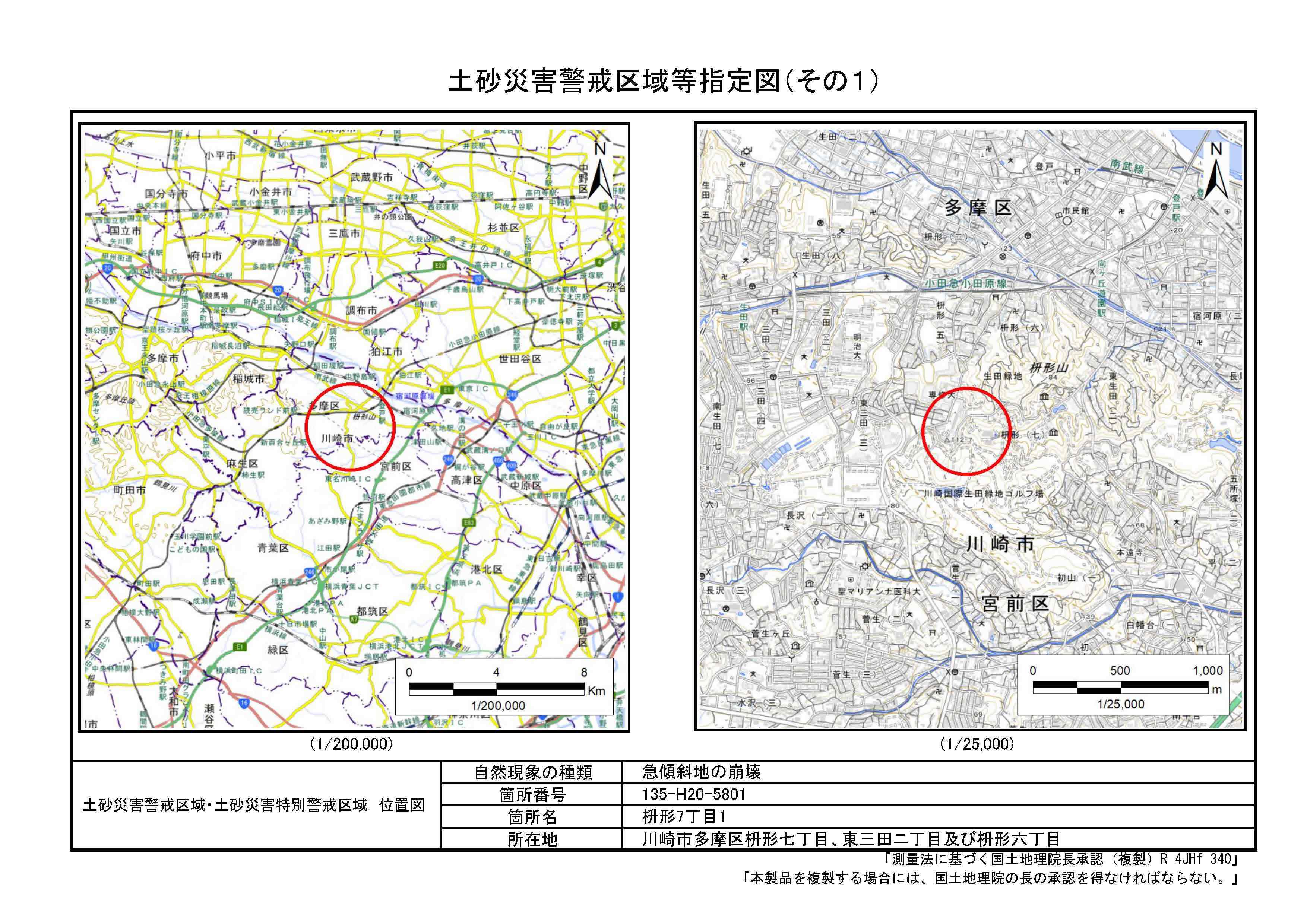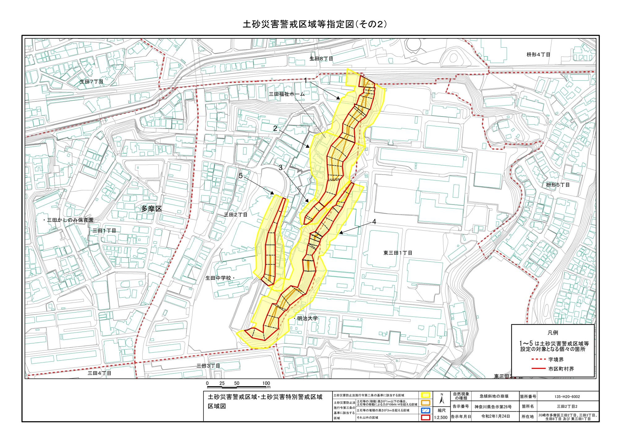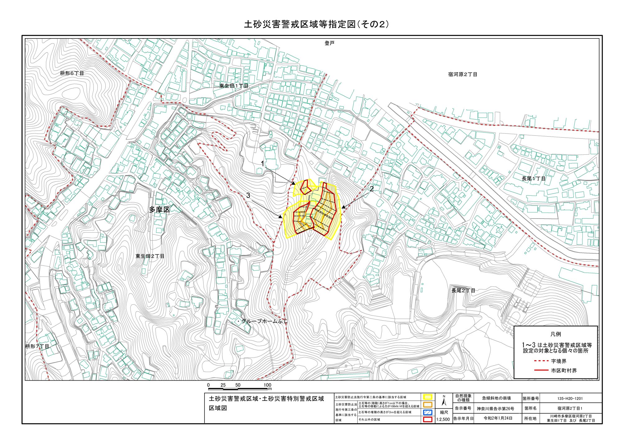 宮前区五所塚1丁目、神木本町1丁目、多摩区長尾2丁目及び長尾3丁目 ※宮前区と多摩区にまたがるため両区に掲載