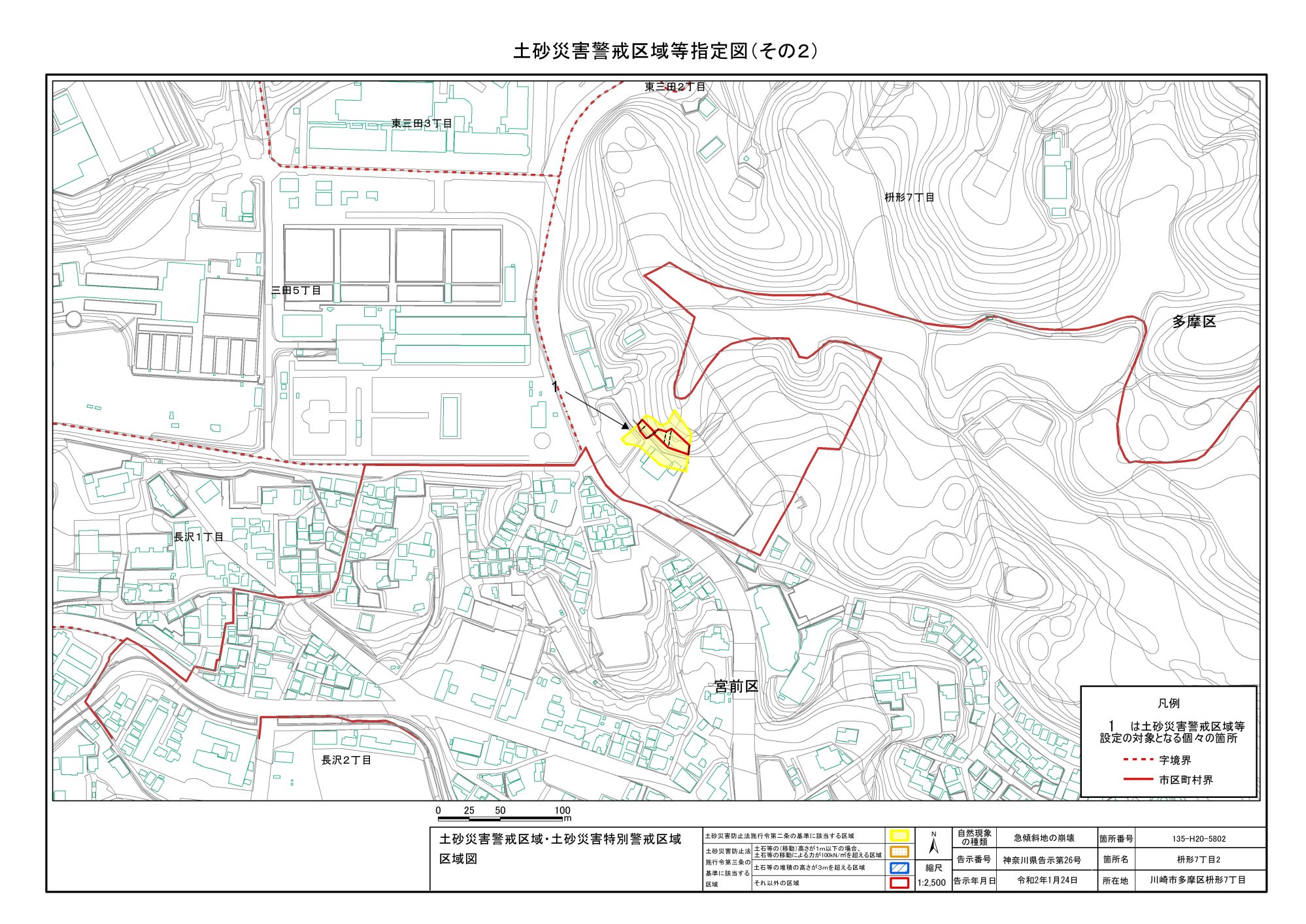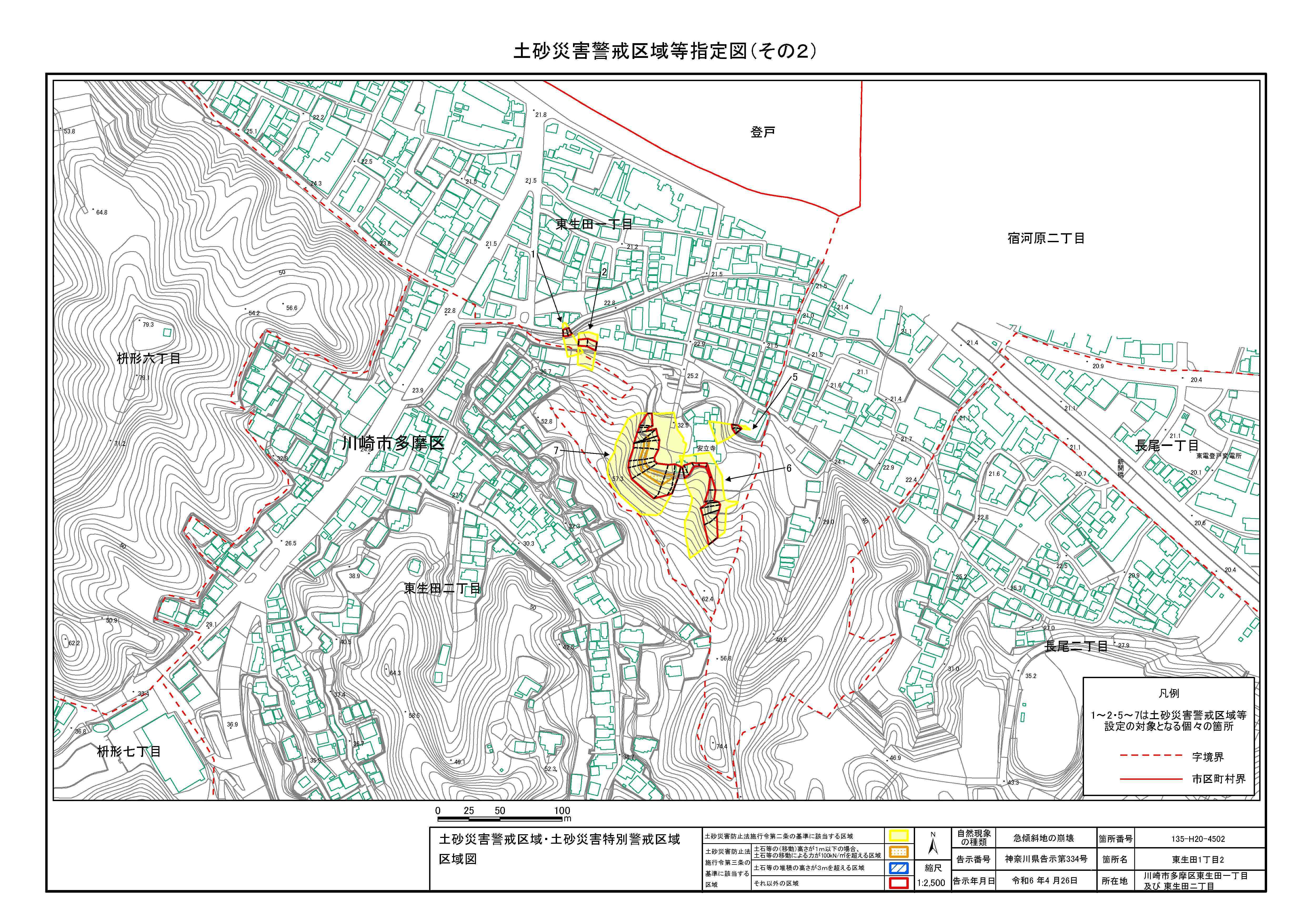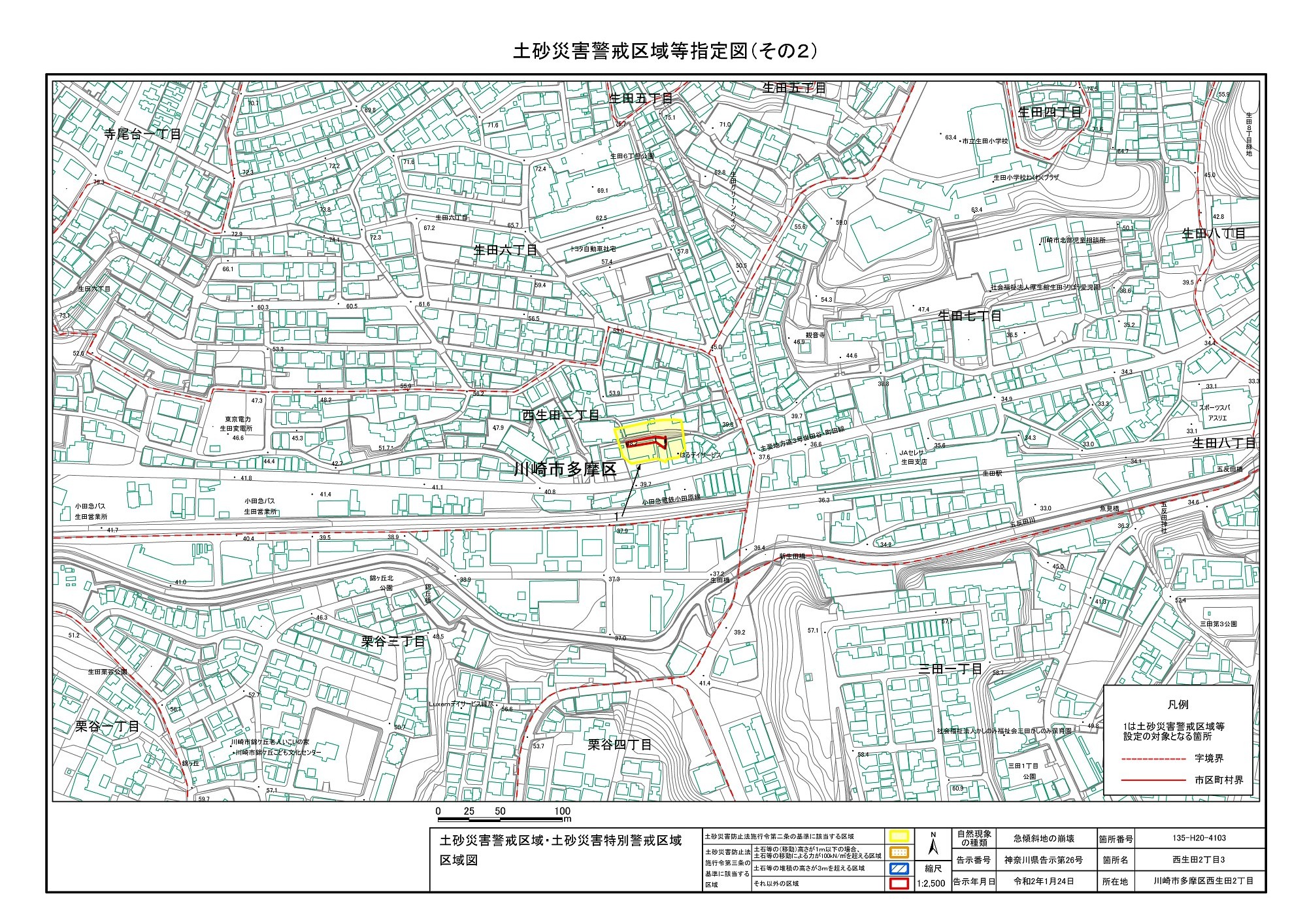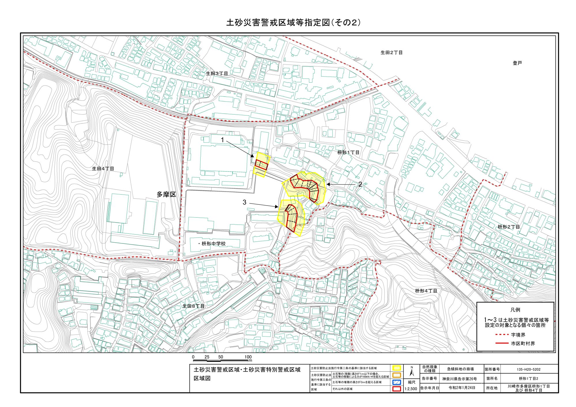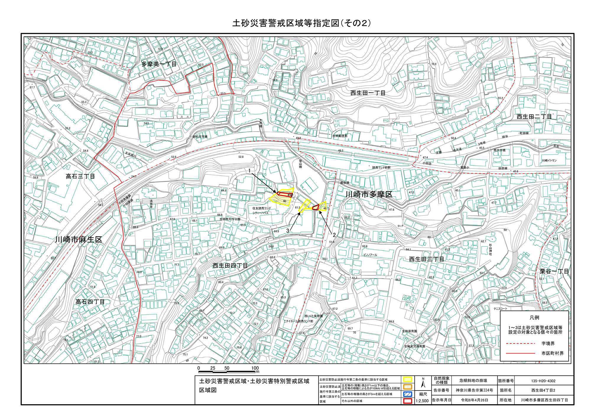 宮前区五所塚1丁目、神木本町1丁目、多摩区長尾2丁目及び長尾3丁目 ※宮前区と多摩区にまたがるため両区に掲載