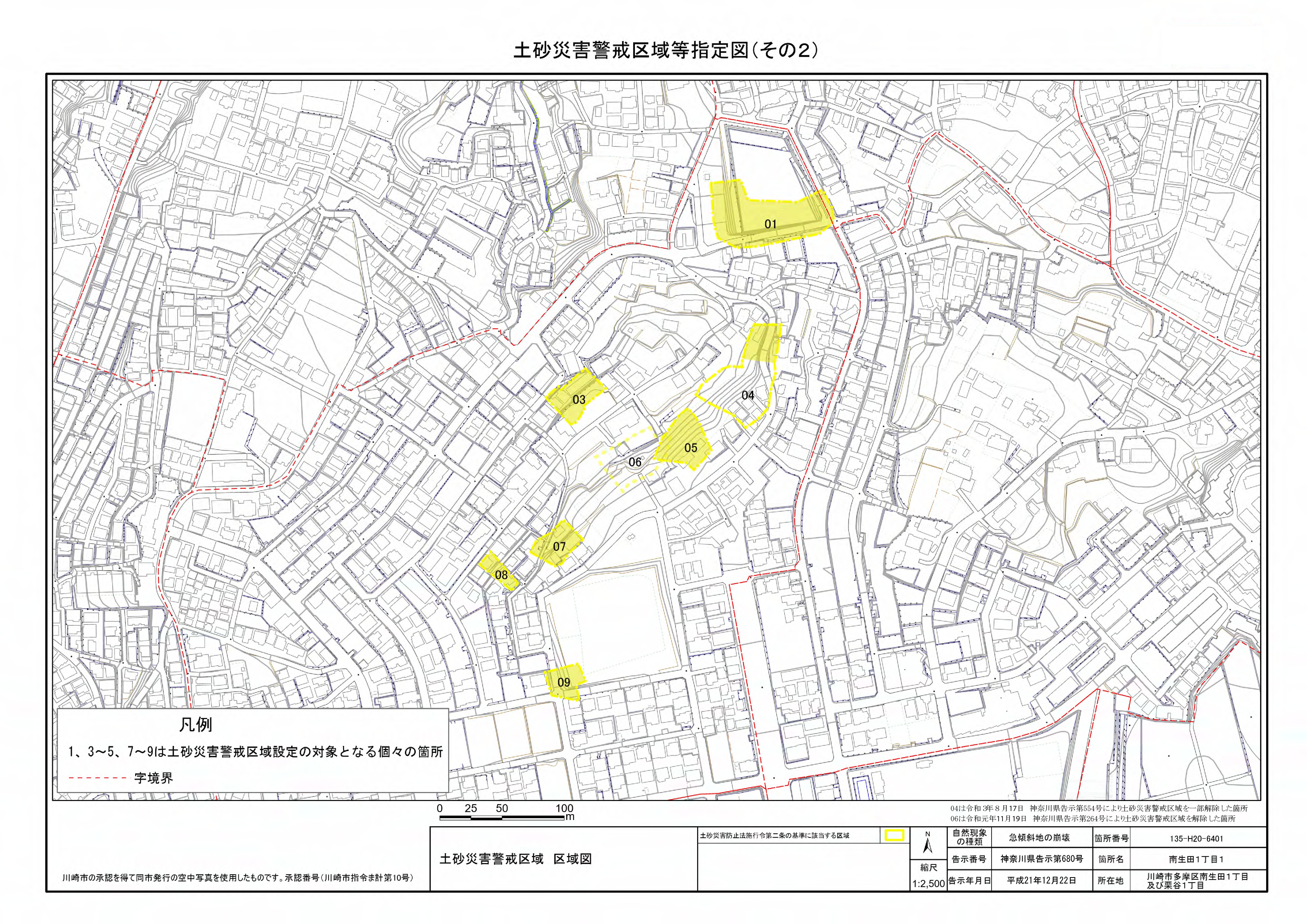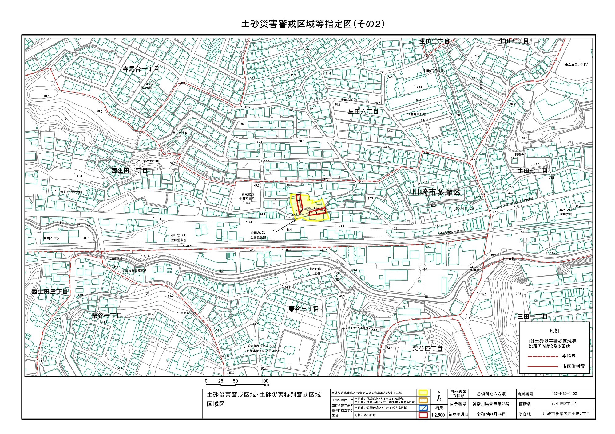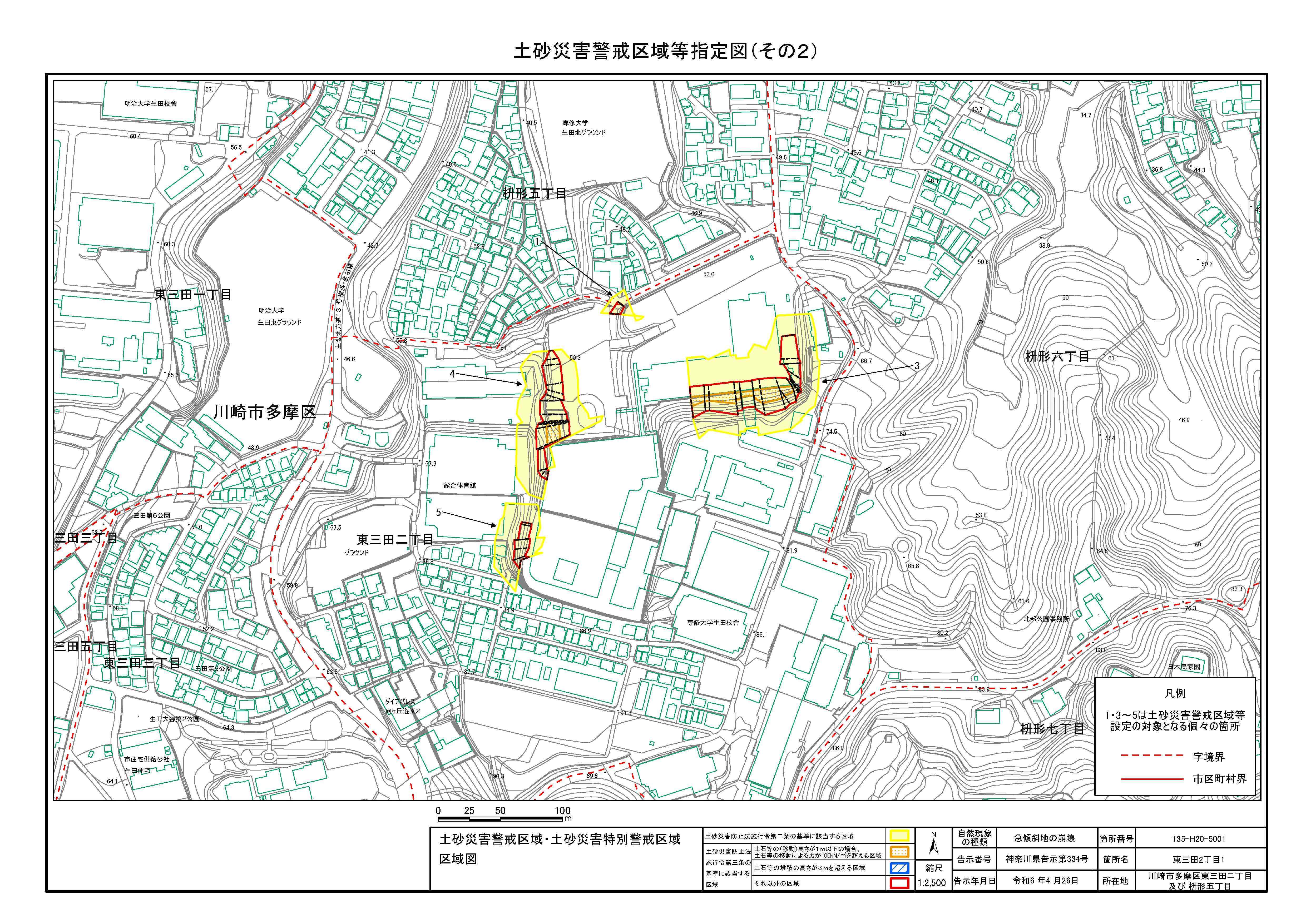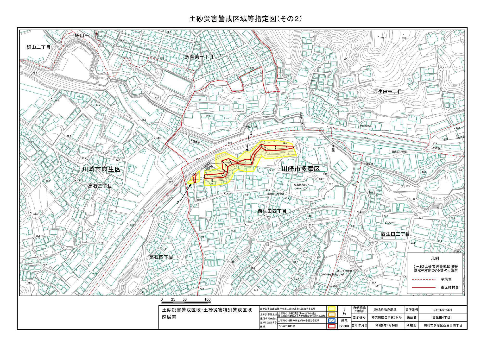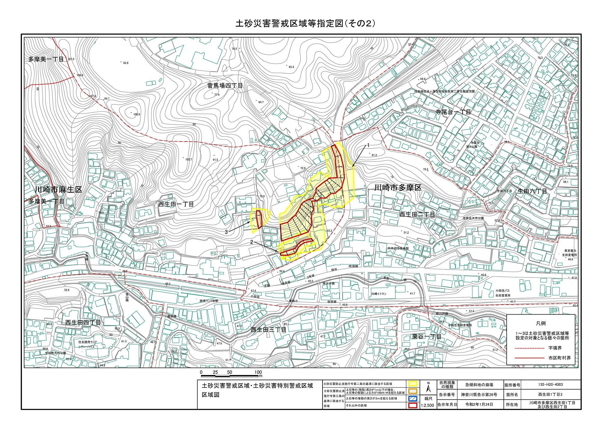 宮前区五所塚1丁目、神木本町1丁目、多摩区長尾2丁目及び長尾3丁目 ※宮前区と多摩区にまたがるため両区に掲載