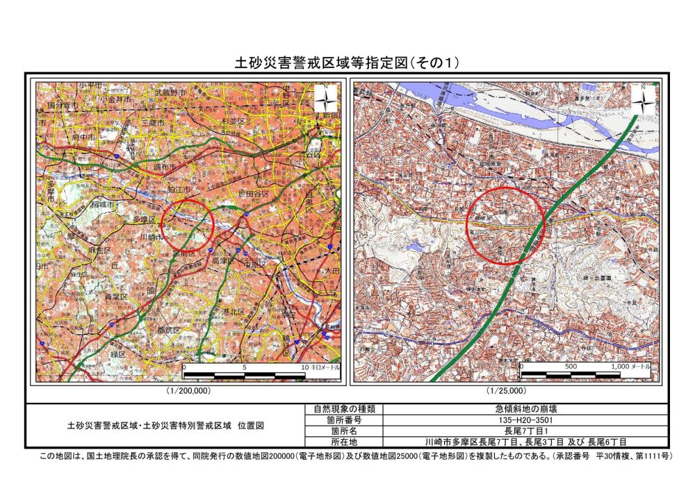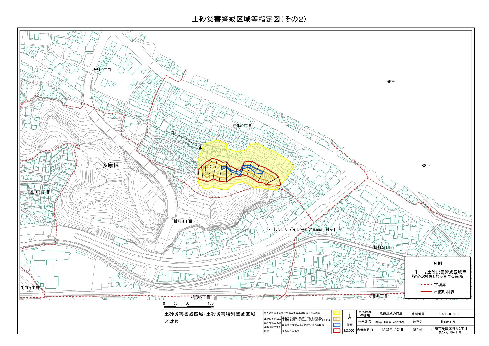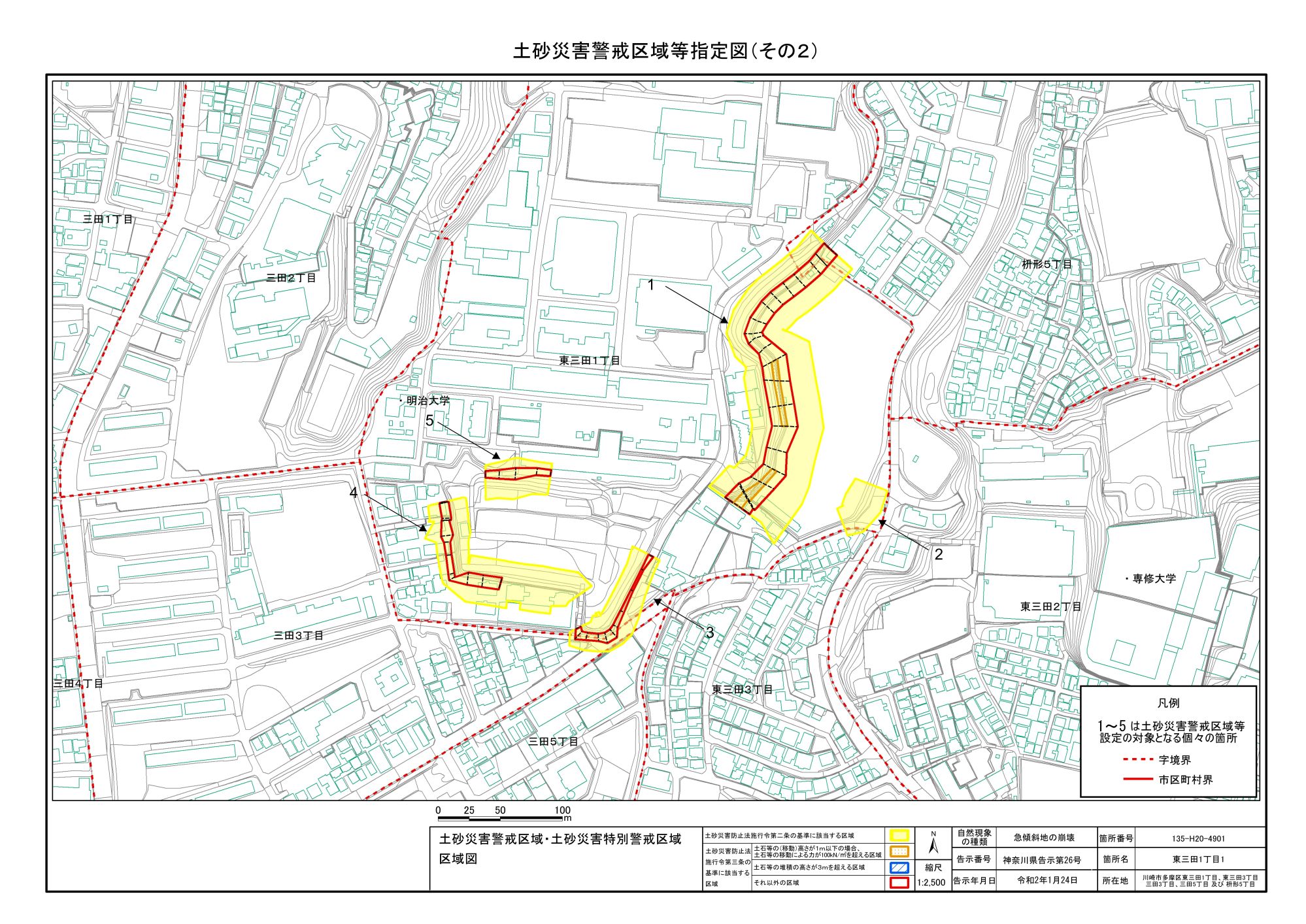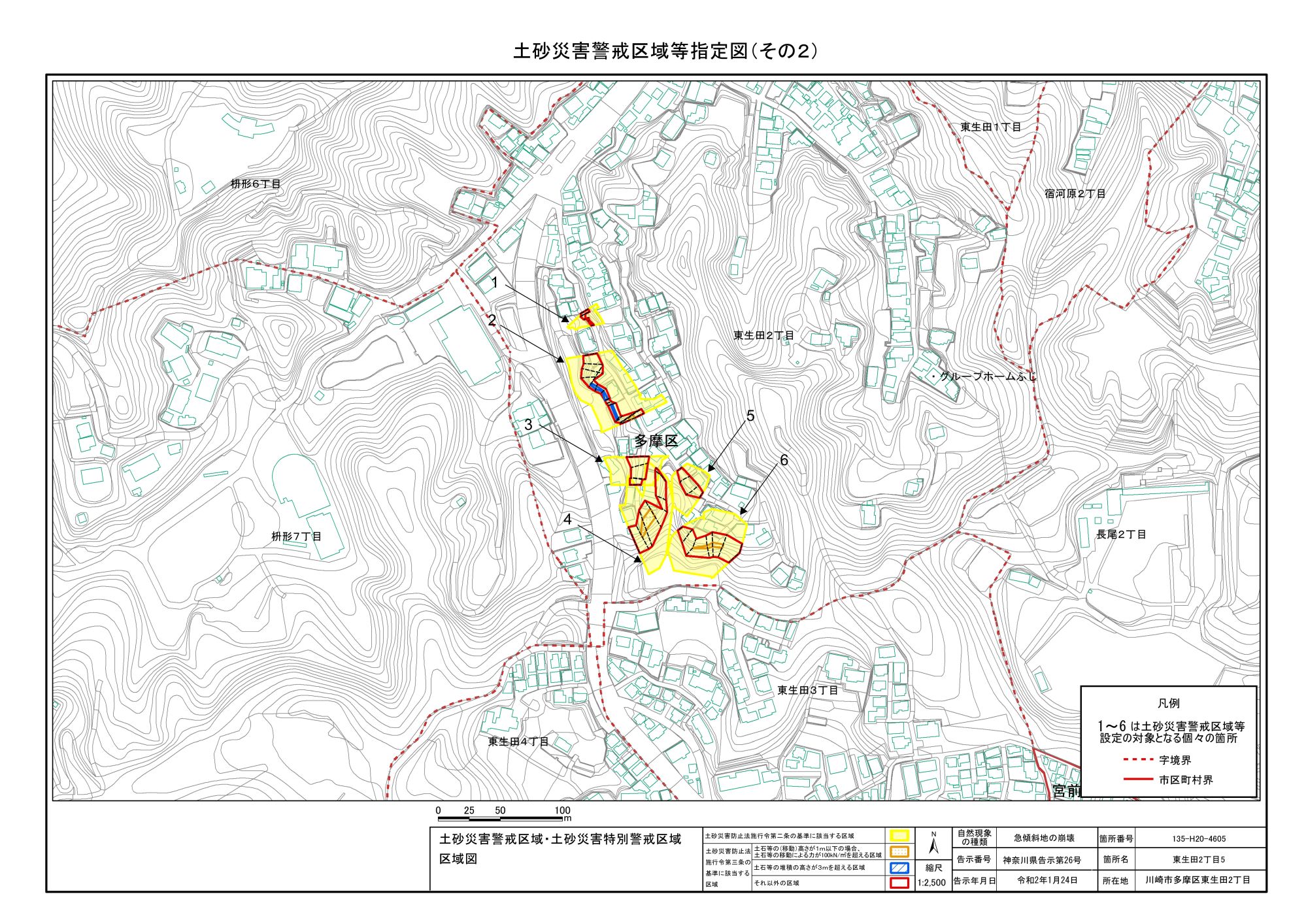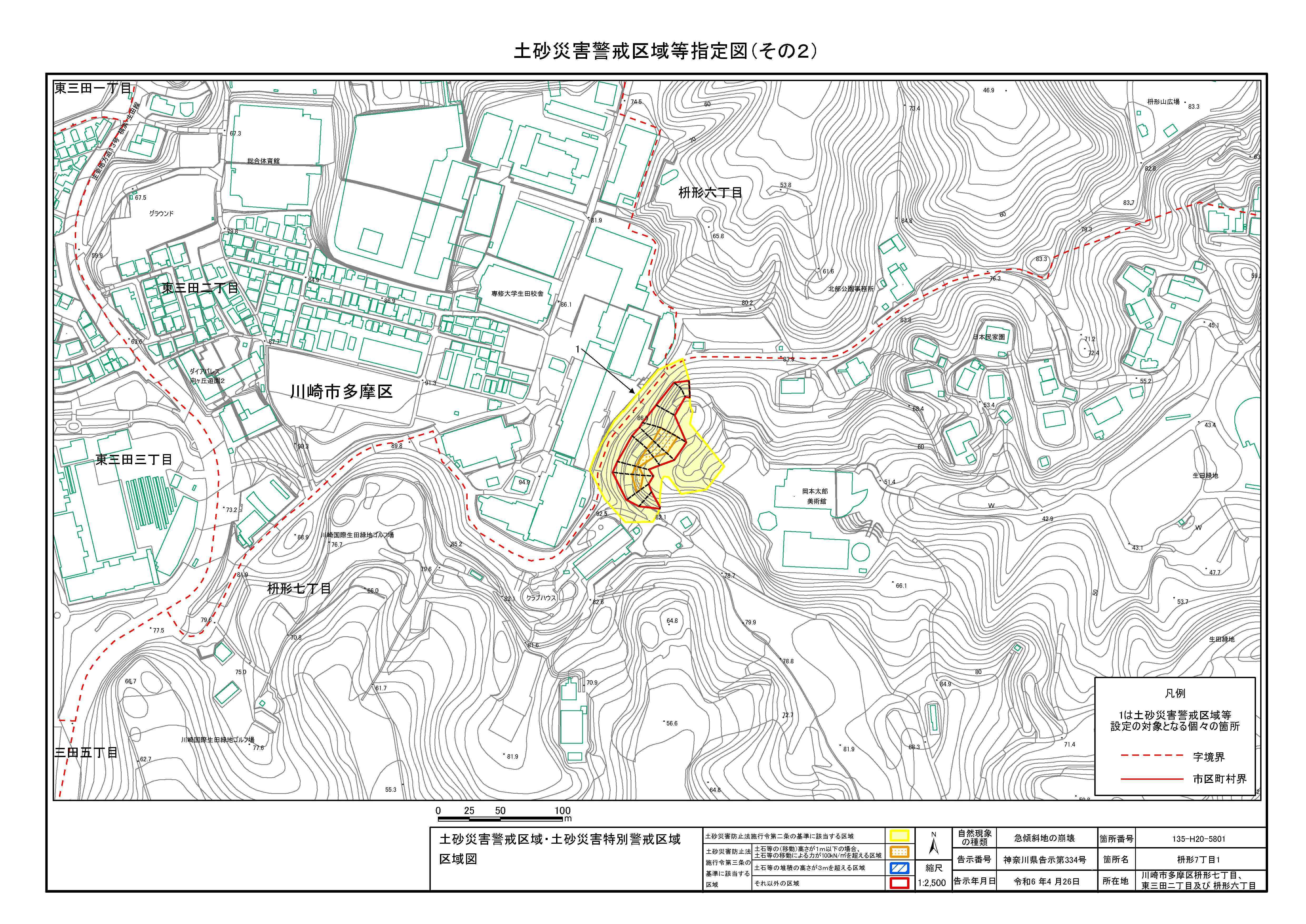 宮前区五所塚1丁目、神木本町1丁目、多摩区長尾2丁目及び長尾3丁目 ※宮前区と多摩区にまたがるため両区に掲載