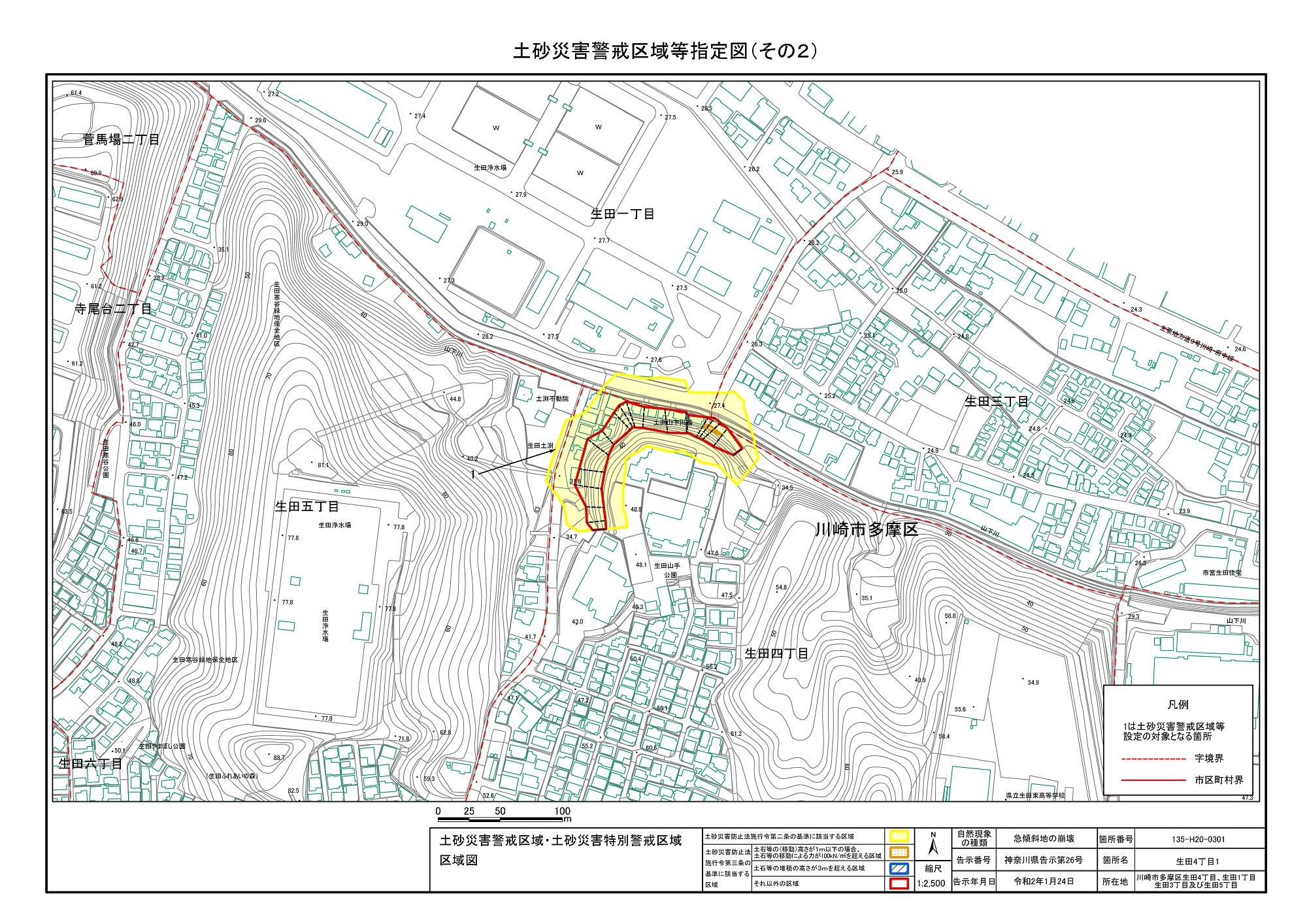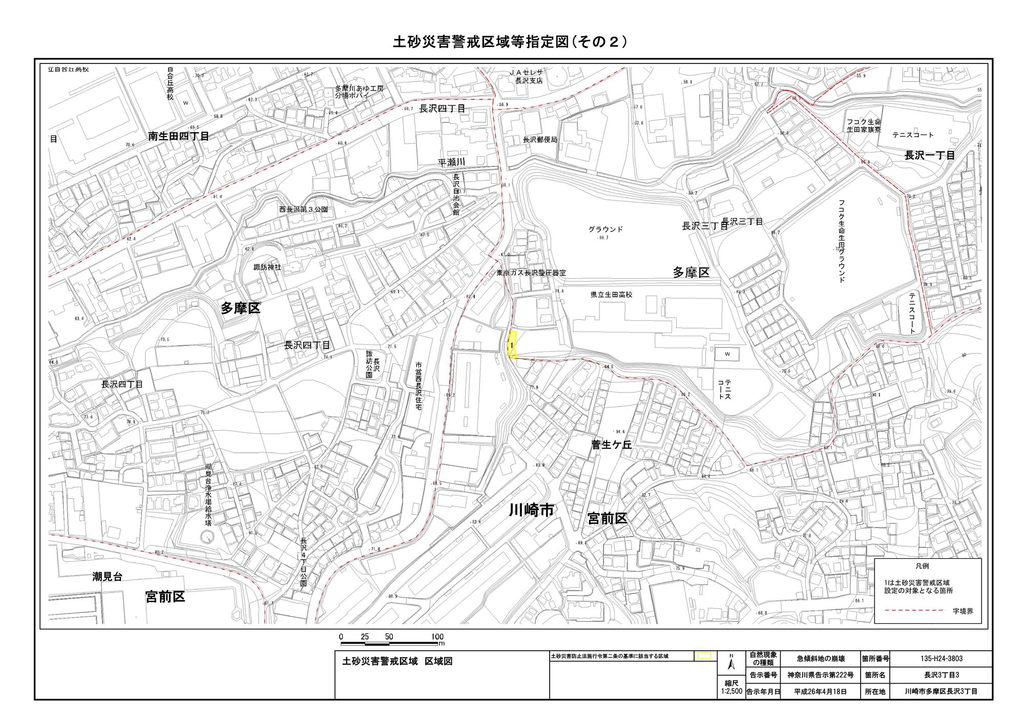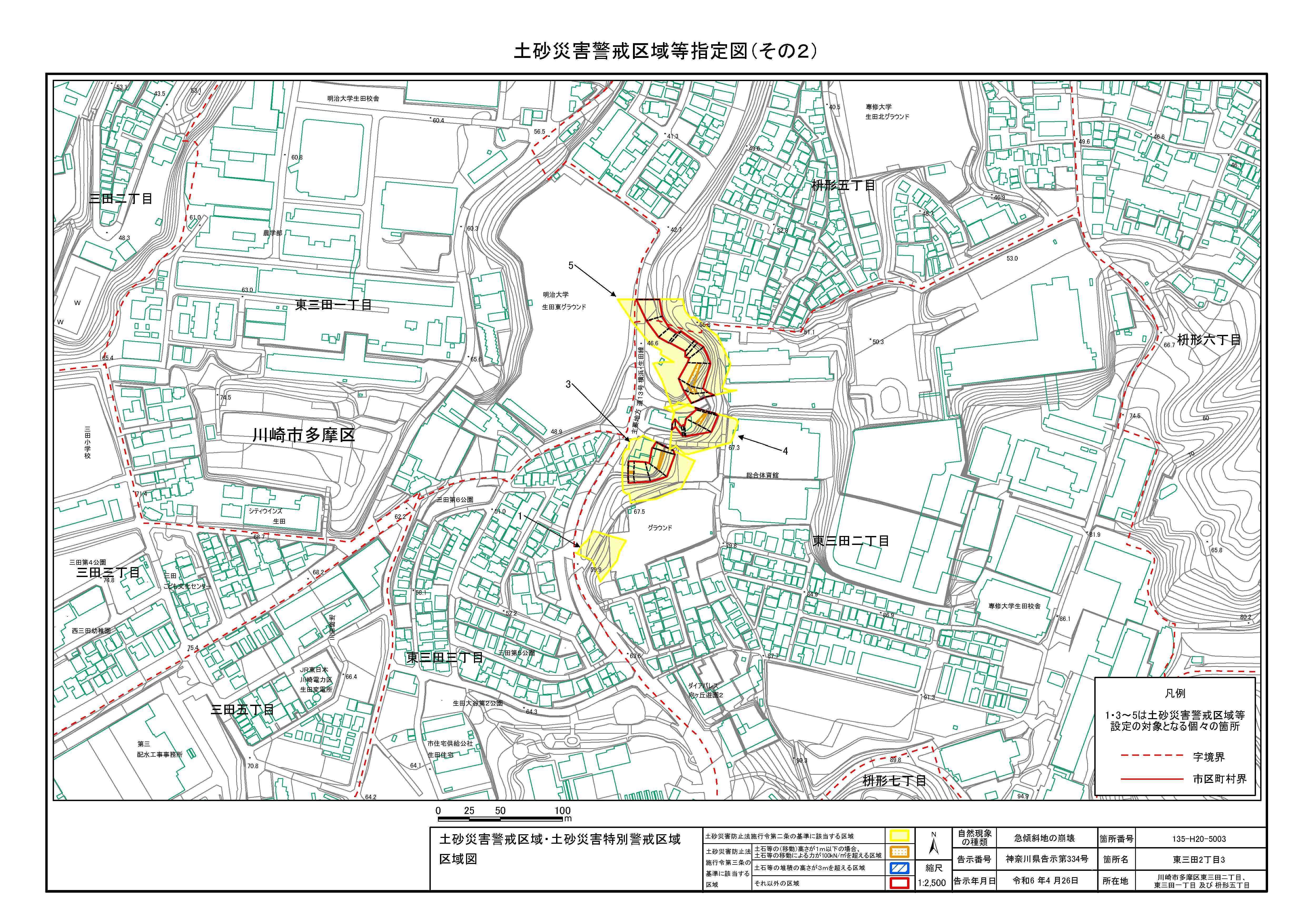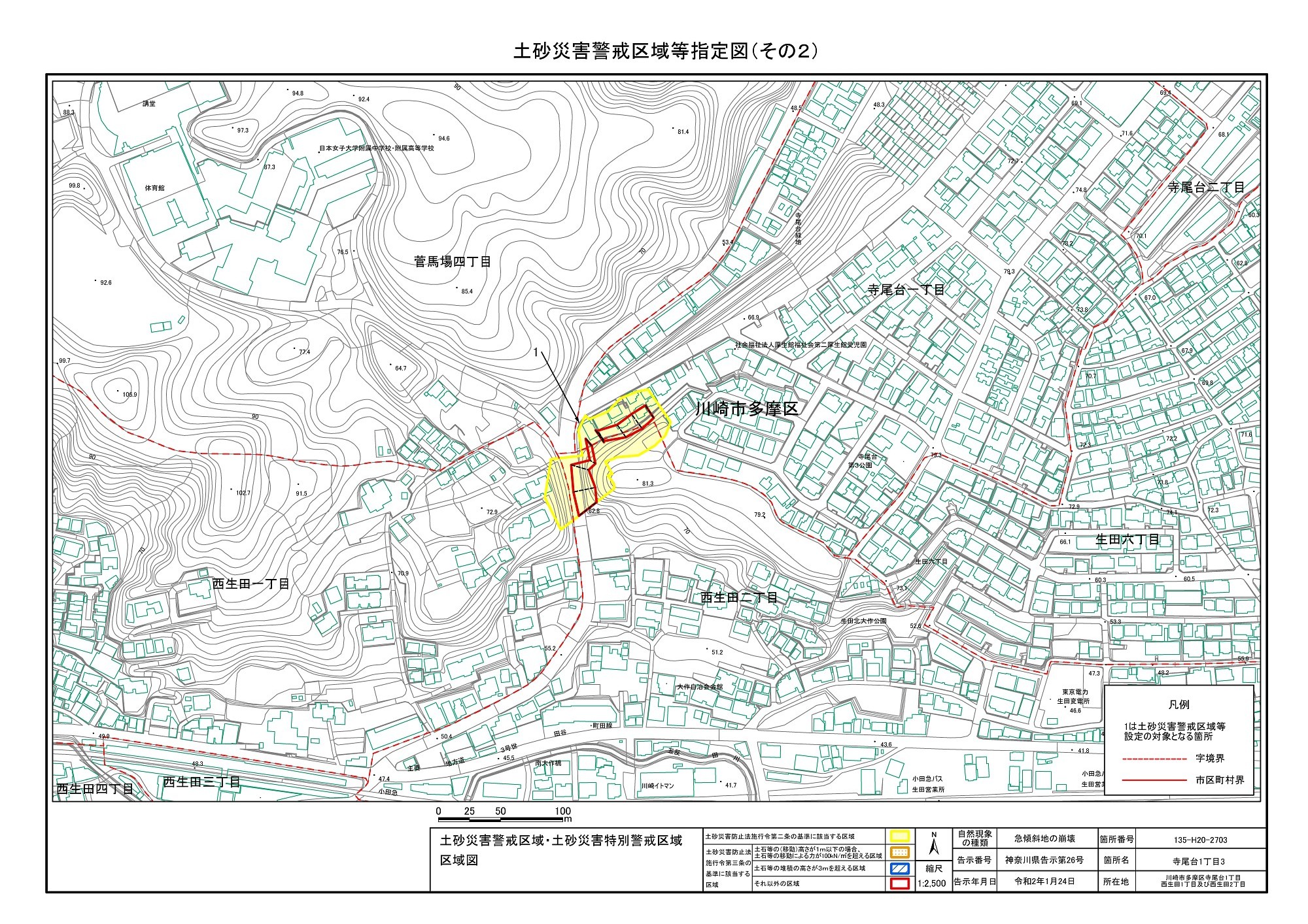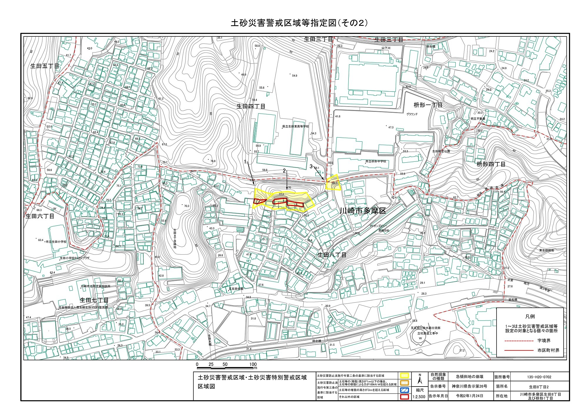 宮前区五所塚1丁目、神木本町1丁目、多摩区長尾2丁目及び長尾3丁目 ※宮前区と多摩区にまたがるため両区に掲載