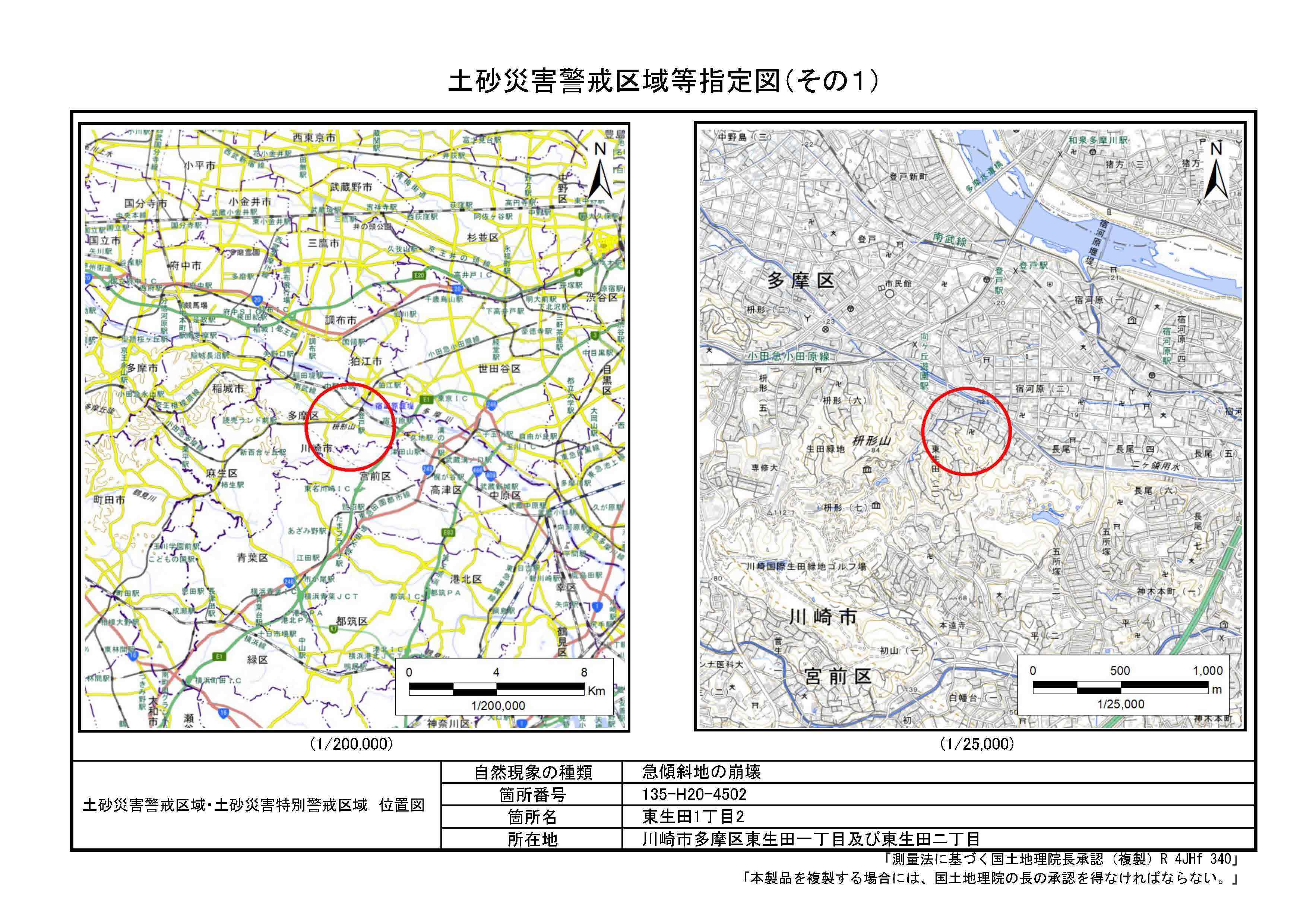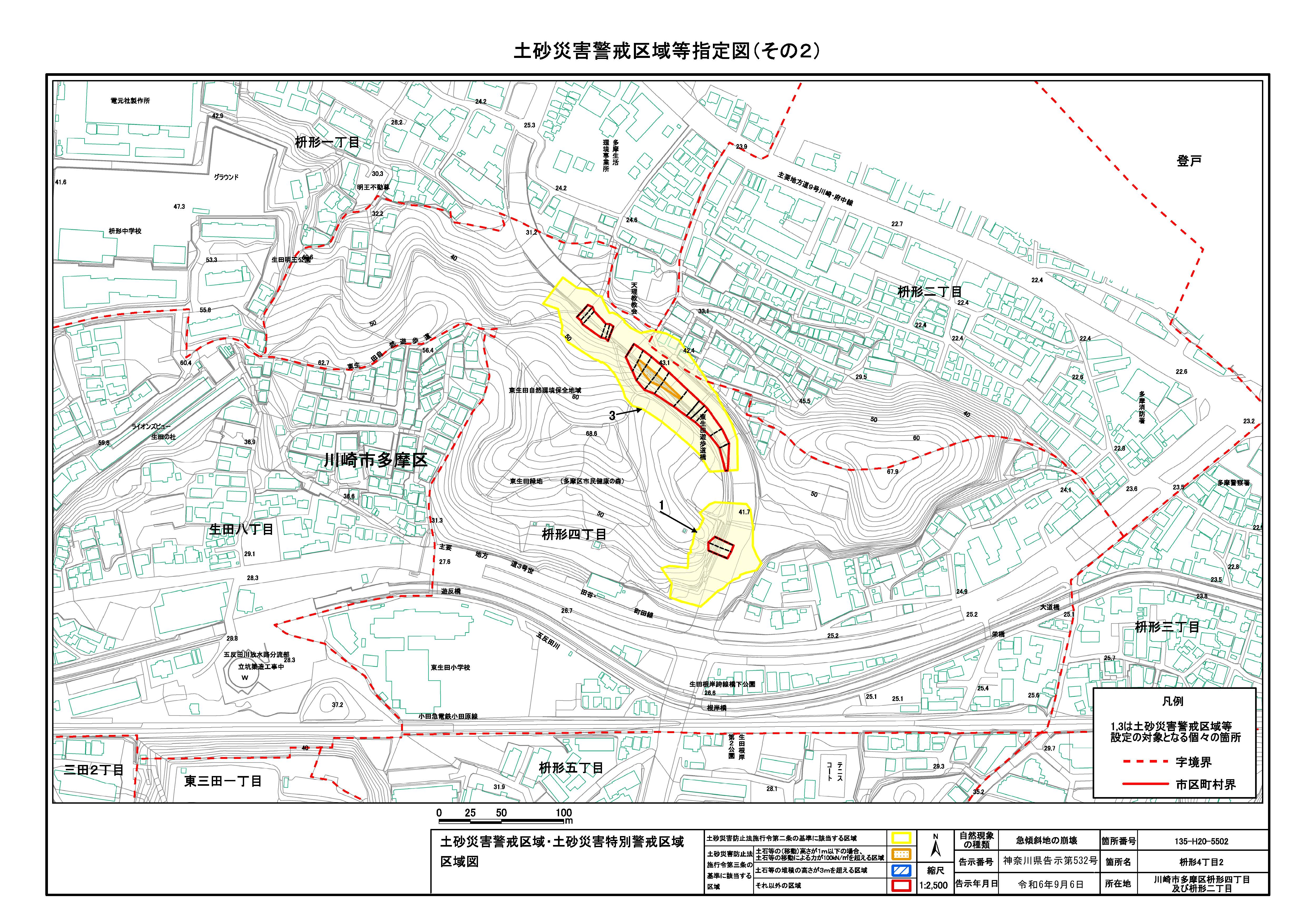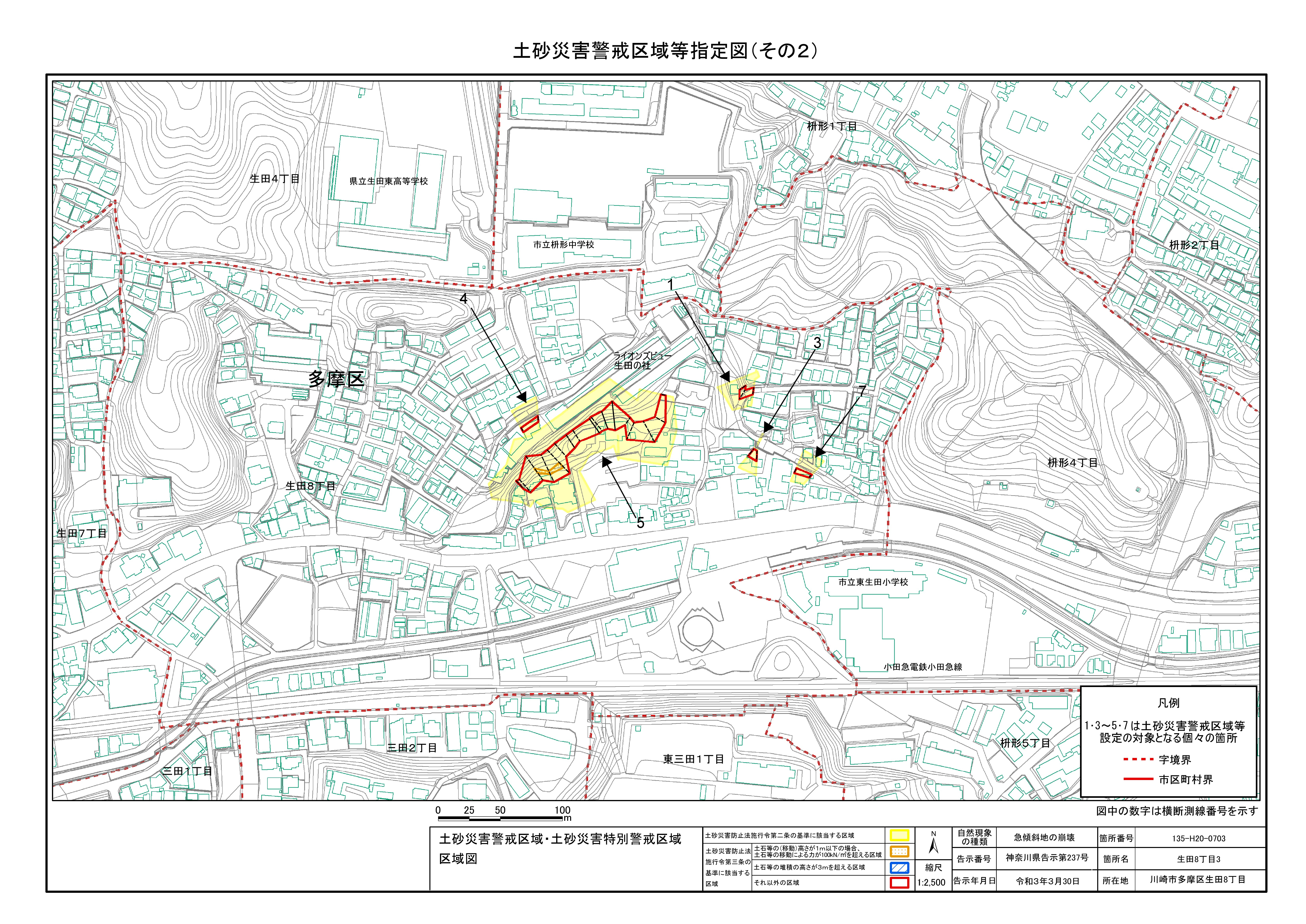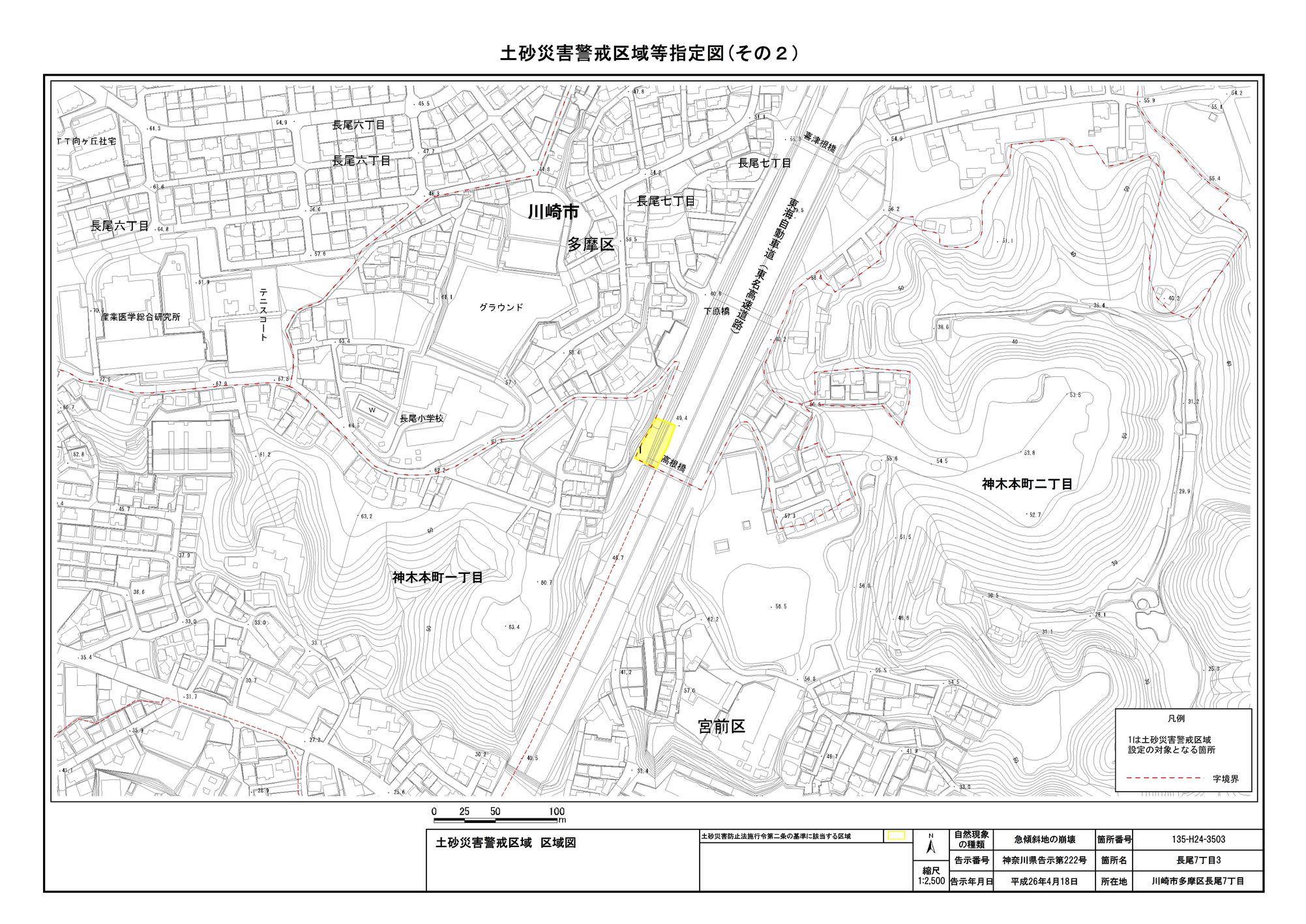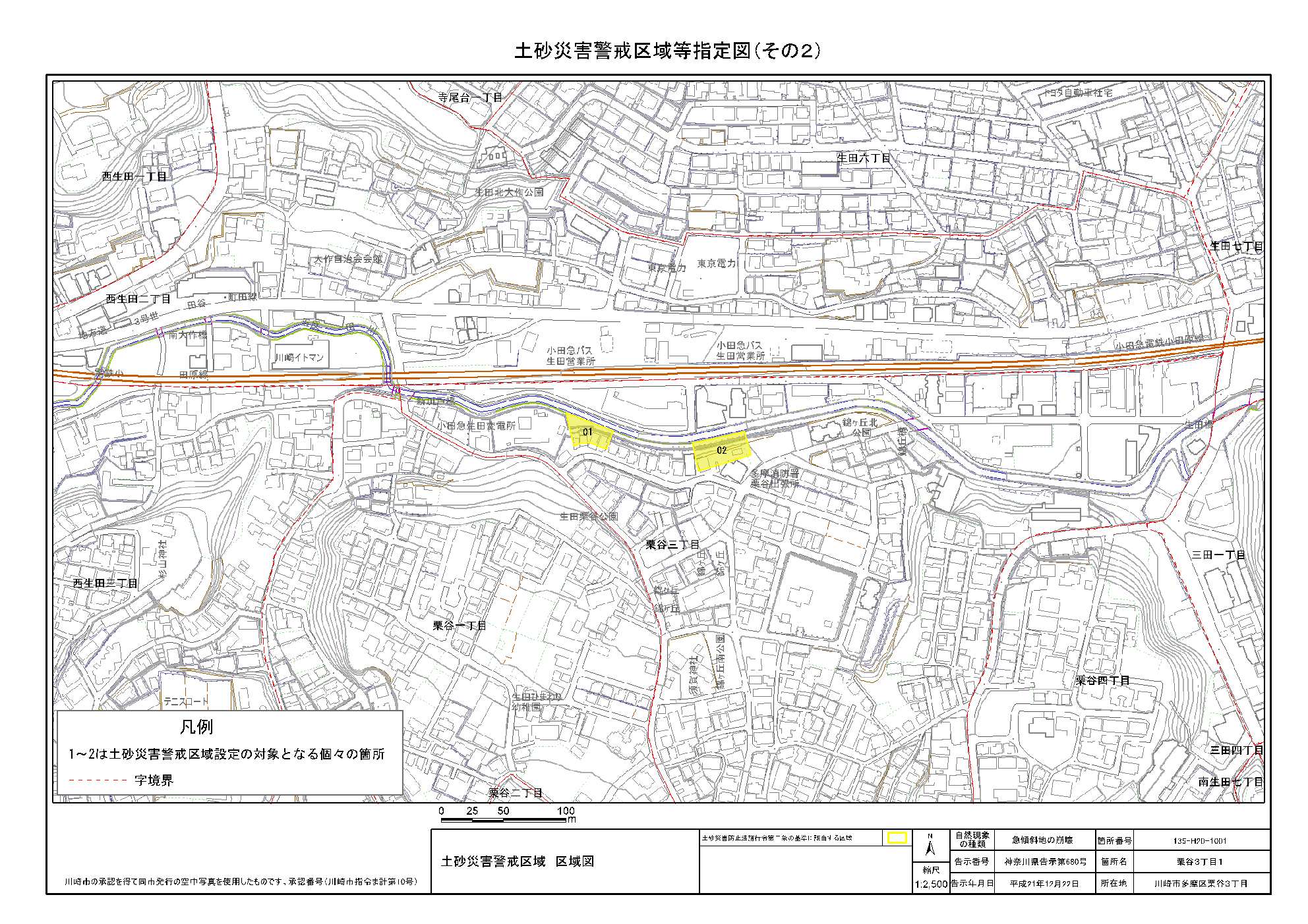 宮前区五所塚1丁目、神木本町1丁目、多摩区長尾2丁目及び長尾3丁目 ※宮前区と多摩区にまたがるため両区に掲載