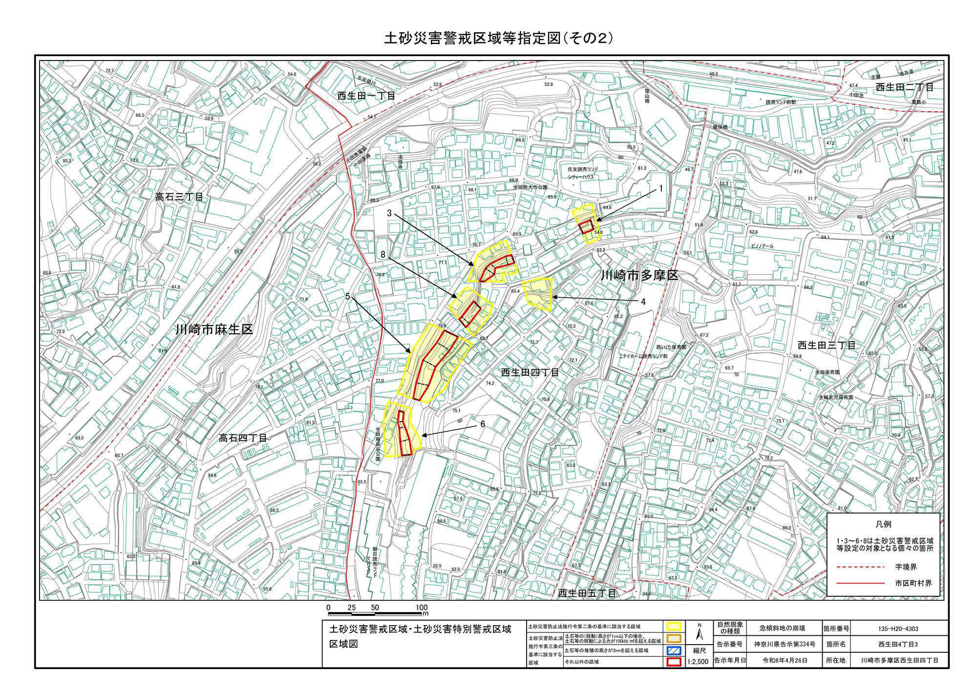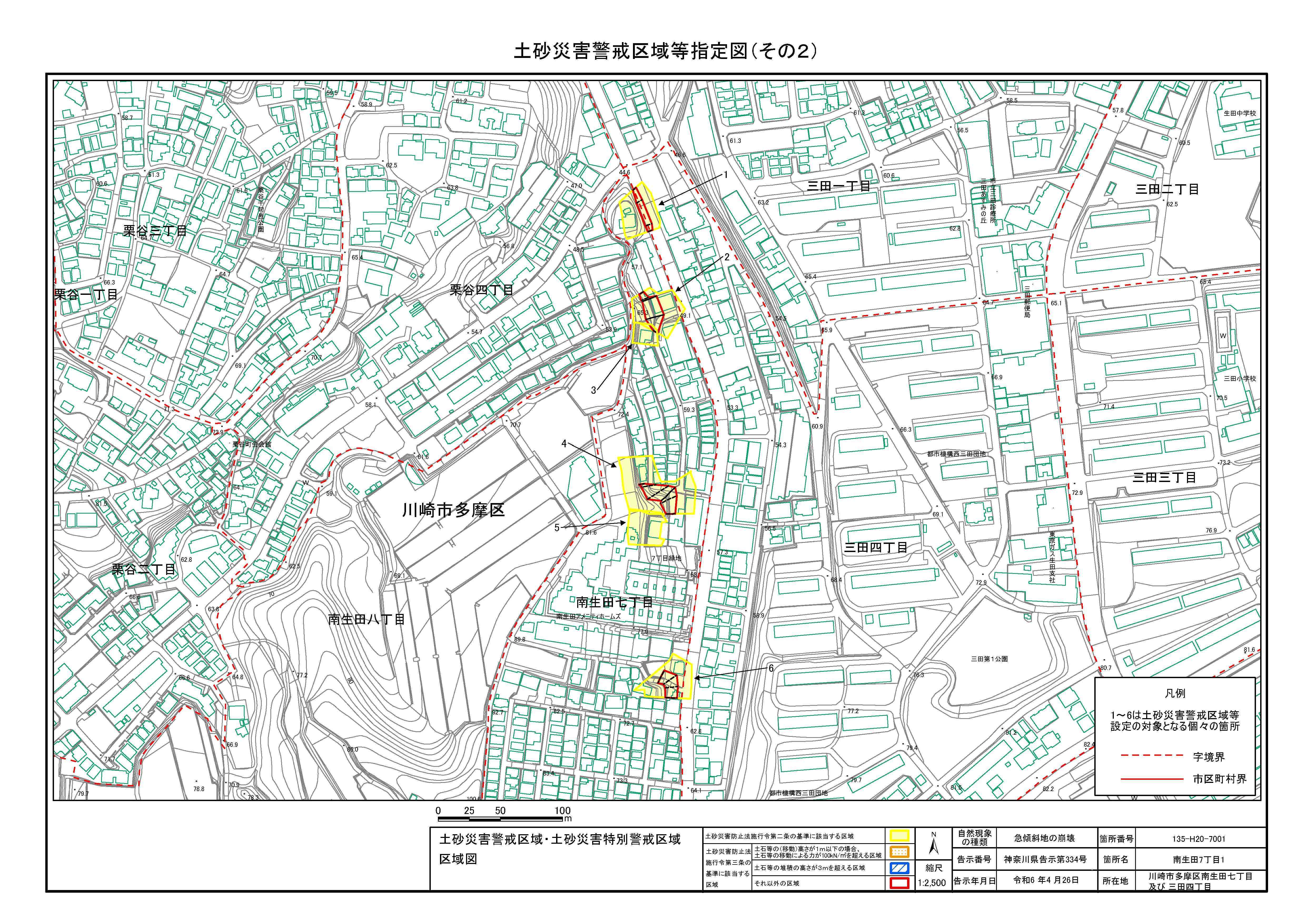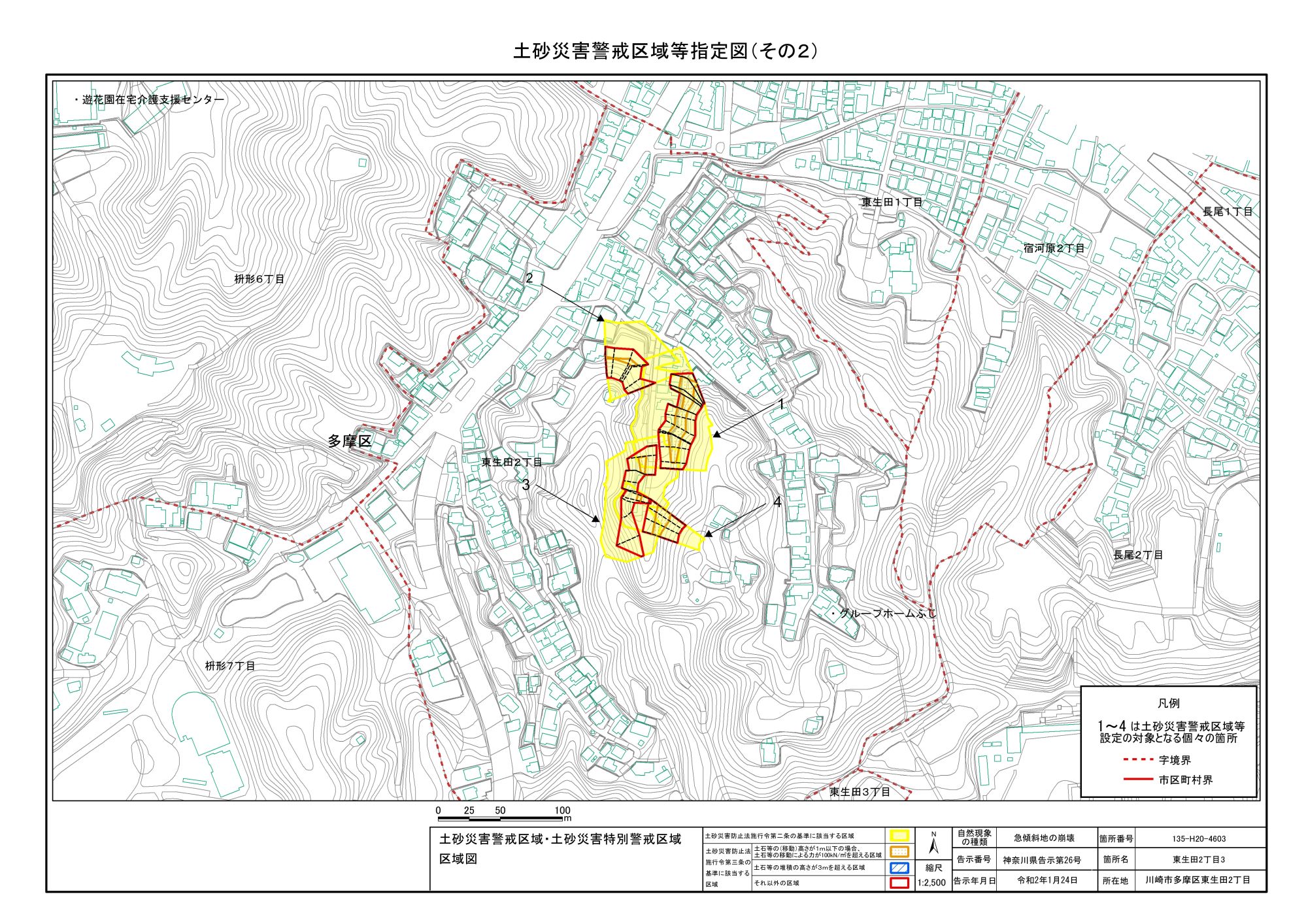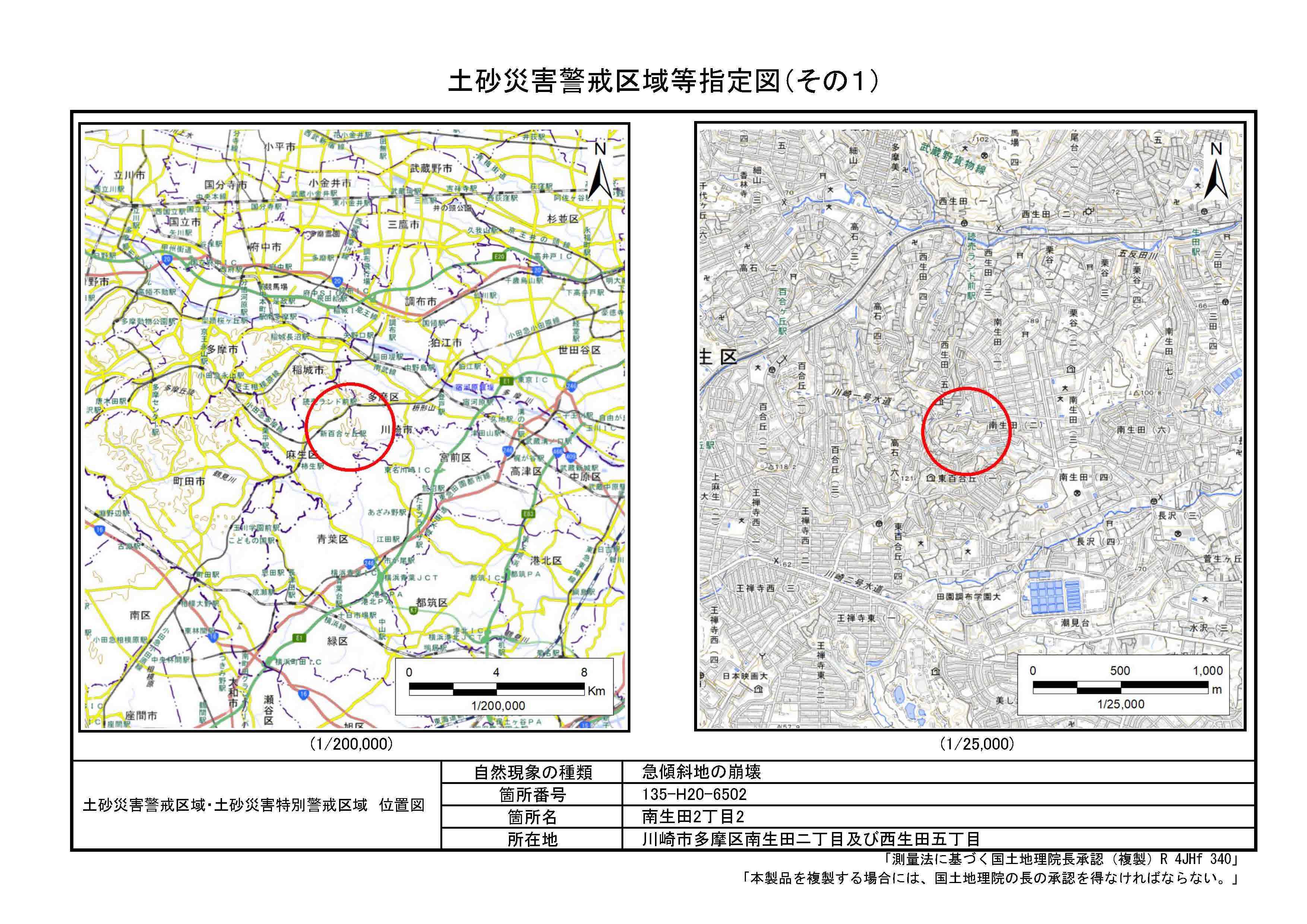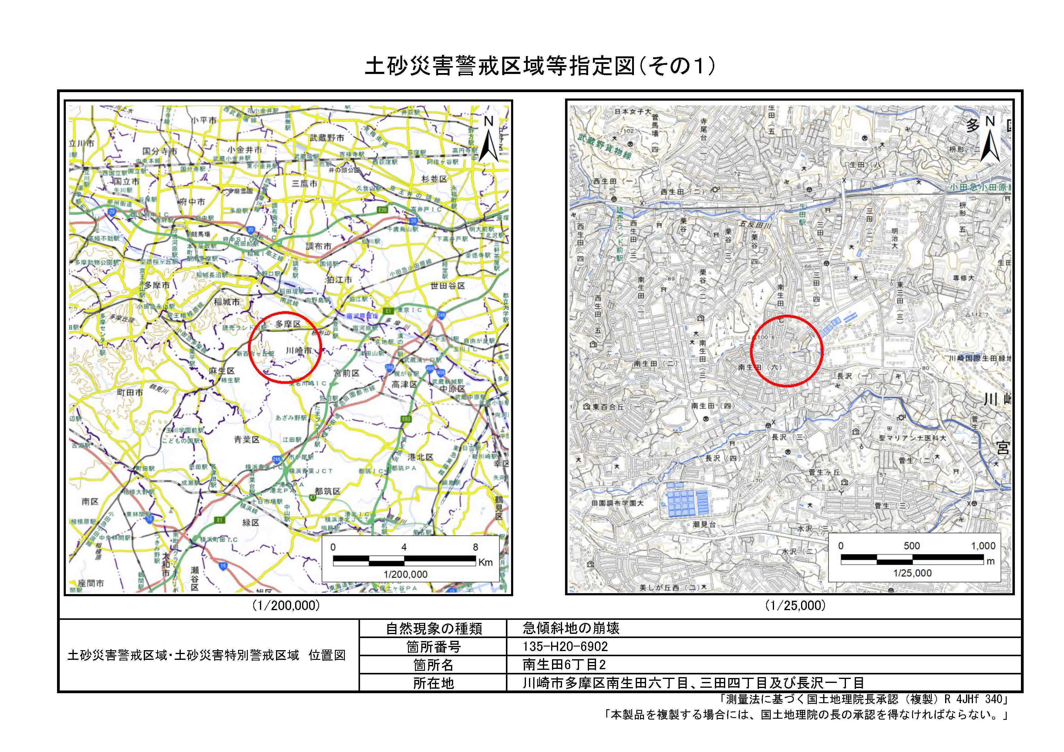 宮前区五所塚1丁目、神木本町1丁目、多摩区長尾2丁目及び長尾3丁目 ※宮前区と多摩区にまたがるため両区に掲載