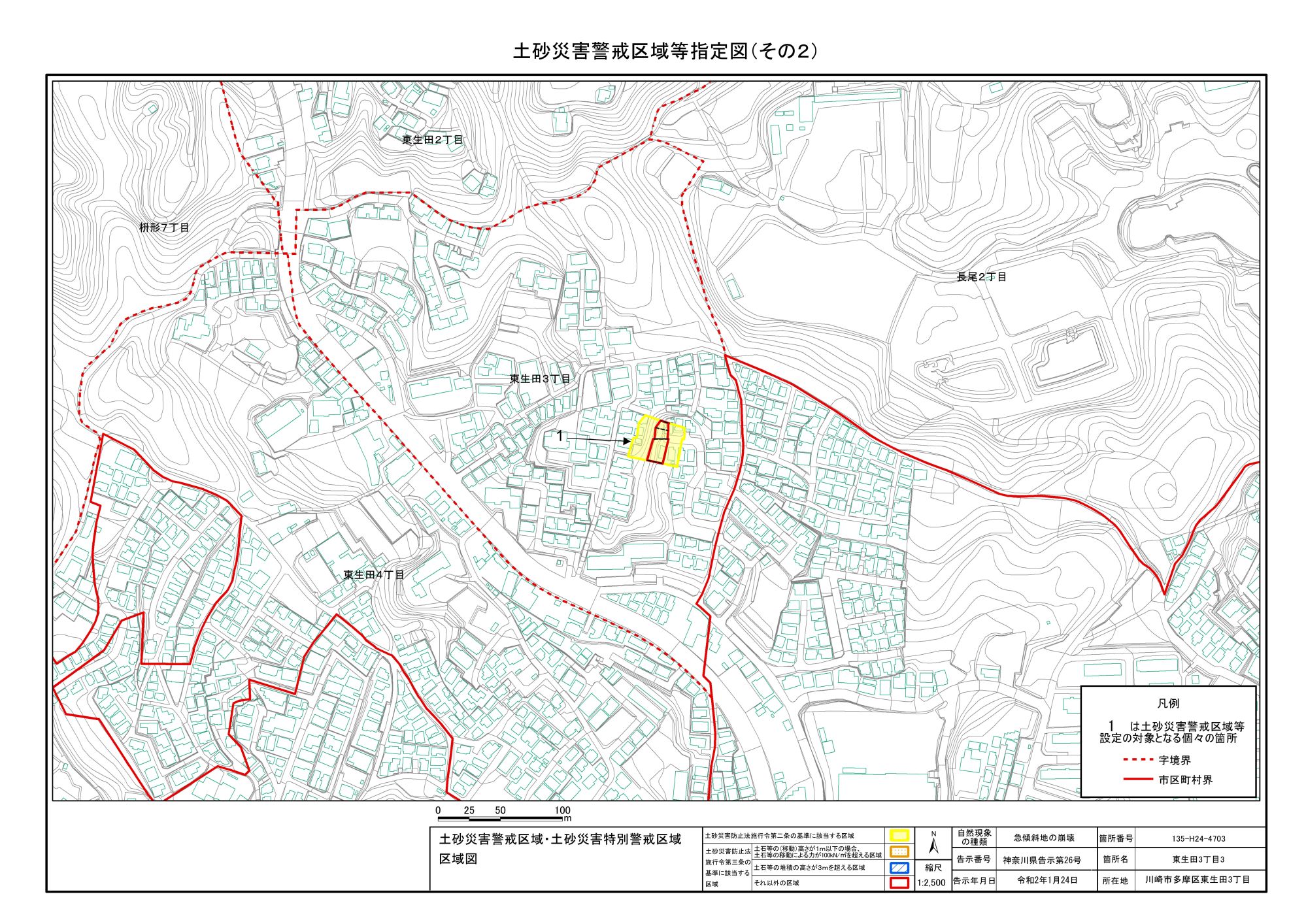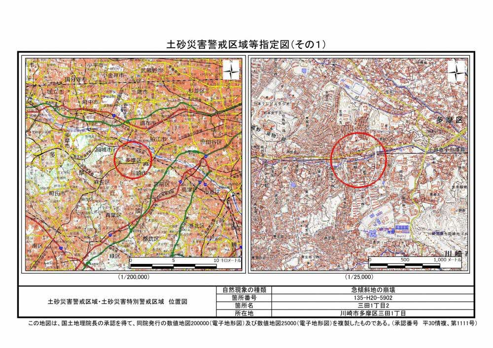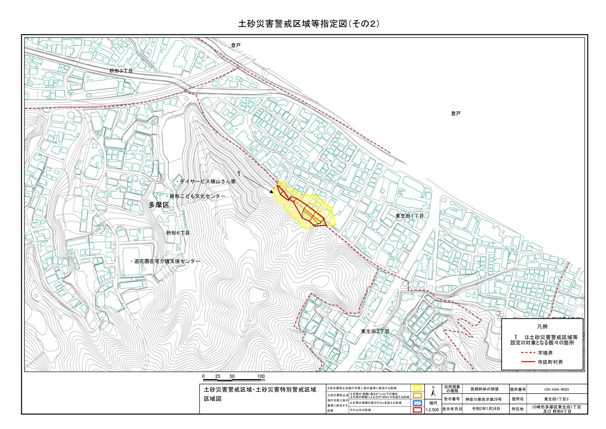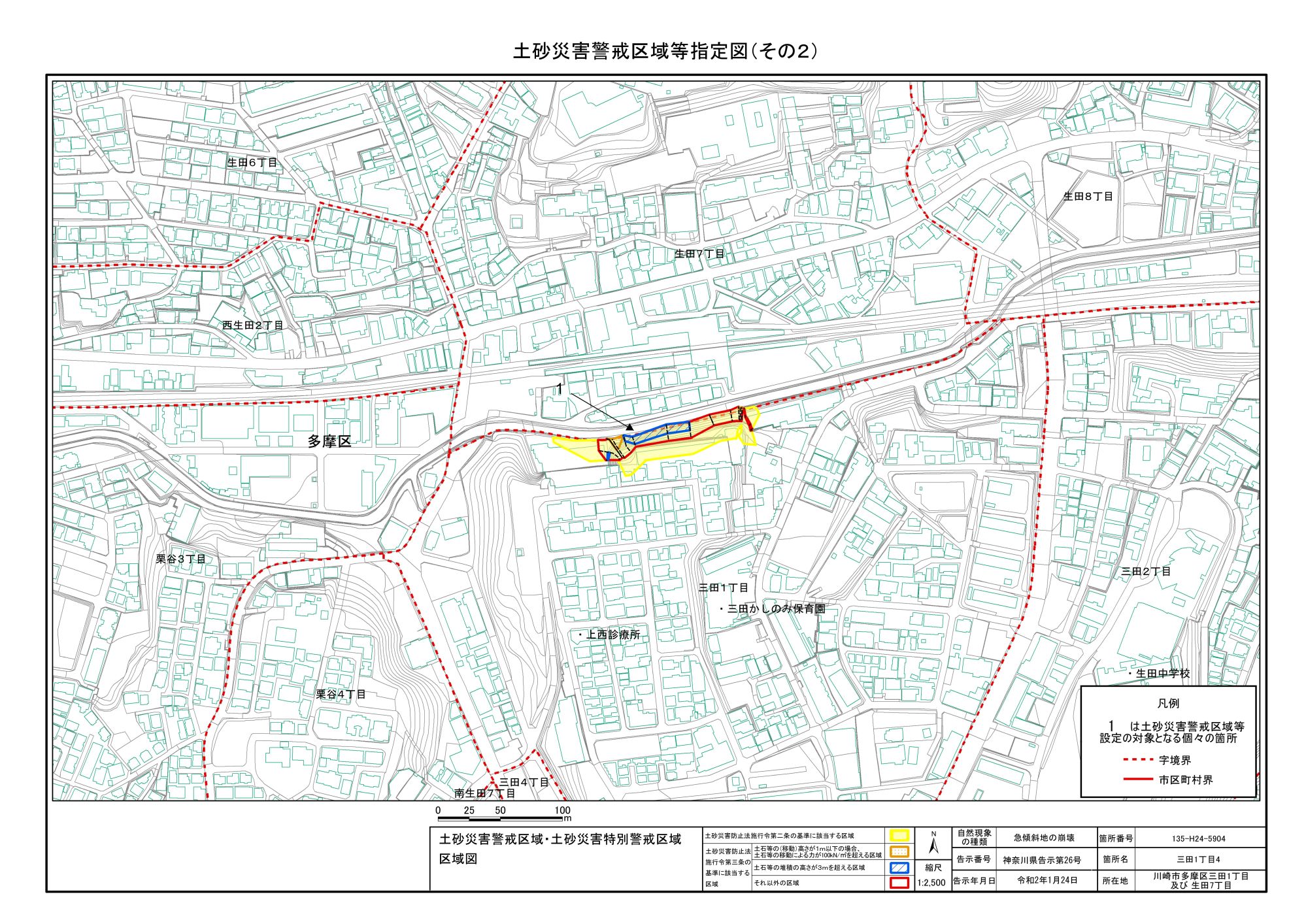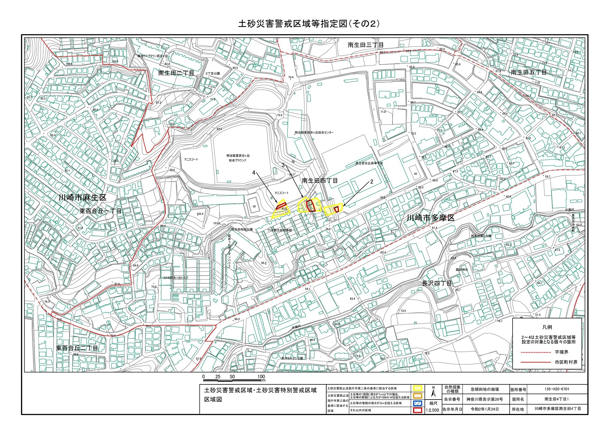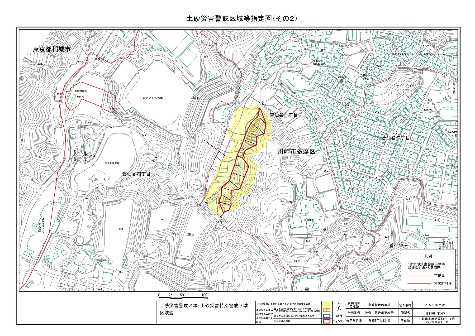 宮前区五所塚1丁目、神木本町1丁目、多摩区長尾2丁目及び長尾3丁目 ※宮前区と多摩区にまたがるため両区に掲載