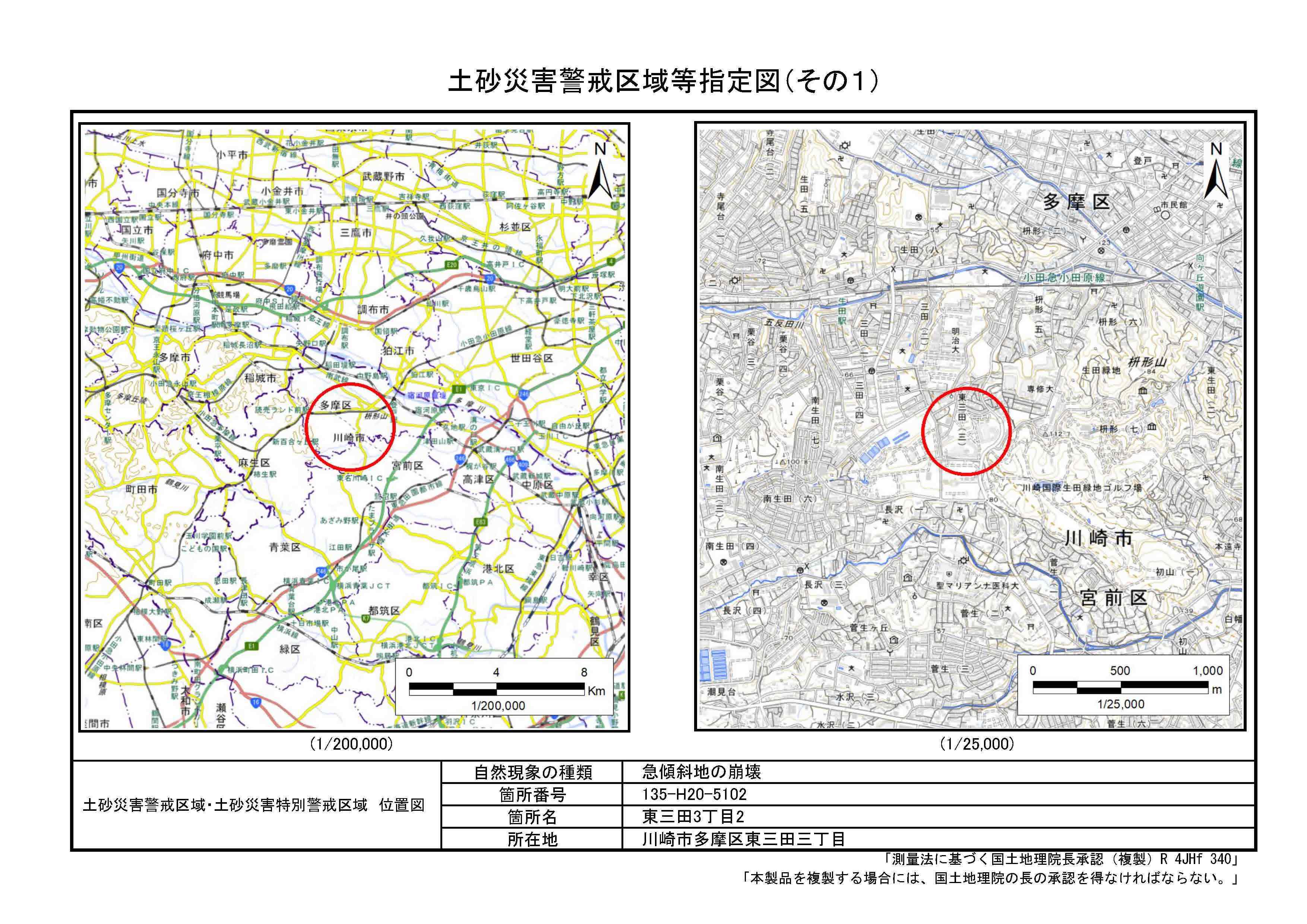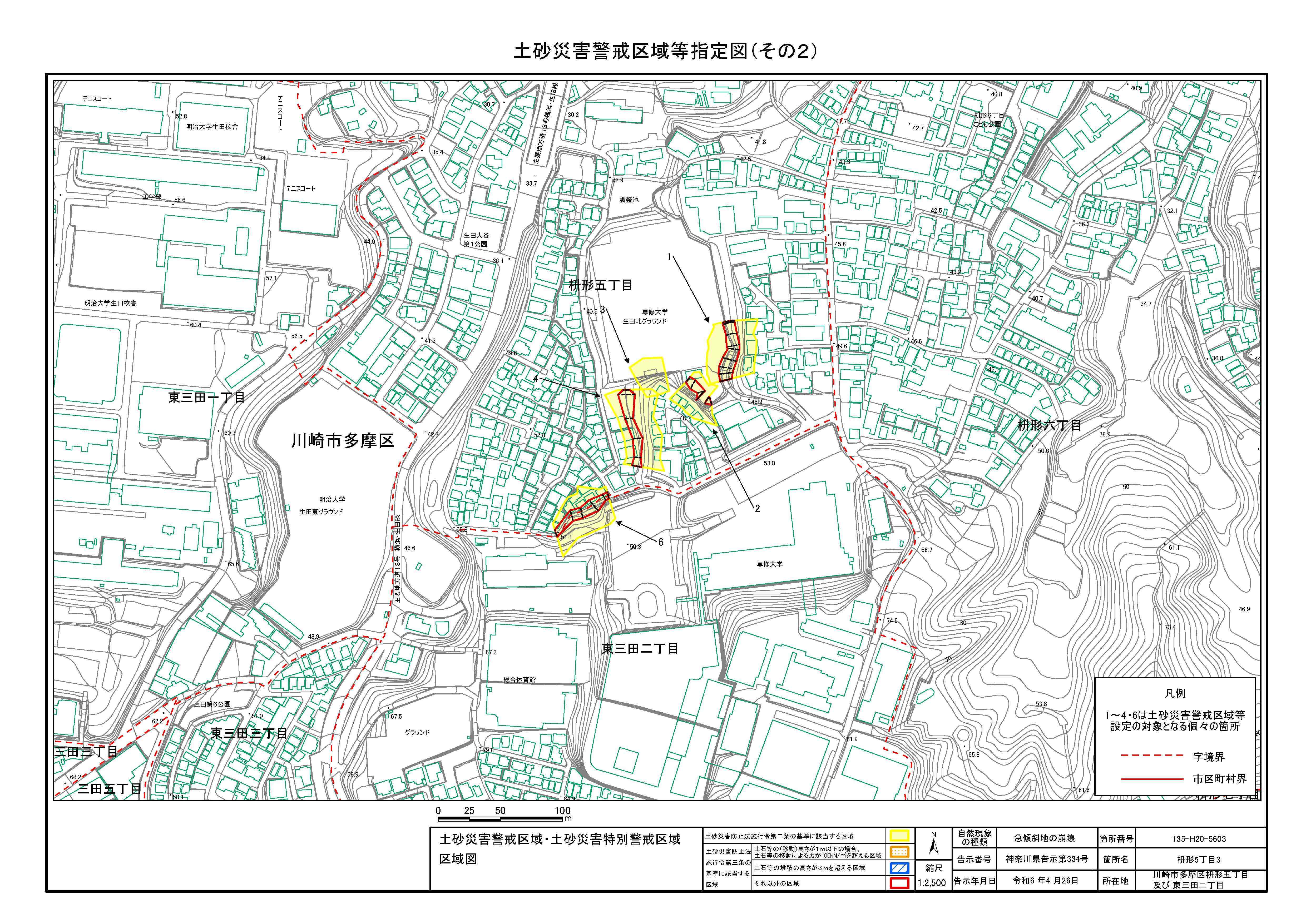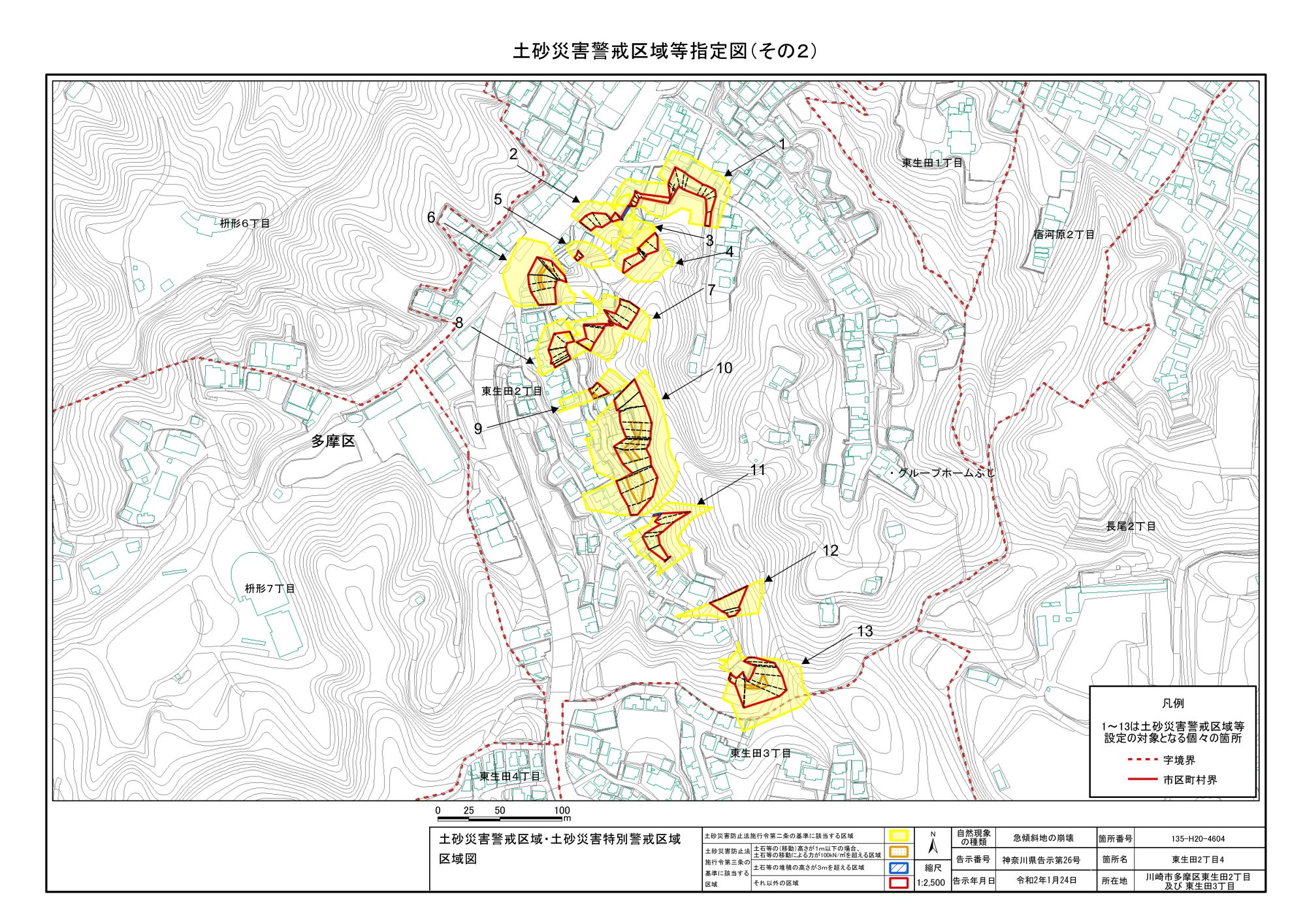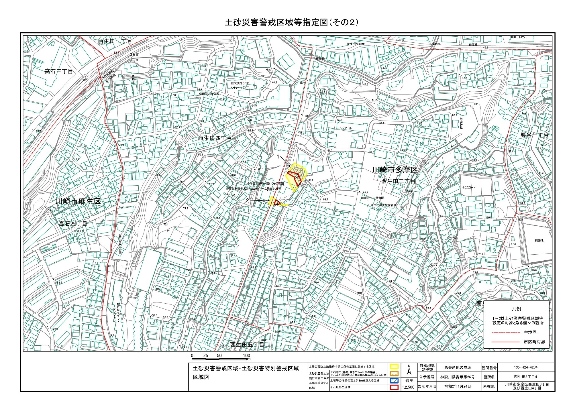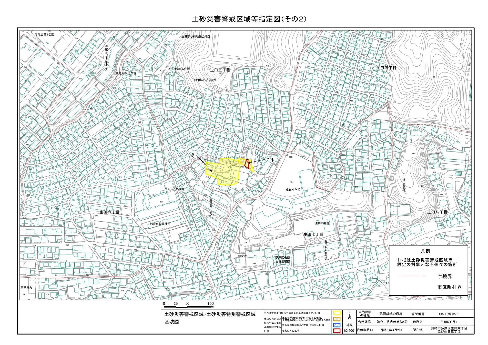 宮前区五所塚1丁目、神木本町1丁目、多摩区長尾2丁目及び長尾3丁目 ※宮前区と多摩区にまたがるため両区に掲載