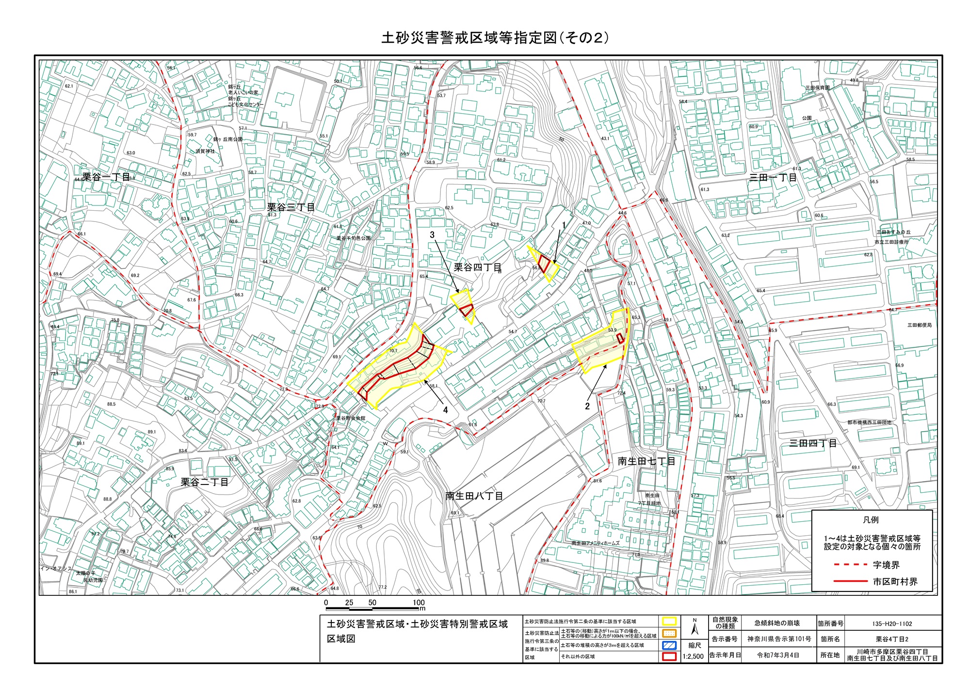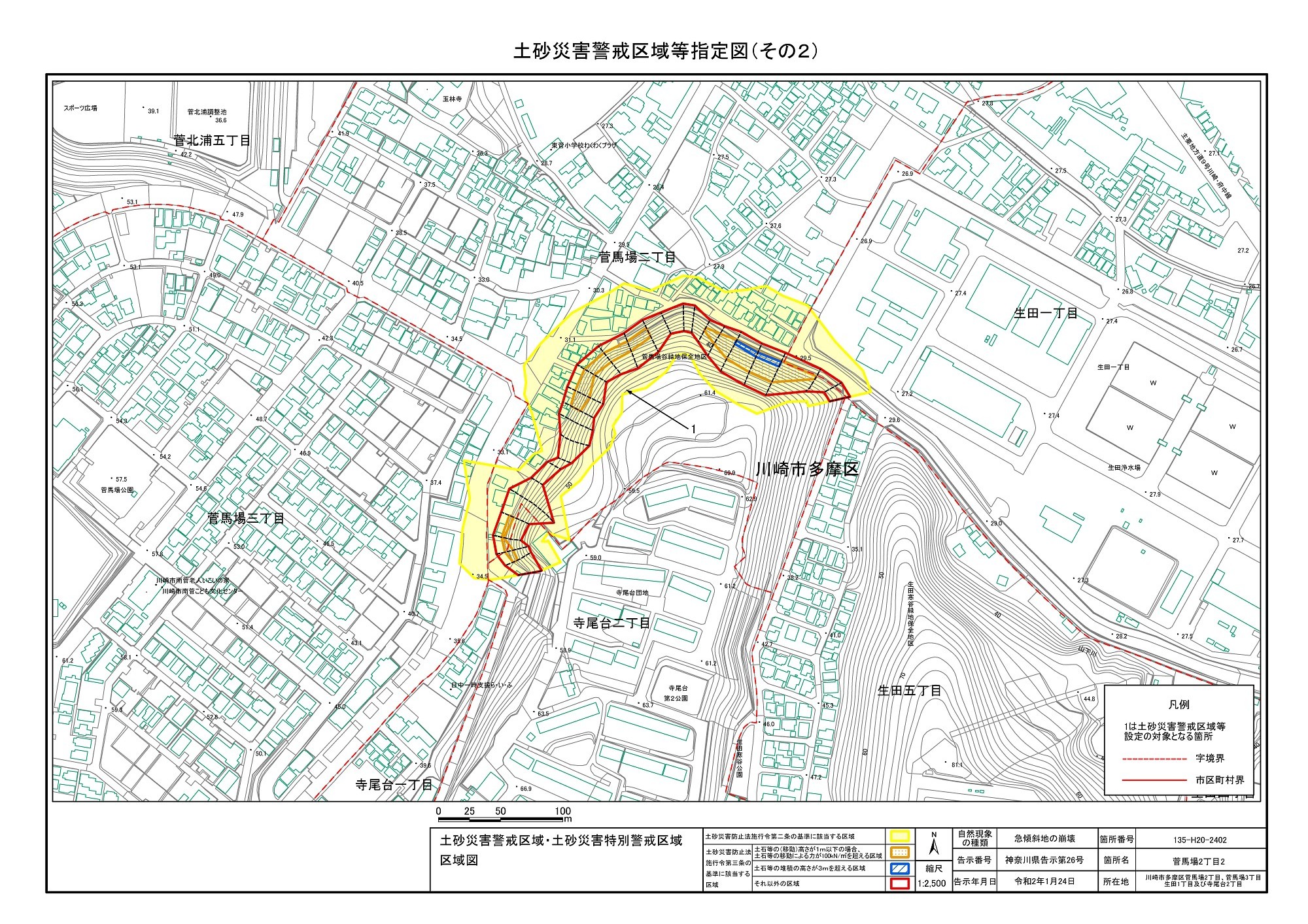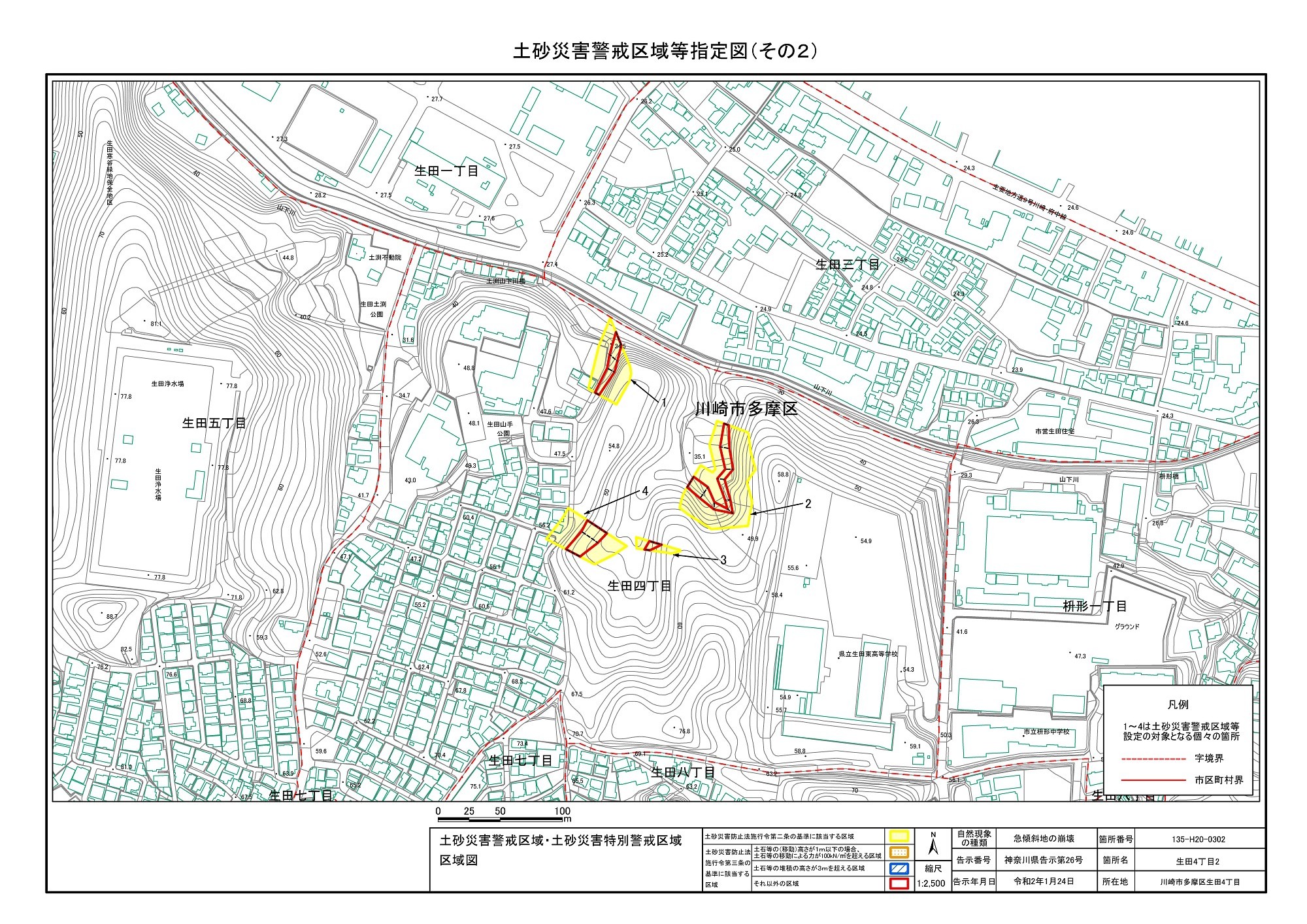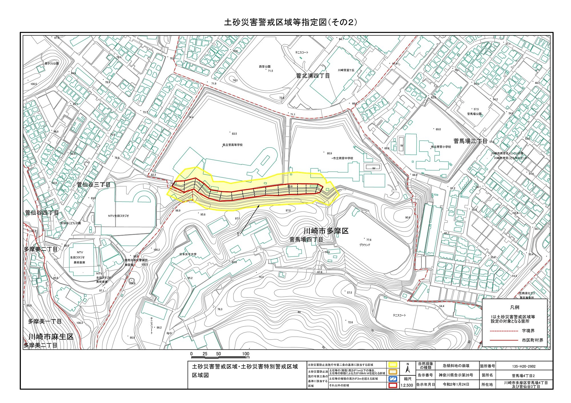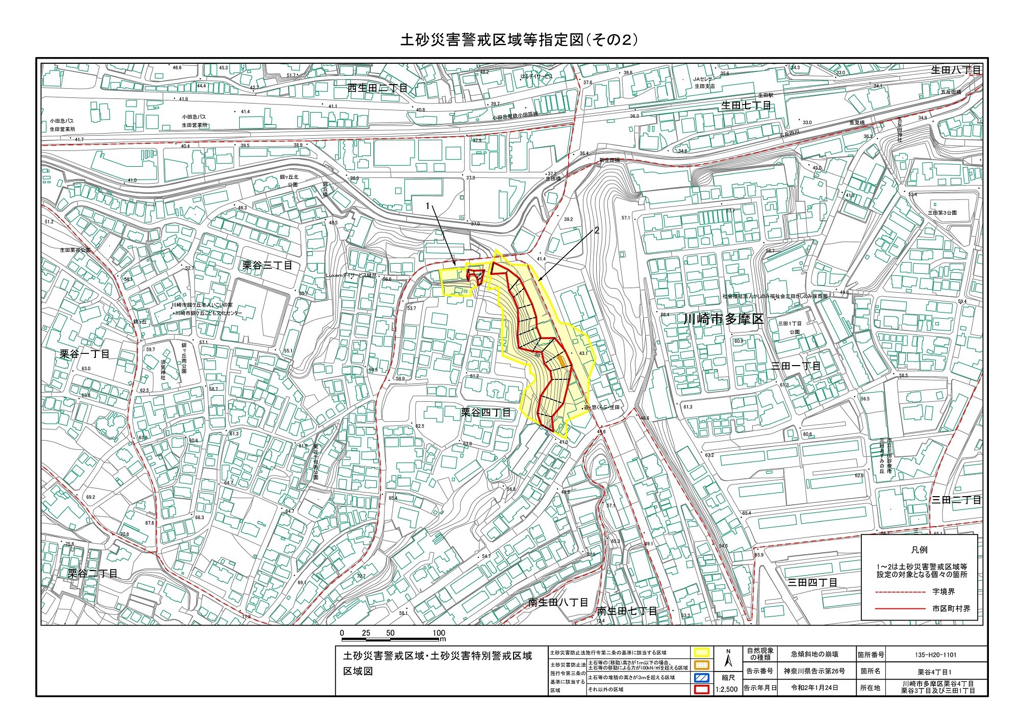 宮前区五所塚1丁目、神木本町1丁目、多摩区長尾2丁目及び長尾3丁目 ※宮前区と多摩区にまたがるため両区に掲載