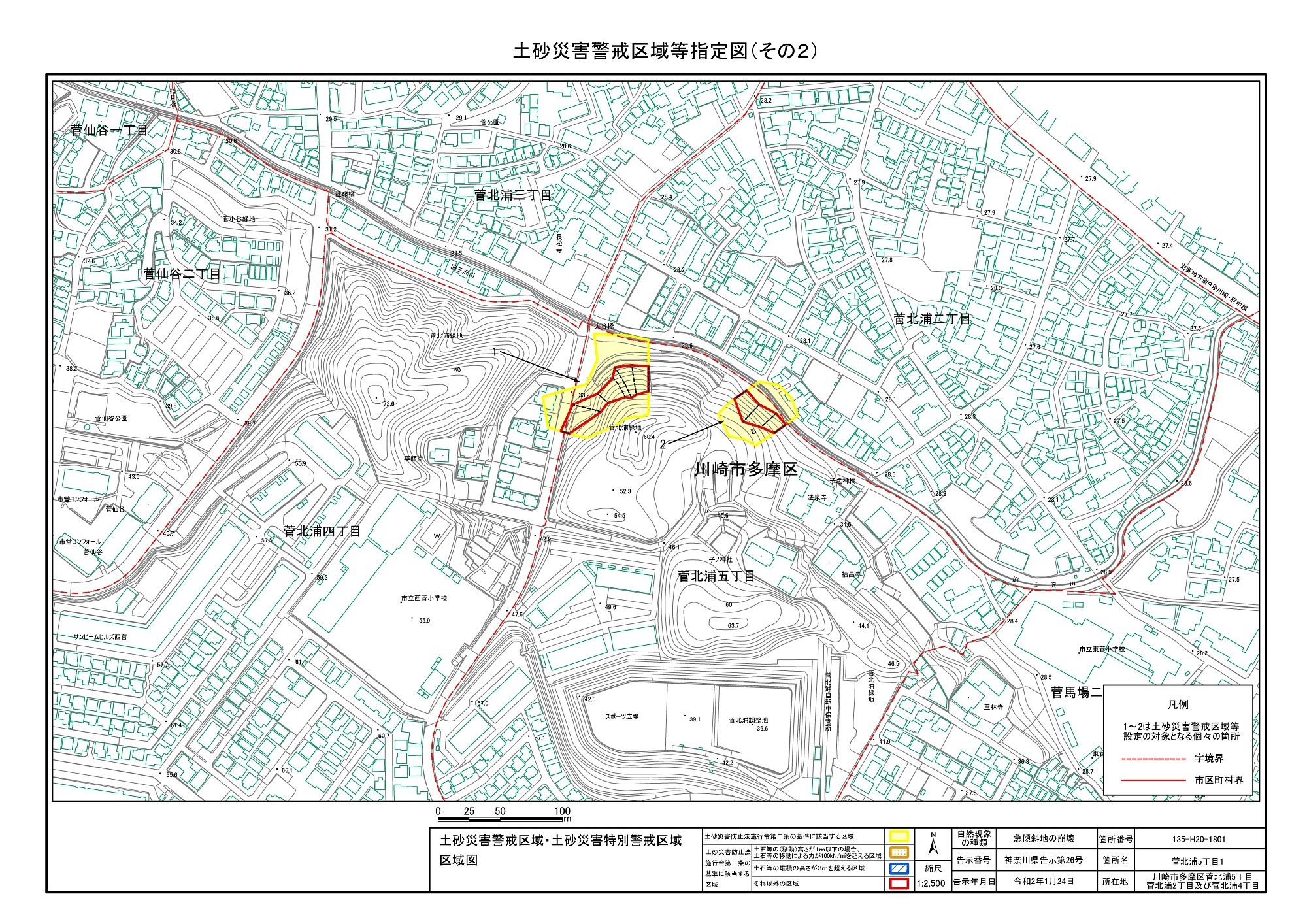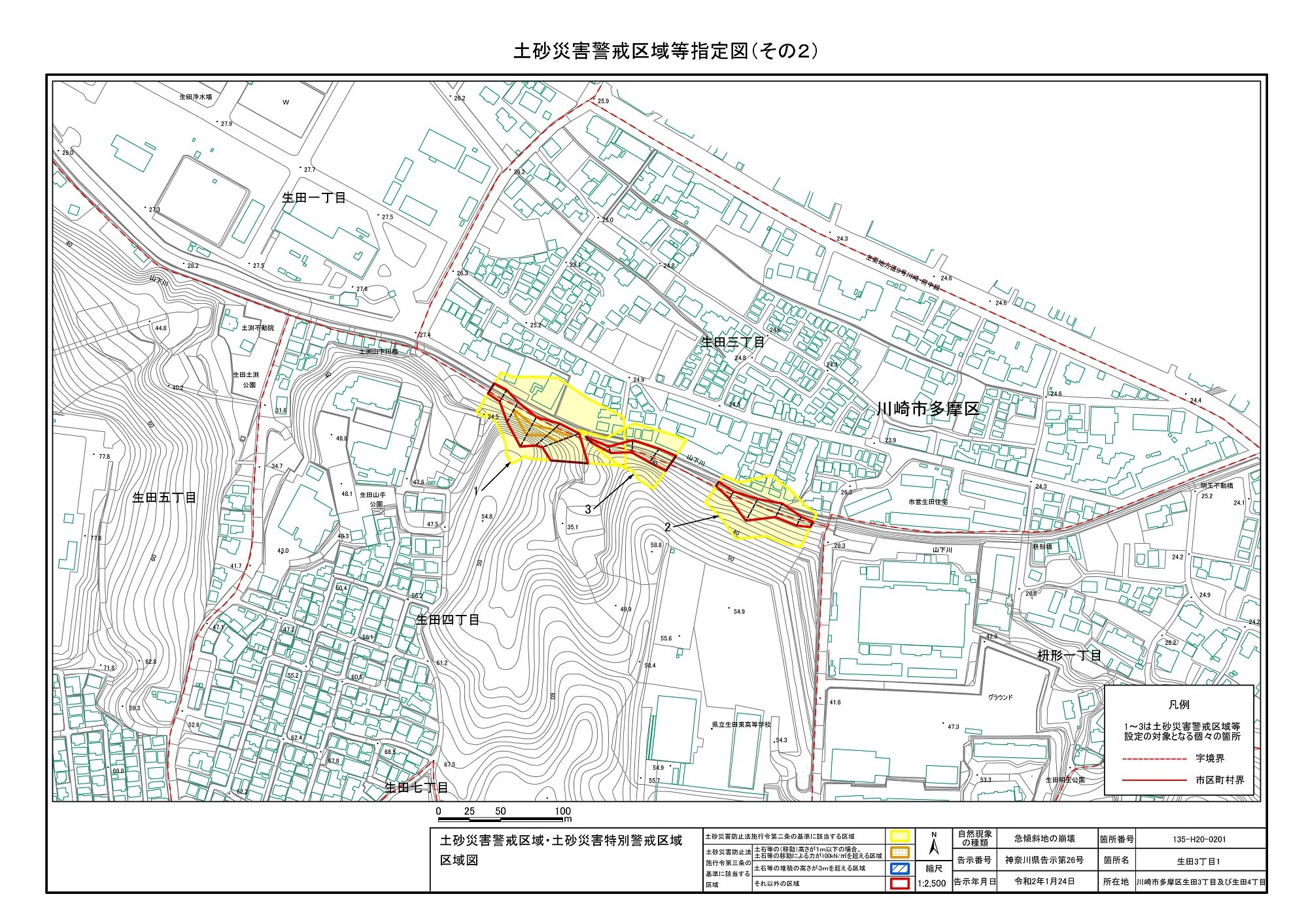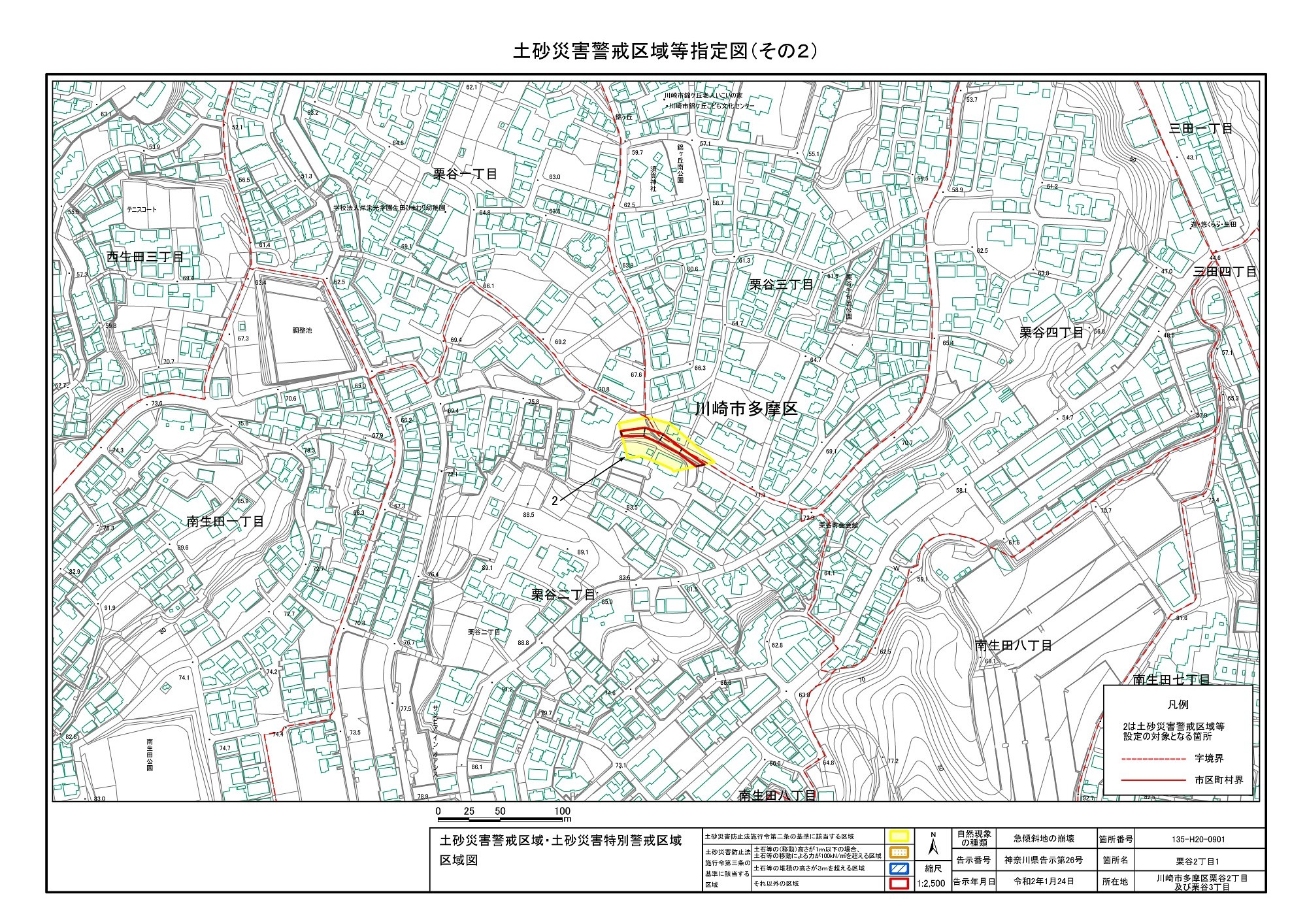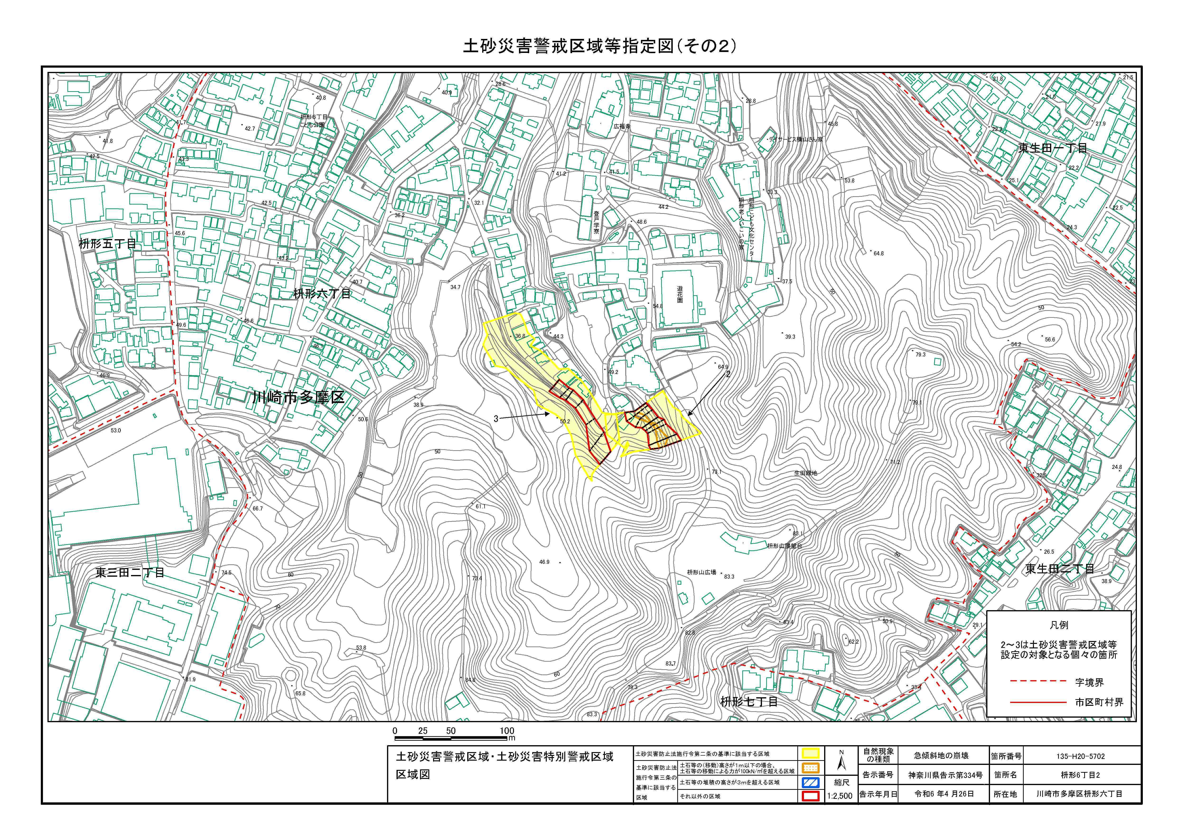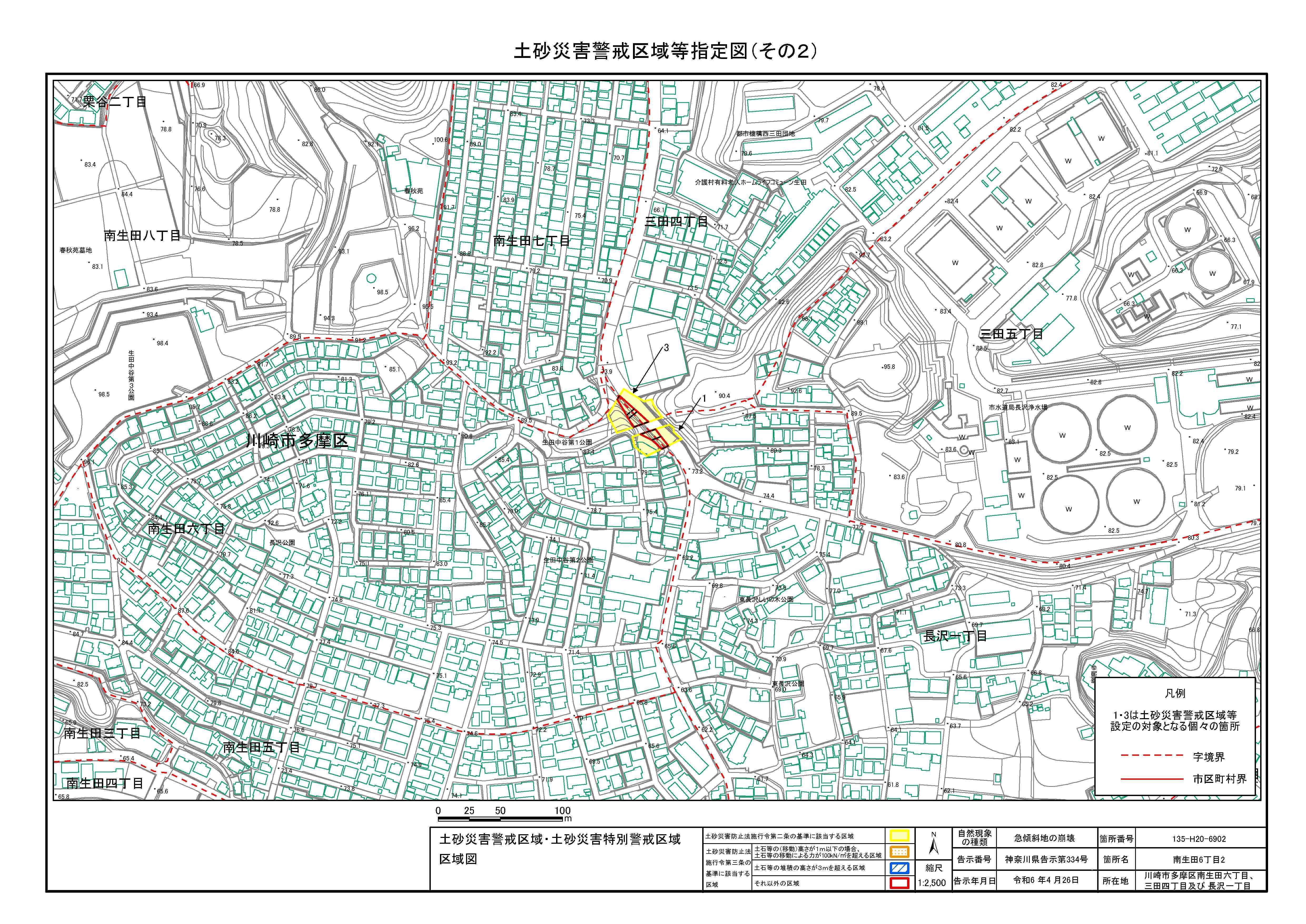 宮前区五所塚1丁目、神木本町1丁目、多摩区長尾2丁目及び長尾3丁目 ※宮前区と多摩区にまたがるため両区に掲載