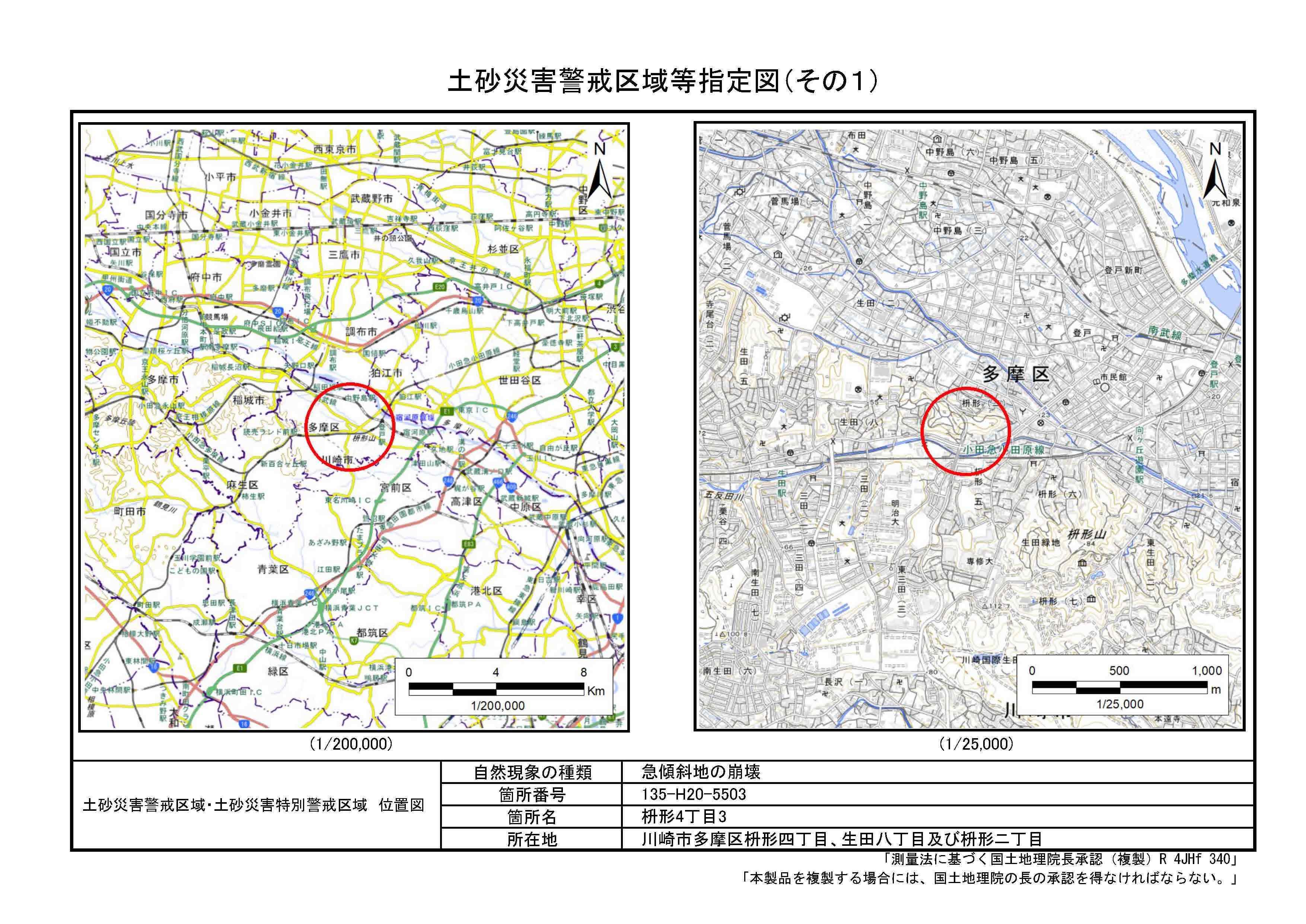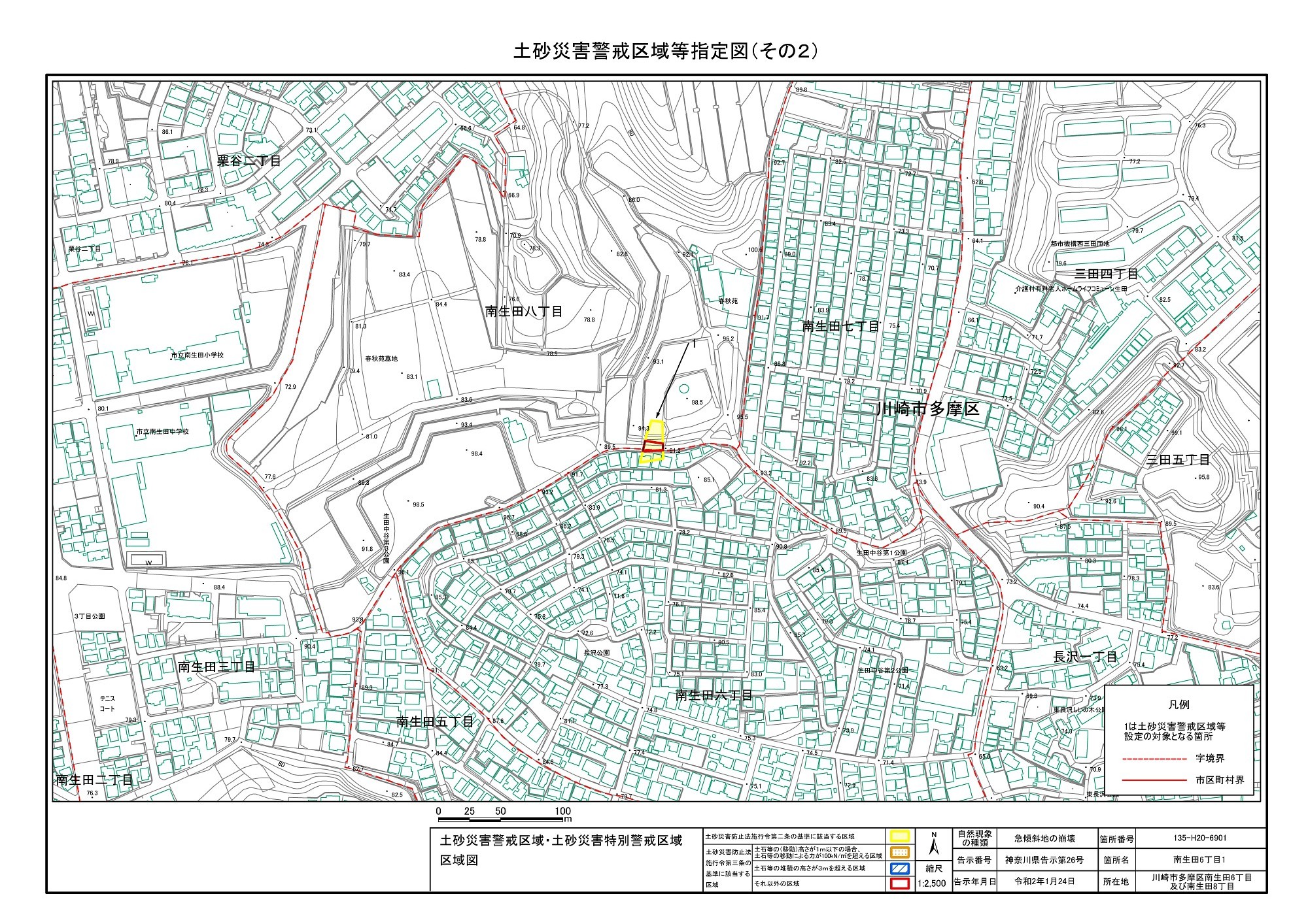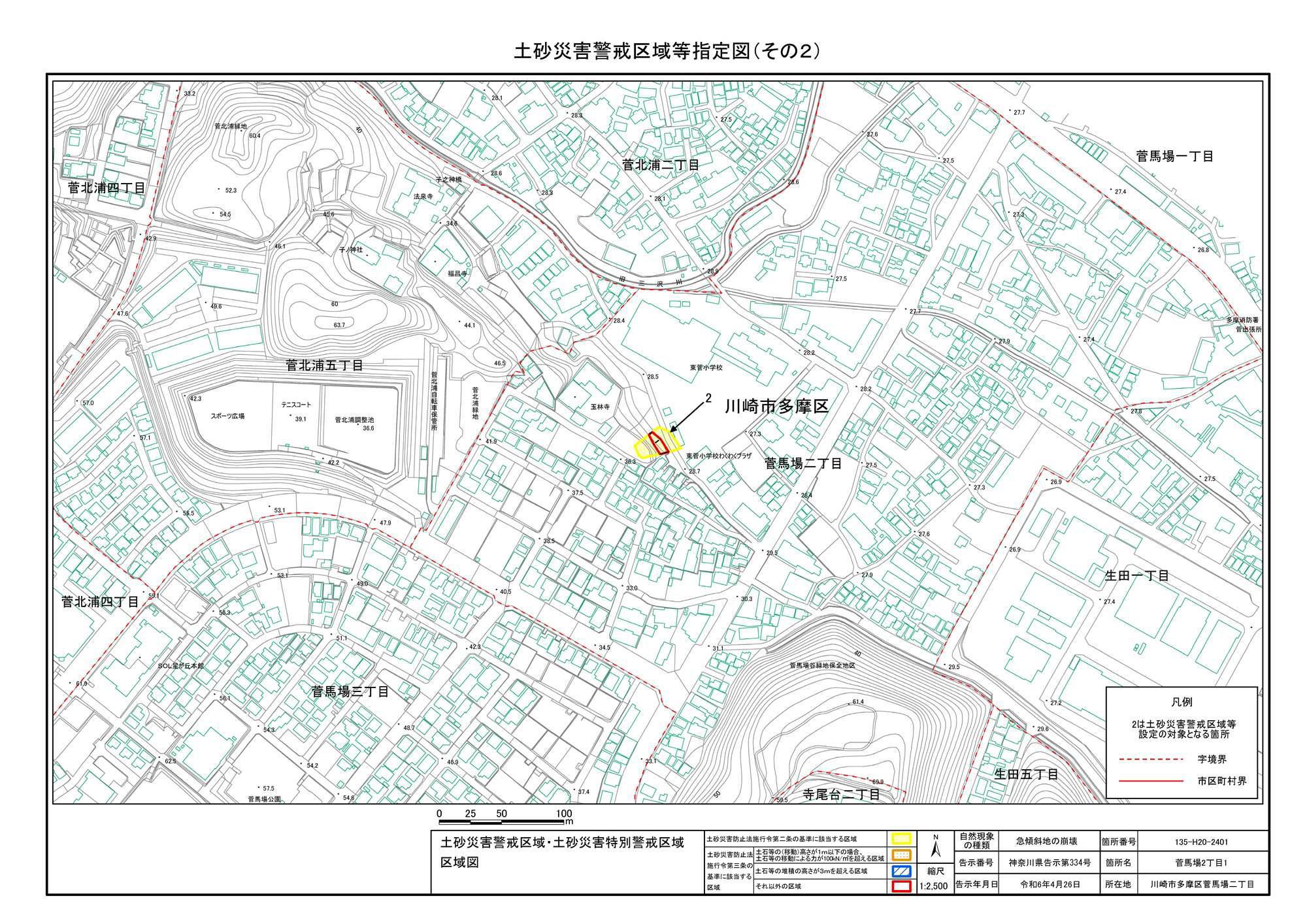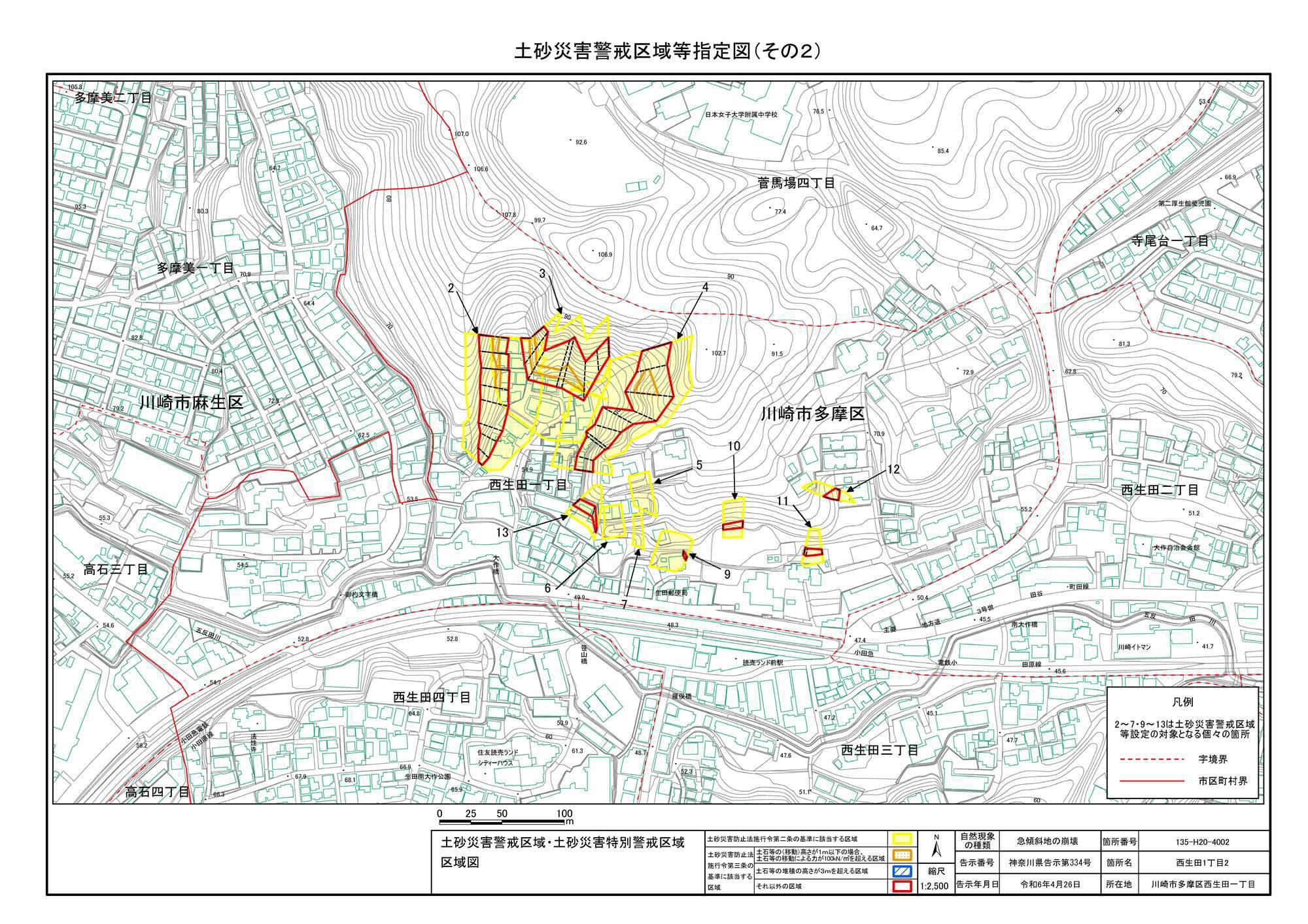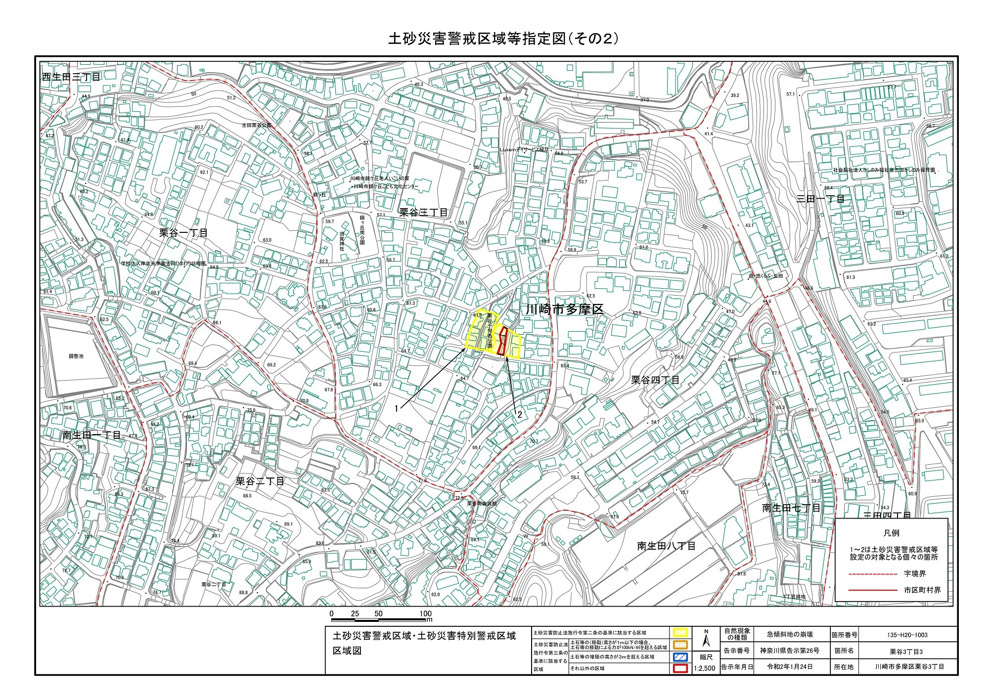 宮前区五所塚1丁目、神木本町1丁目、多摩区長尾2丁目及び長尾3丁目 ※宮前区と多摩区にまたがるため両区に掲載