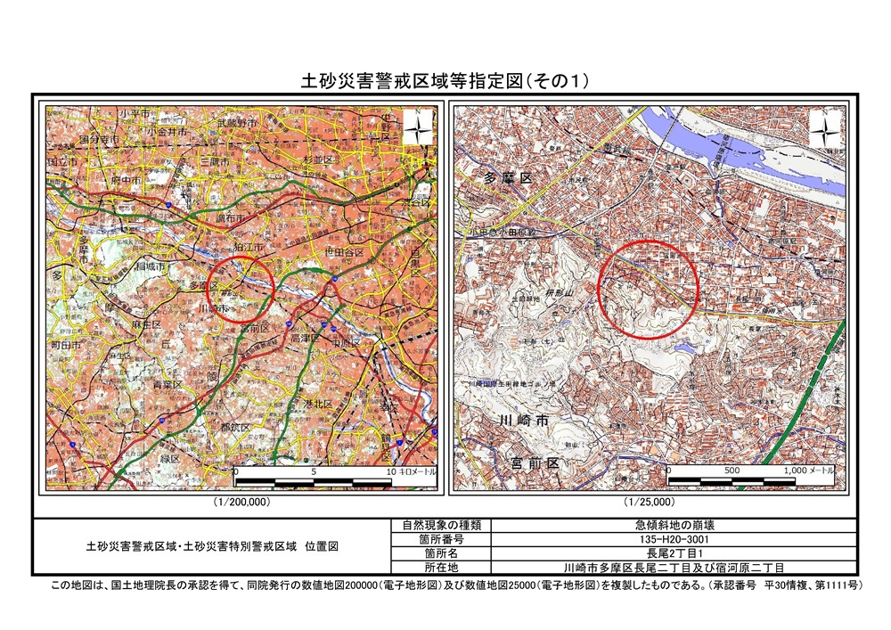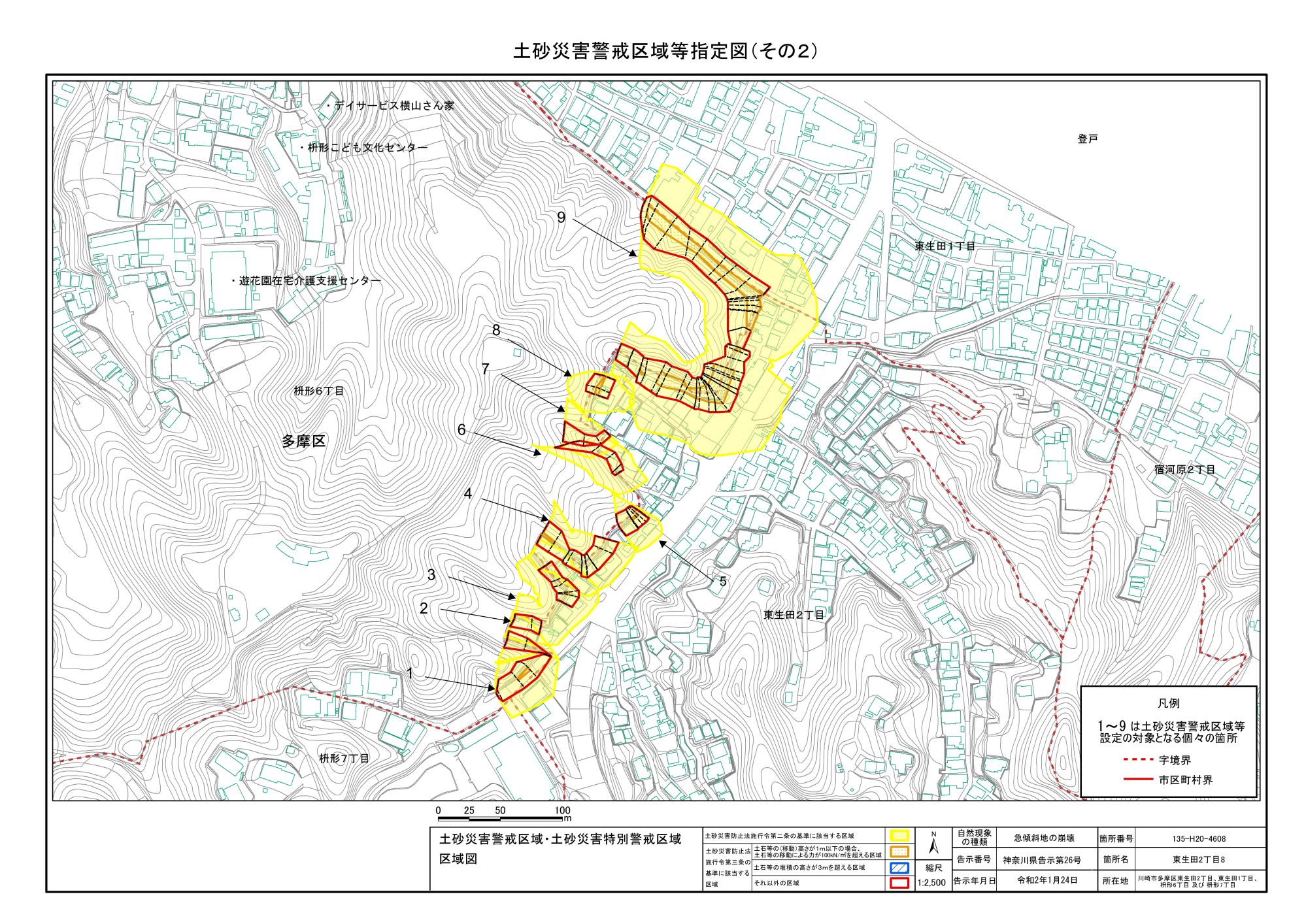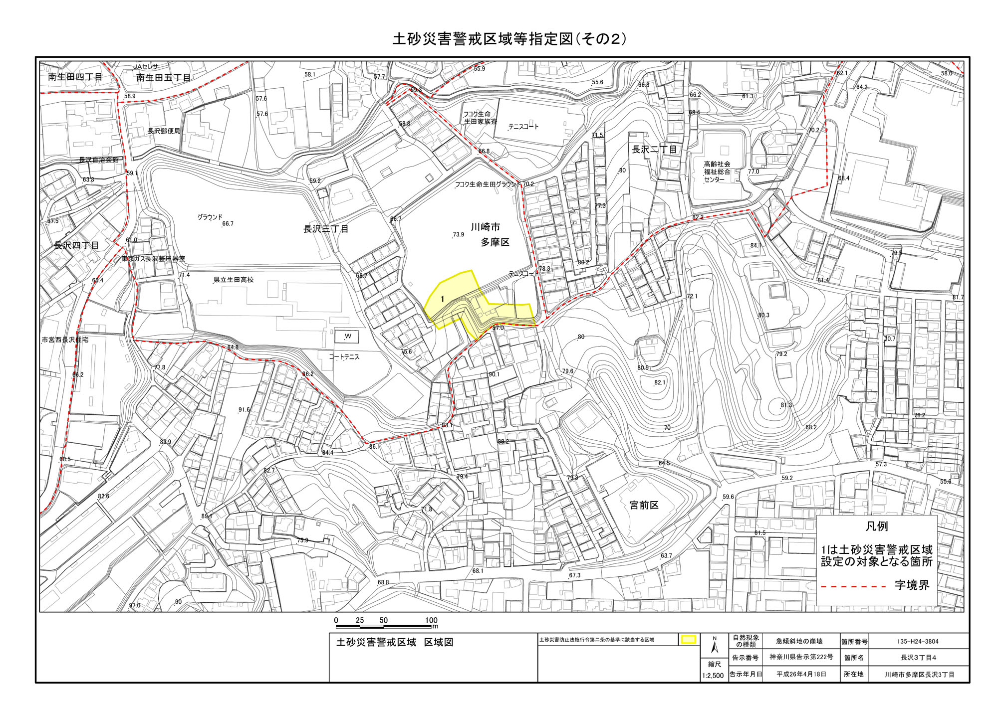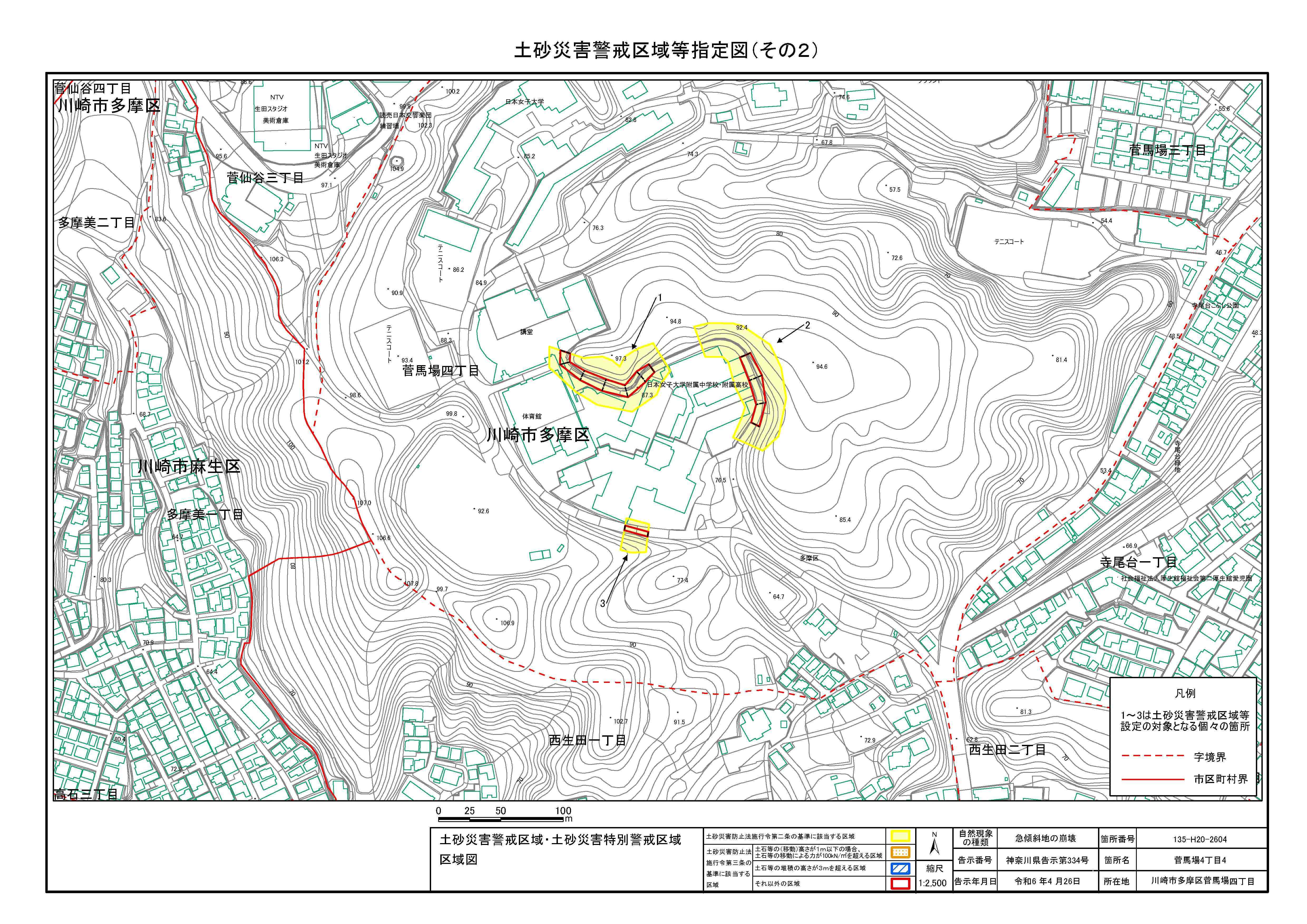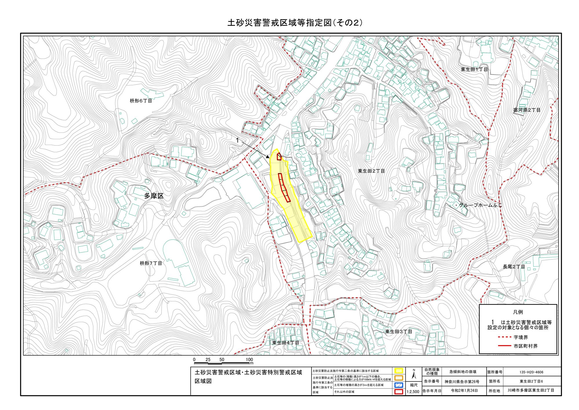 宮前区五所塚1丁目、神木本町1丁目、多摩区長尾2丁目及び長尾3丁目 ※宮前区と多摩区にまたがるため両区に掲載