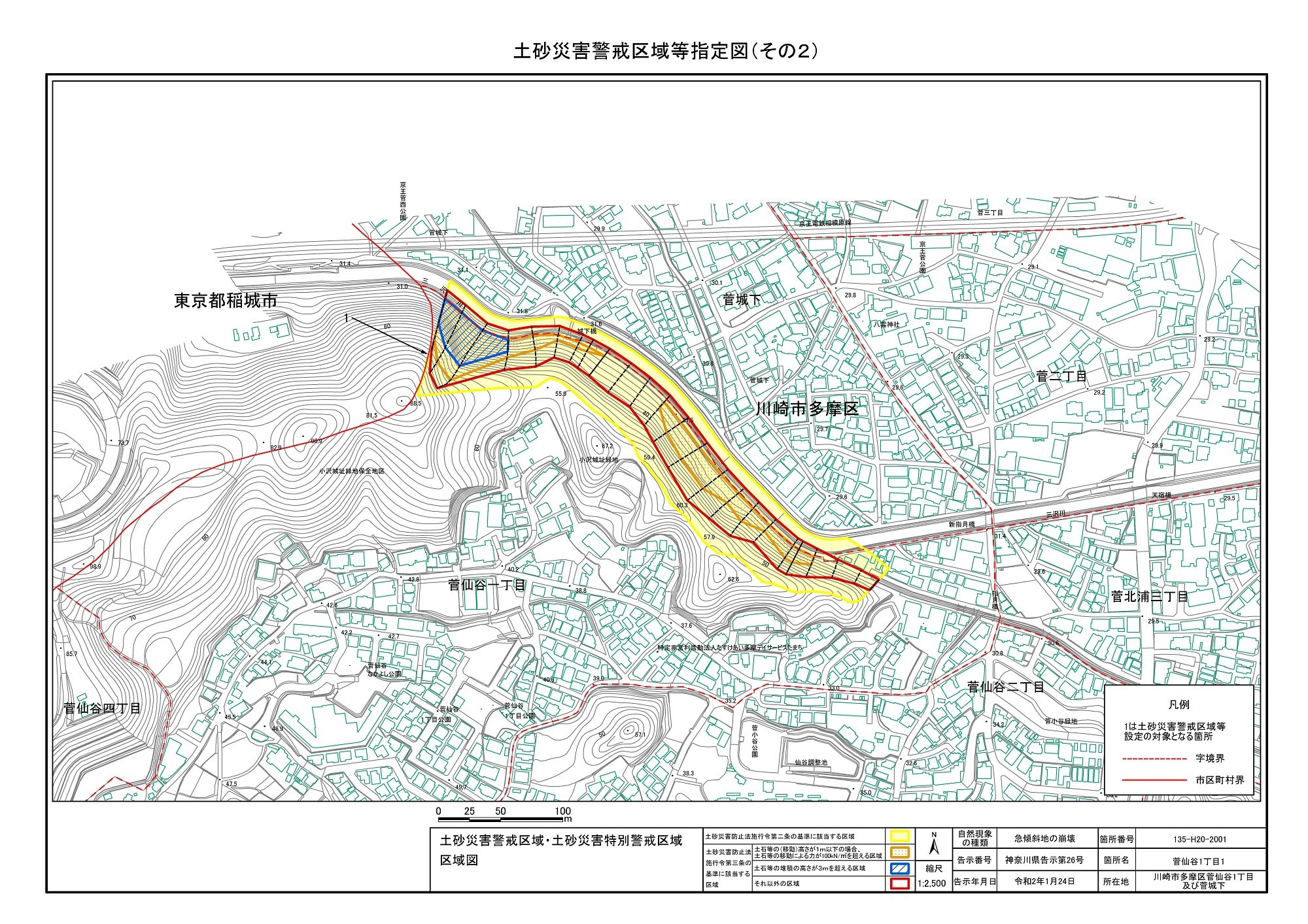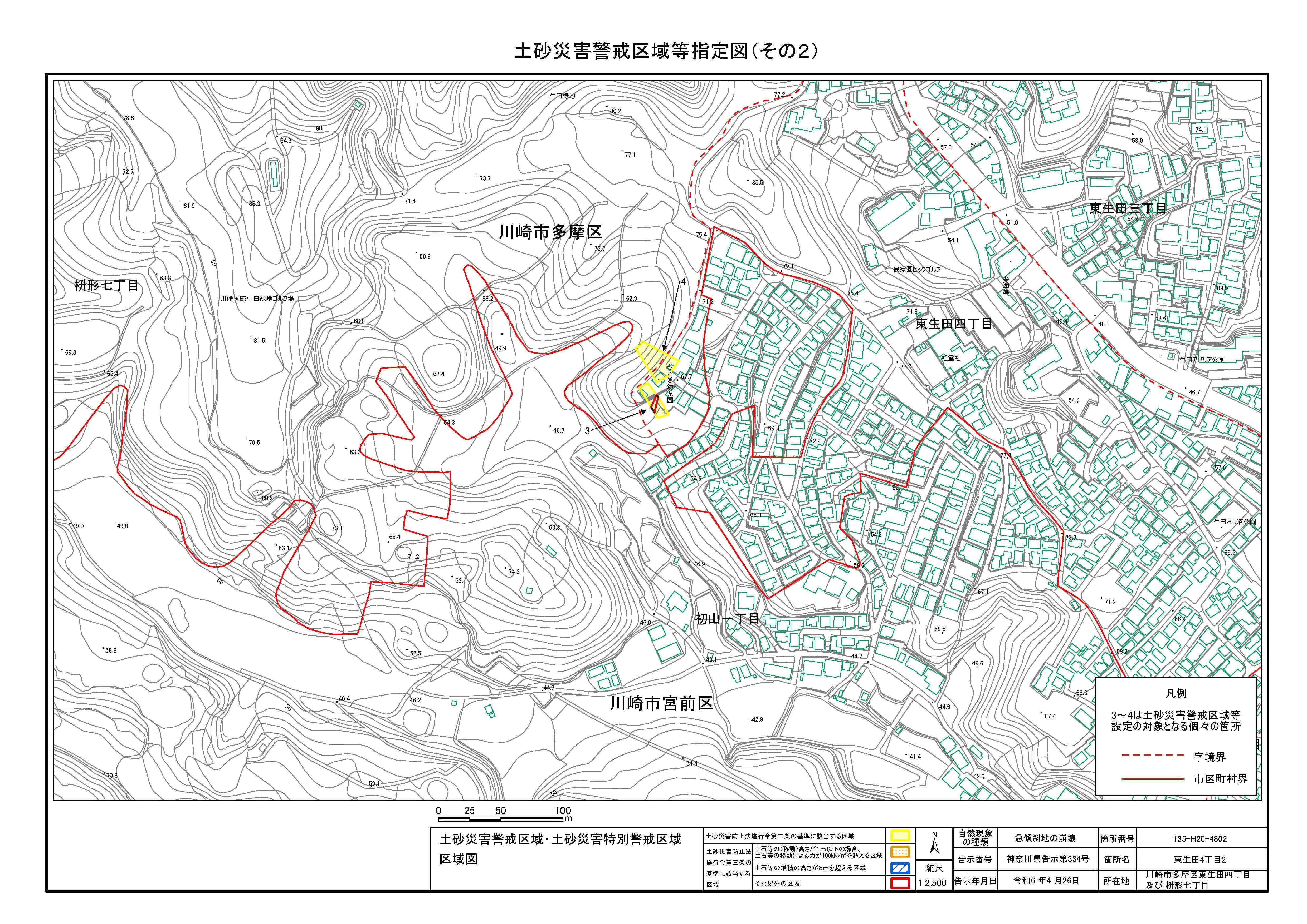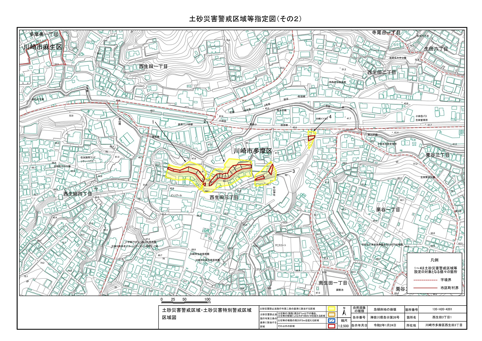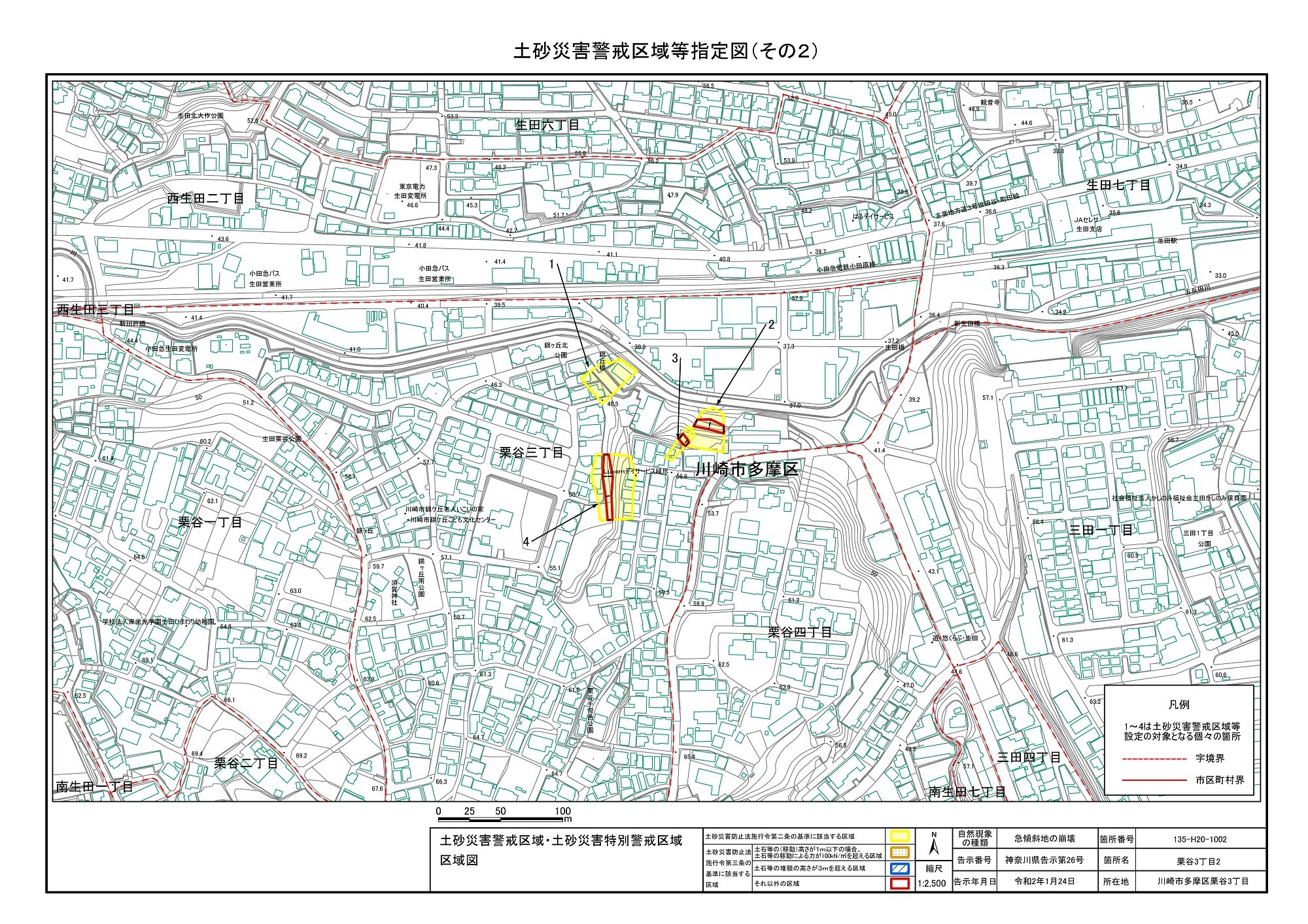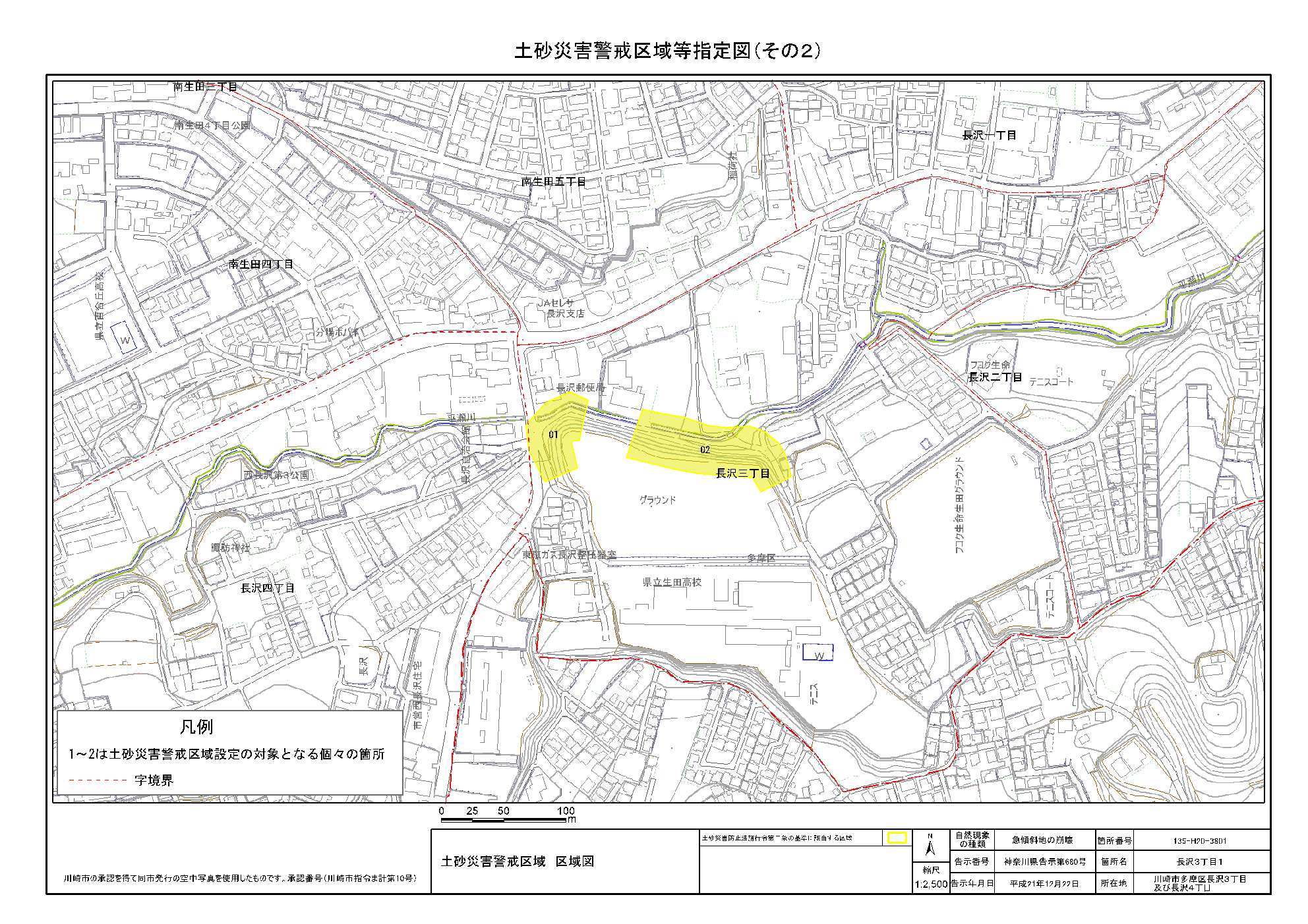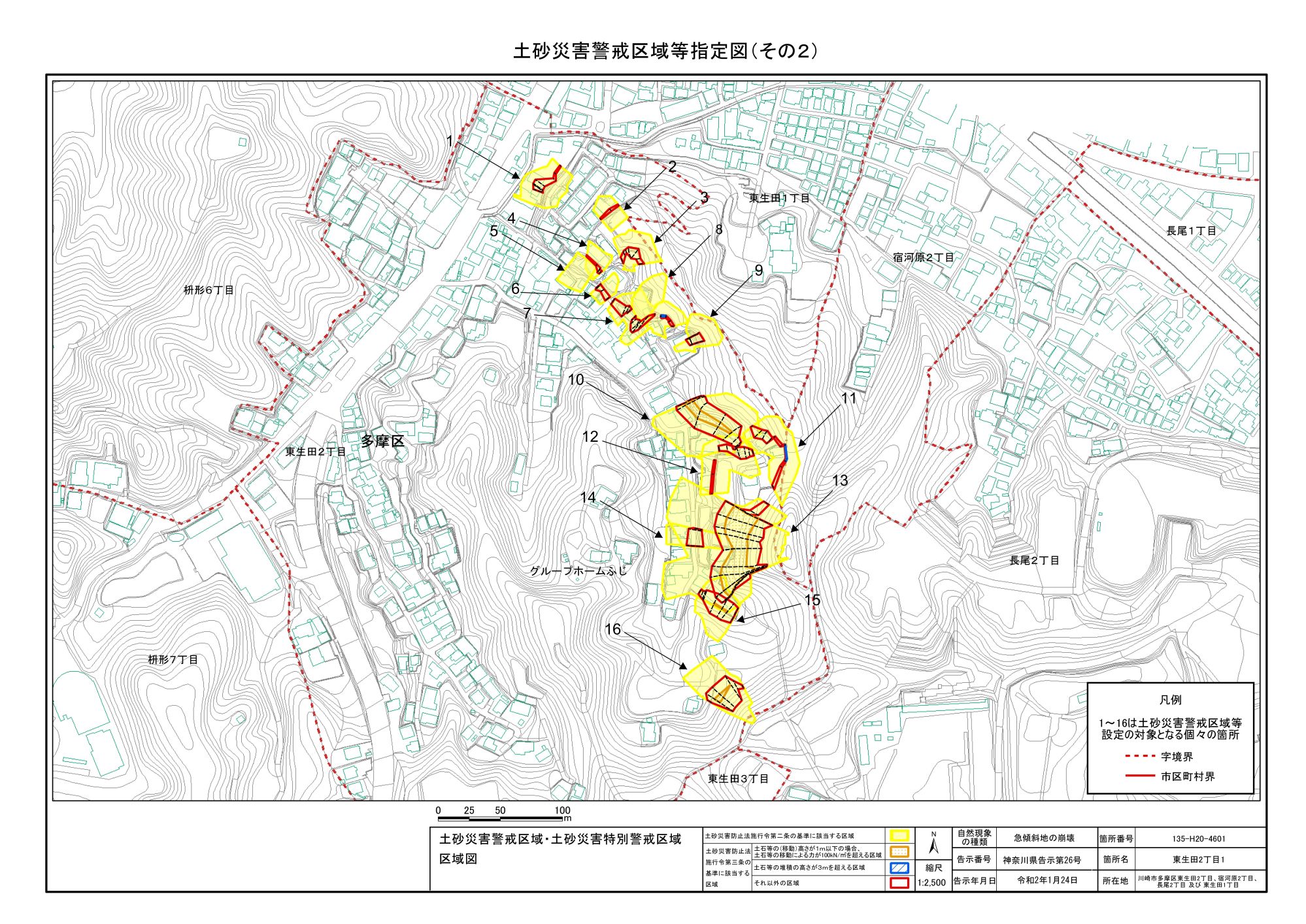 宮前区五所塚1丁目、神木本町1丁目、多摩区長尾2丁目及び長尾3丁目 ※宮前区と多摩区にまたがるため両区に掲載