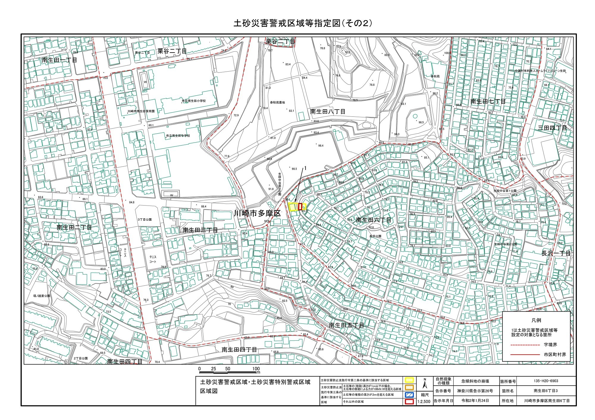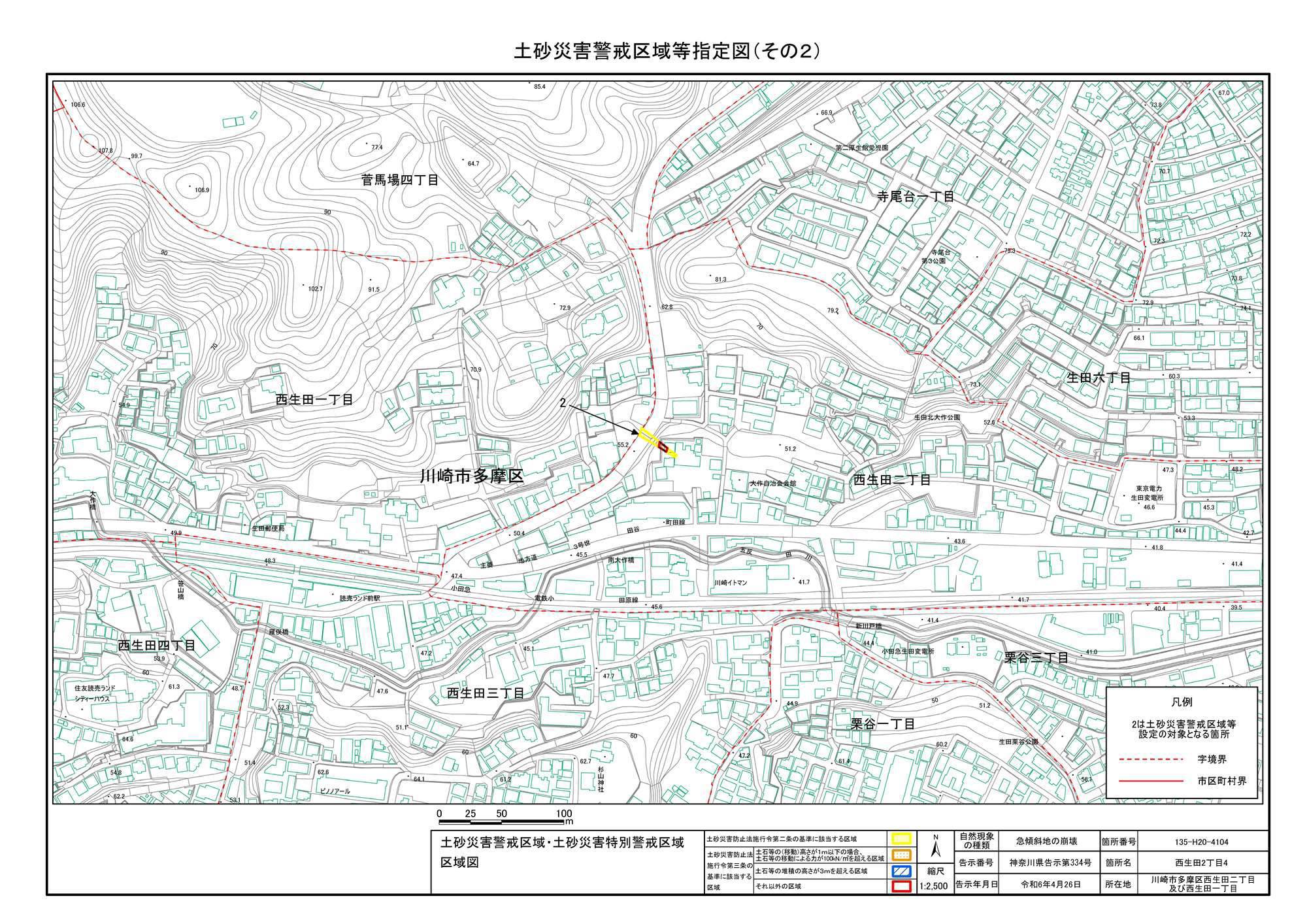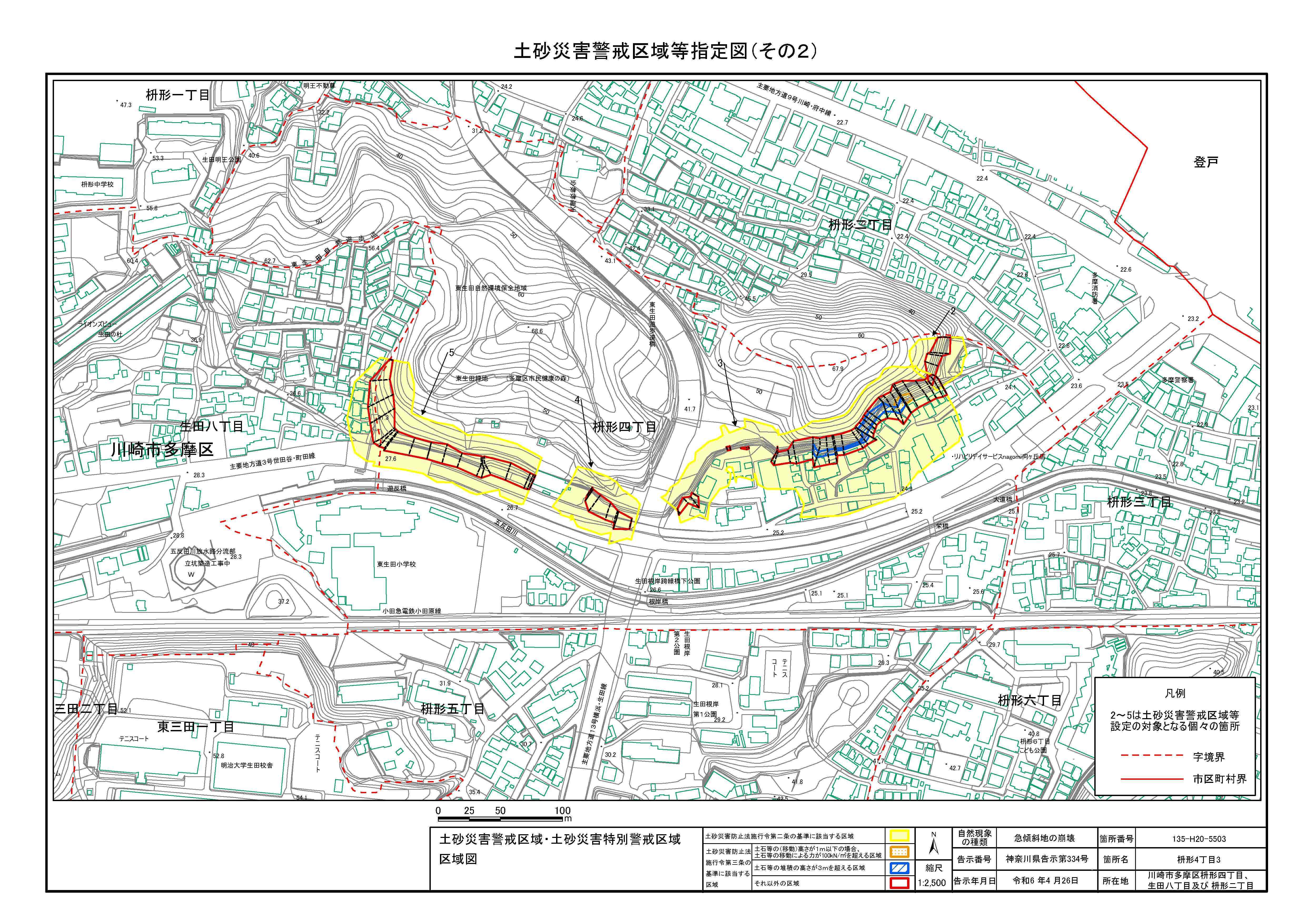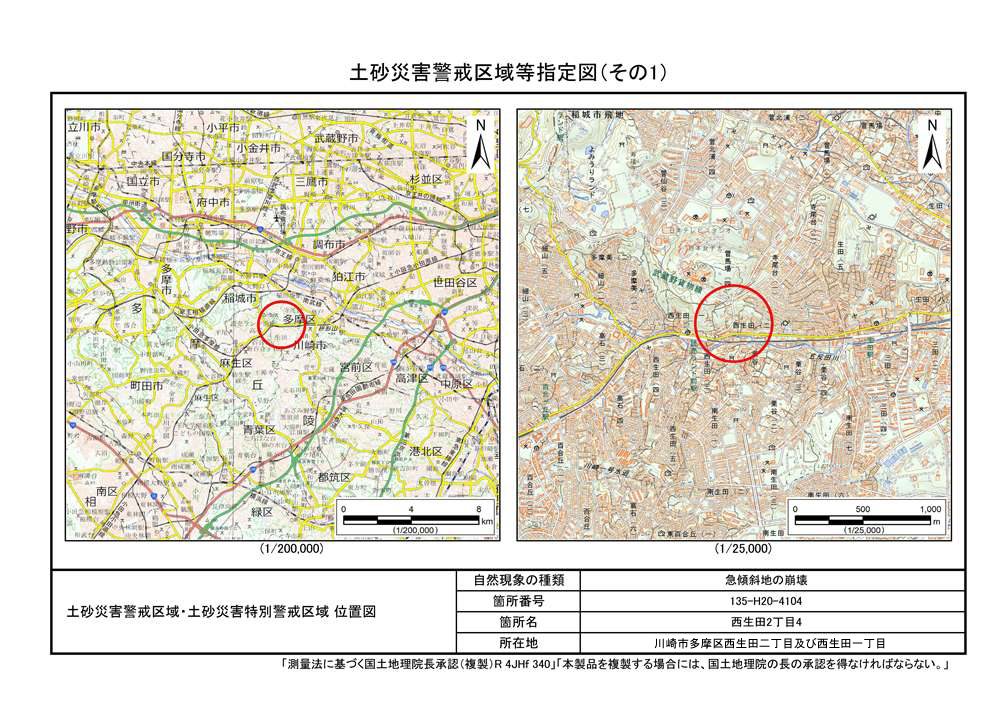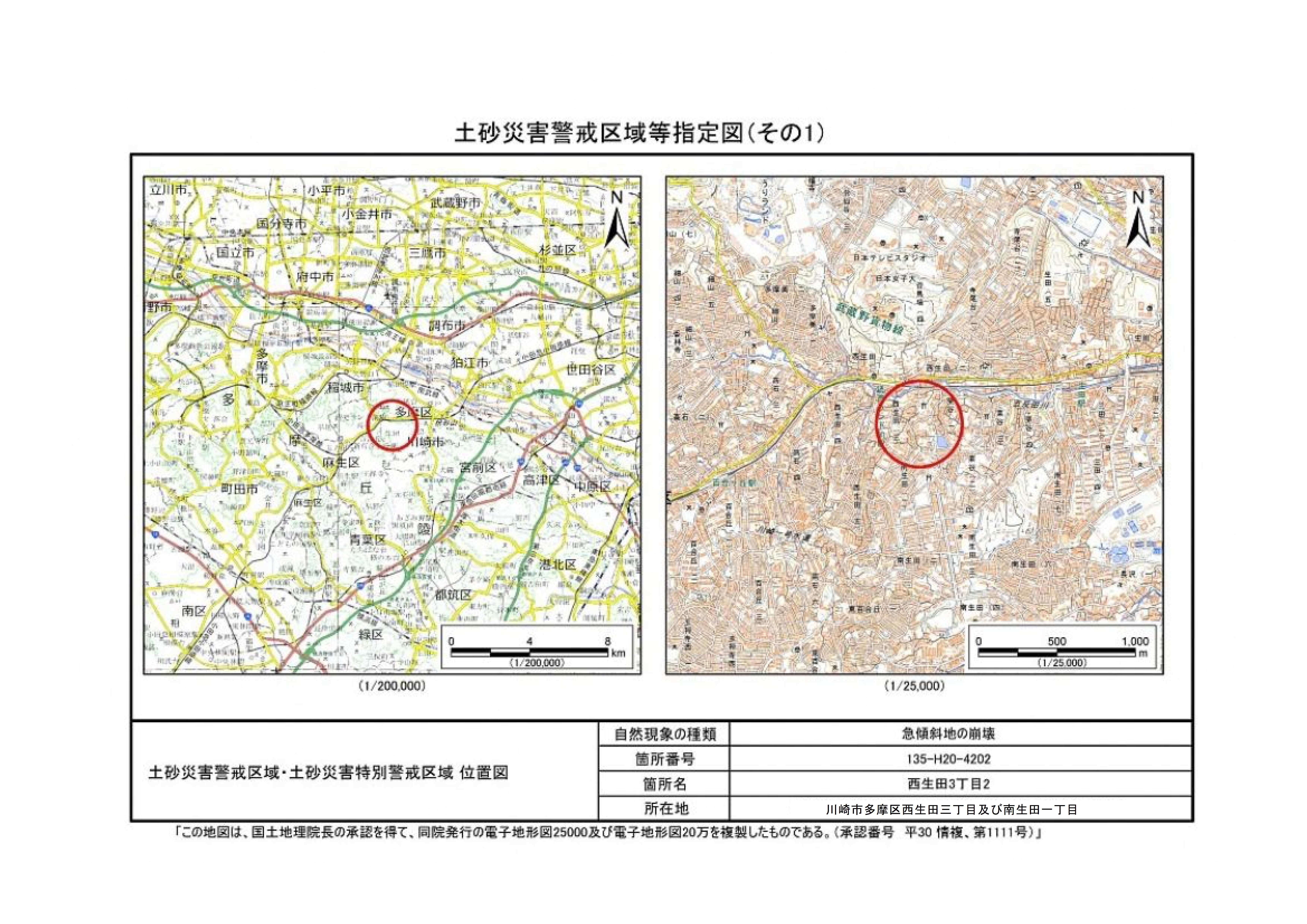 宮前区五所塚1丁目、神木本町1丁目、多摩区長尾2丁目及び長尾3丁目 ※宮前区と多摩区にまたがるため両区に掲載