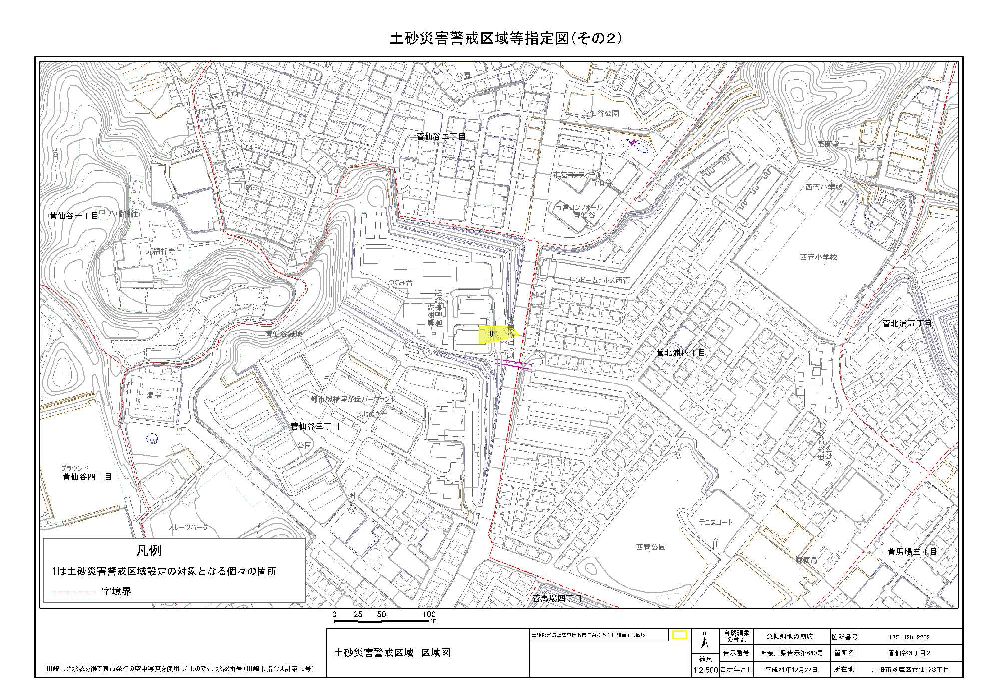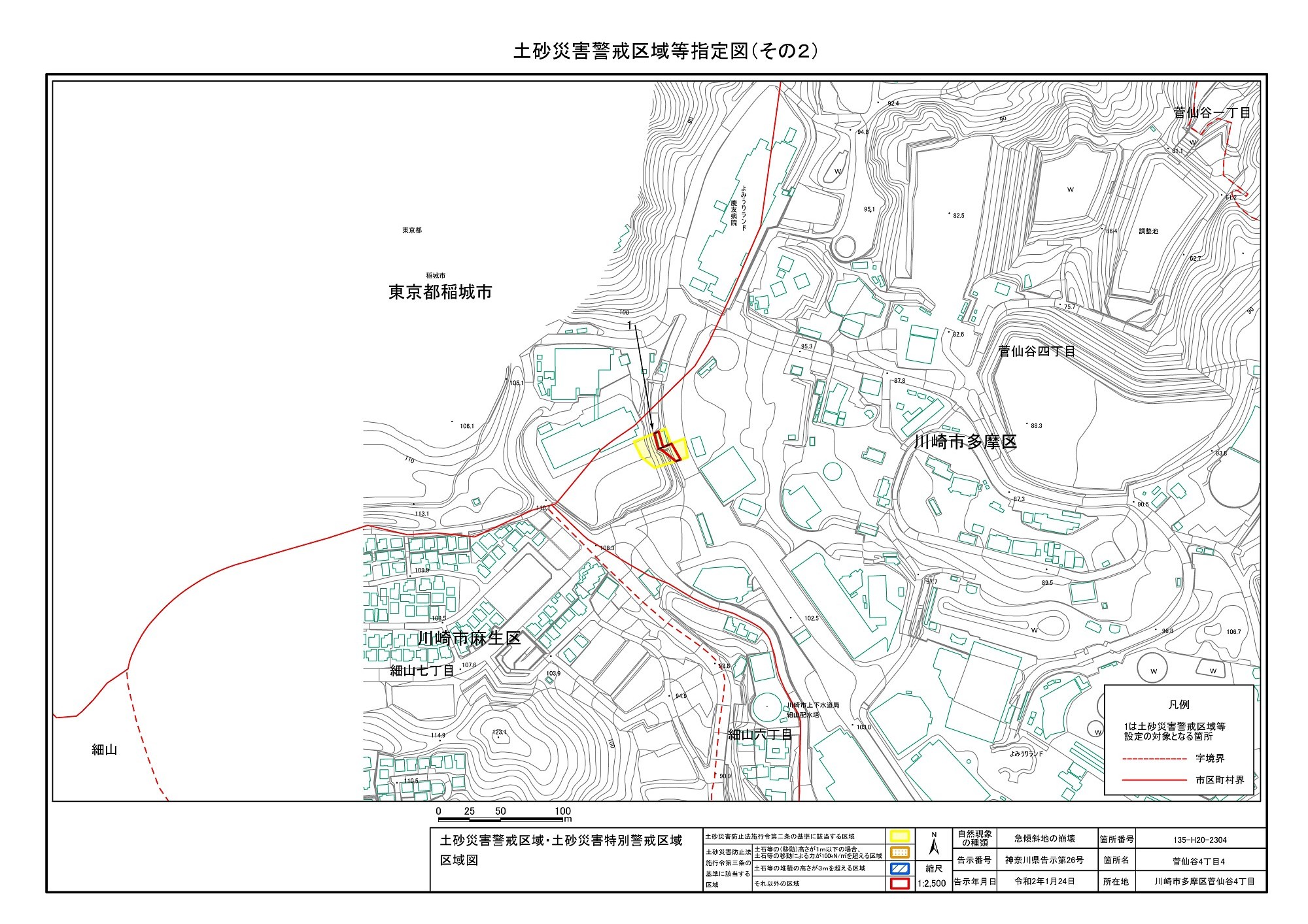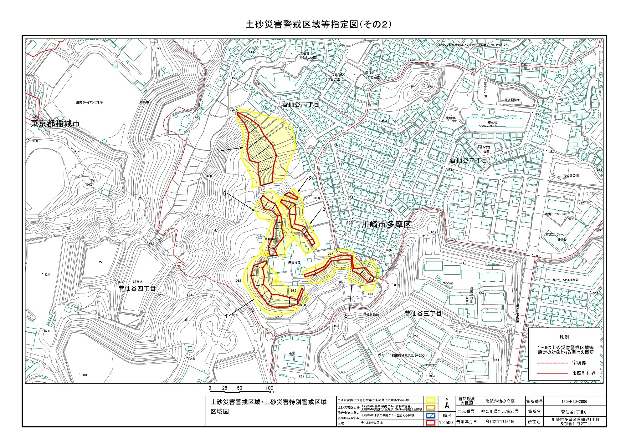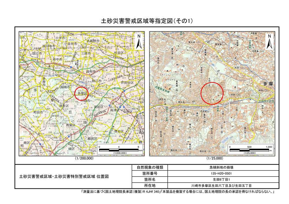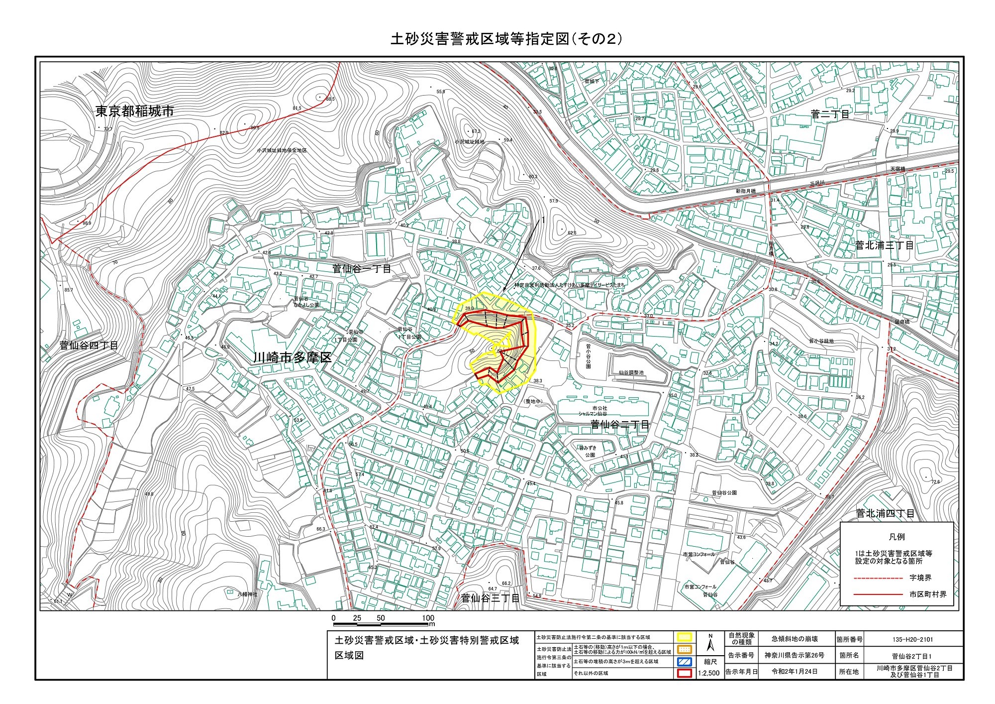 宮前区五所塚1丁目、神木本町1丁目、多摩区長尾2丁目及び長尾3丁目 ※宮前区と多摩区にまたがるため両区に掲載