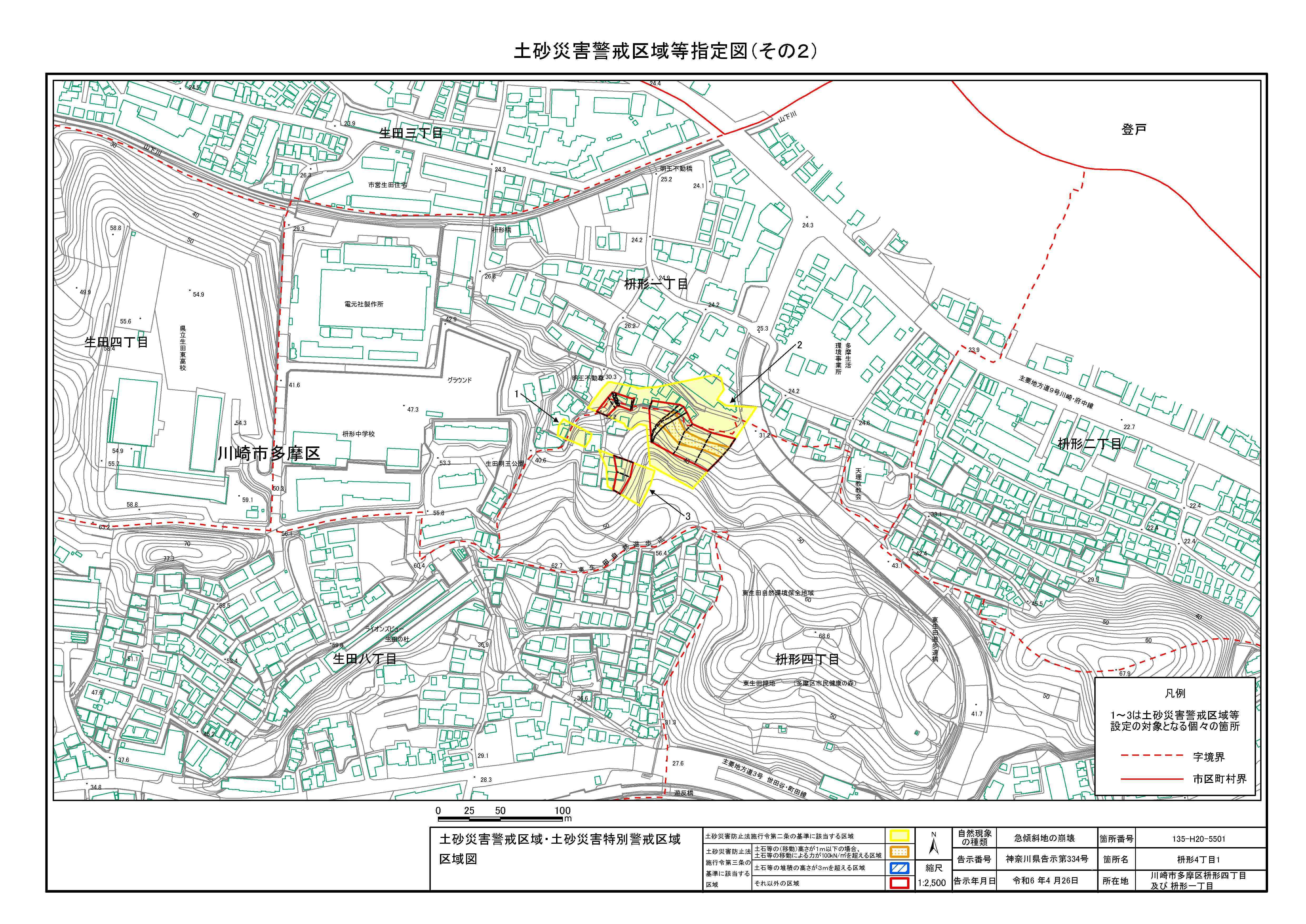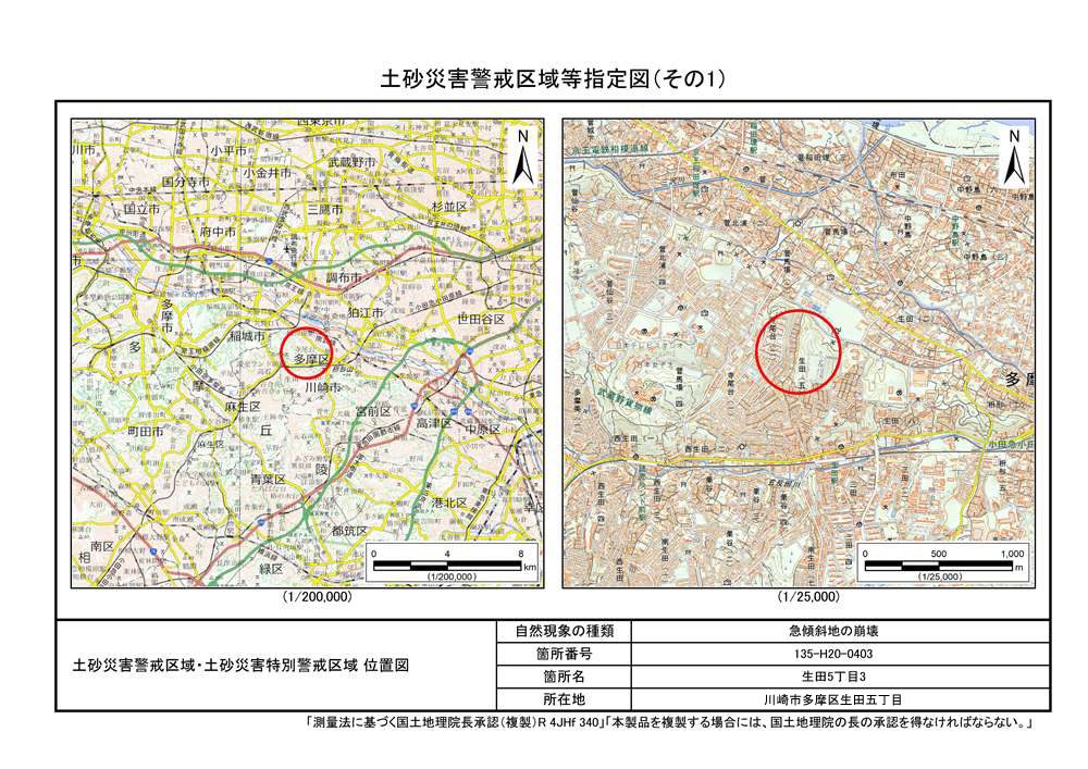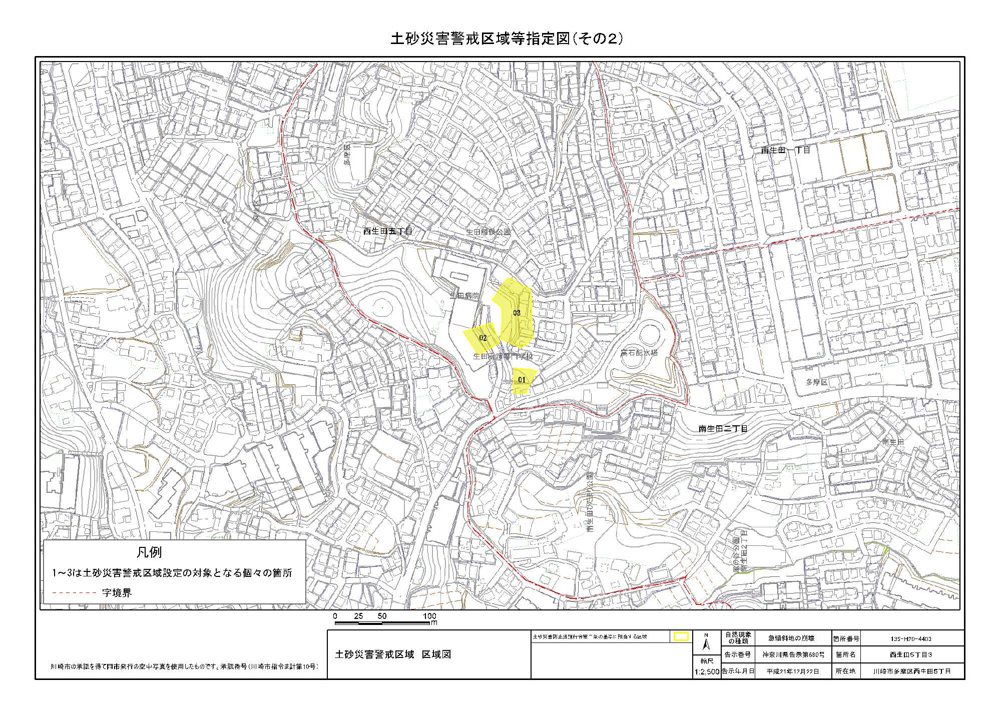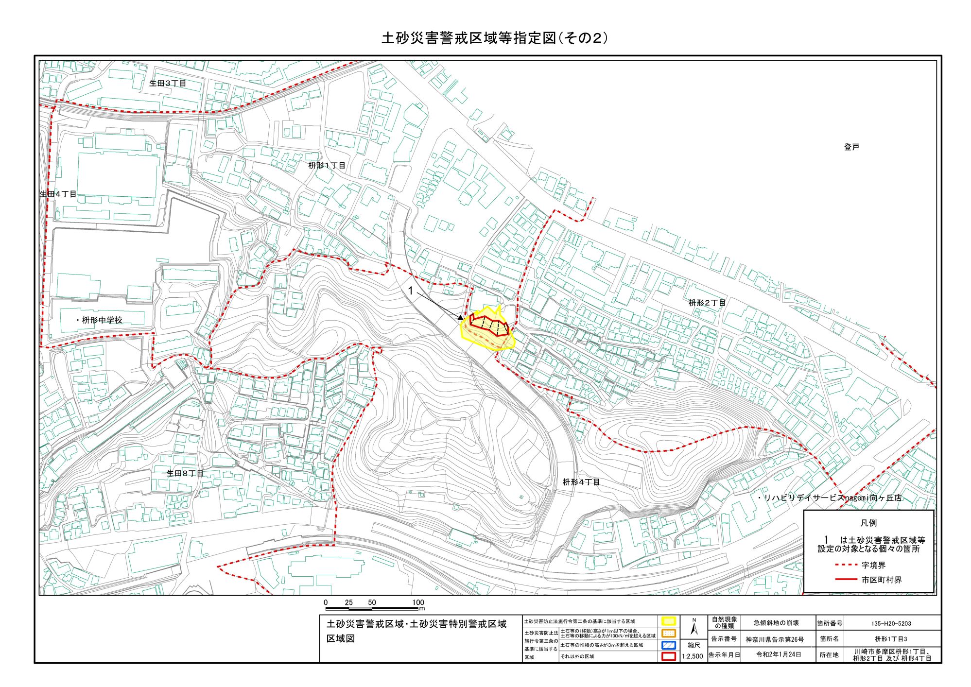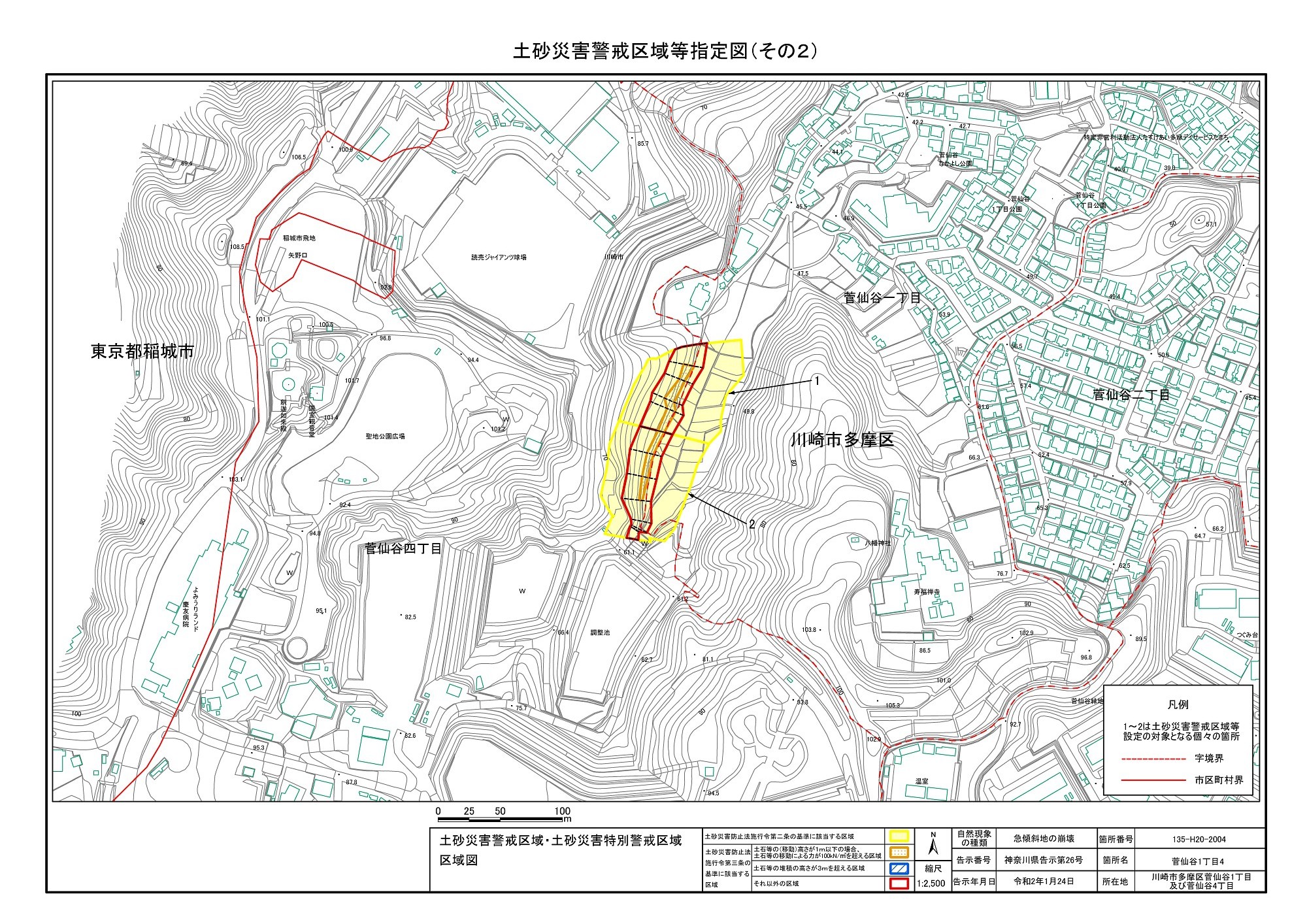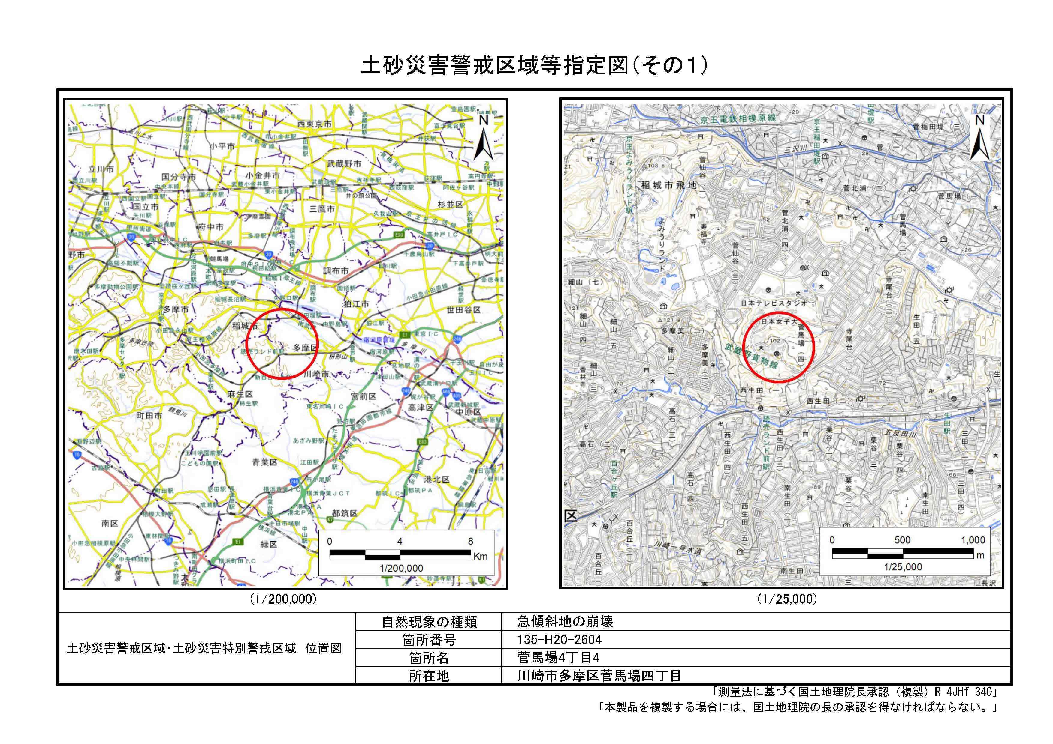 宮前区五所塚1丁目、神木本町1丁目、多摩区長尾2丁目及び長尾3丁目 ※宮前区と多摩区にまたがるため両区に掲載
